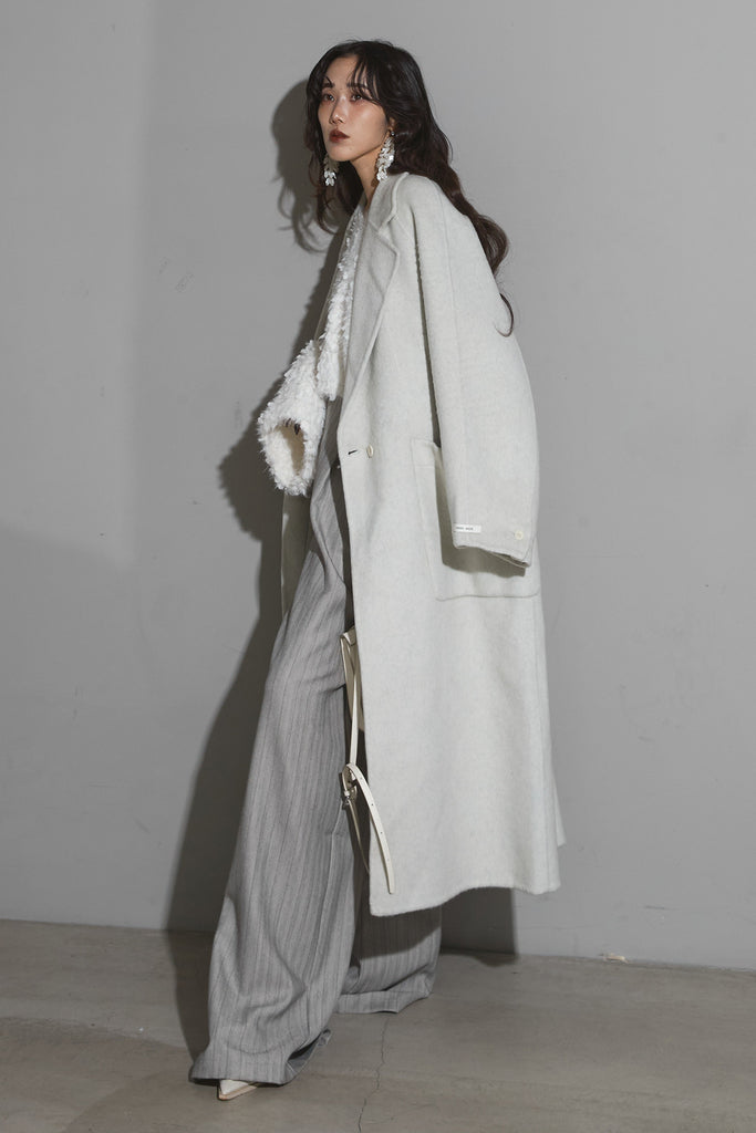【SET】ストライプノーカラーコート+スエードウエストゴムスカート