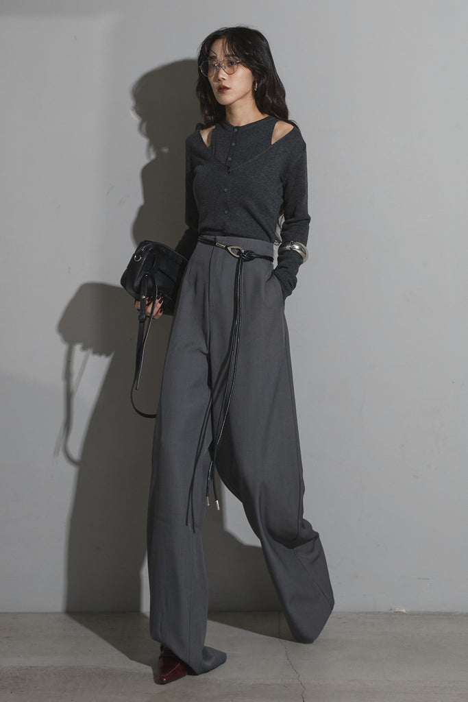 【SET】ダブルボタンジャケット+ベルトベストワイドパンツセットアップ