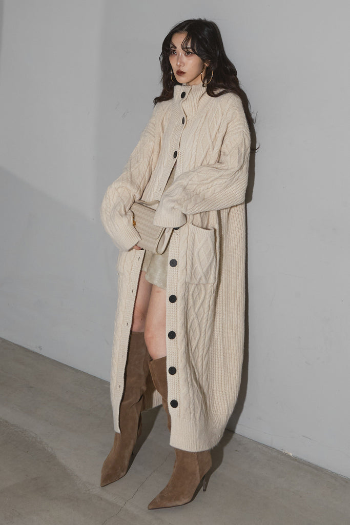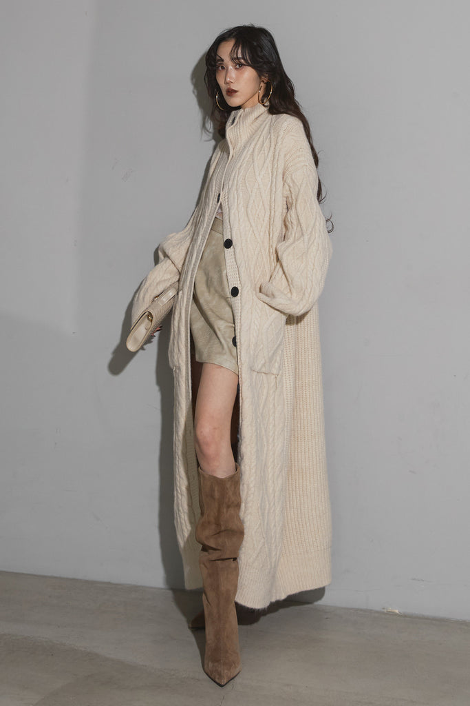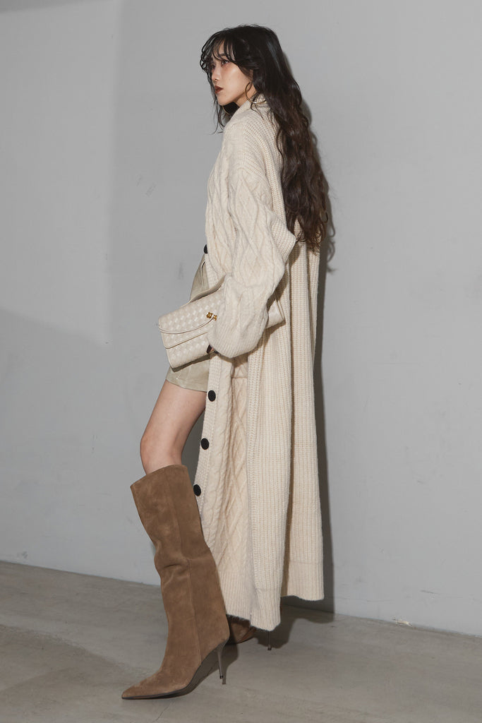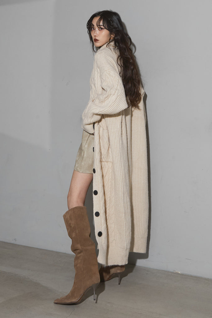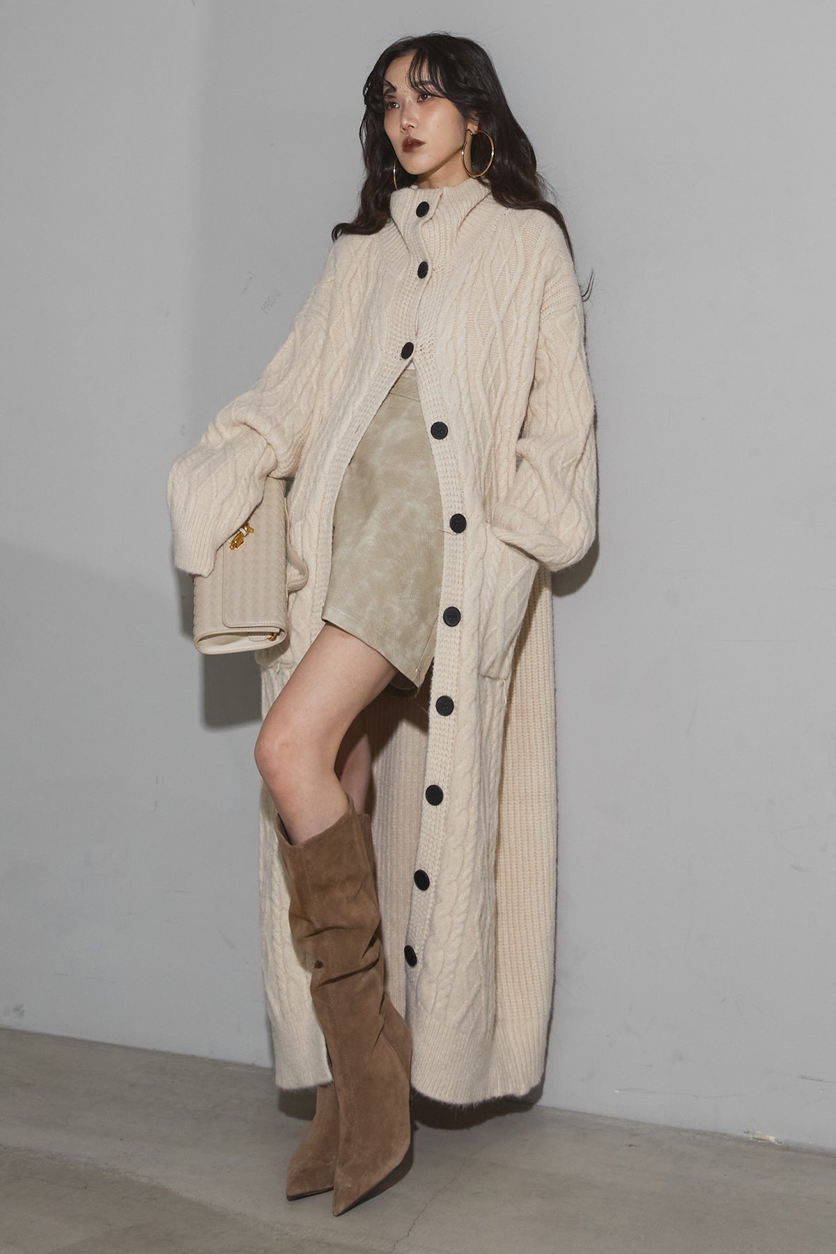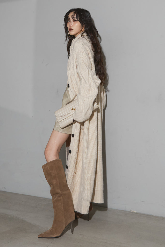 【SET】ニットロングカーディガン+クロコレザーミニスカート