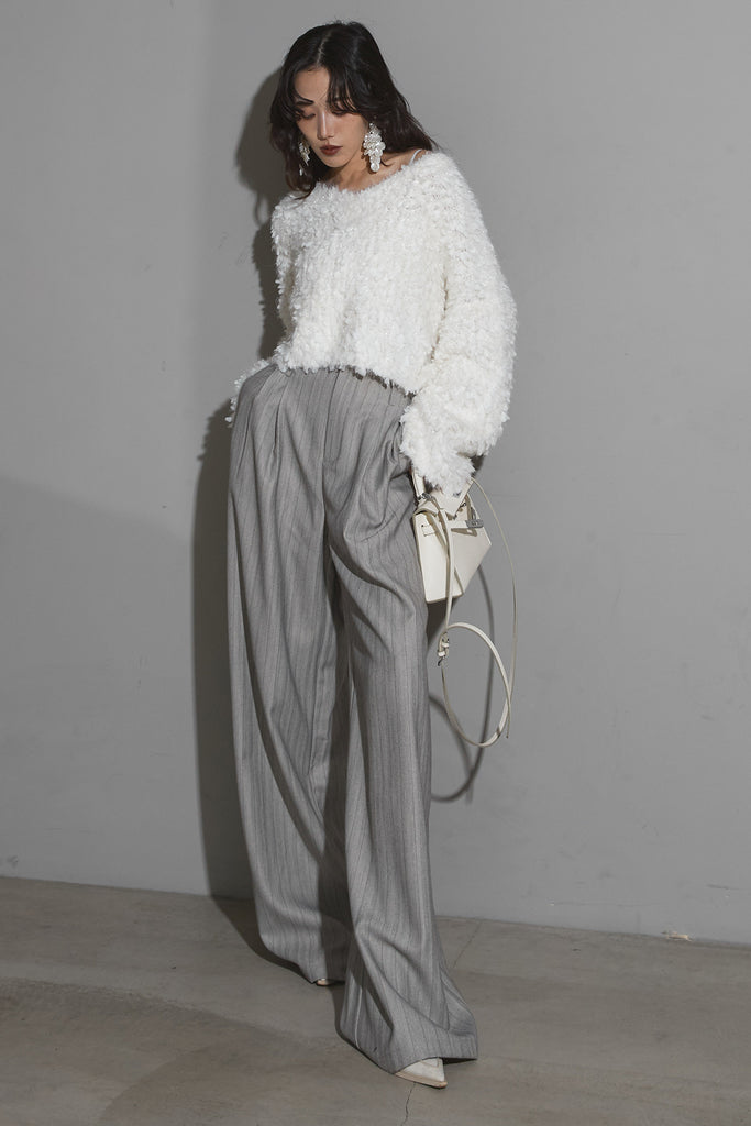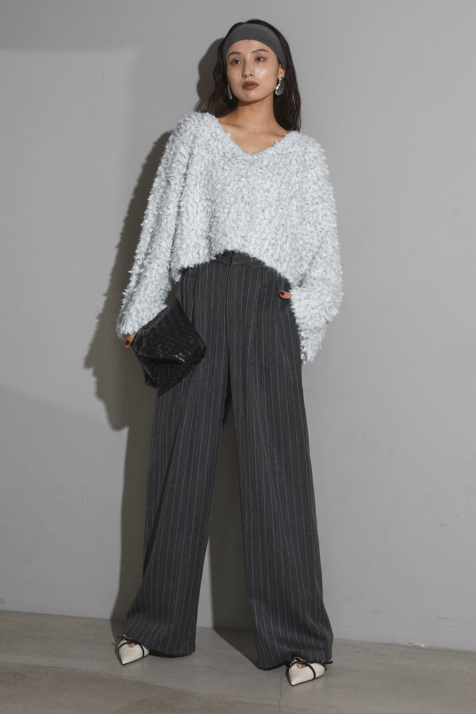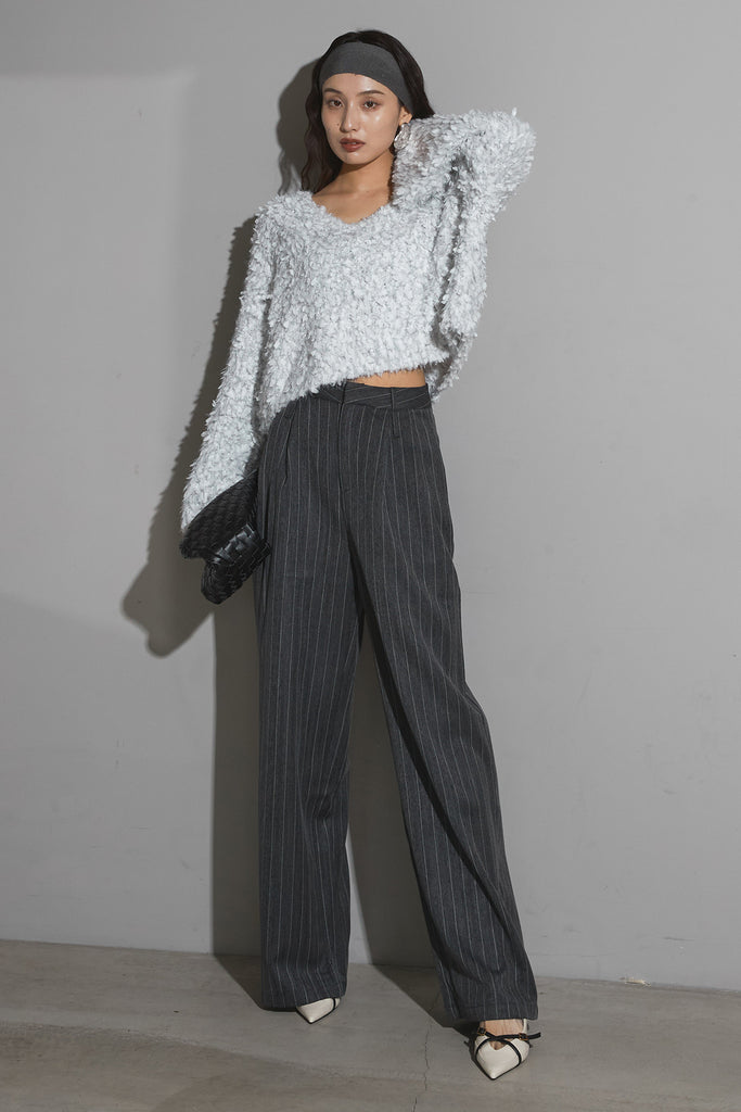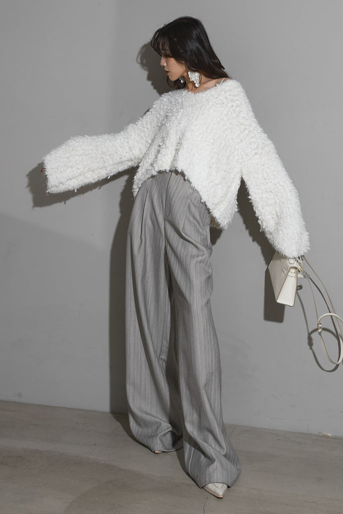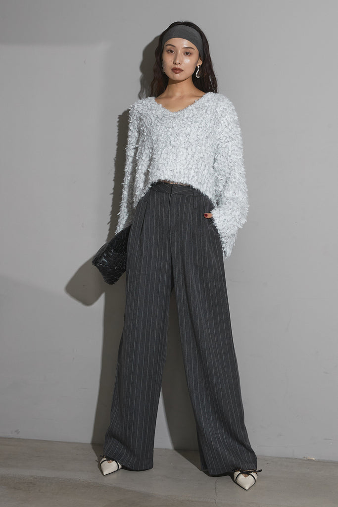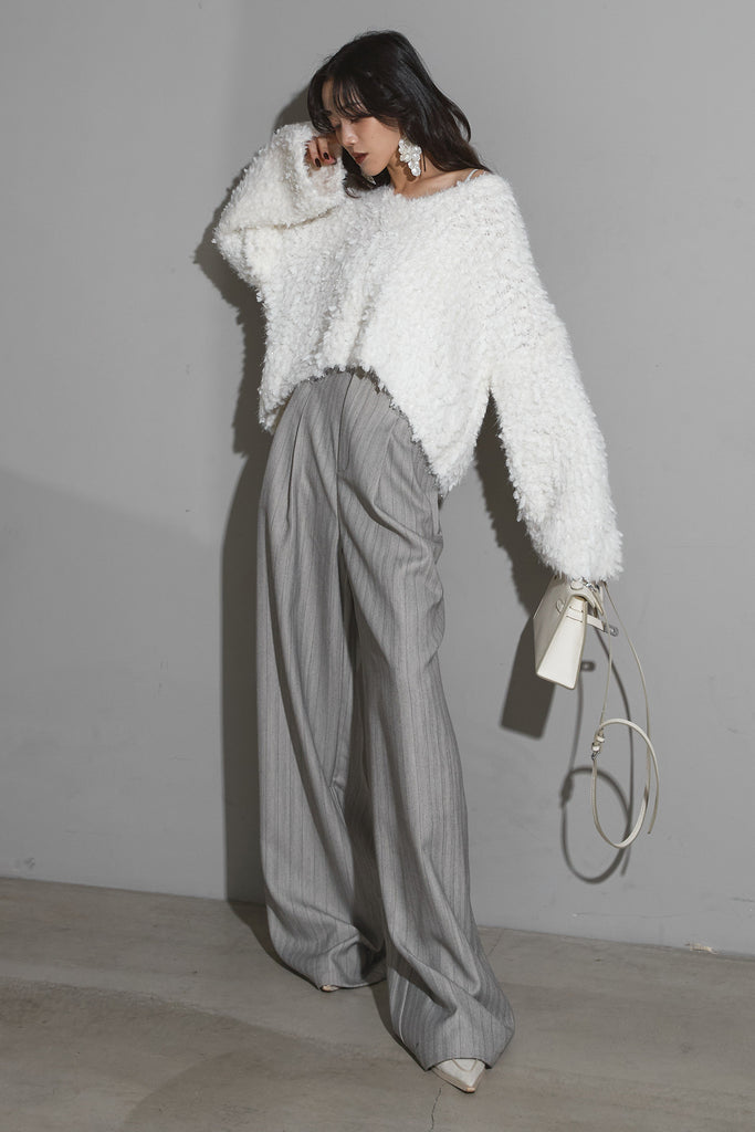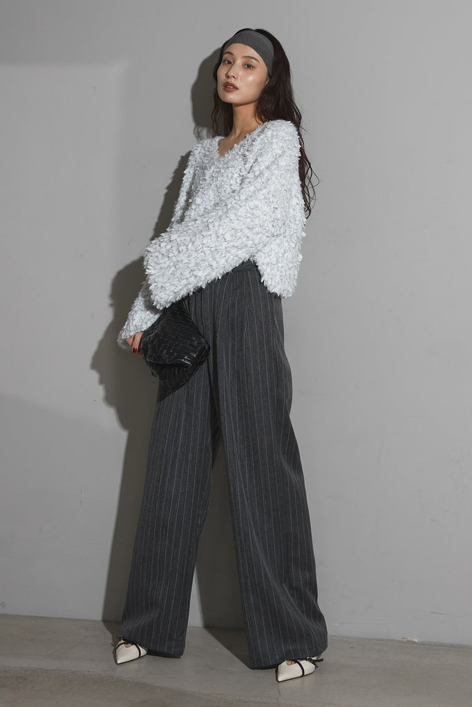 【SET】ポコポコルーズニット+ストライプワイドパンツ