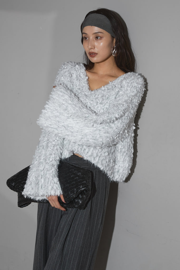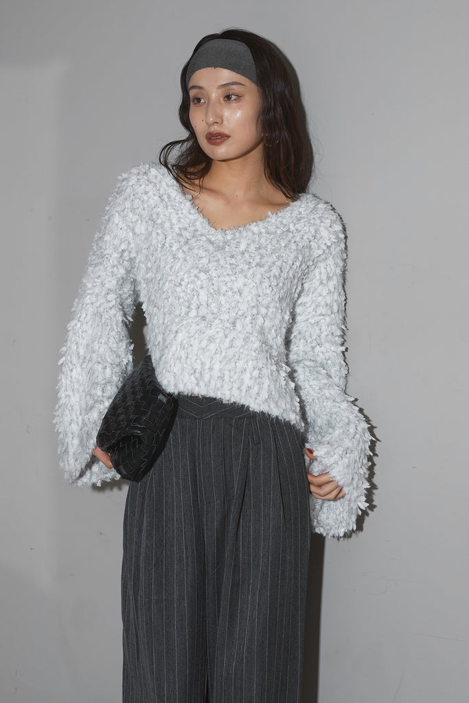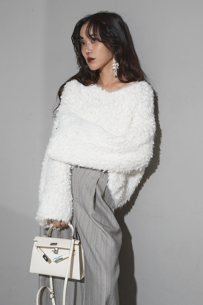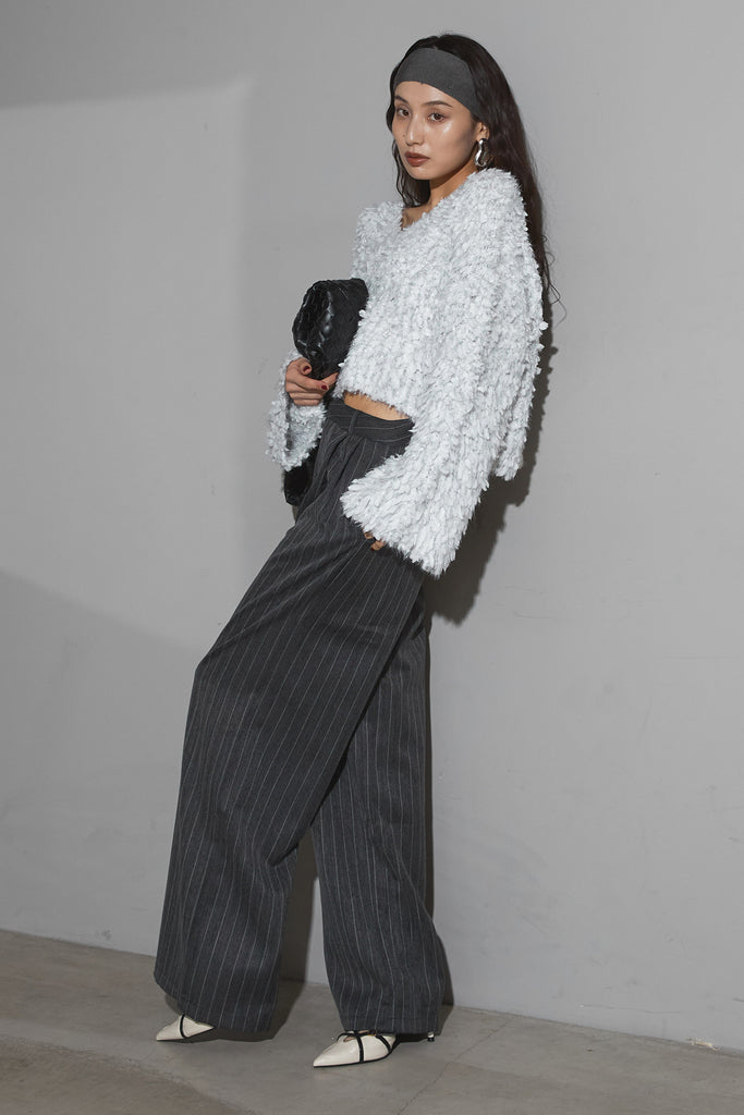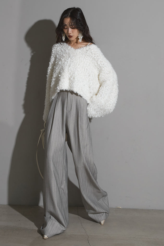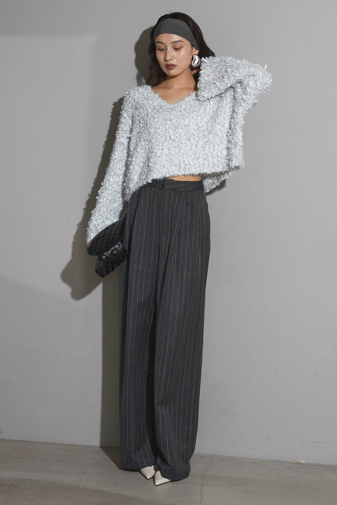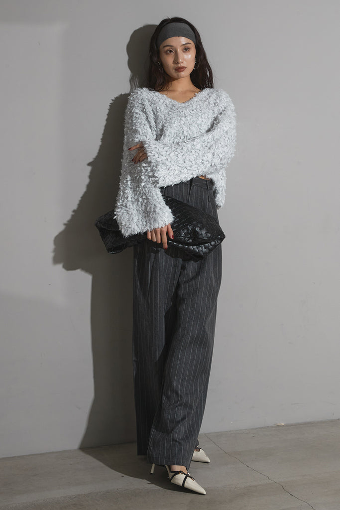 【SET】ポコポコルーズニット+ストライプワイドパンツ