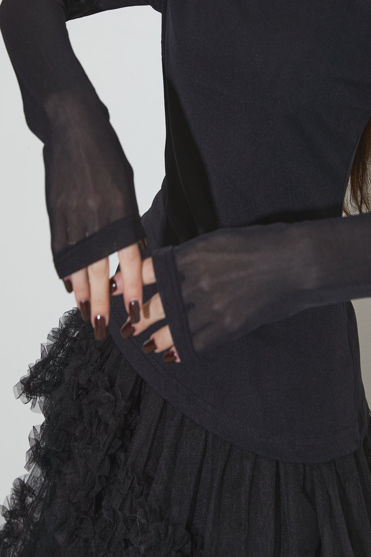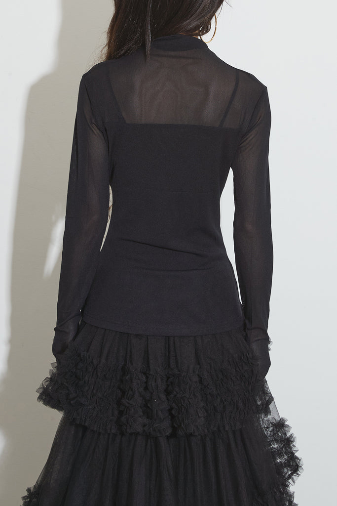 程よい透け感が女性らしさを引き立てるシアートップス。シンプルなデザインで、レイヤードスタイルにも活躍します。デイリーにも特別なシーンにも使える万能アイテムです。