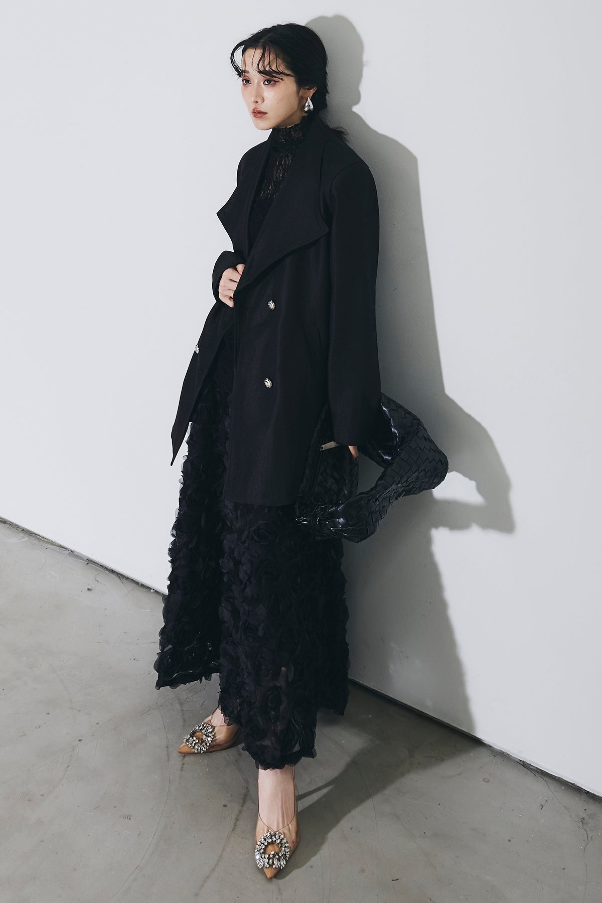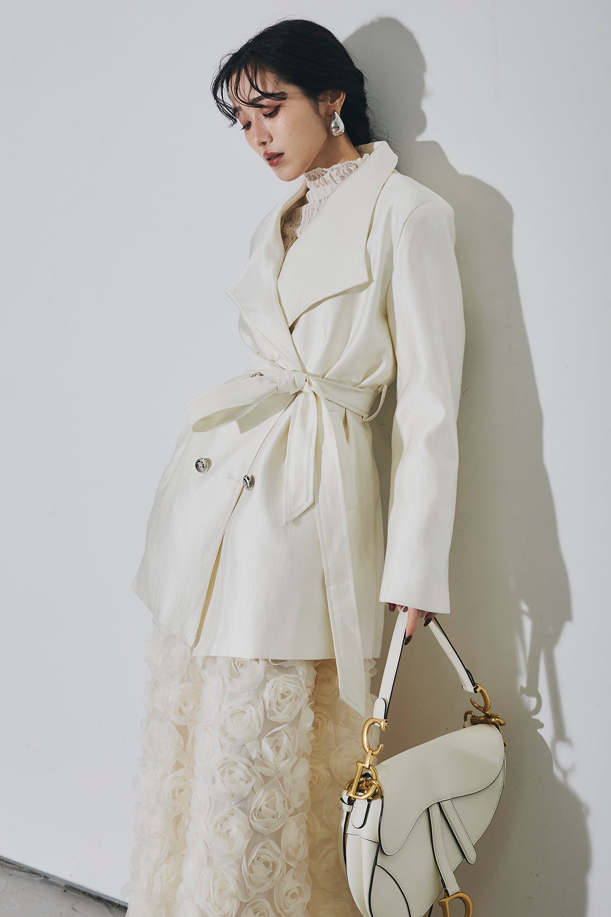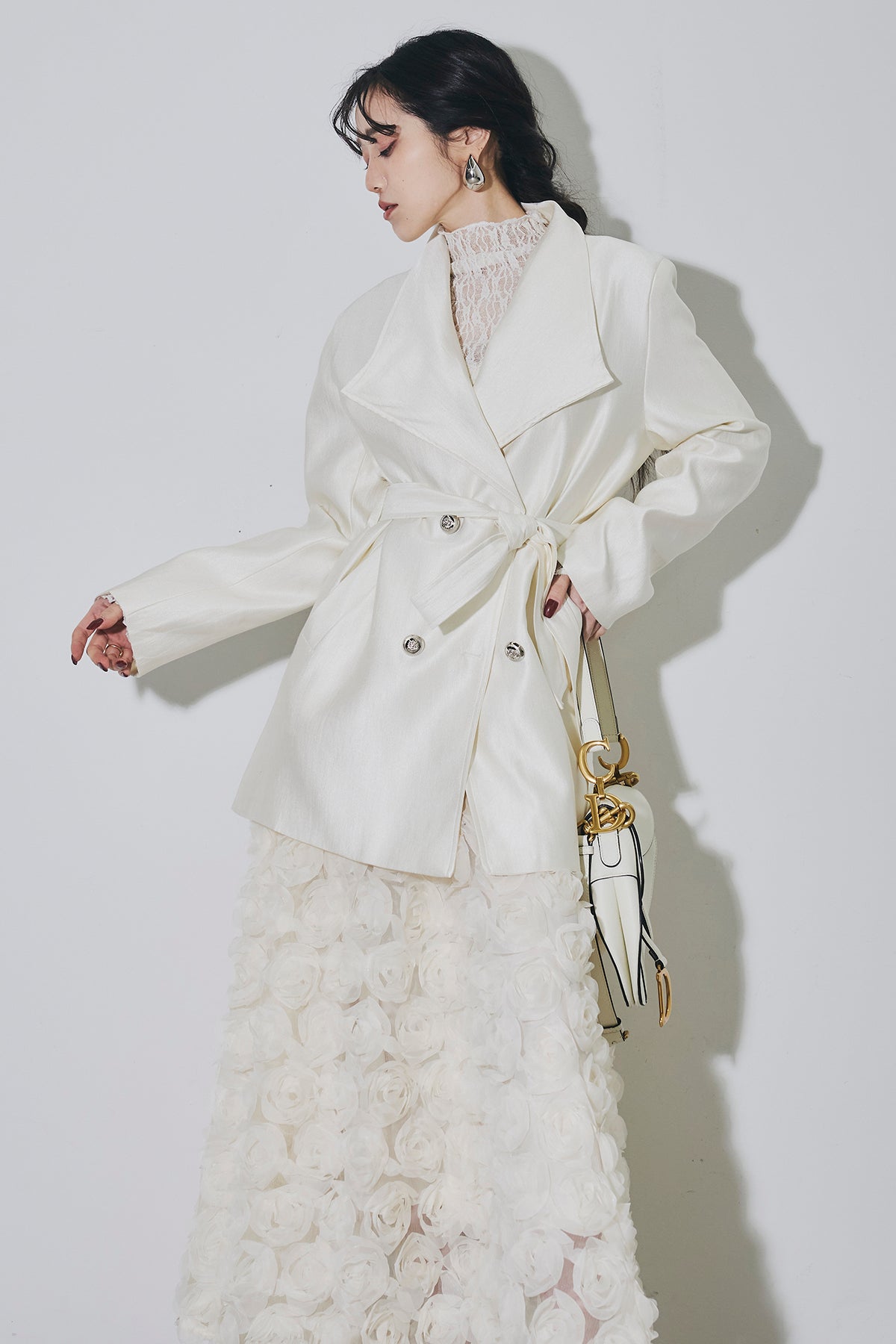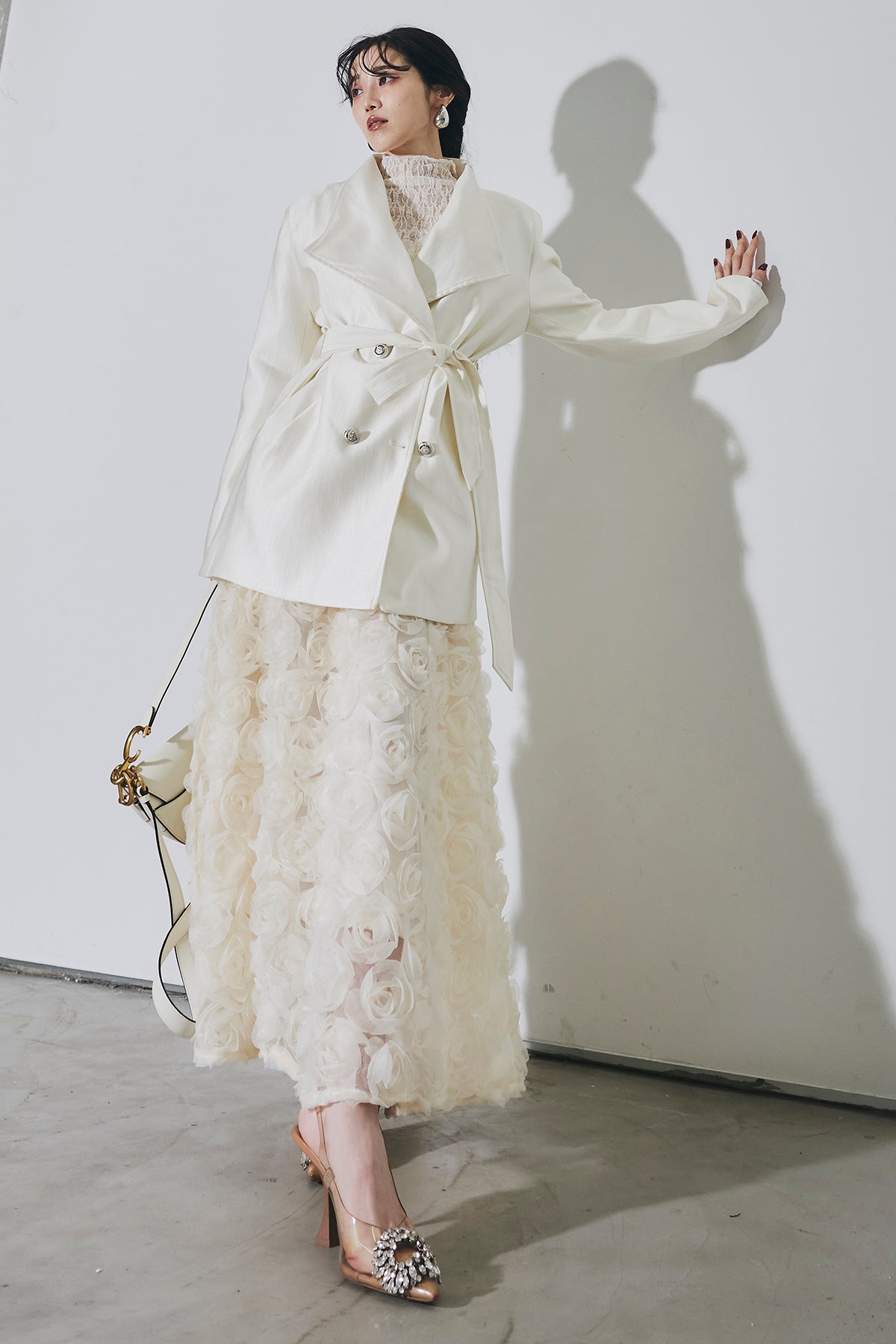 【SET】ウェーブレースシアートップ+ベルテッドラスタージャケット+メニーローズスカート
