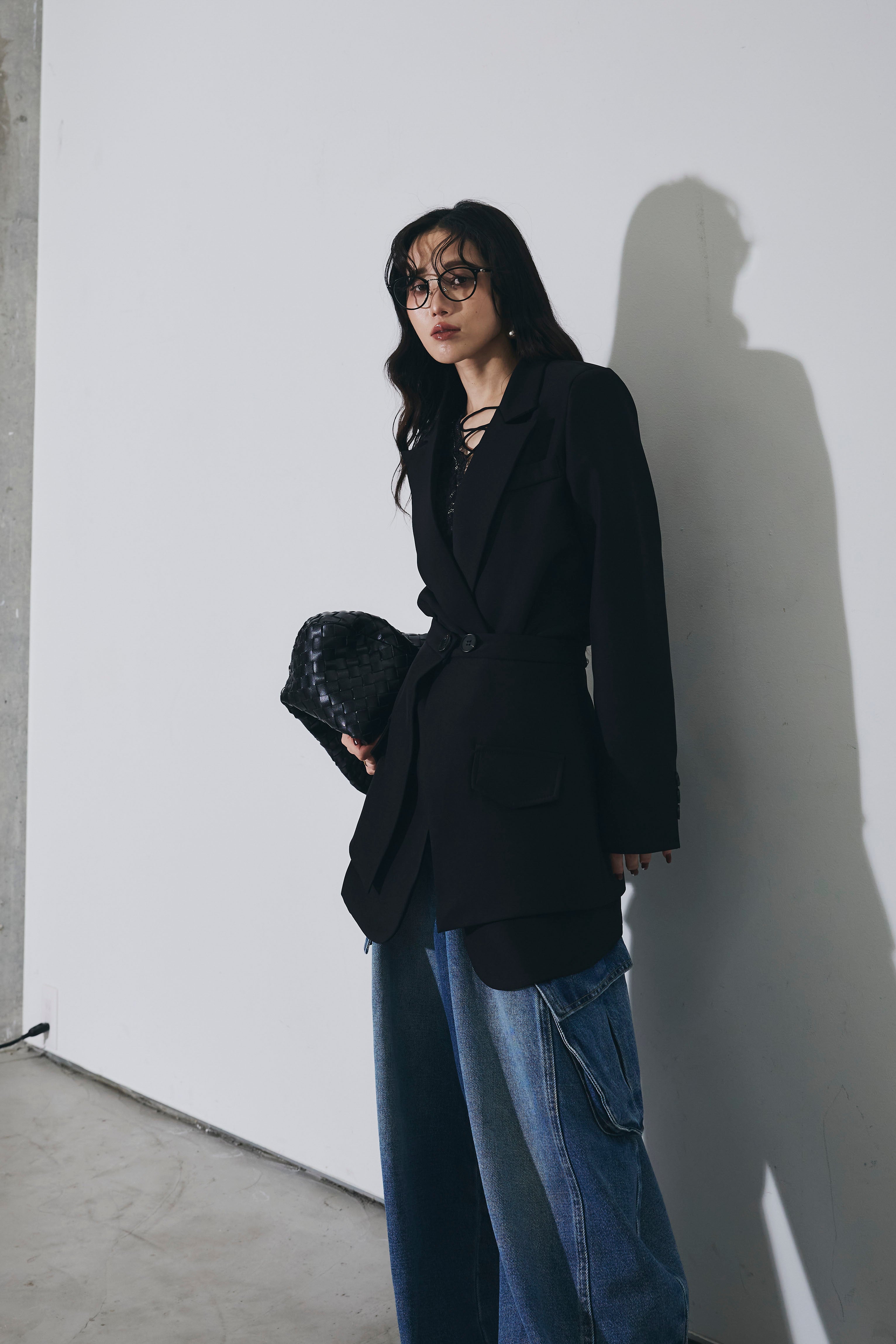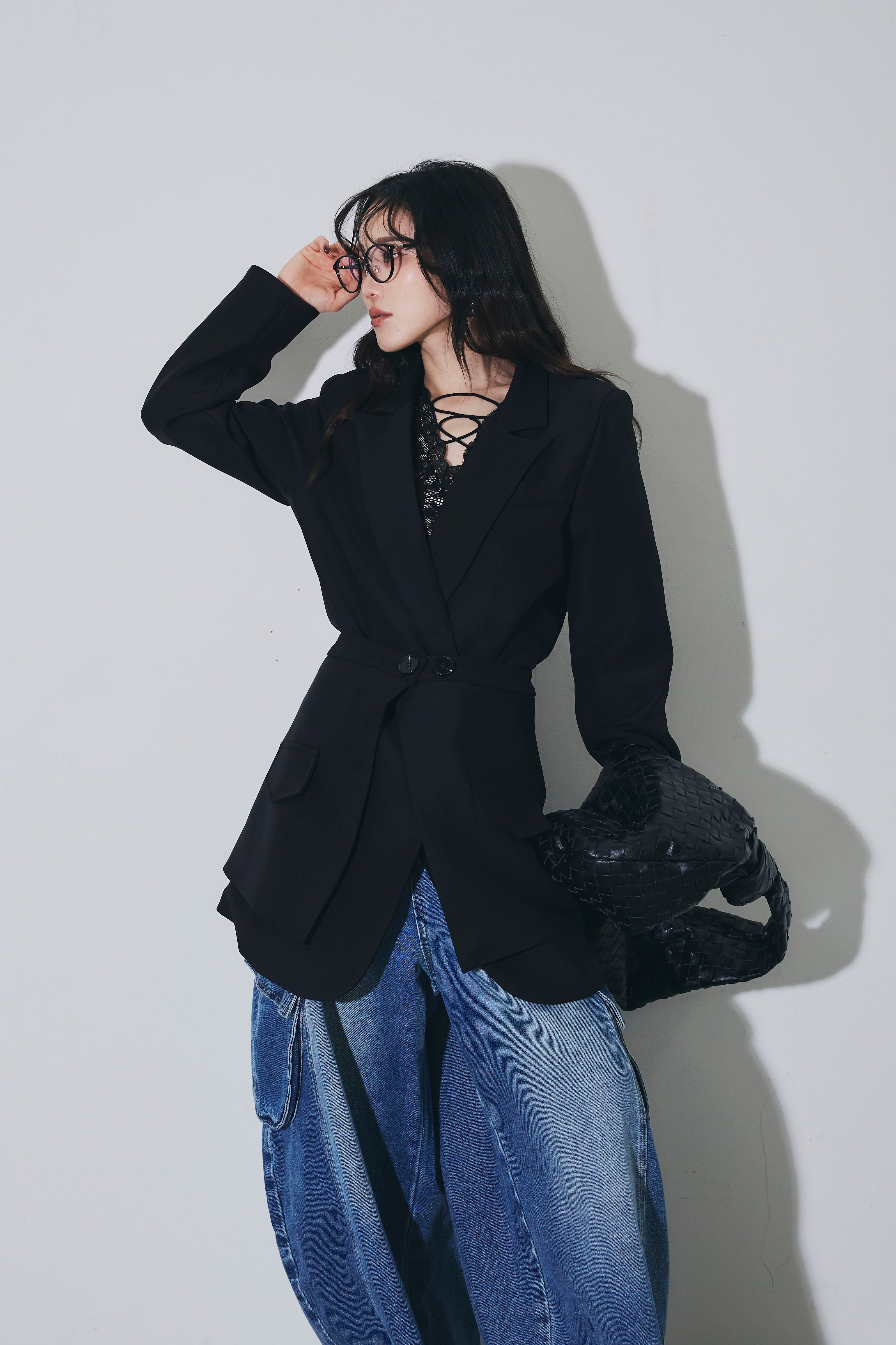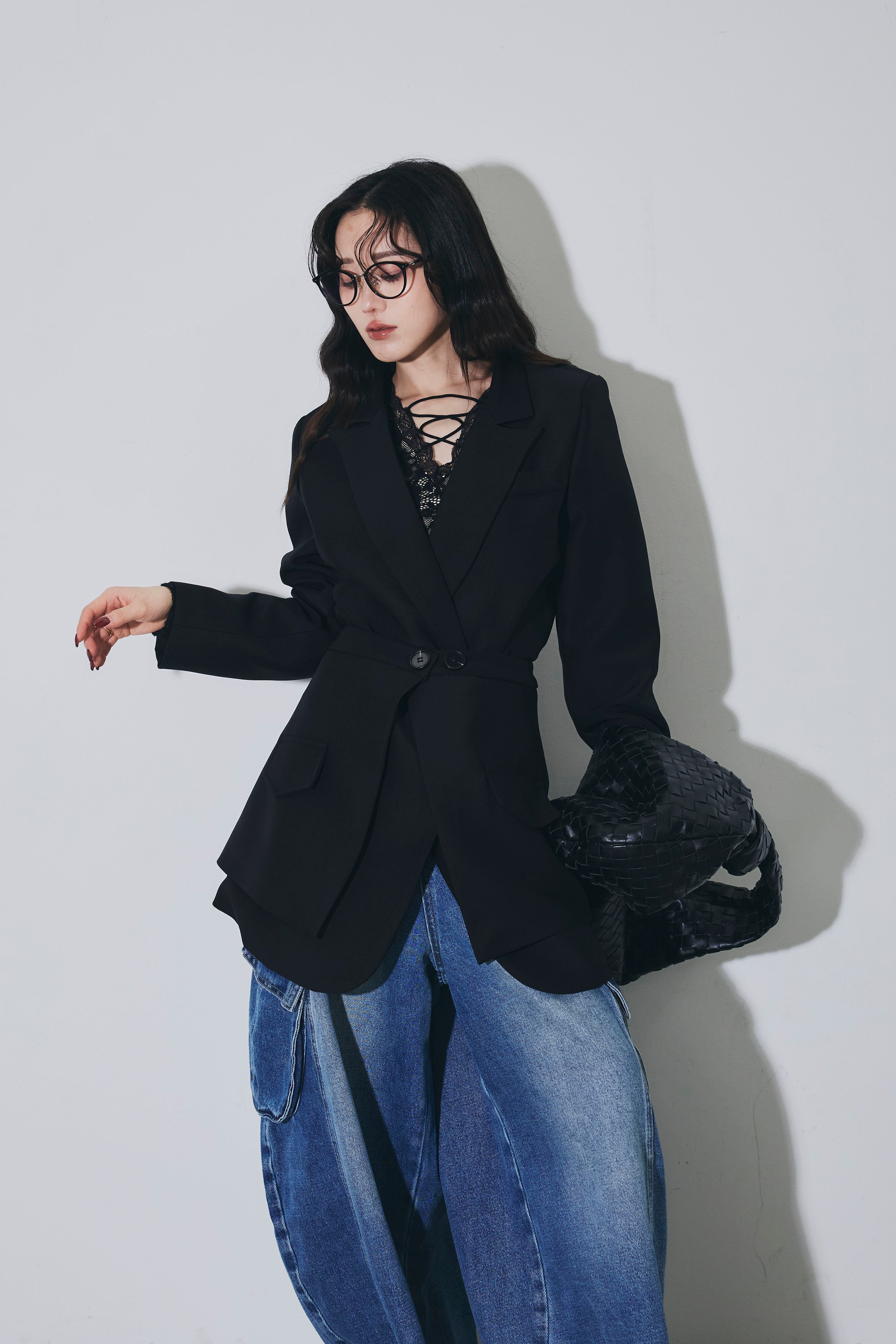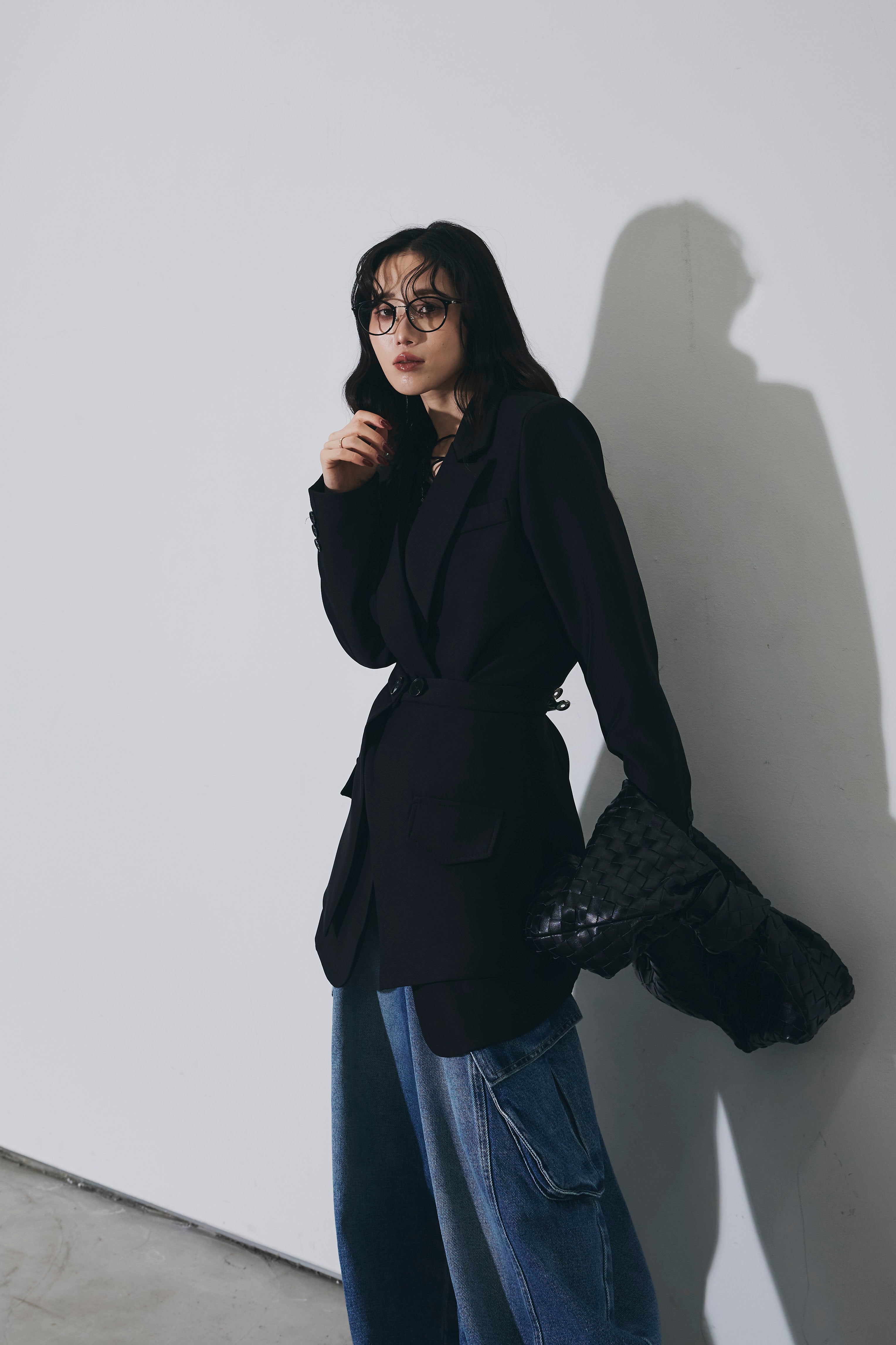 ご注文前に必ずページ下部「お届け期間」をご確認くださいませ。ウエストをマークするラップデザインが印象的なジャケット。程よくゆとりのあるシルエットに、共布ベルトでメリハリをプラスし、女性らしいラインを演出します。シャープなテーラードカラーがきちんと感を与えつつ、こなれた雰囲気に。羽織るだけでスタイリングを格上げしてくれる主役アウターです。