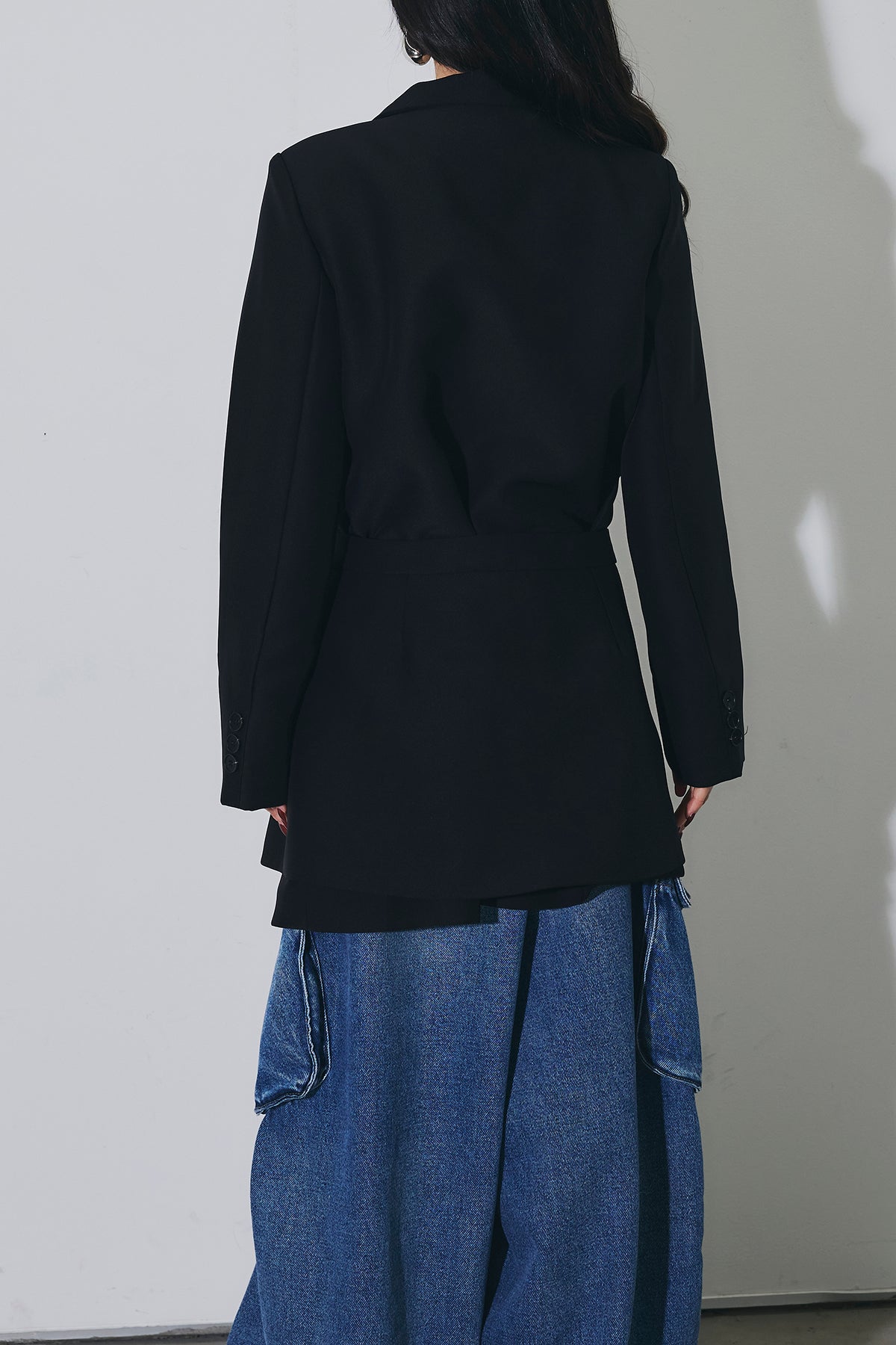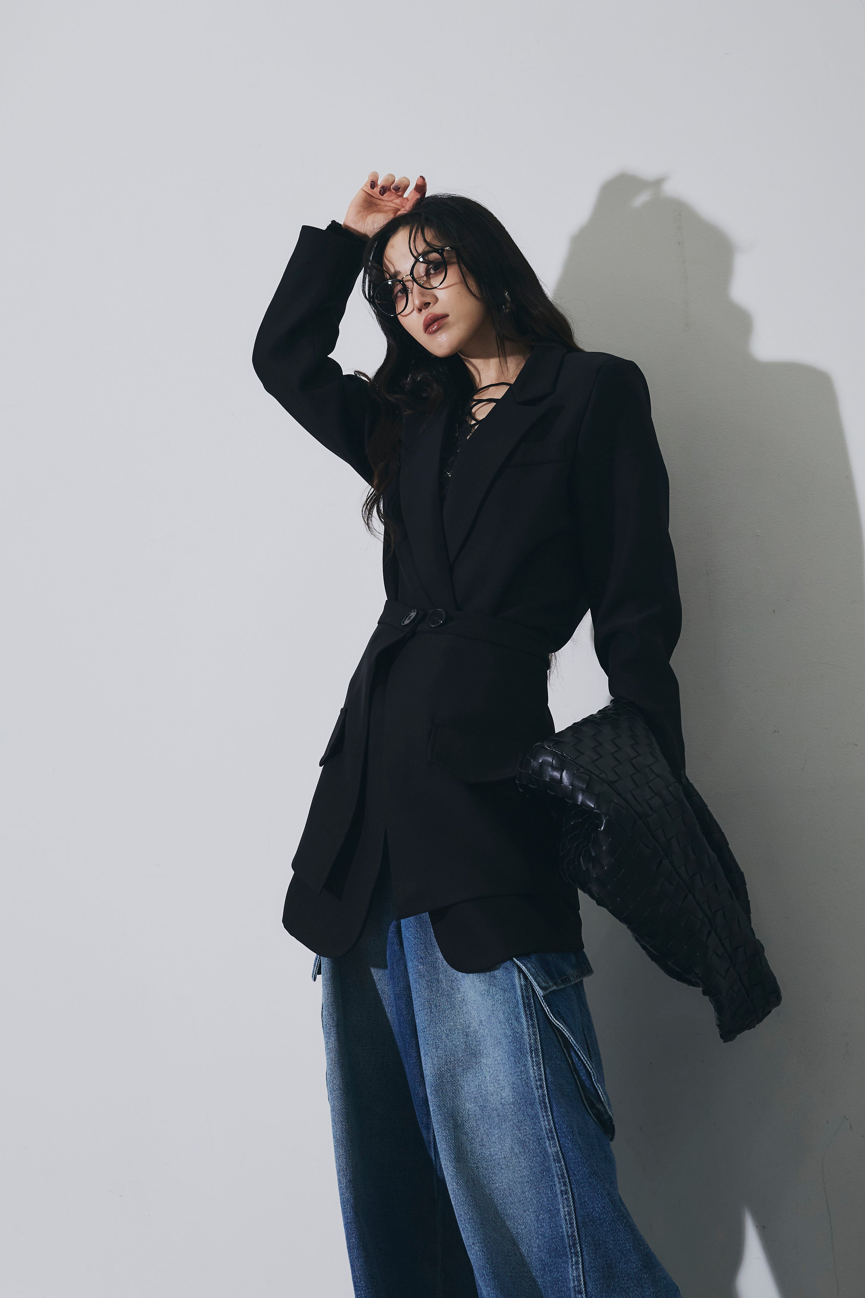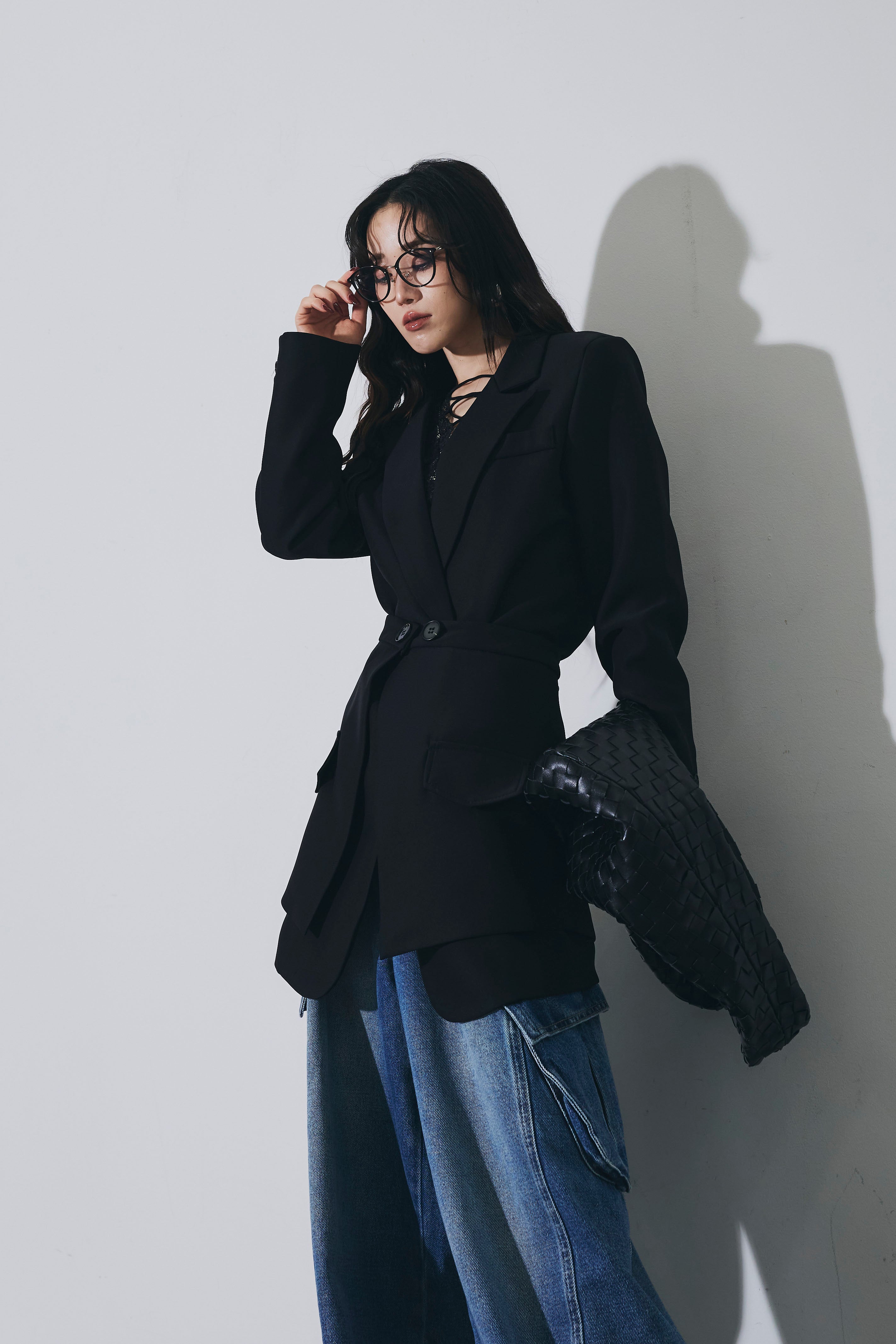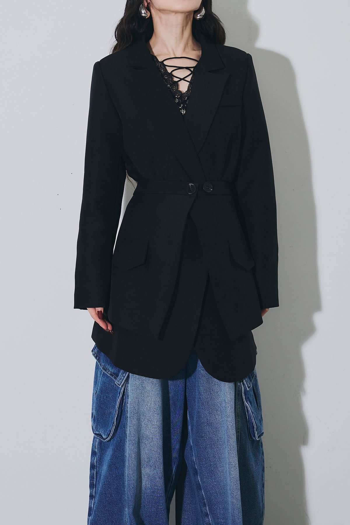 ご注文前に必ずページ下部「お届け期間」をご確認くださいませ。ウエストをマークするラップデザインが印象的なジャケット。程よくゆとりのあるシルエットに、共布ベルトでメリハリをプラスし、女性らしいラインを演出します。シャープなテーラードカラーがきちんと感を与えつつ、こなれた雰囲気に。羽織るだけでスタイリングを格上げしてくれる主役アウターです。