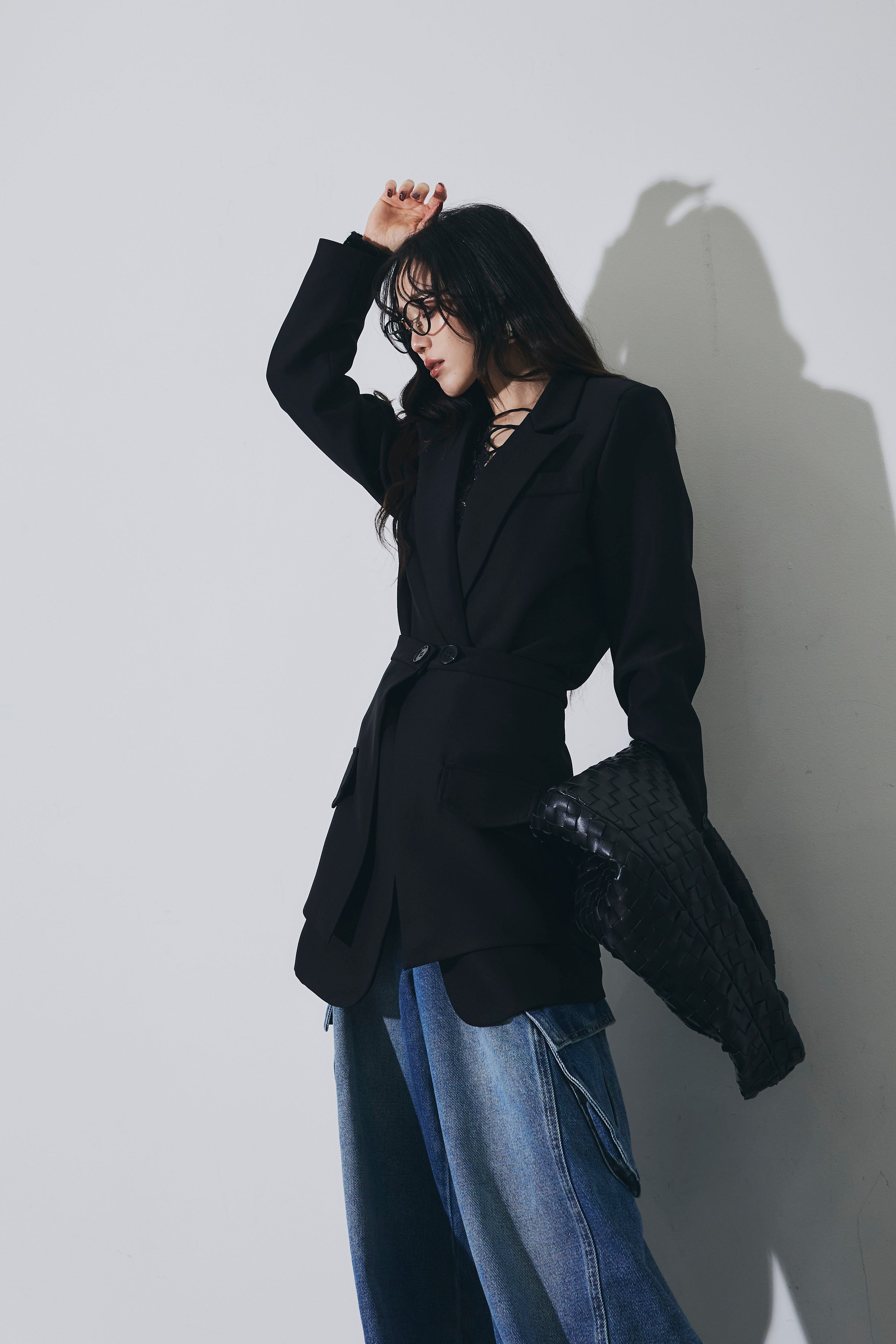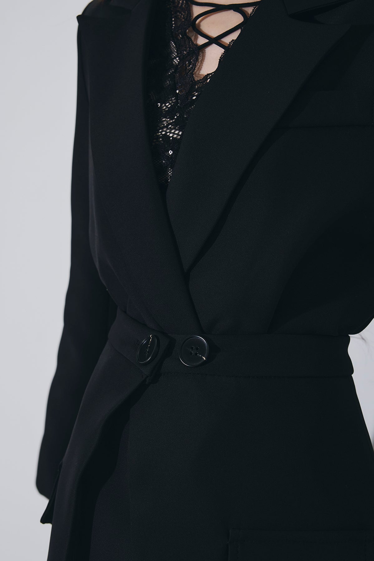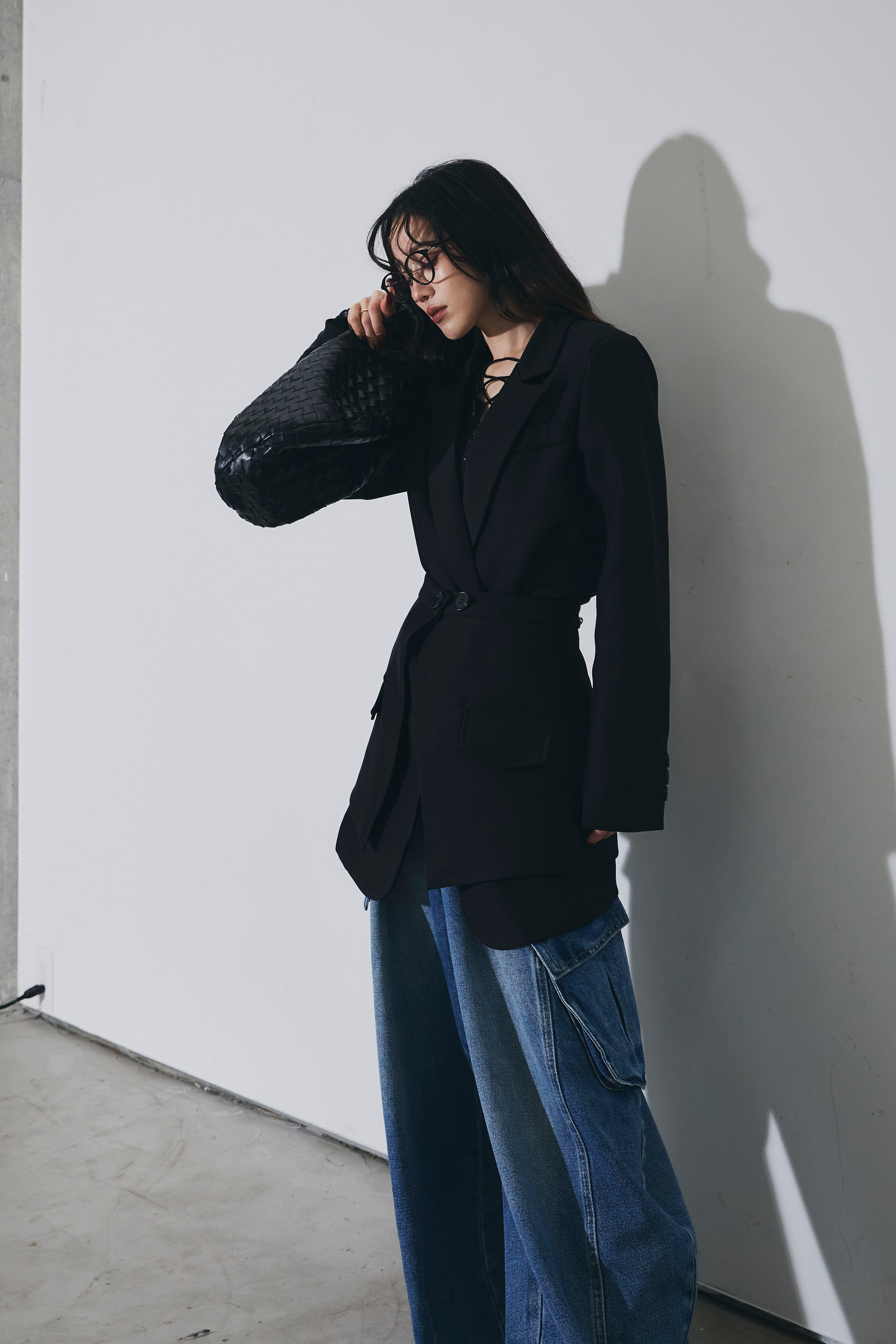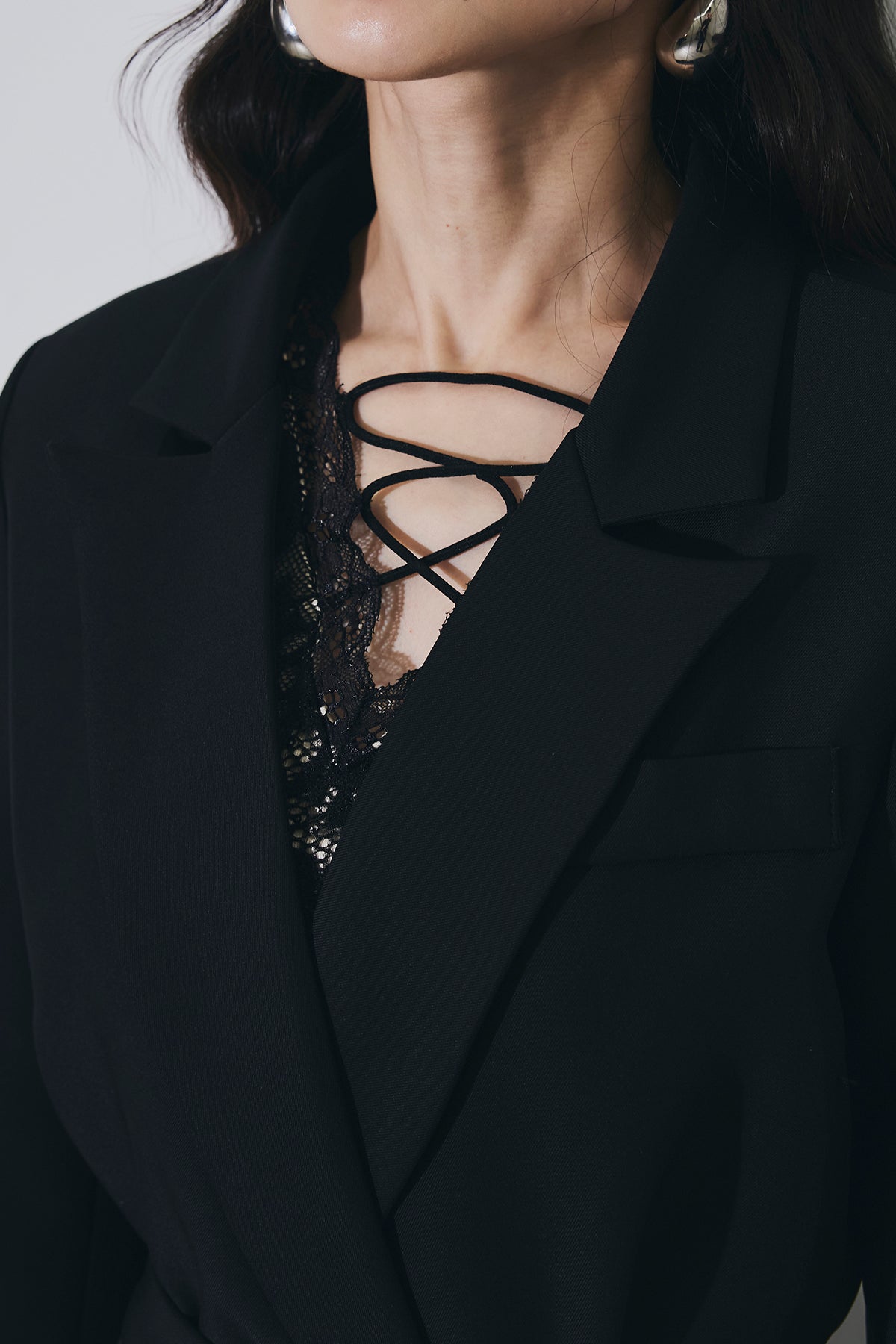 ご注文前に必ずページ下部「お届け期間」をご確認くださいませ。ウエストをマークするラップデザインが印象的なジャケット。程よくゆとりのあるシルエットに、共布ベルトでメリハリをプラスし、女性らしいラインを演出します。シャープなテーラードカラーがきちんと感を与えつつ、こなれた雰囲気に。羽織るだけでスタイリングを格上げしてくれる主役アウターです。