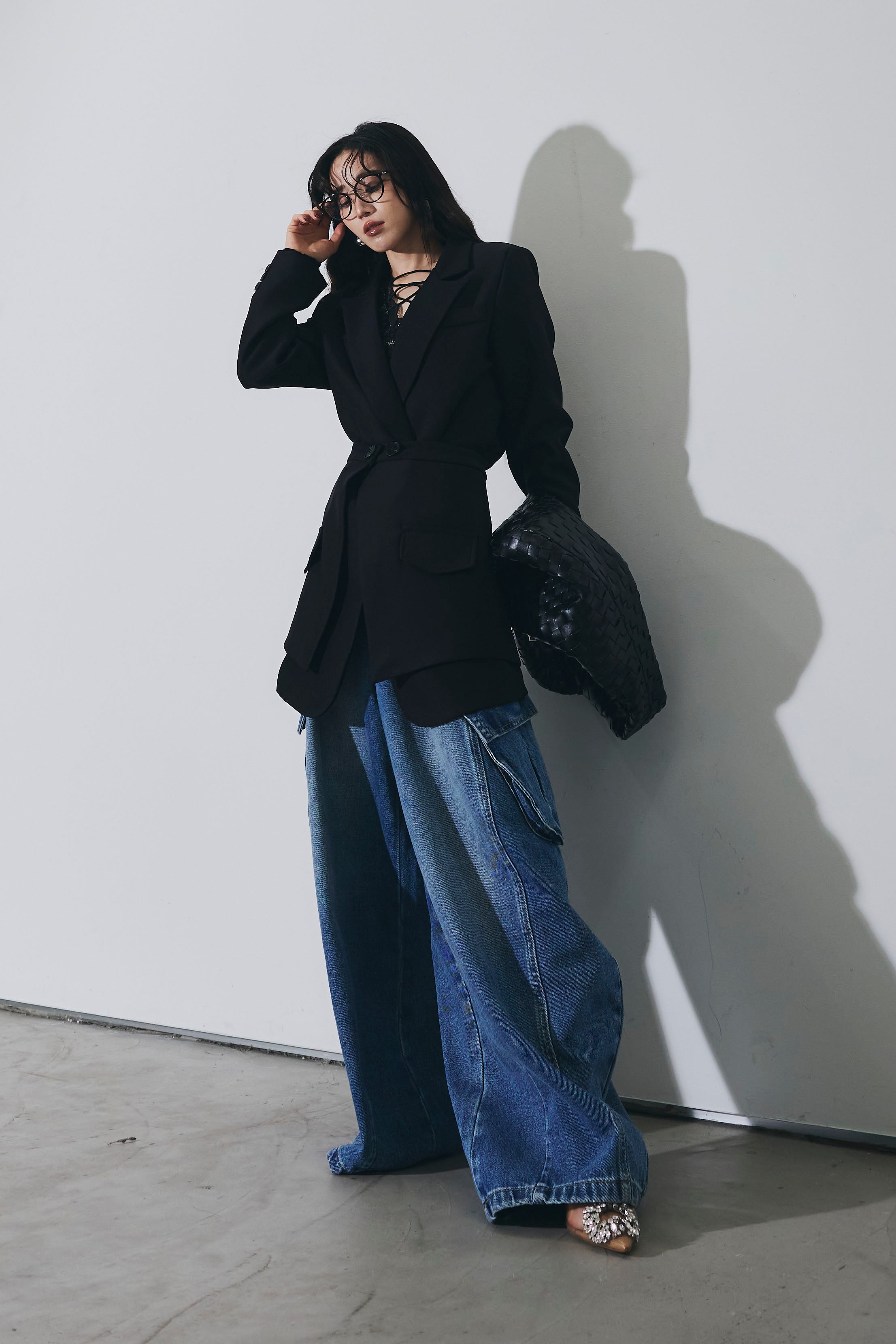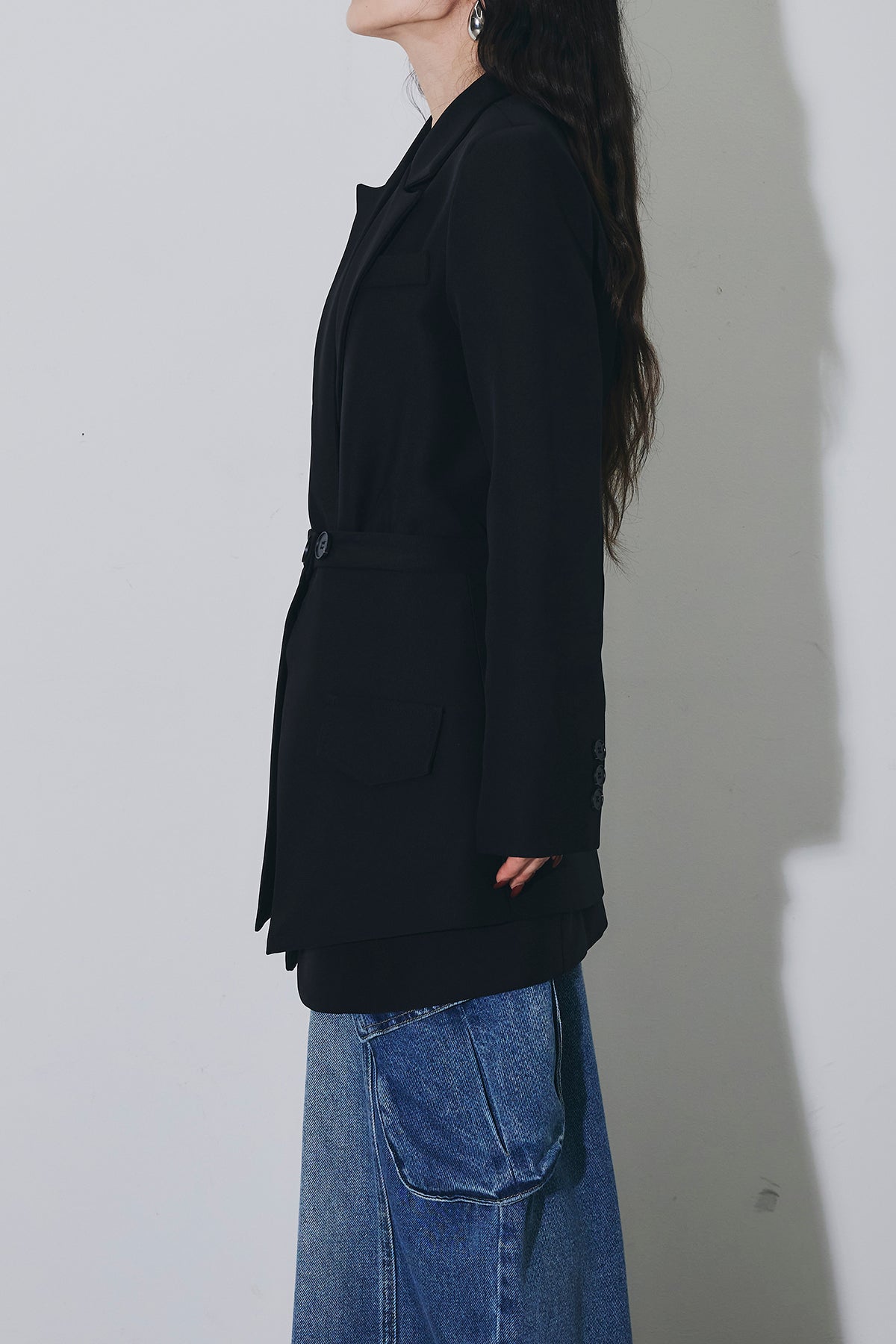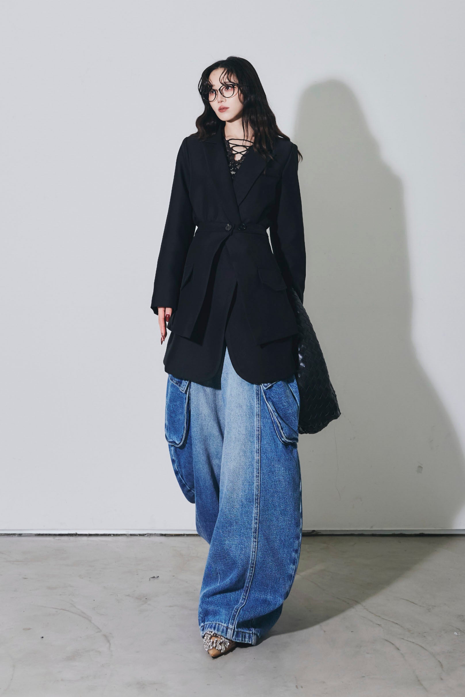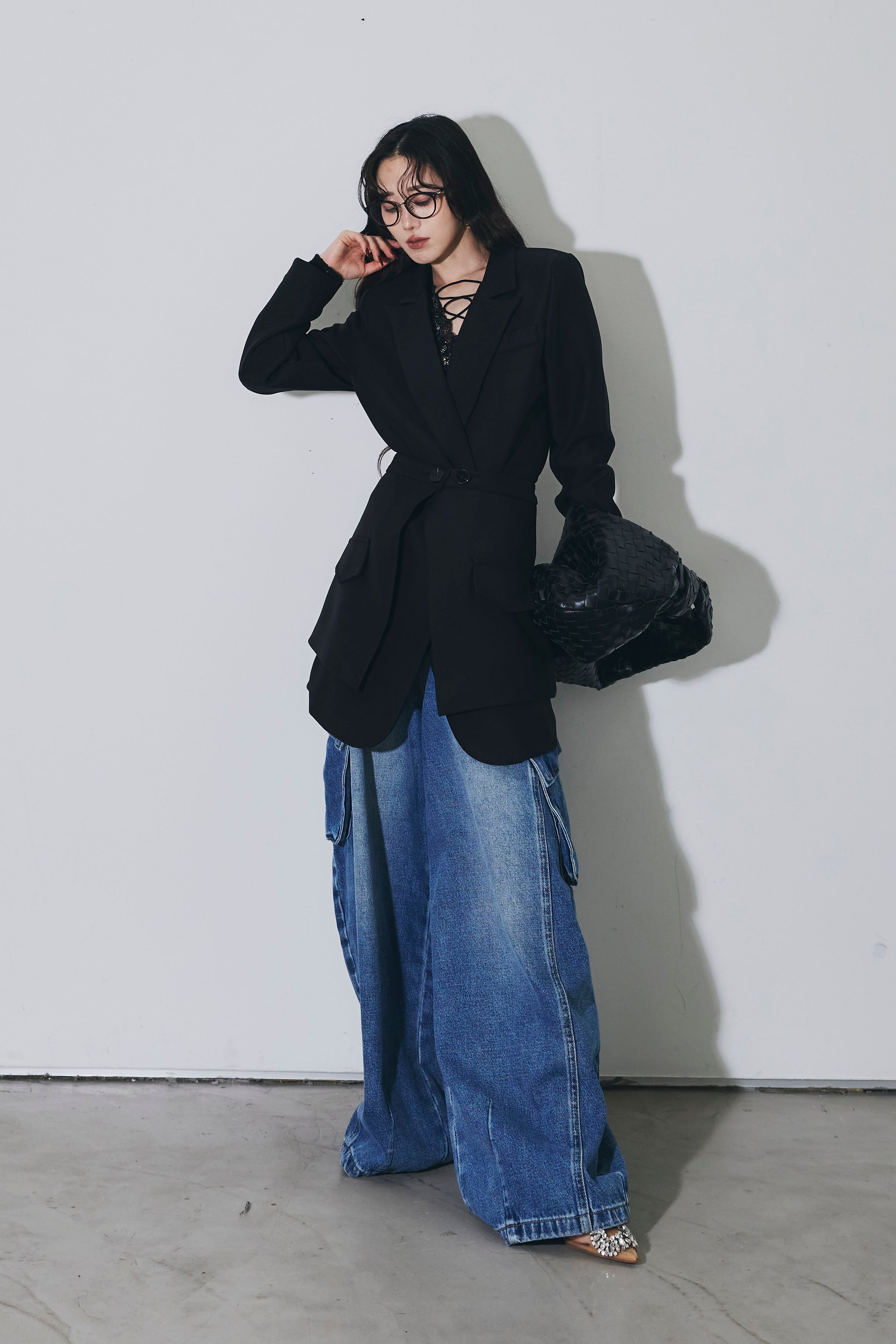 ご注文前に必ずページ下部「お届け期間」をご確認くださいませ。ウエストをマークするラップデザインが印象的なジャケット。程よくゆとりのあるシルエットに、共布ベルトでメリハリをプラスし、女性らしいラインを演出します。シャープなテーラードカラーがきちんと感を与えつつ、こなれた雰囲気に。羽織るだけでスタイリングを格上げしてくれる主役アウターです。
