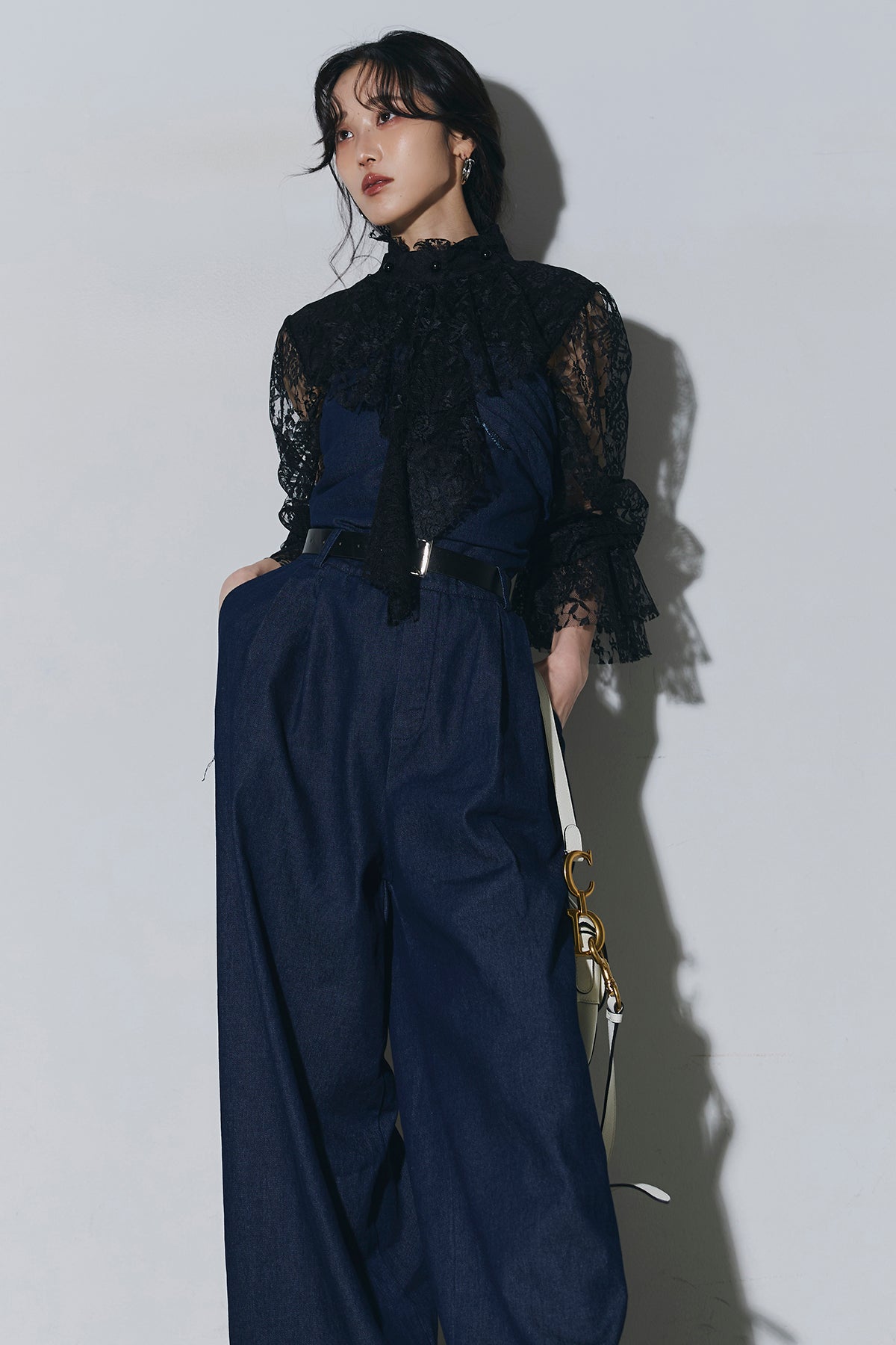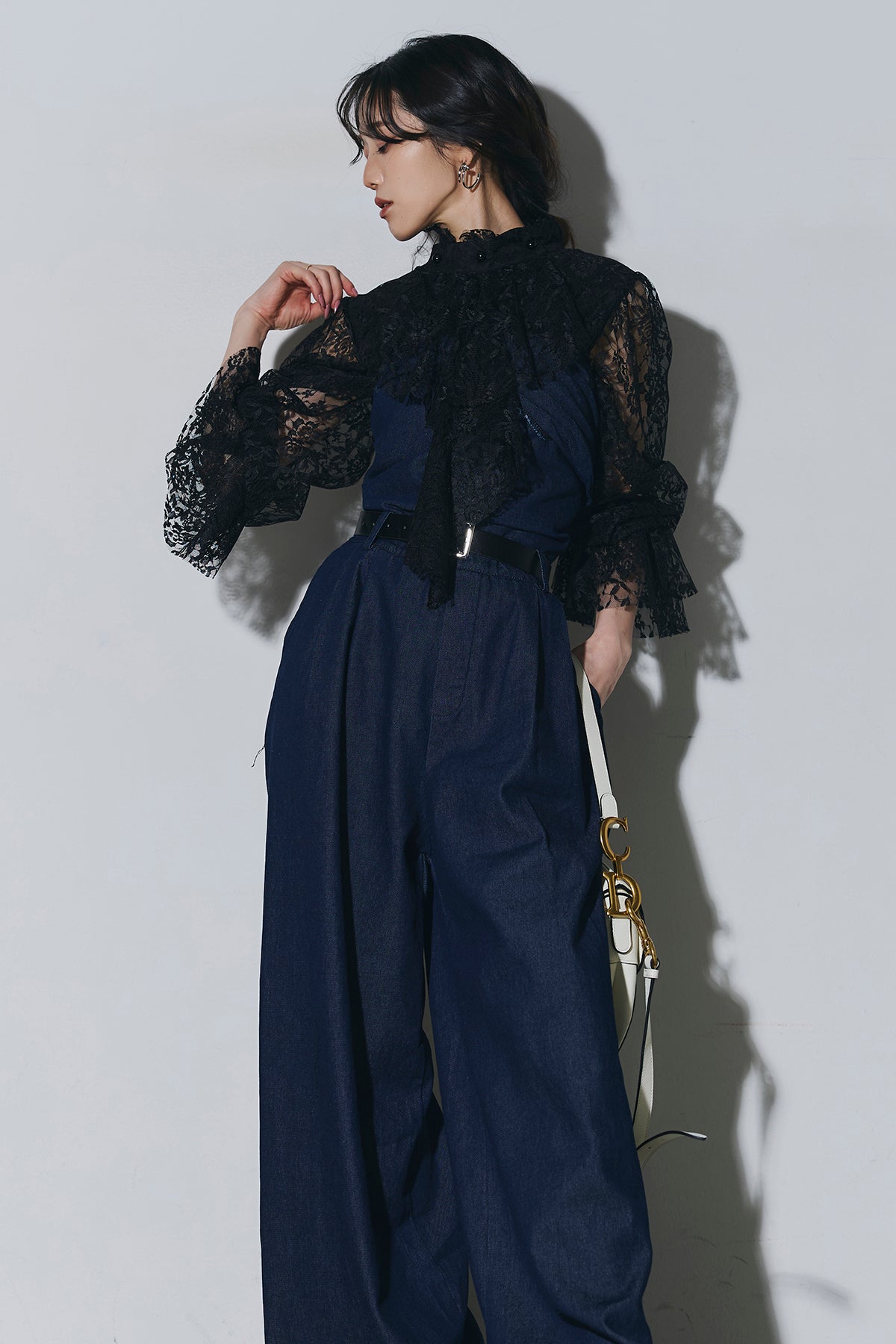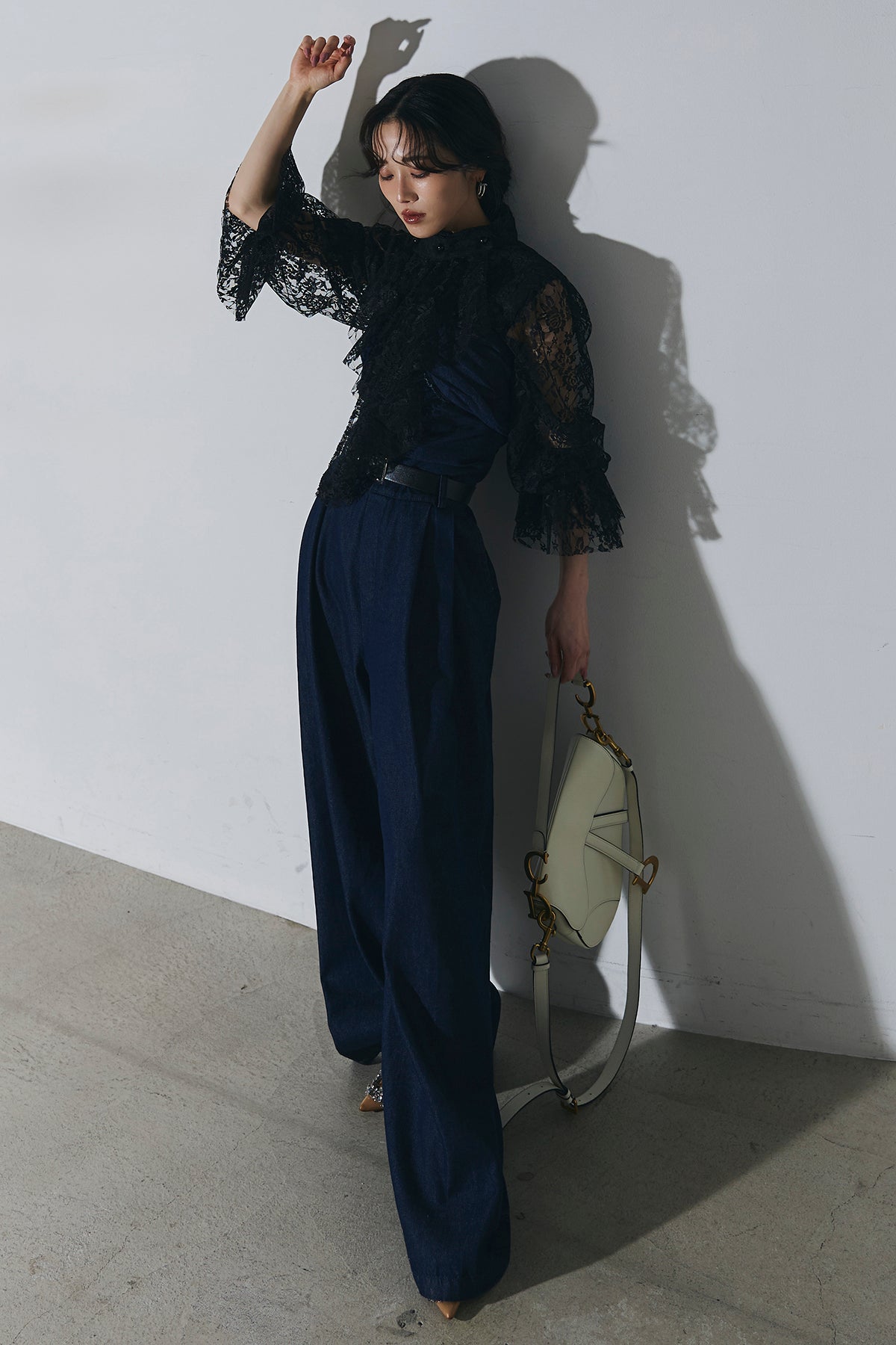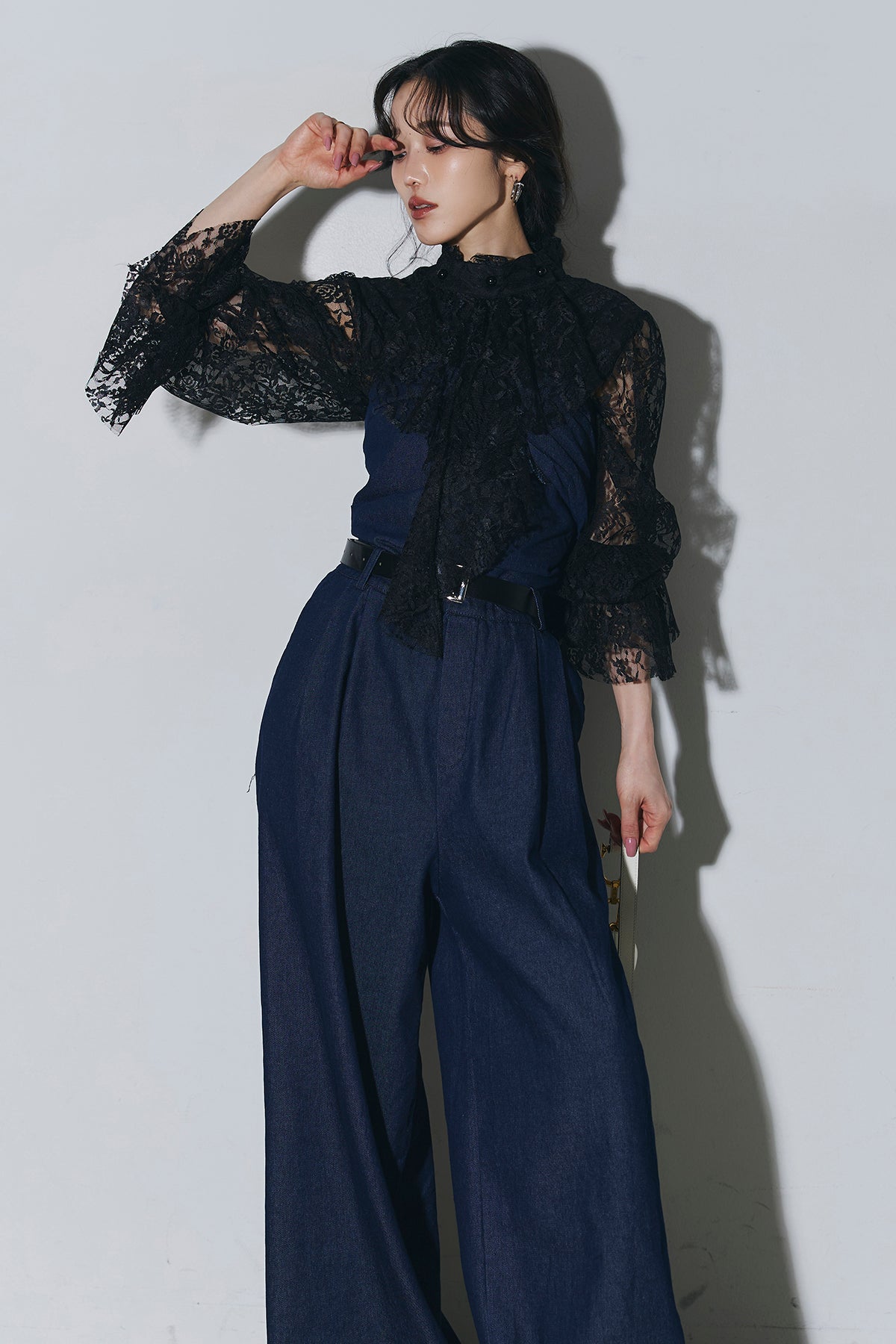 ご注文前に必ずページ下部「お届け期間」をご確認くださいませ。繊細なレースが印象的なブラウス。透け感のあるスリーブと立体感のあるフリルデザインが、上品で女性らしい雰囲気を演出します。程よい存在感があり、シンプルなボトムスと合わせるだけで洗練されたスタイリングに。きれいめからモードまで幅広く活躍する一着です。)