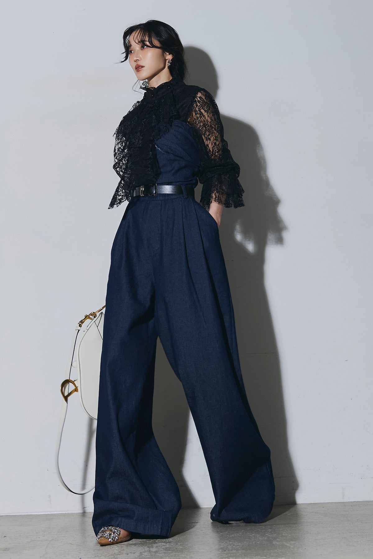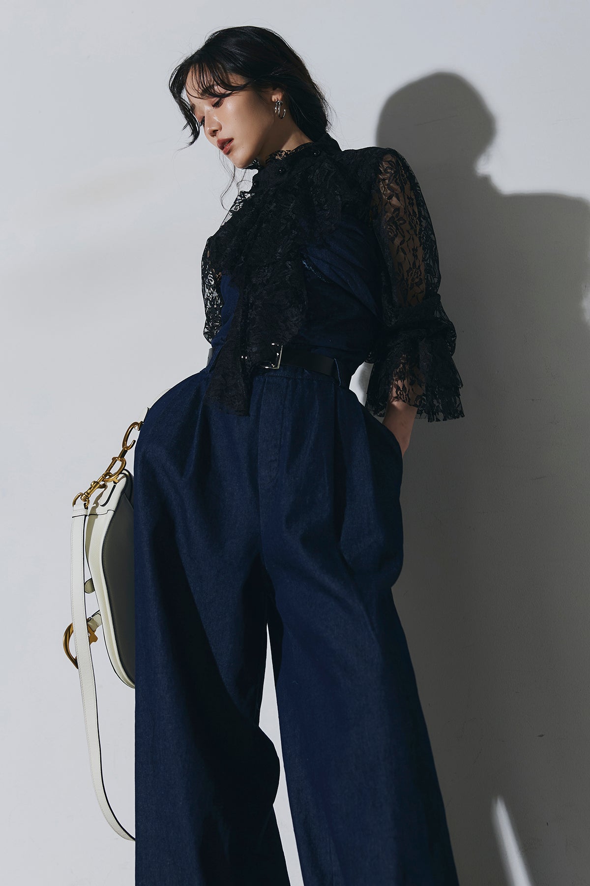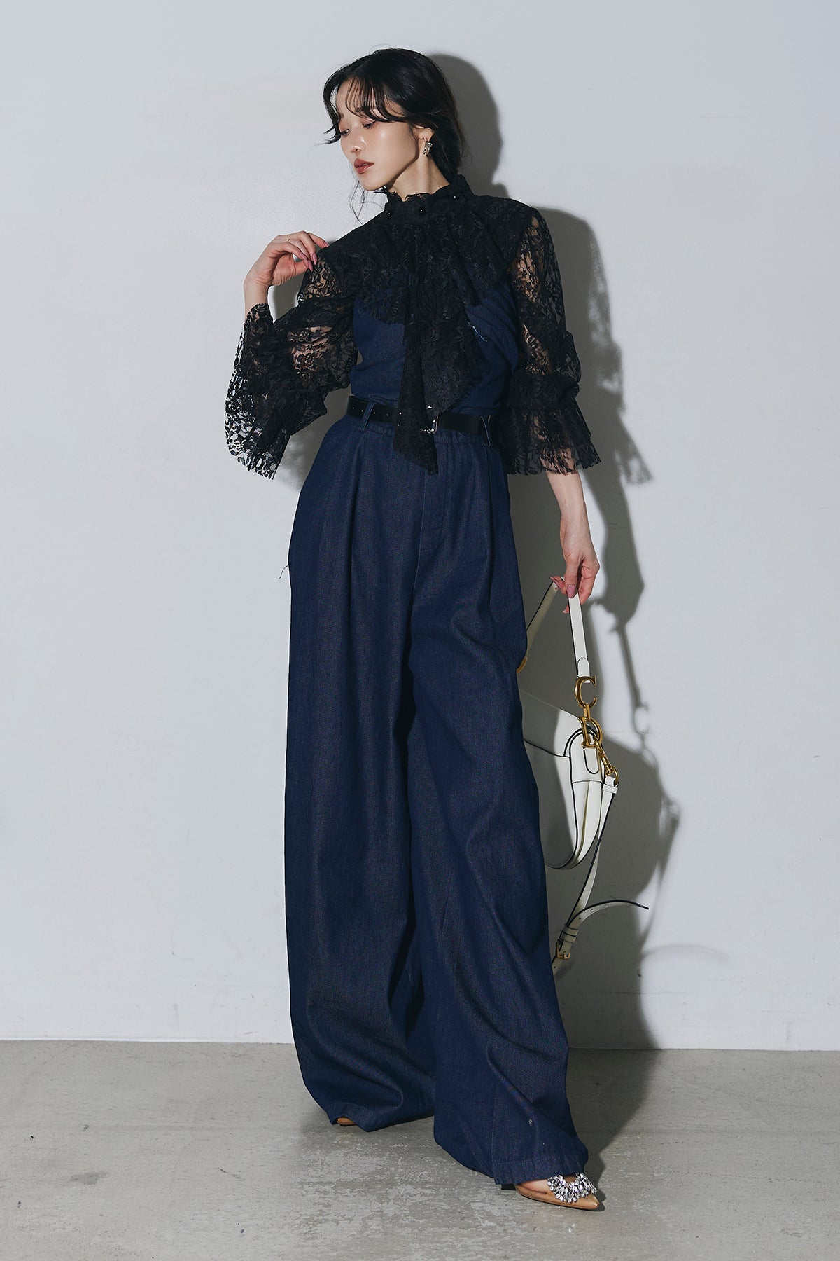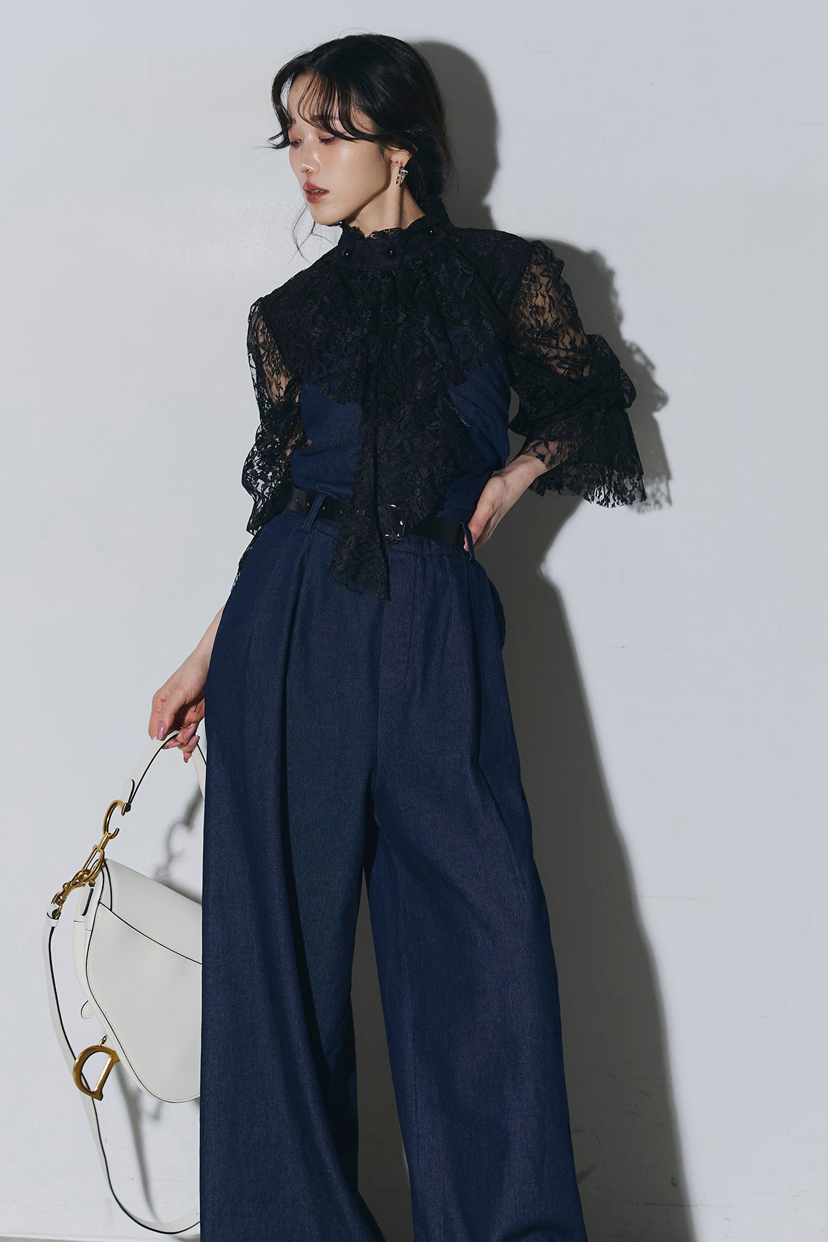 ご注文前に必ずページ下部「お届け期間」をご確認くださいませ。繊細なレースが印象的なブラウス。透け感のあるスリーブと立体感のあるフリルデザインが、上品で女性らしい雰囲気を演出します。程よい存在感があり、シンプルなボトムスと合わせるだけで洗練されたスタイリングに。きれいめからモードまで幅広く活躍する一着です。)