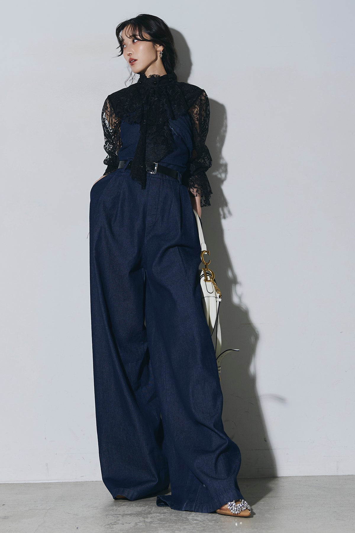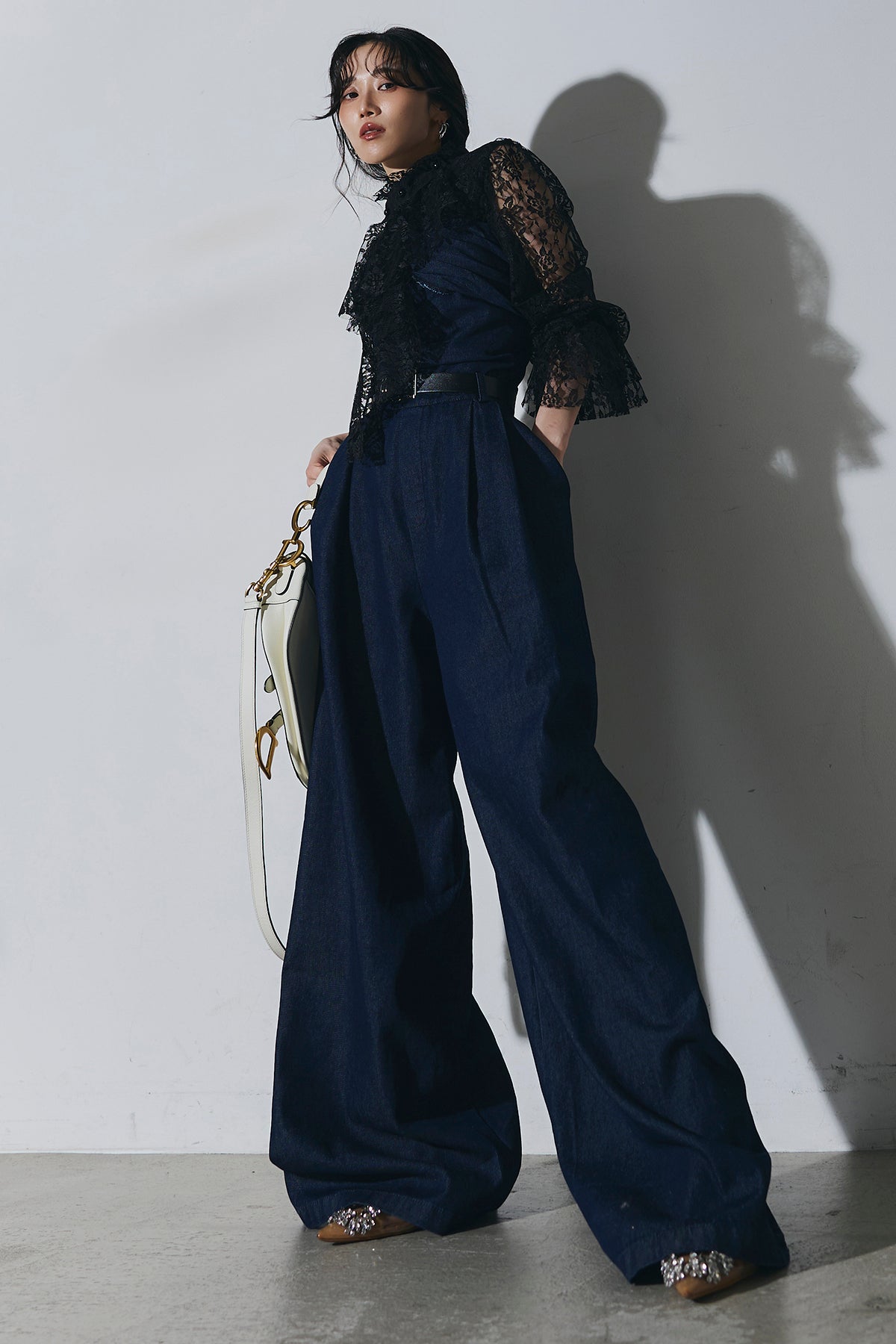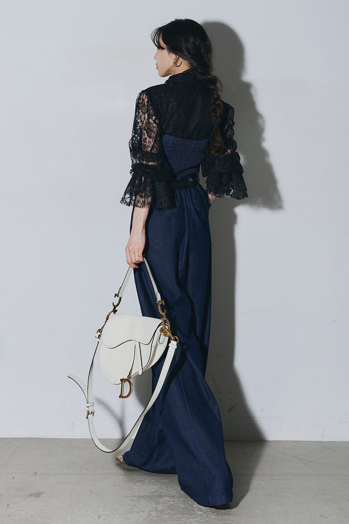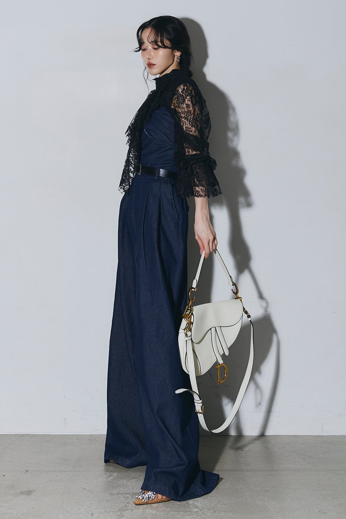 ご注文前に必ずページ下部「お届け期間」をご確認くださいませ。繊細なレースが印象的なブラウス。透け感のあるスリーブと立体感のあるフリルデザインが、上品で女性らしい雰囲気を演出します。程よい存在感があり、シンプルなボトムスと合わせるだけで洗練されたスタイリングに。きれいめからモードまで幅広く活躍する一着です。)
