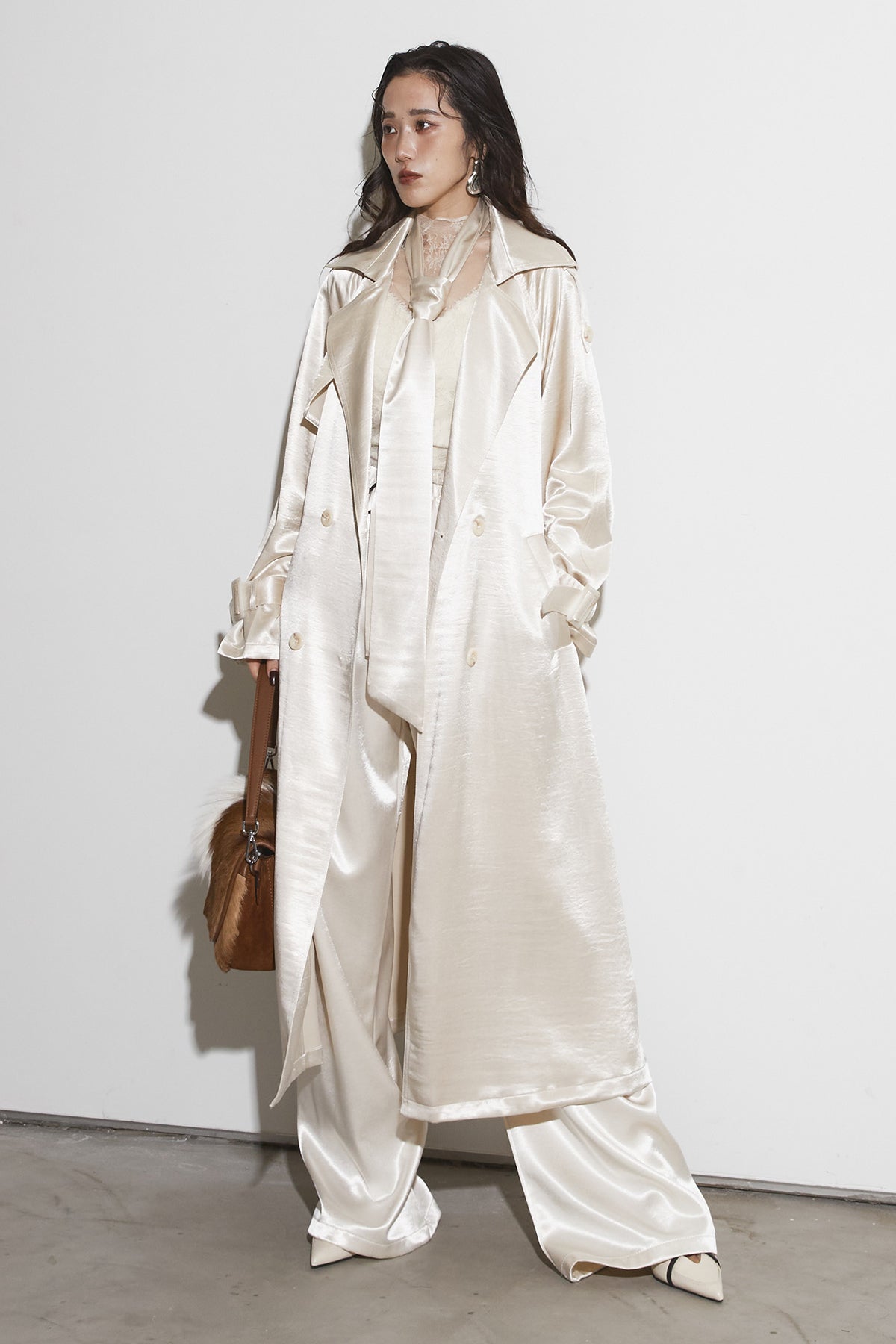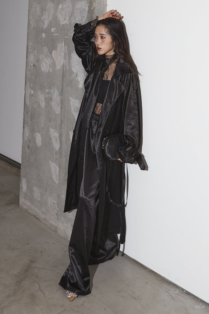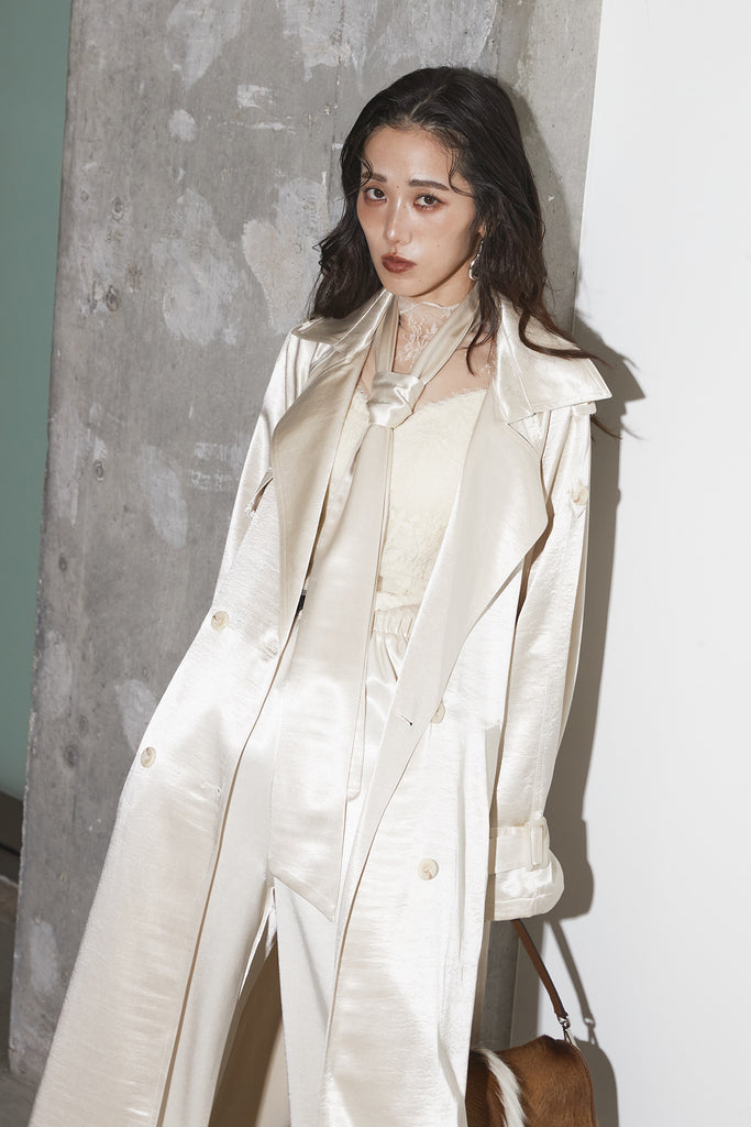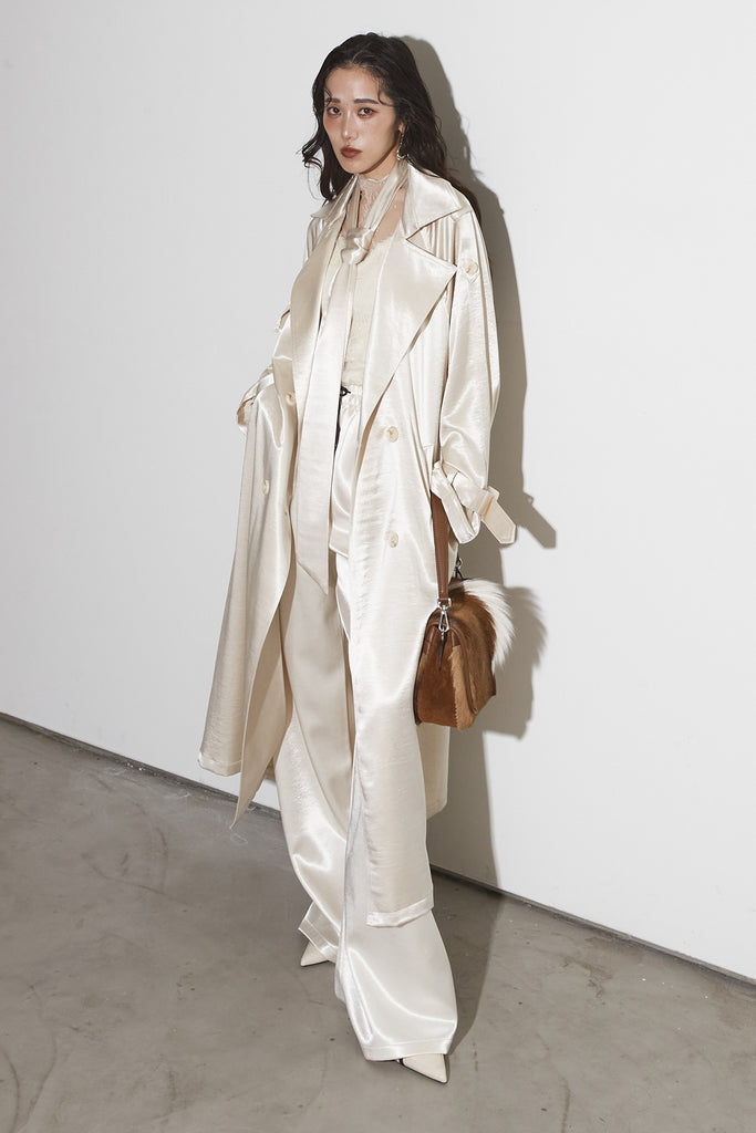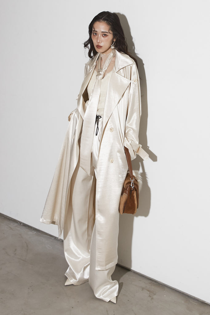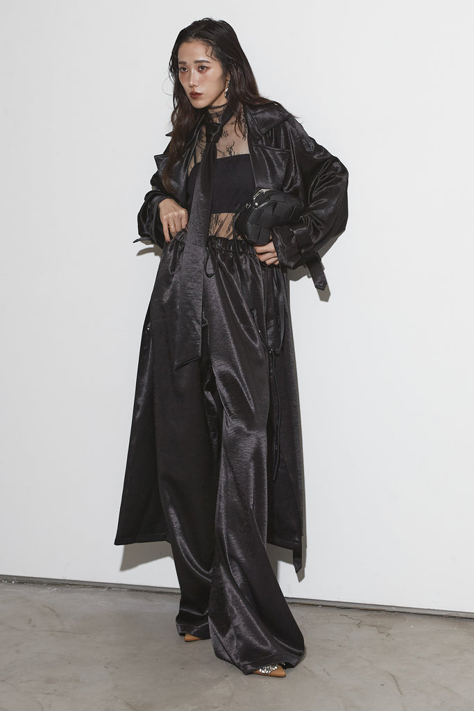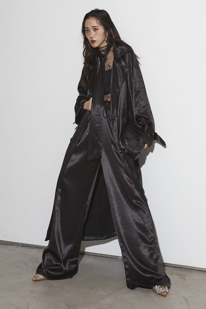 【SET】ボウタイサテントレンチコート+サテンコードパンツ