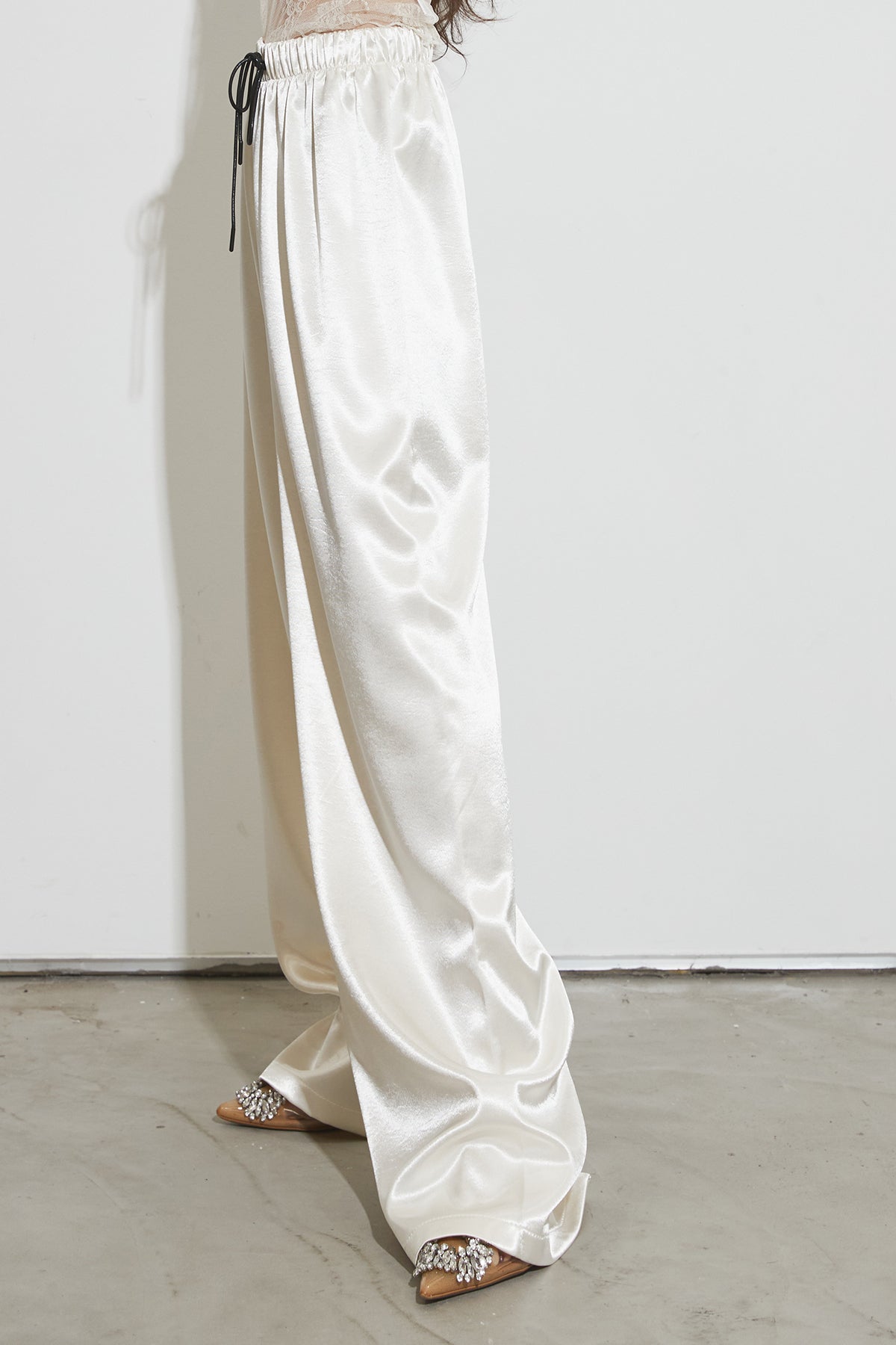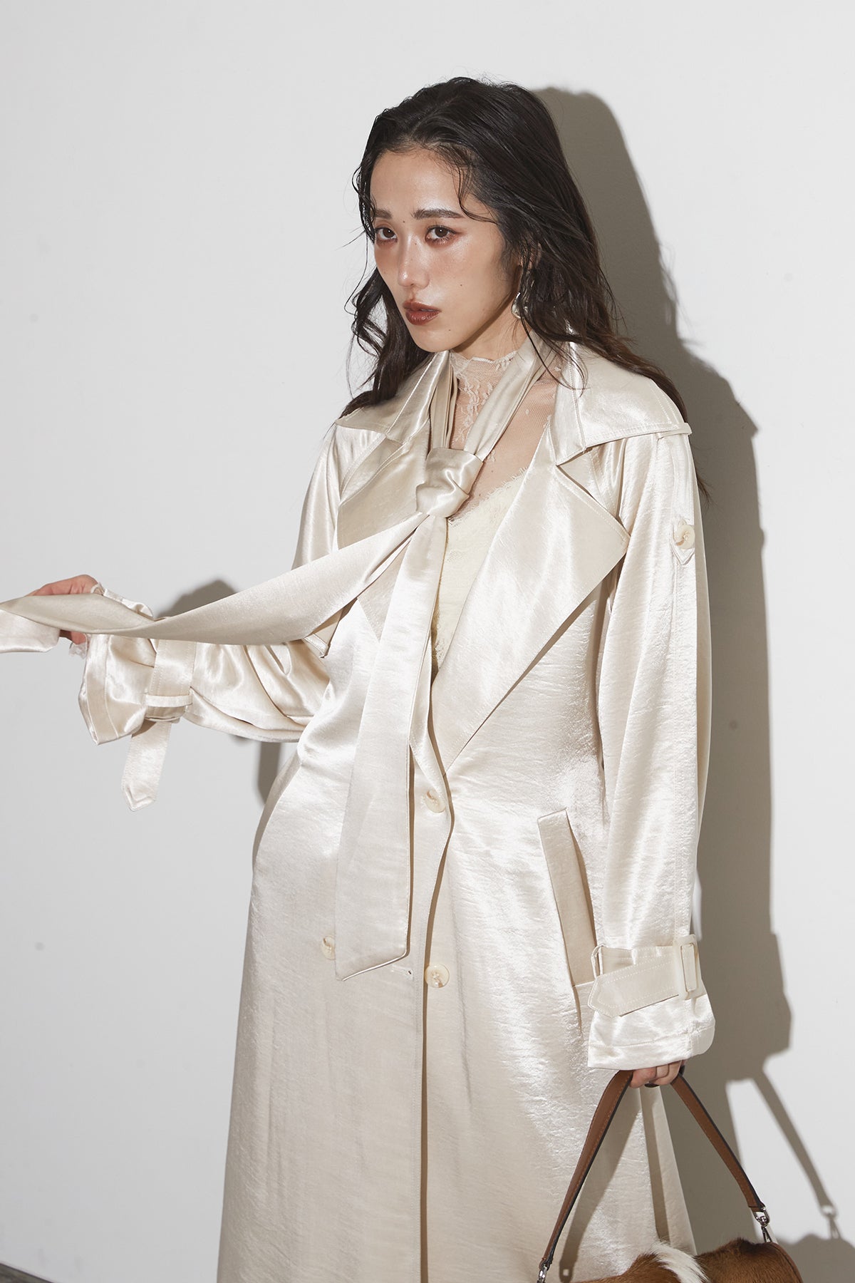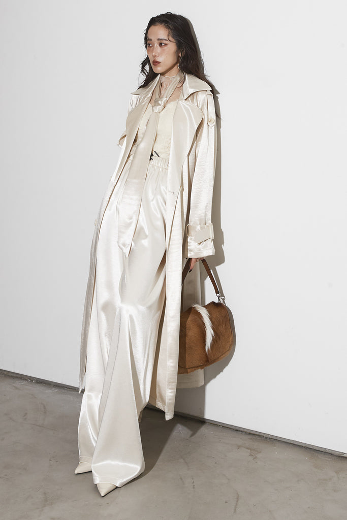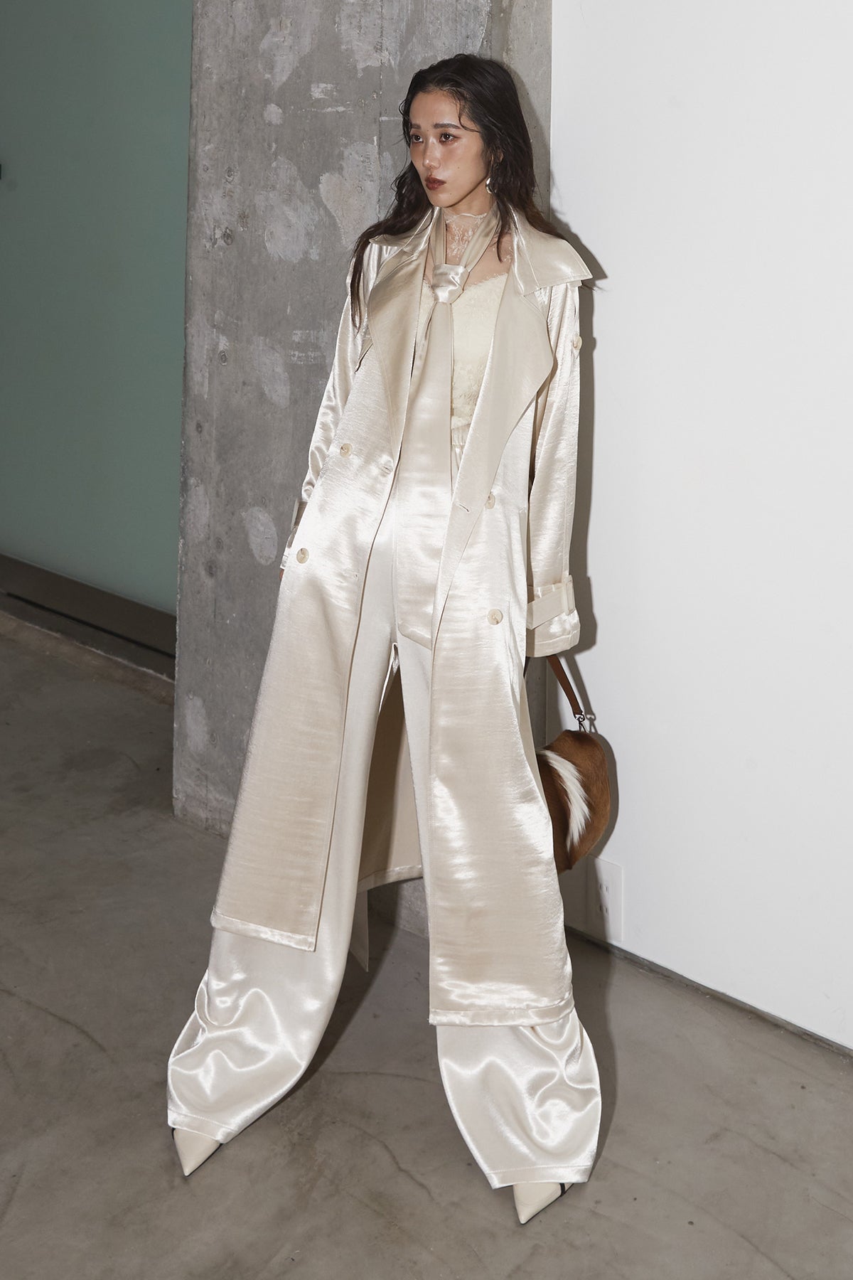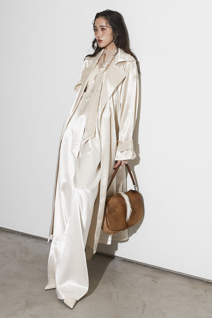 【SET】ボウタイサテントレンチコート+サテンコードパンツ