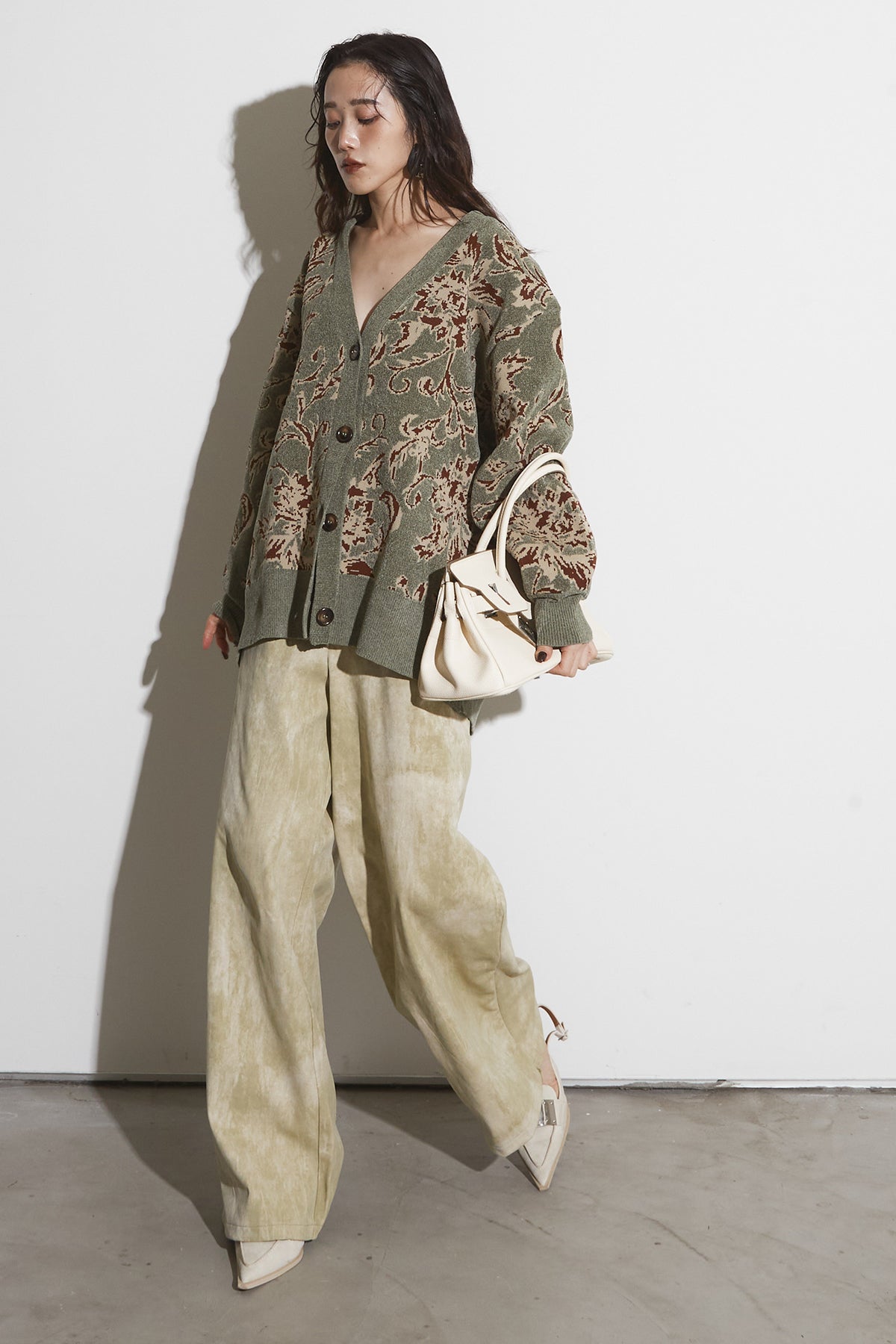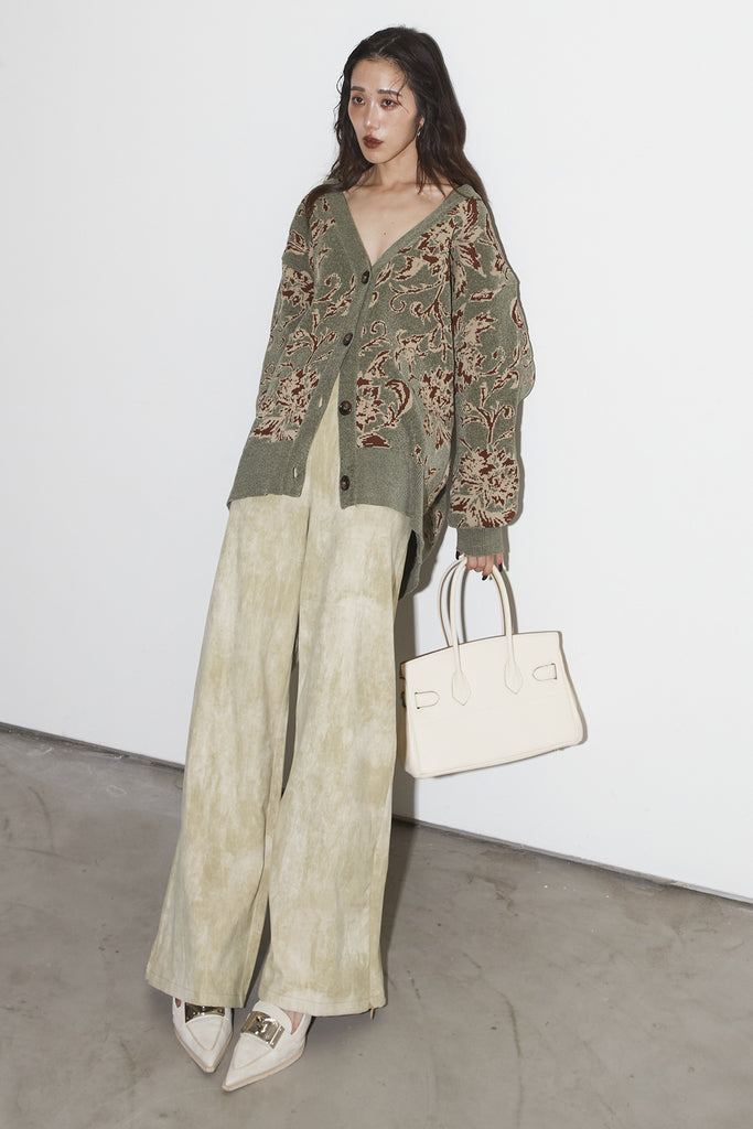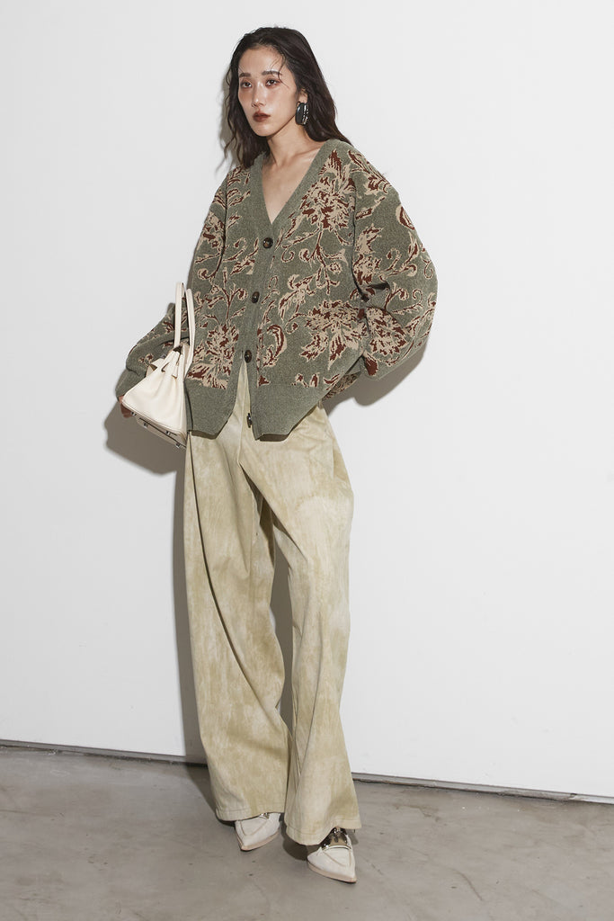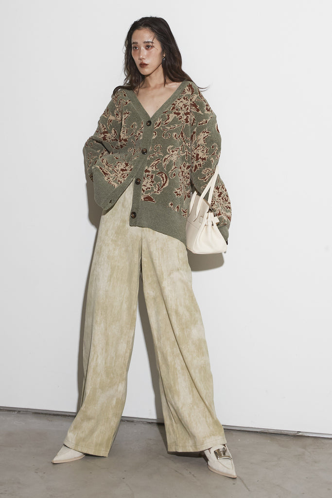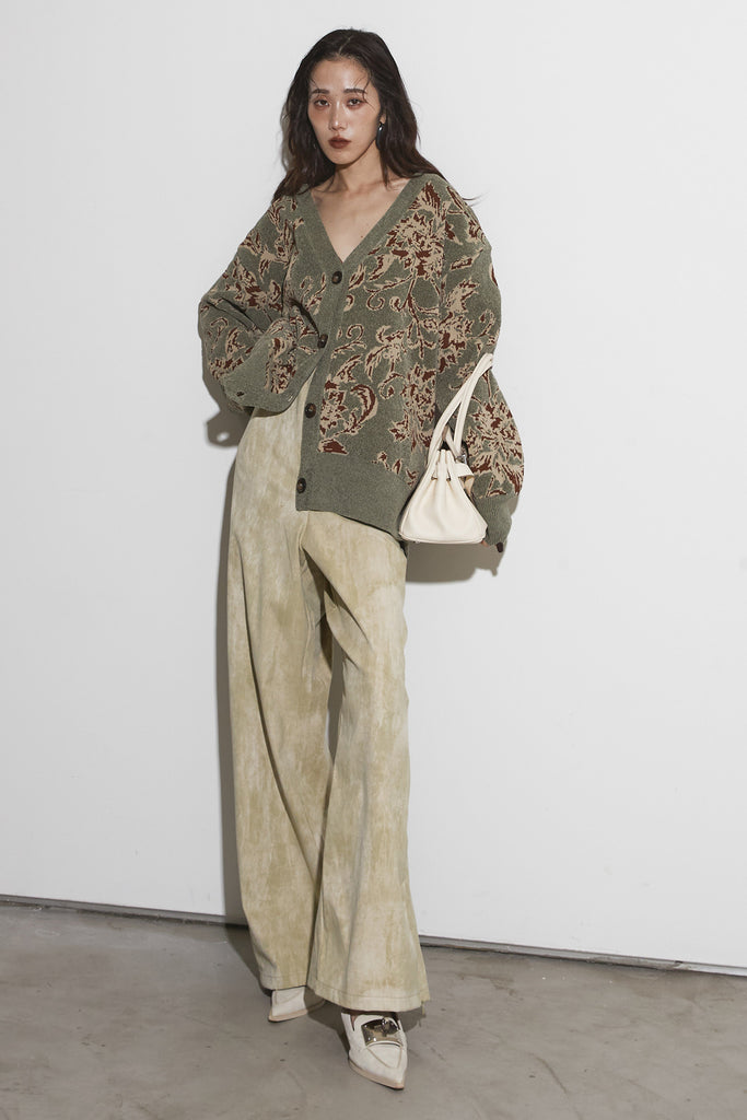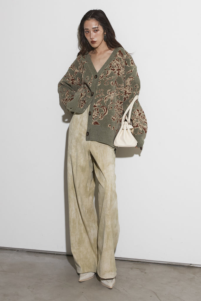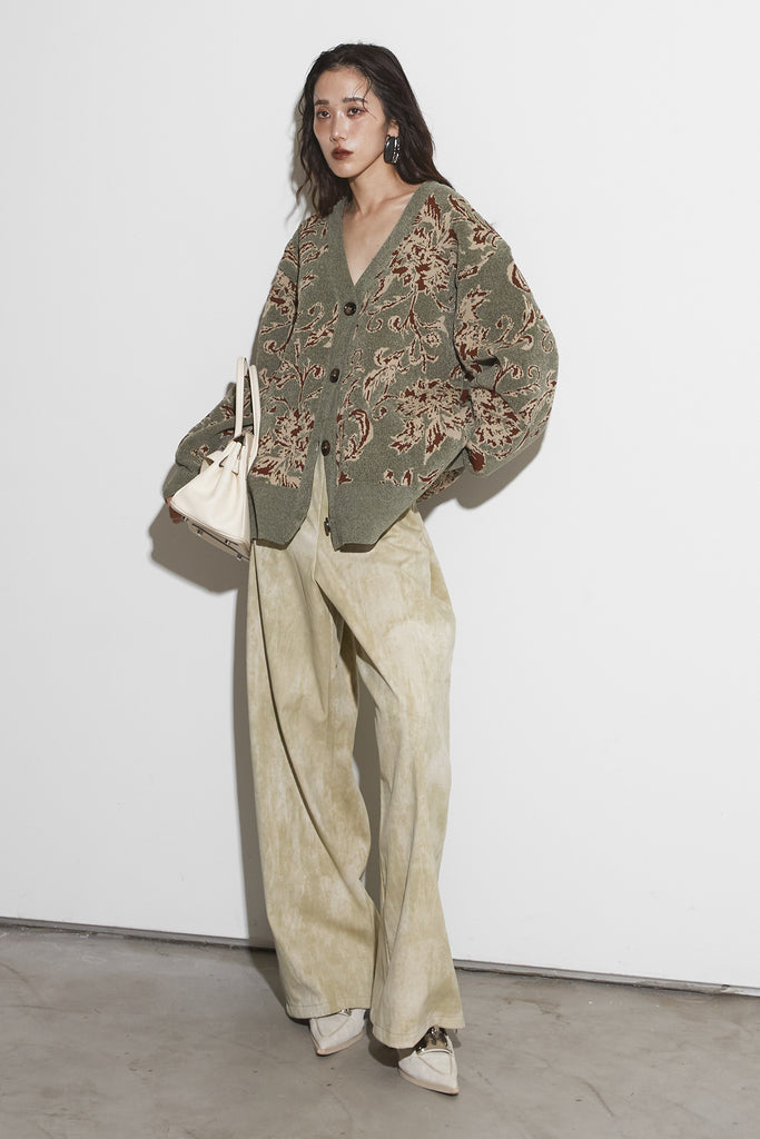 【SET】ボタニカルジャガードカーデ+スエードワイドパンツ