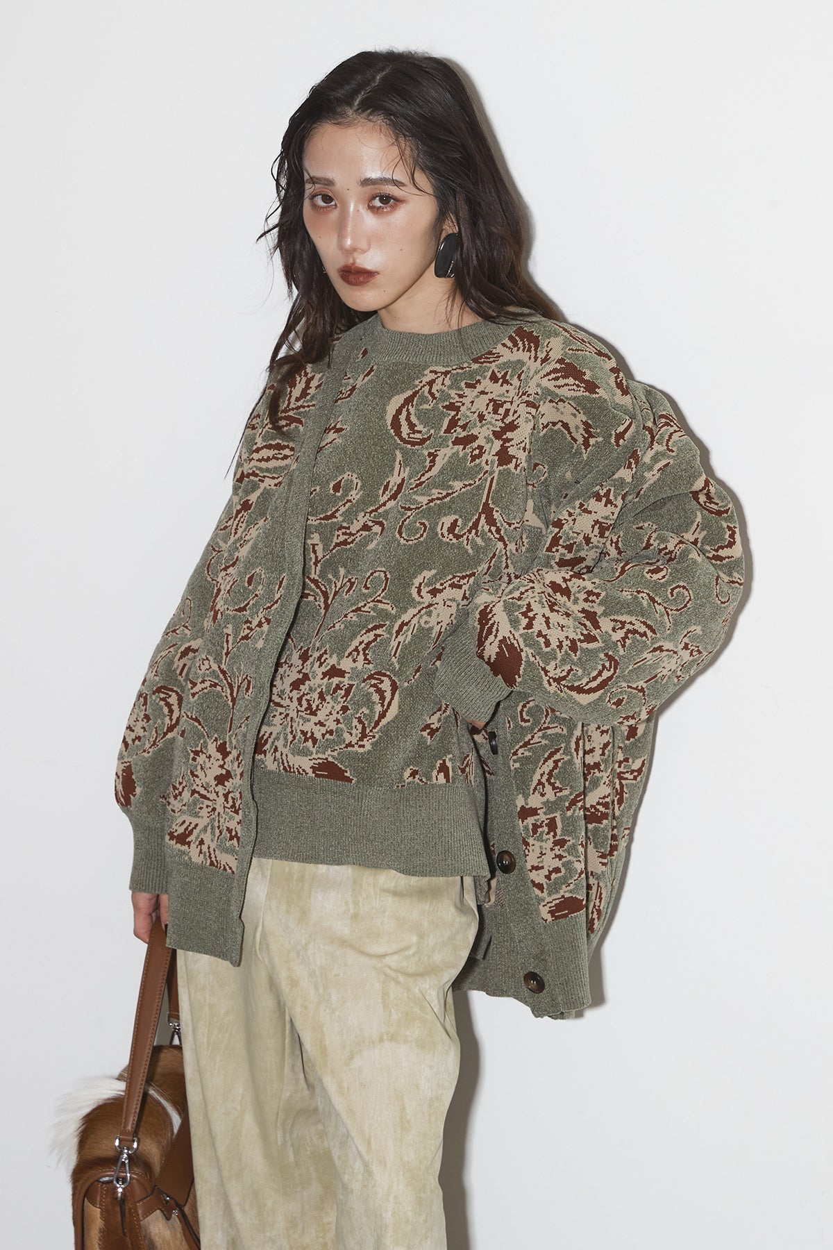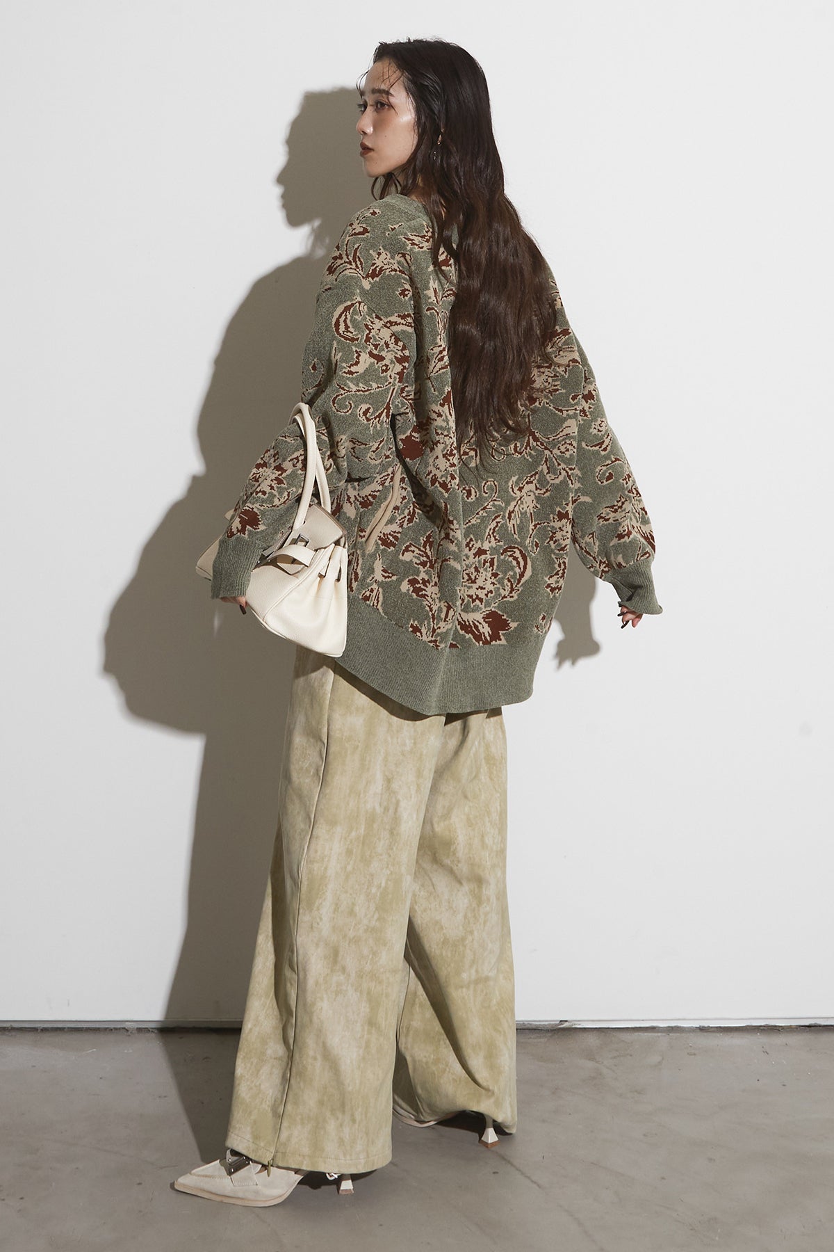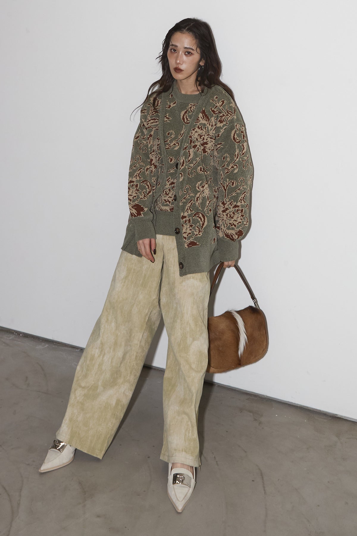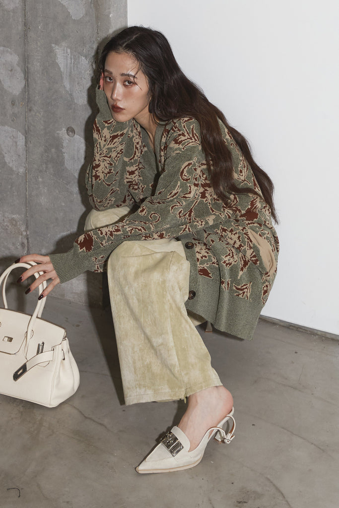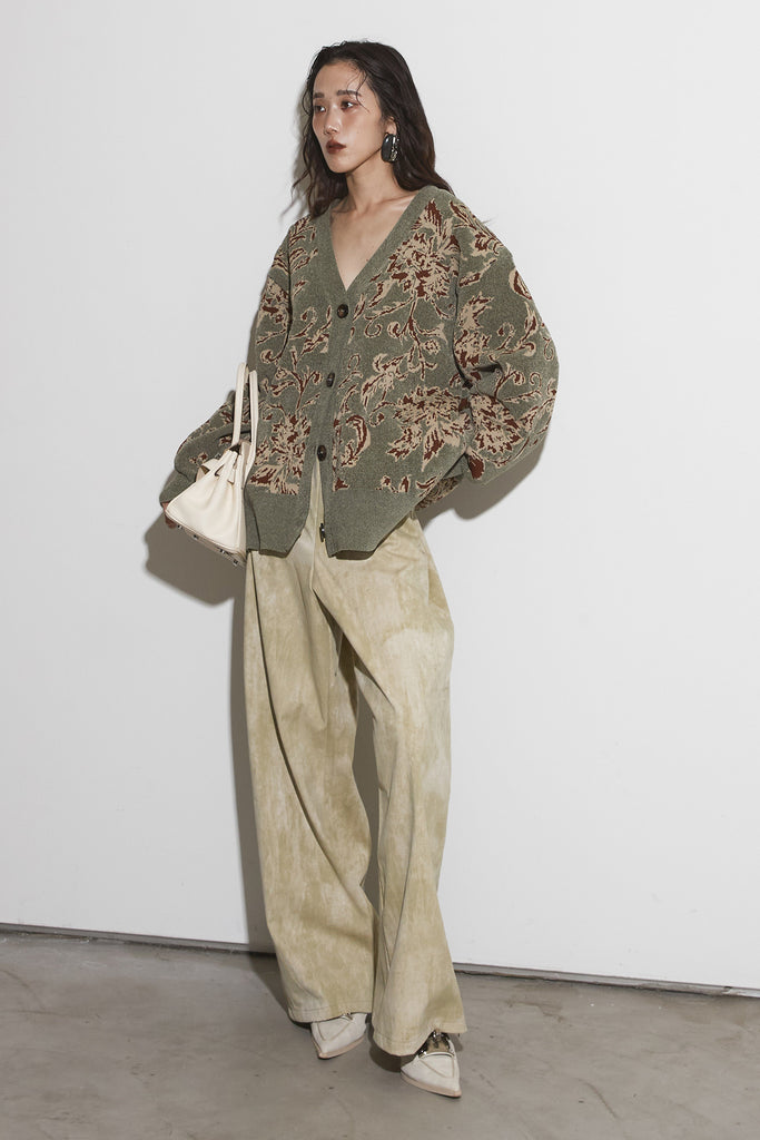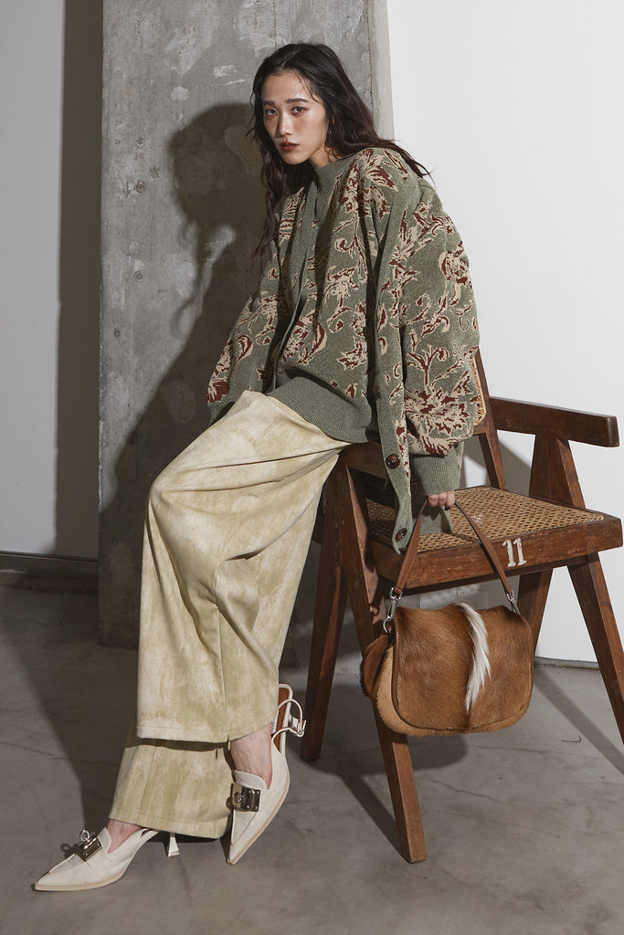 【SET】ボタニカルジャガードカーデ+スエードワイドパンツ