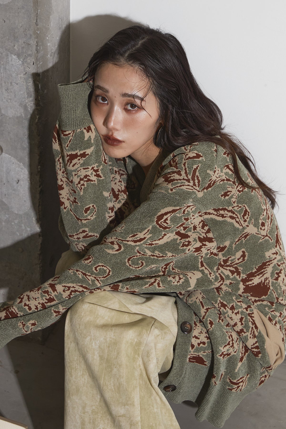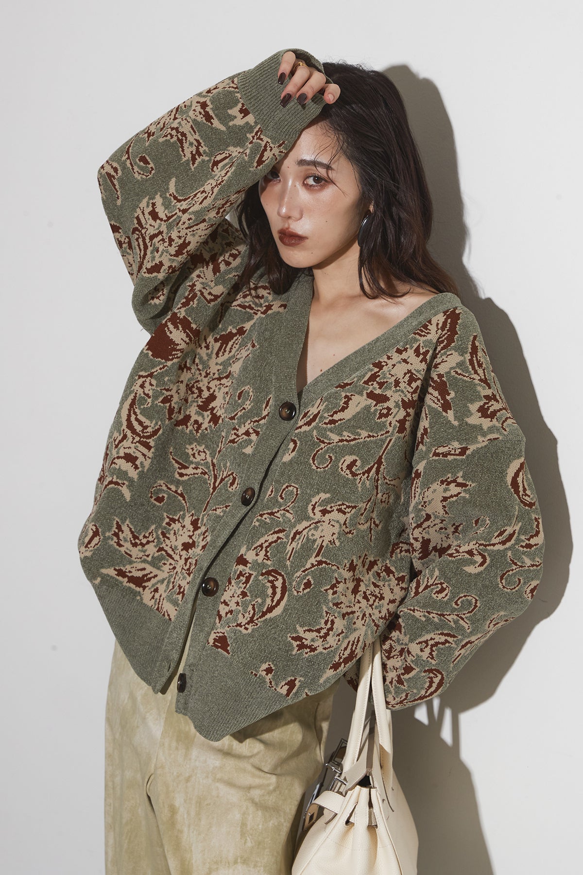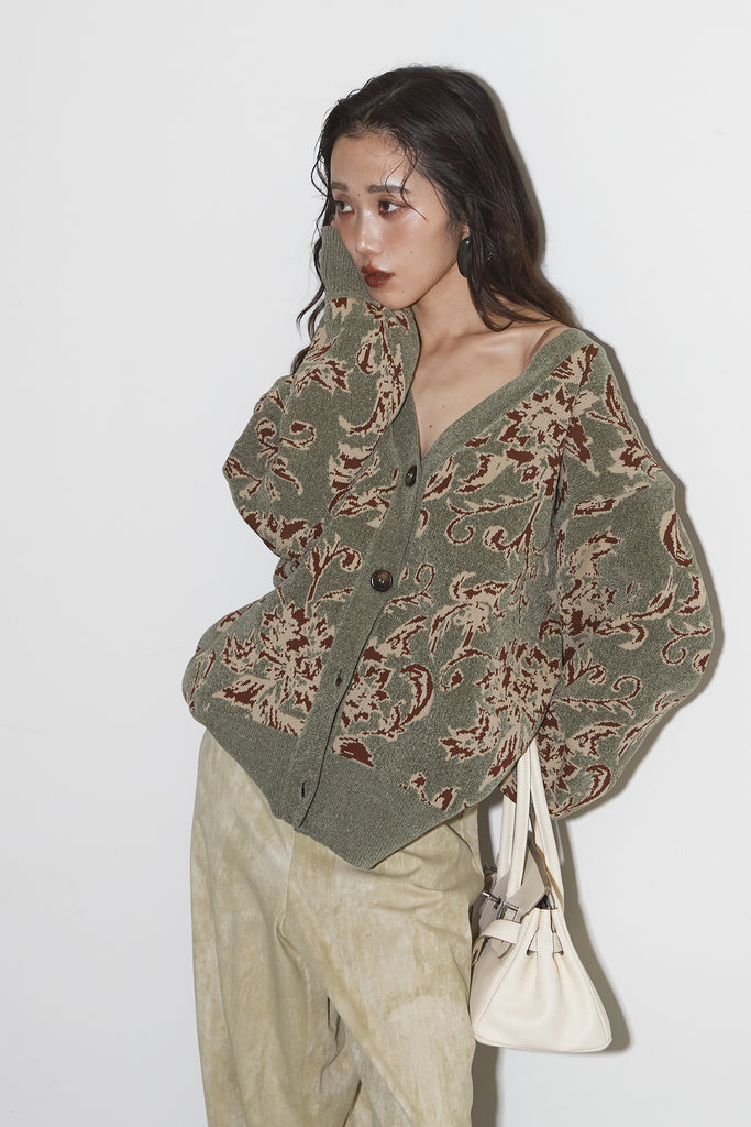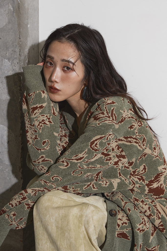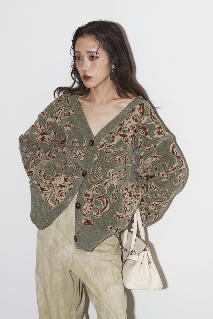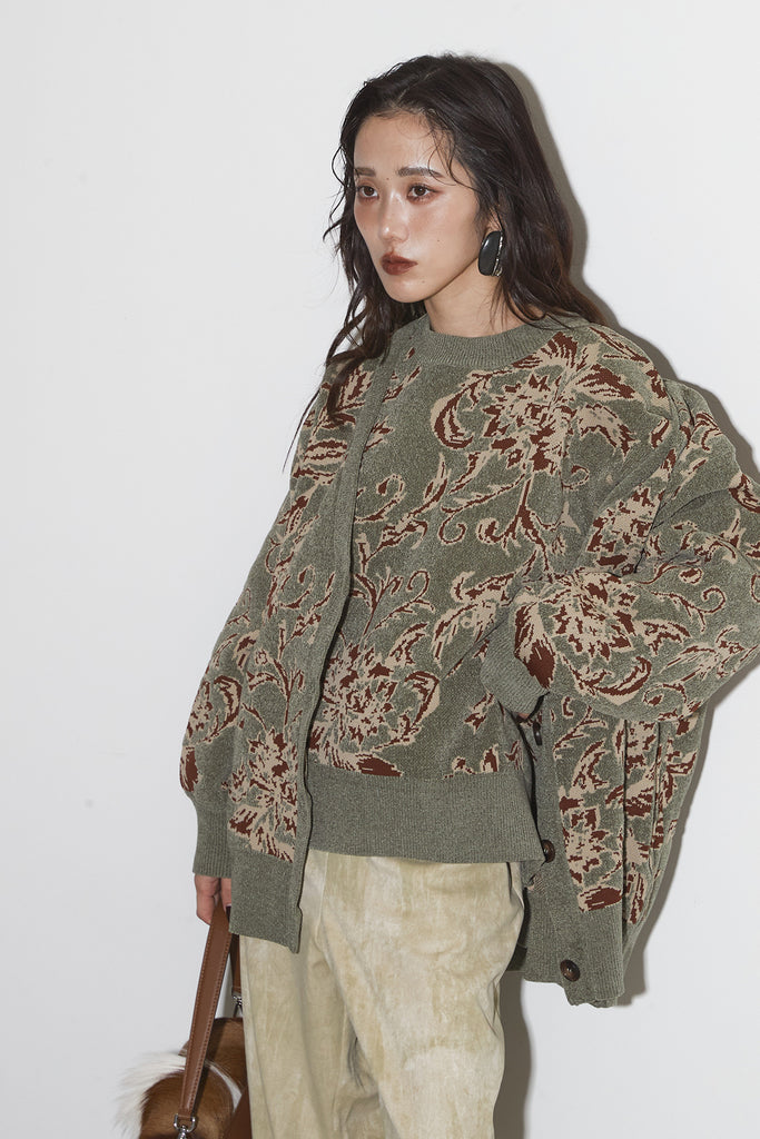 【SET】ボタニカルジャガードカーデ+スエードワイドパンツ