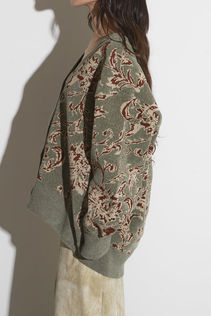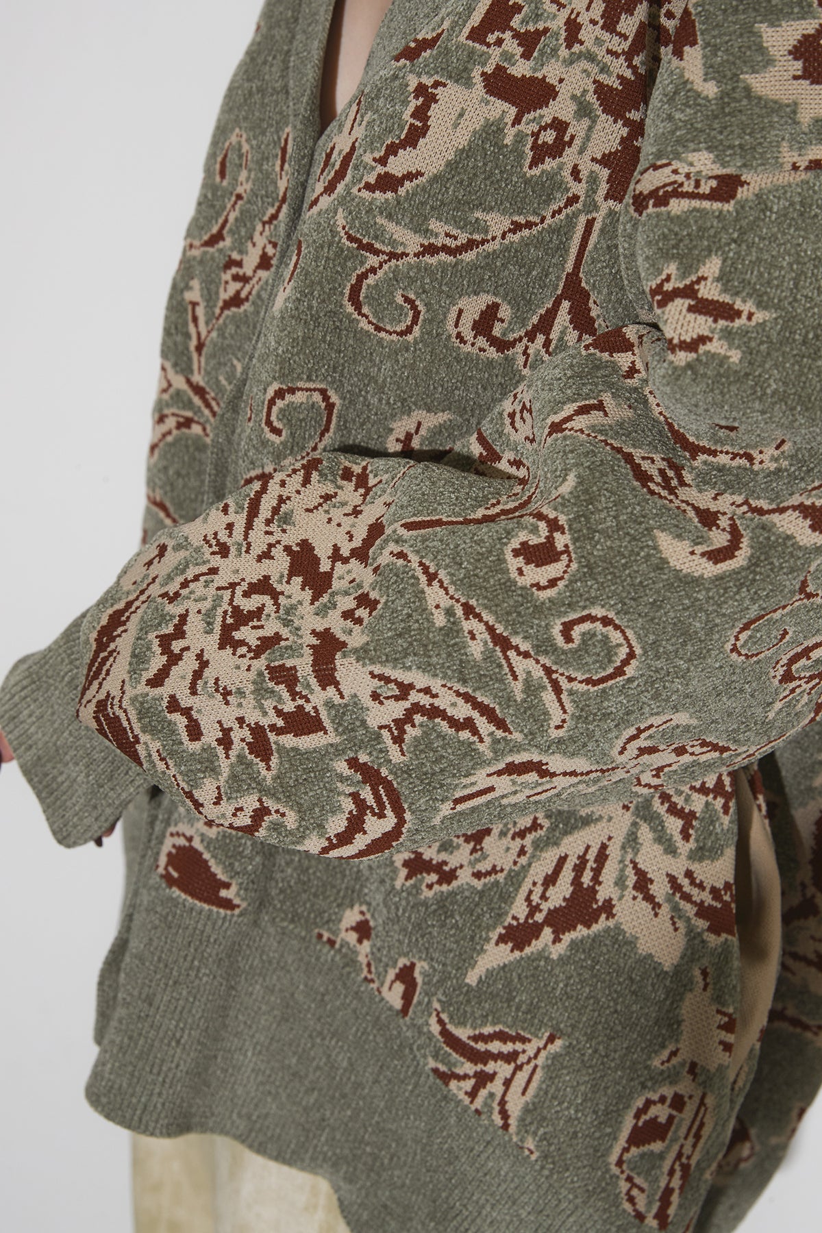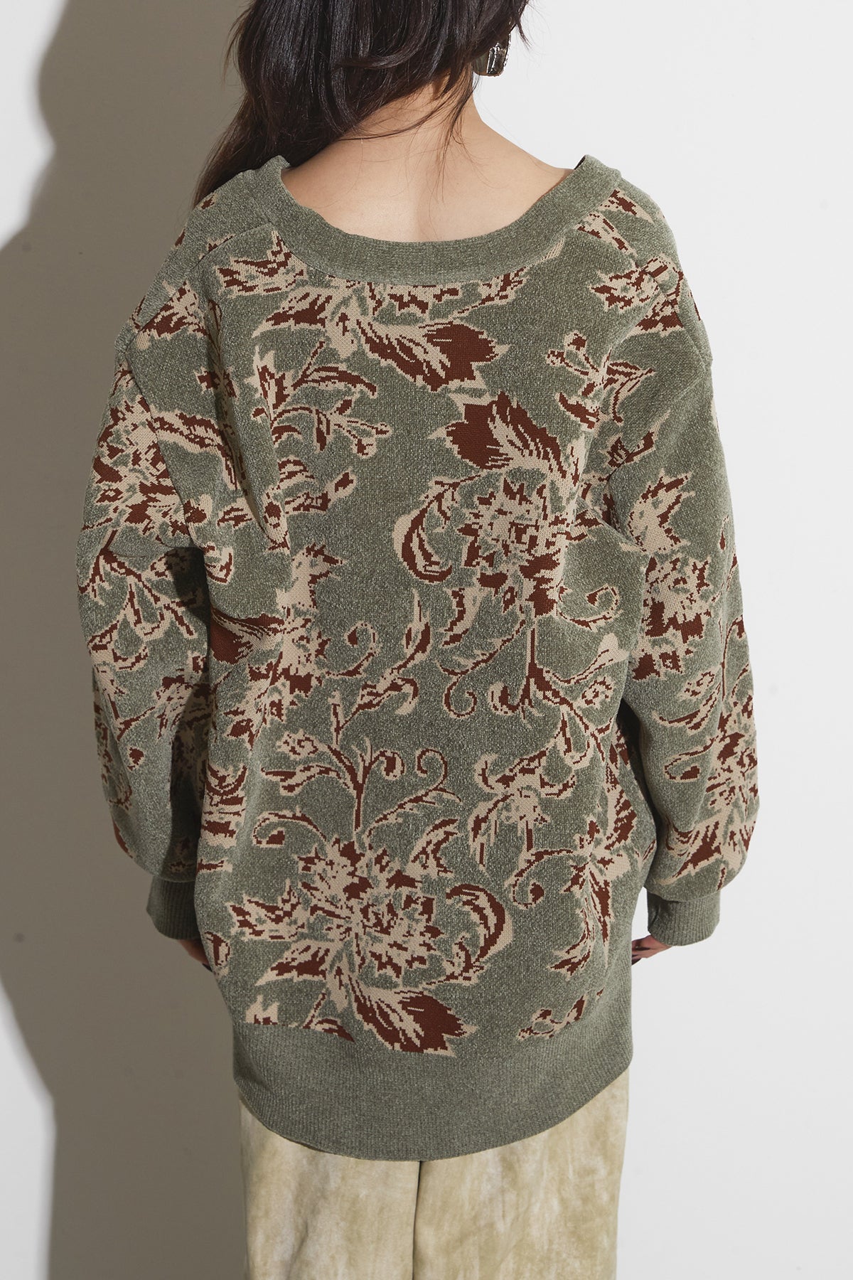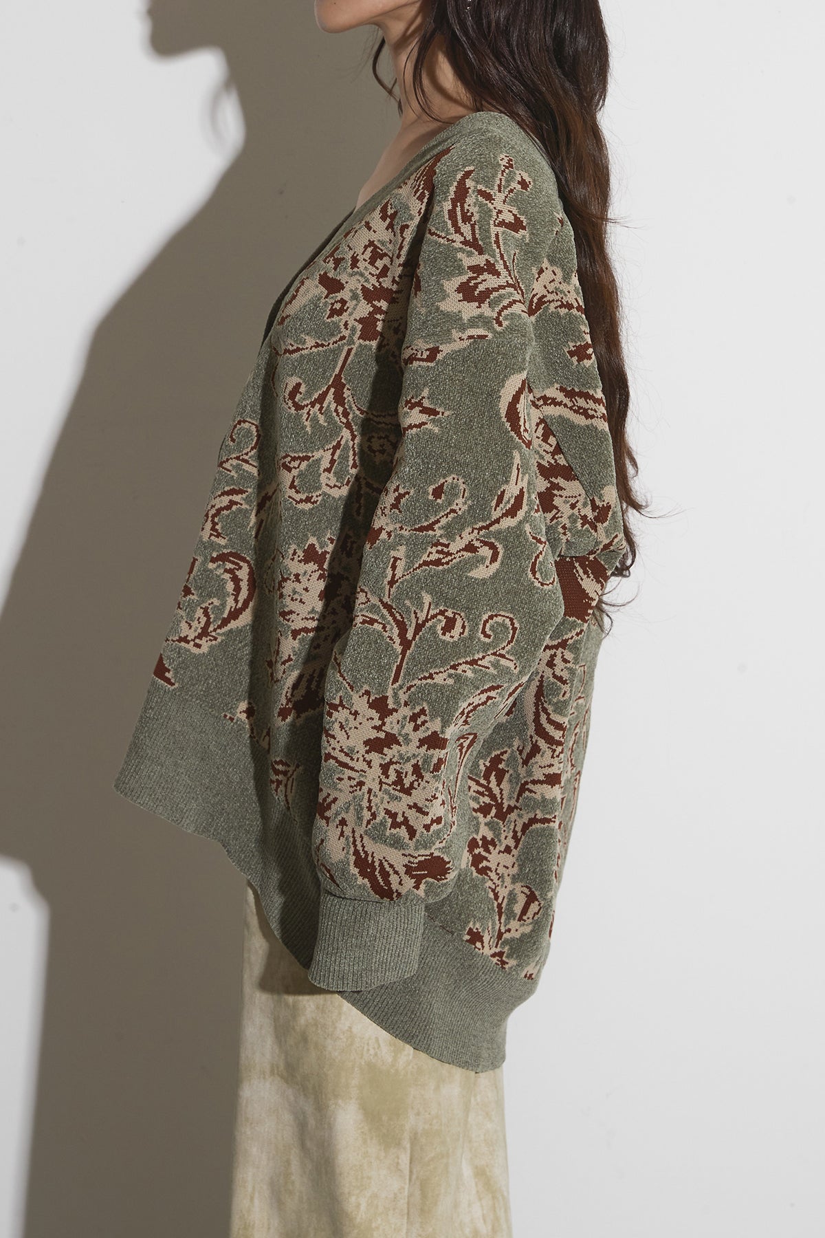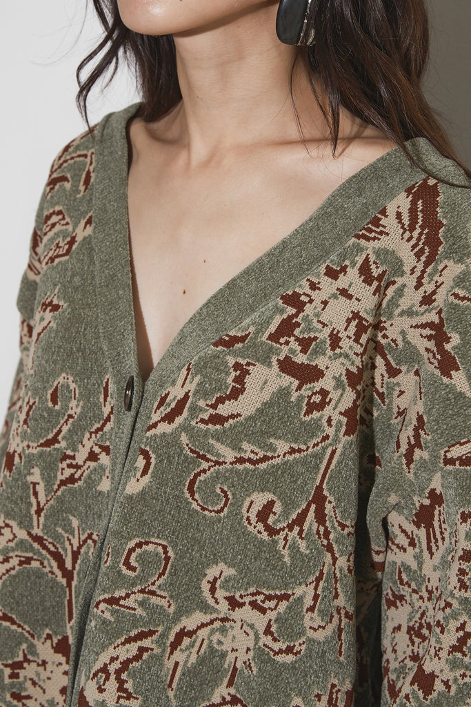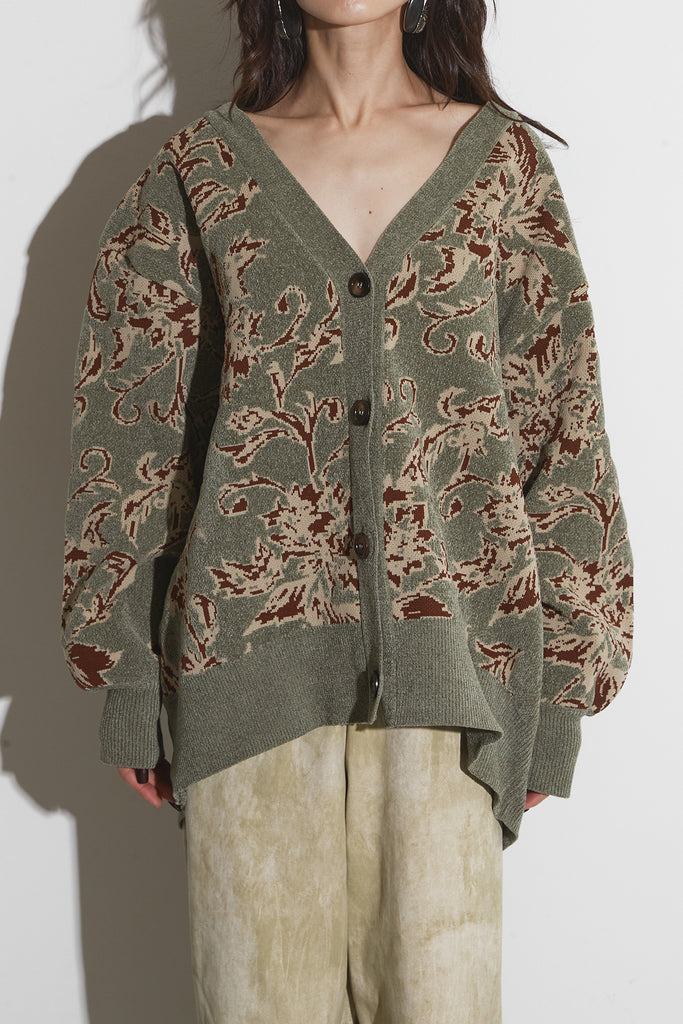 【SET】ボタニカルジャガードカーデ+スエードワイドパンツ