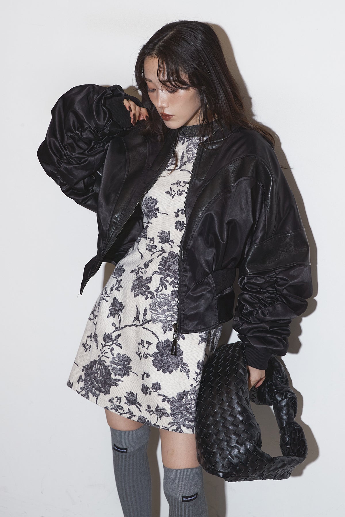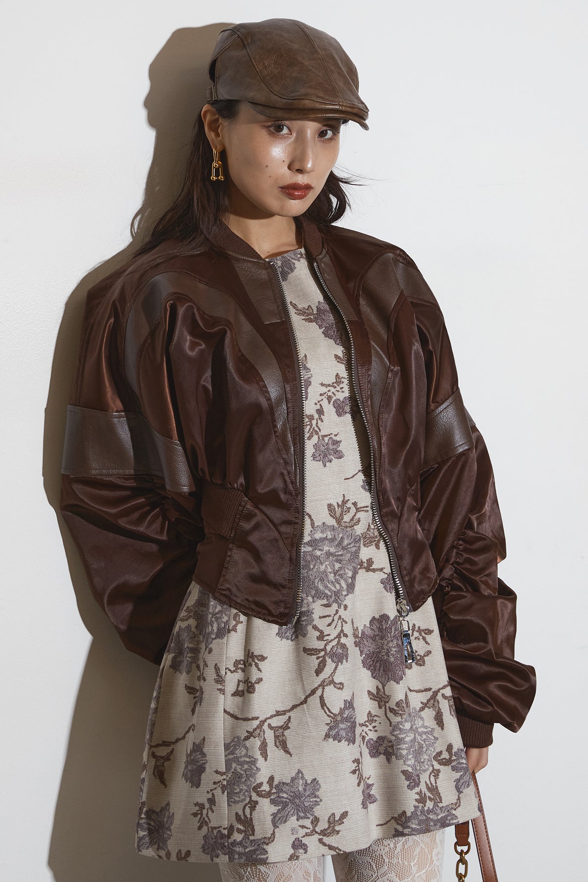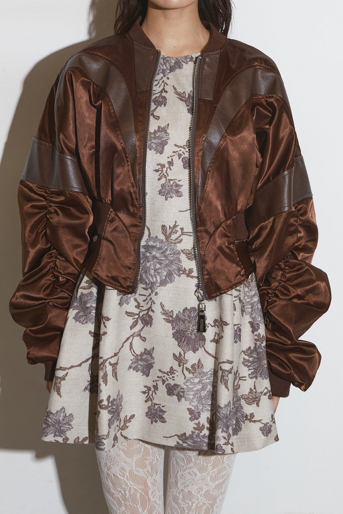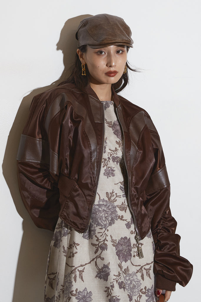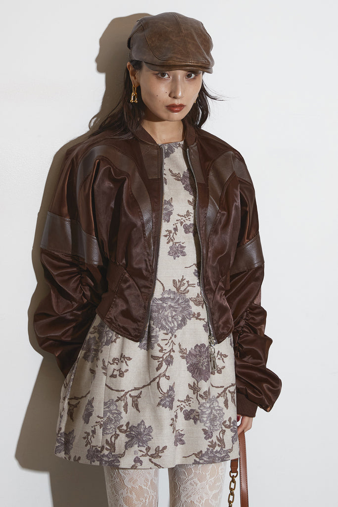 【SET】ボタニカルミニワンピース+サテンクロップドブルゾン