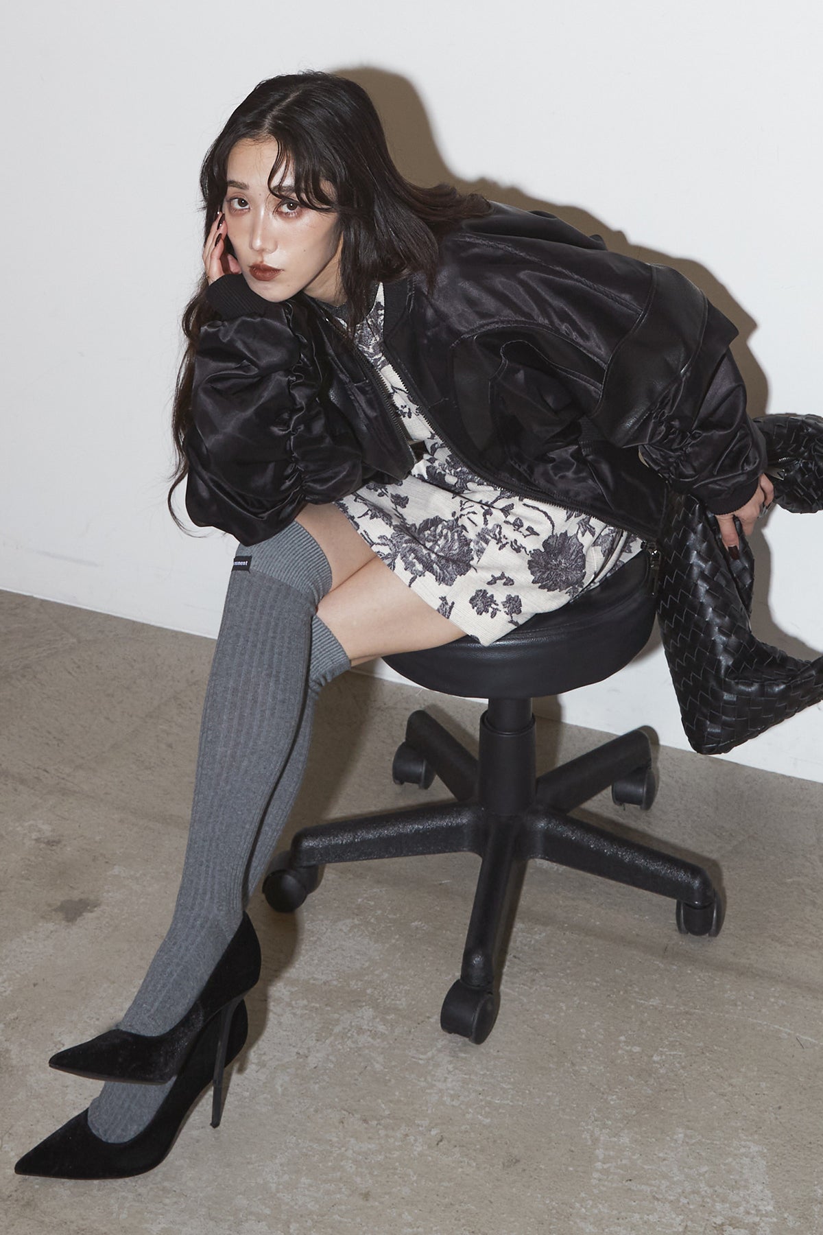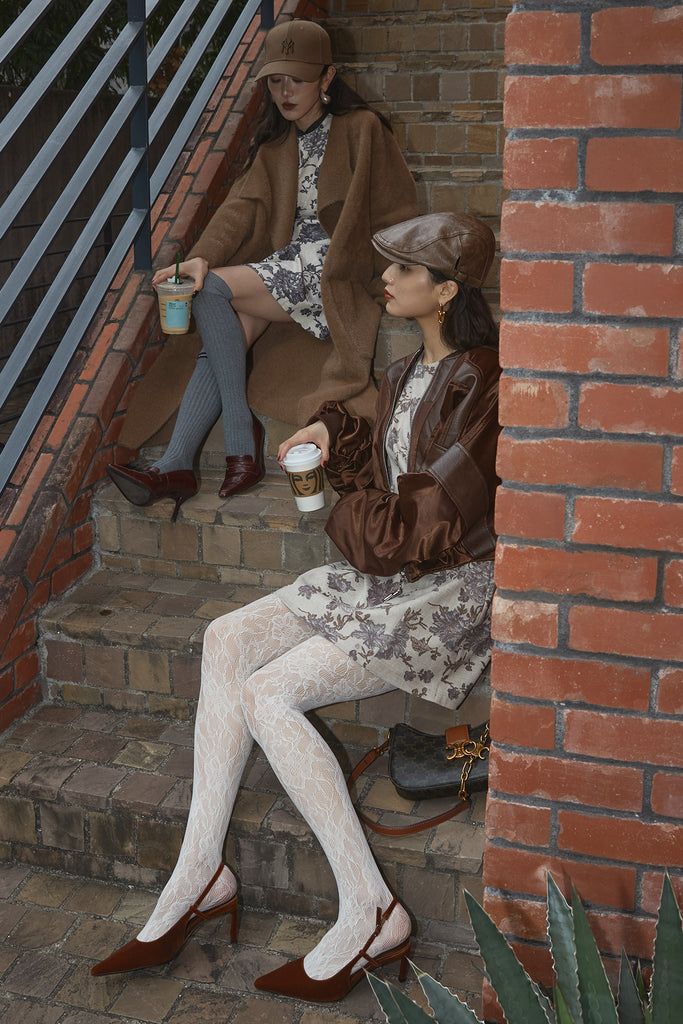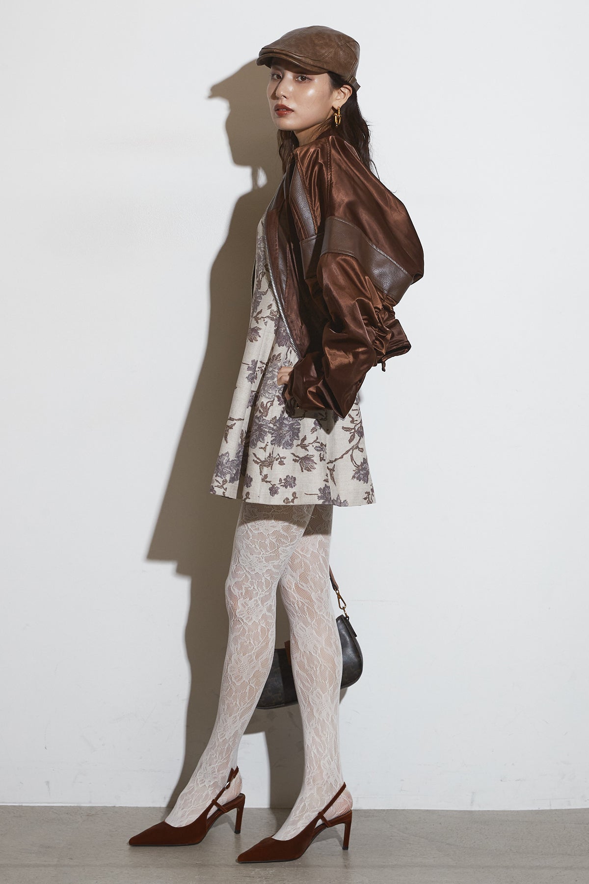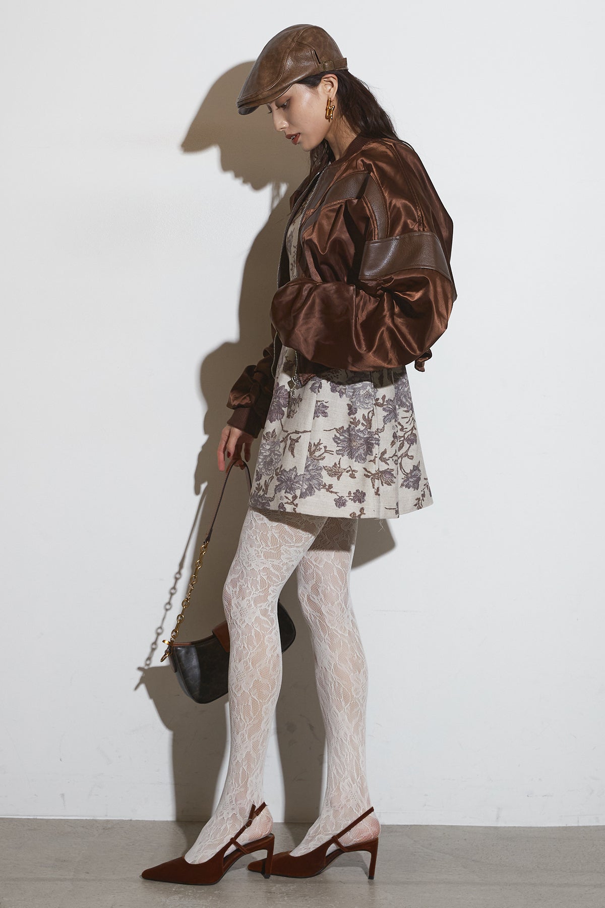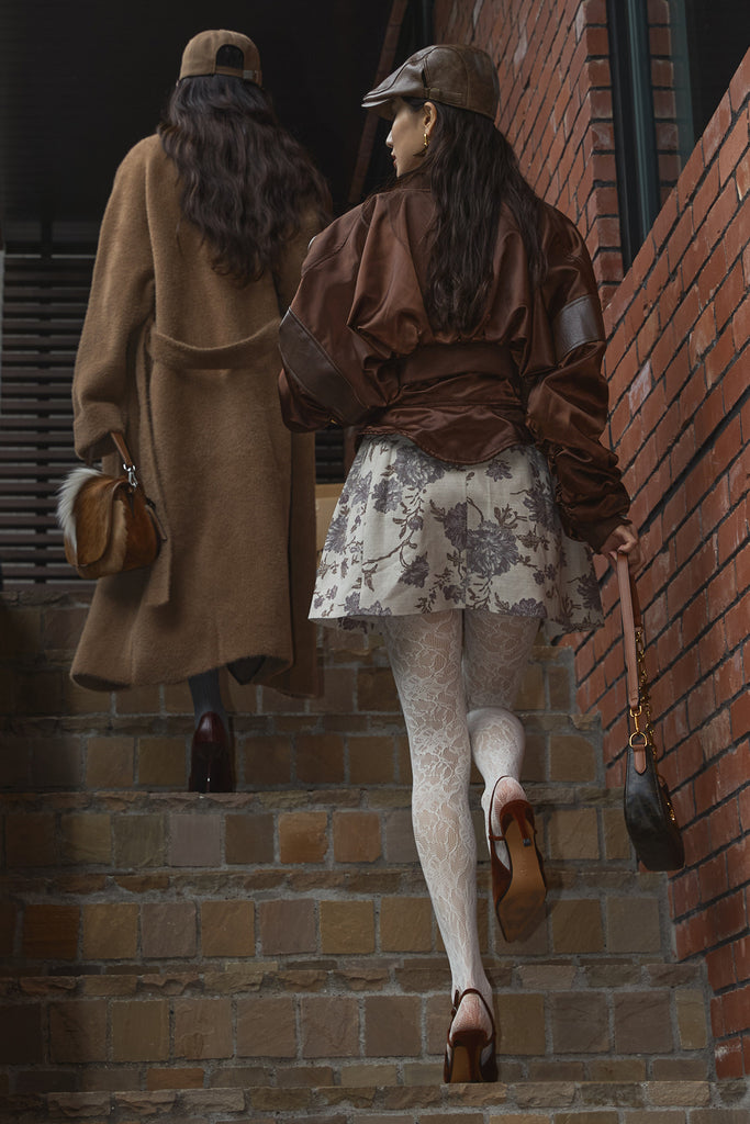 【SET】ボタニカルミニワンピース+サテンクロップドブルゾン