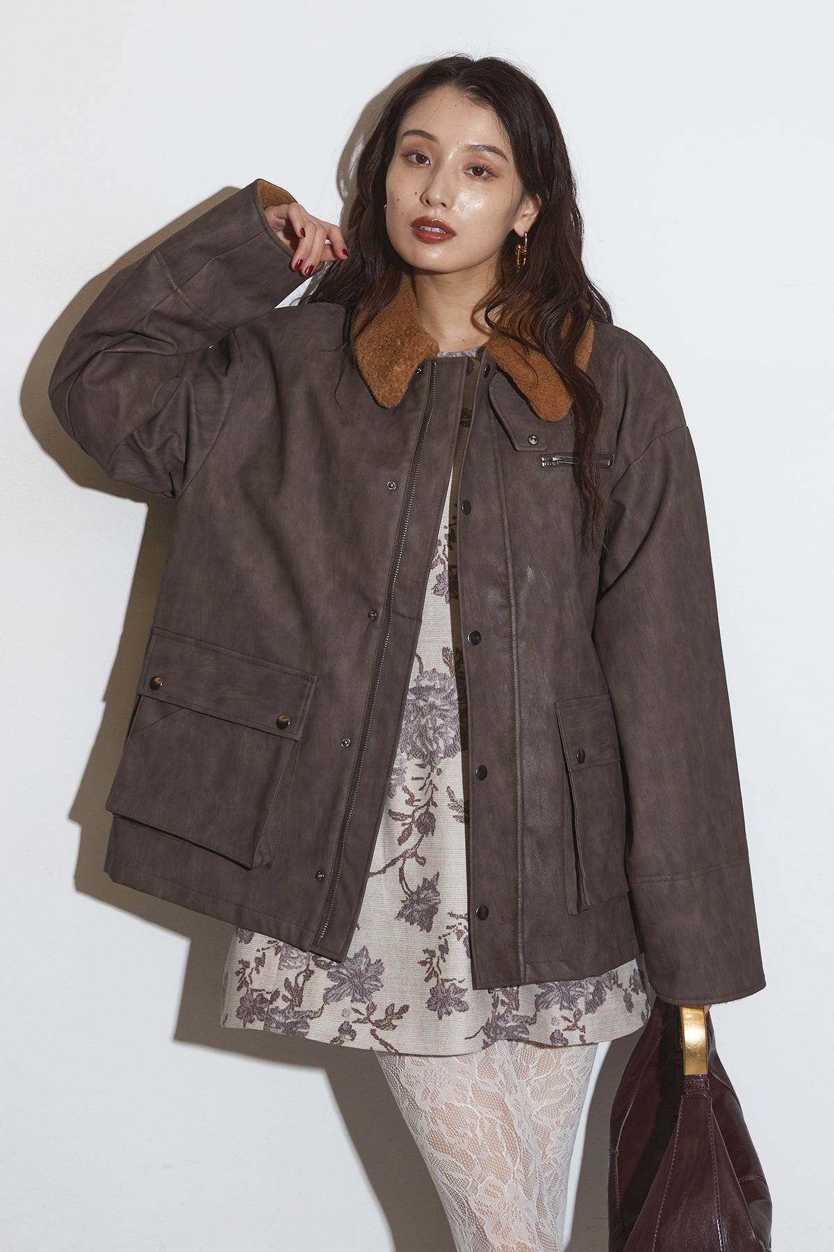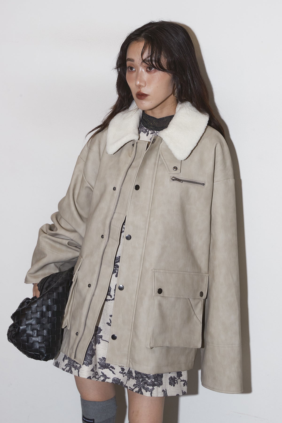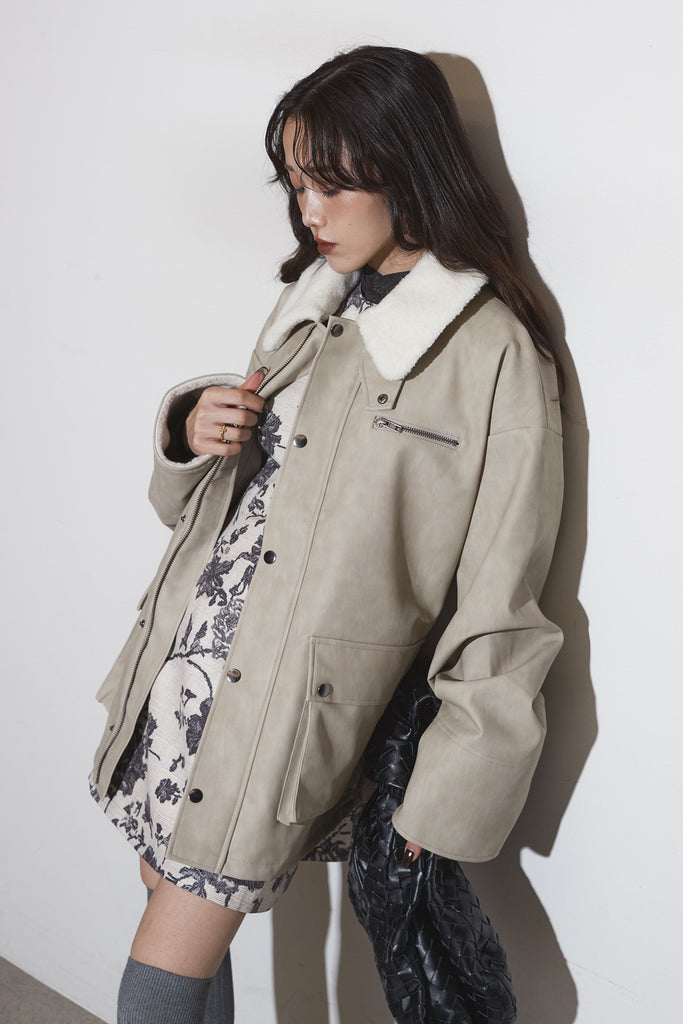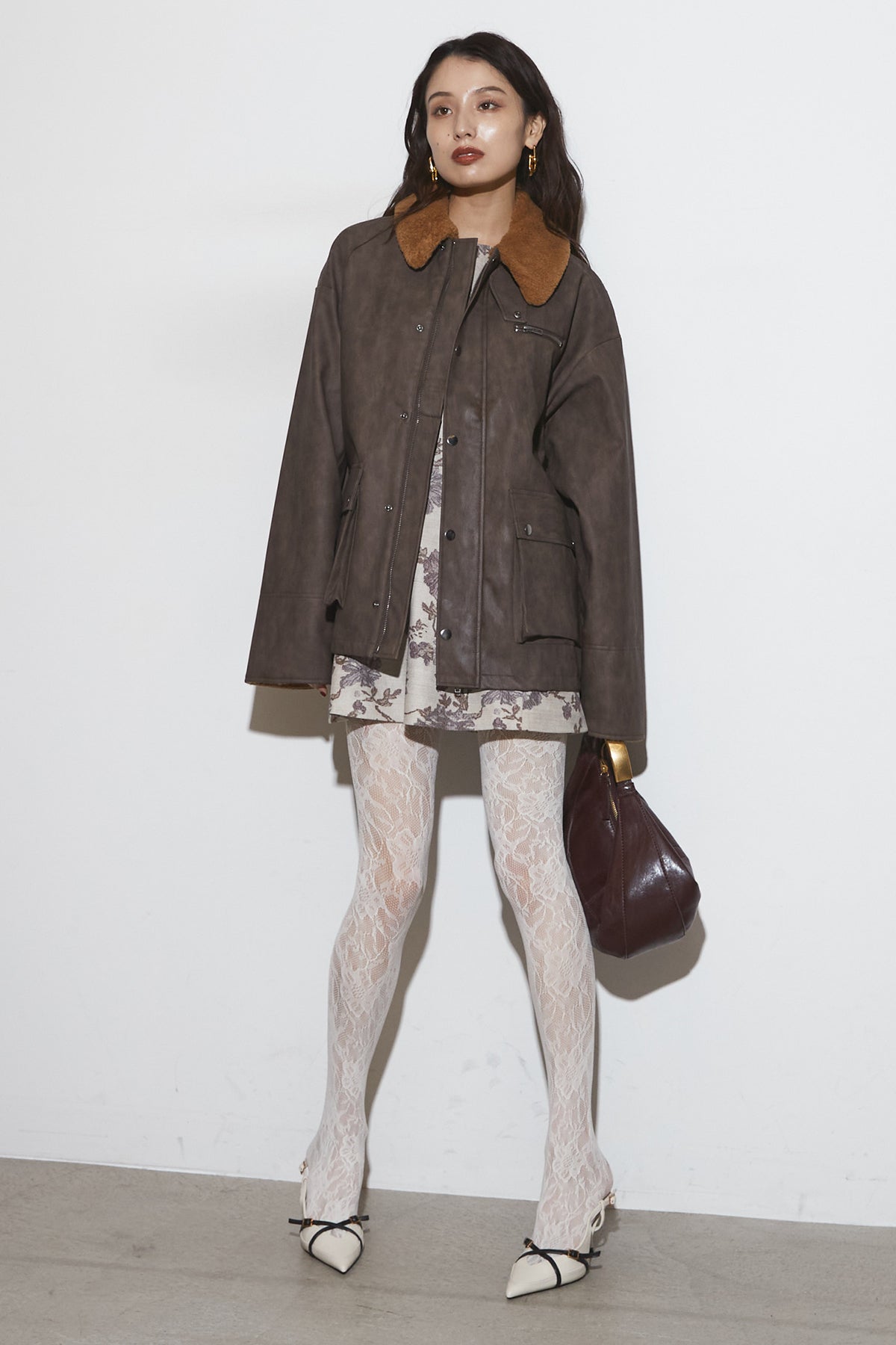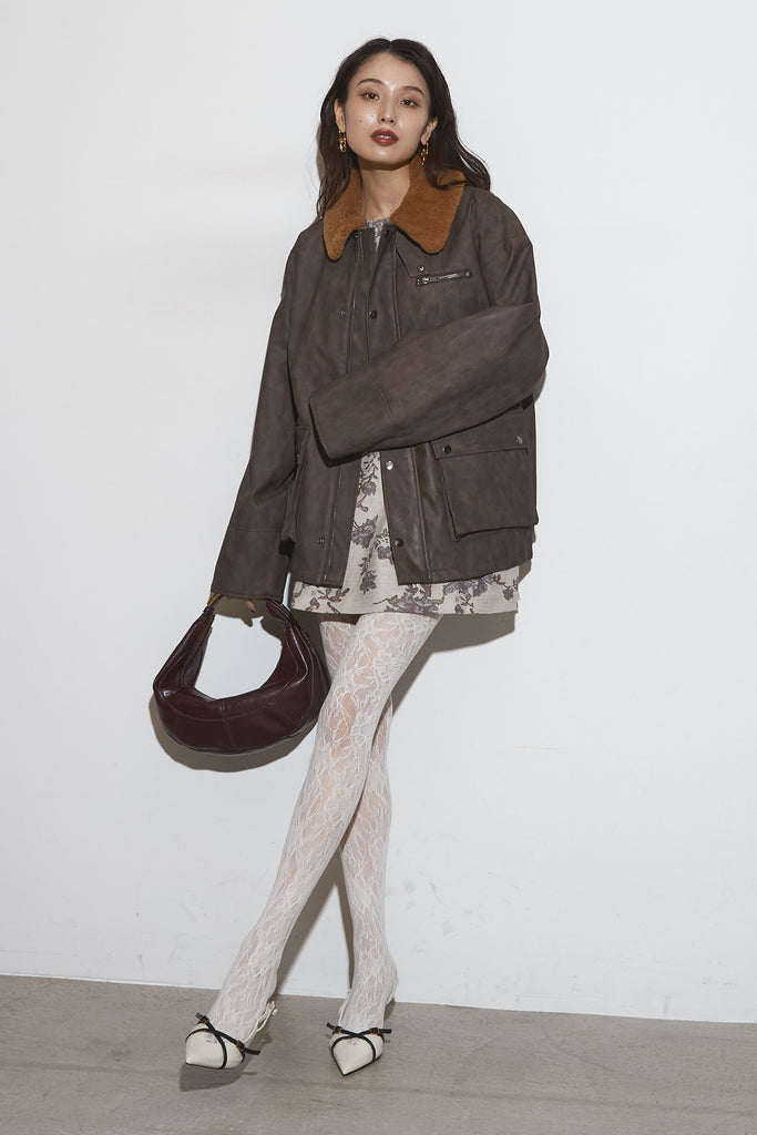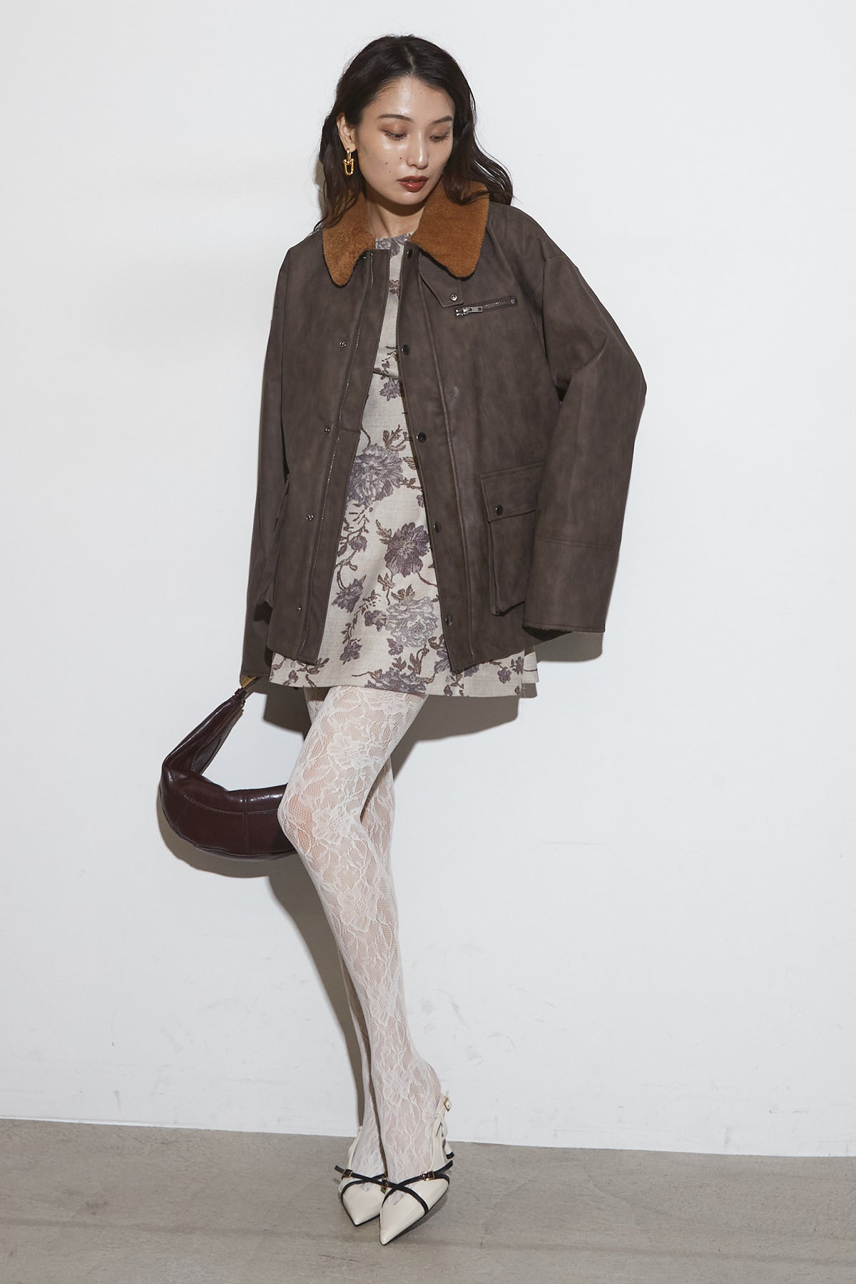 【SET】ボタニカルミニワンピース+ボアレザージャケット