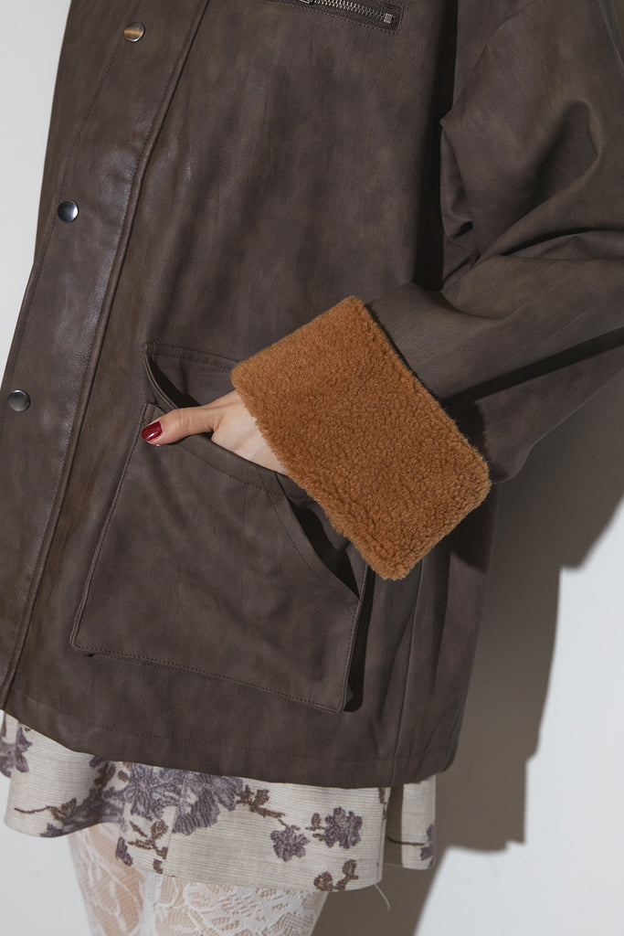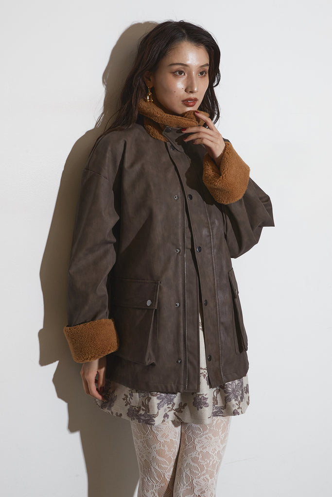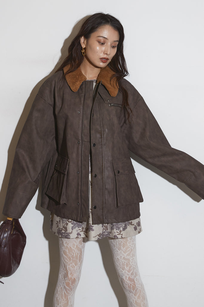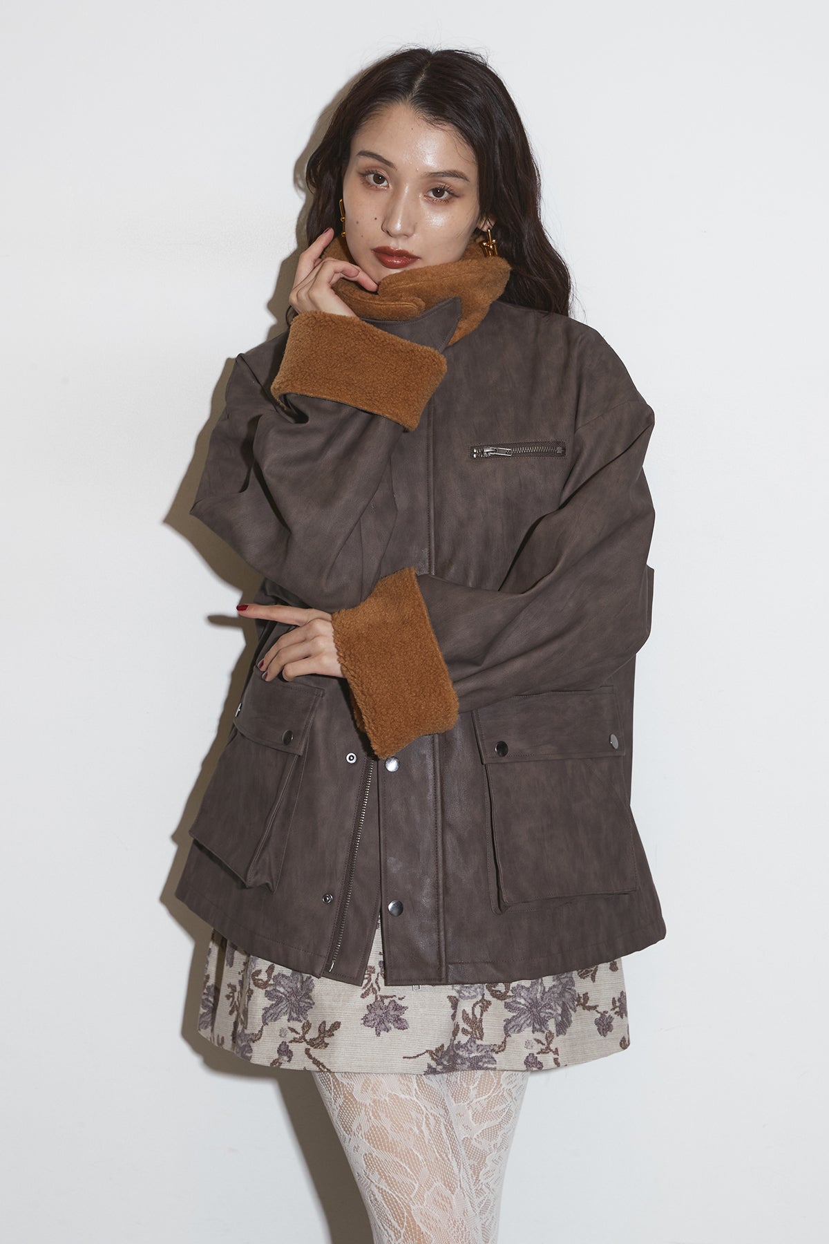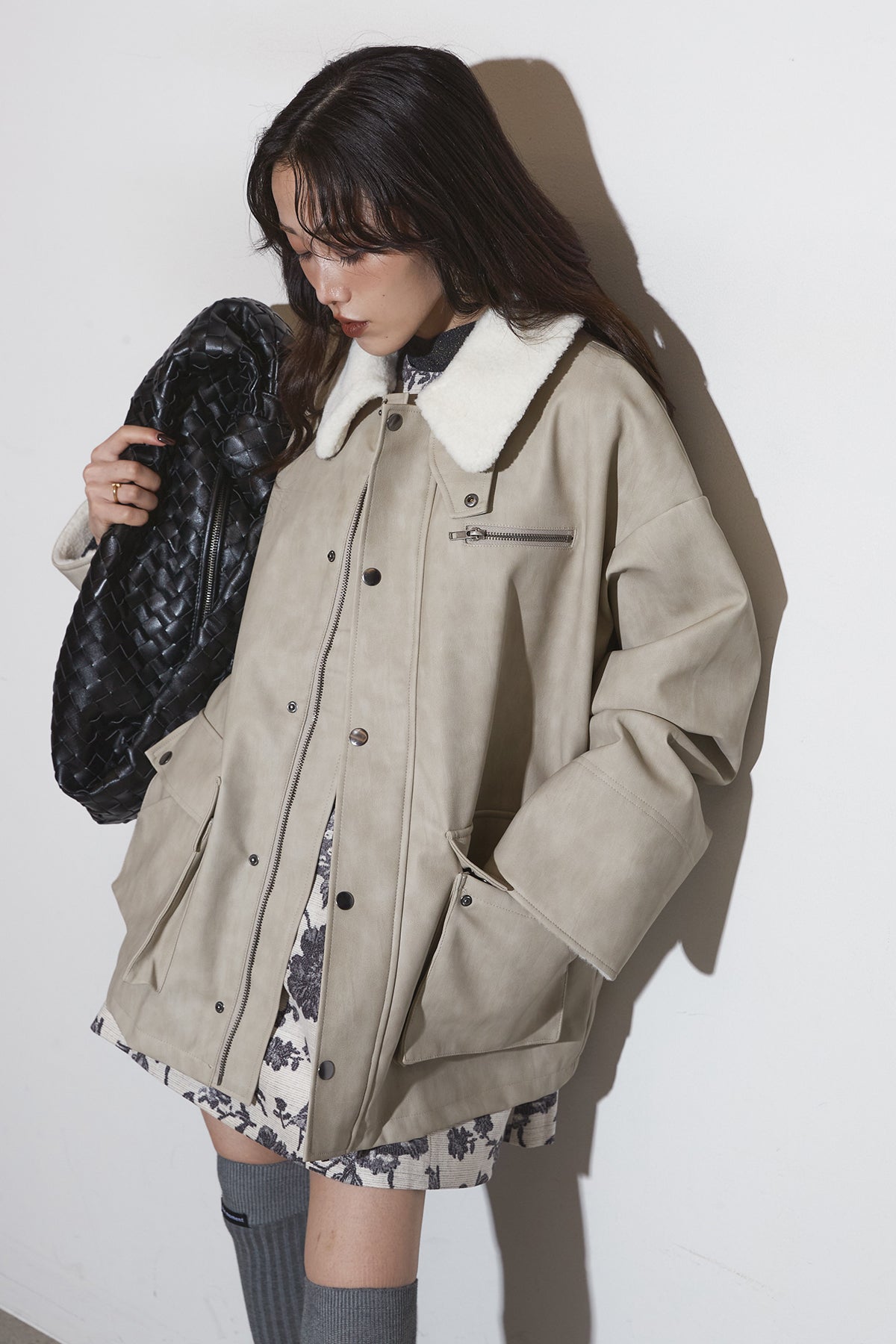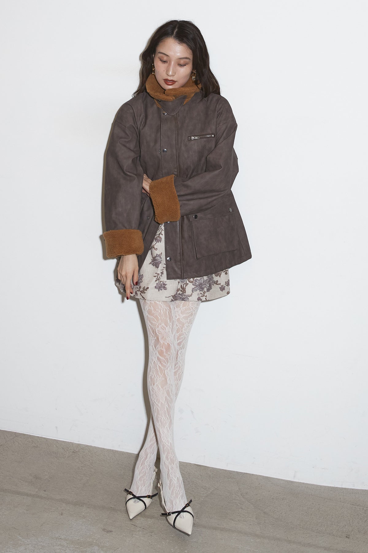 【SET】ボタニカルミニワンピース+ボアレザージャケット