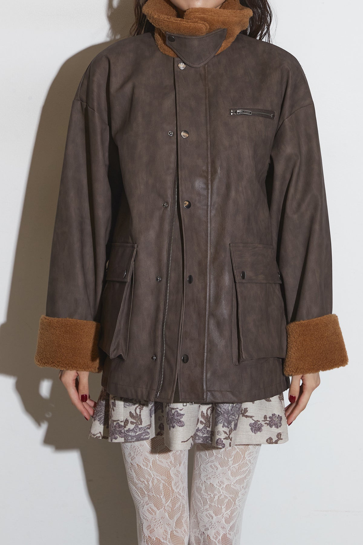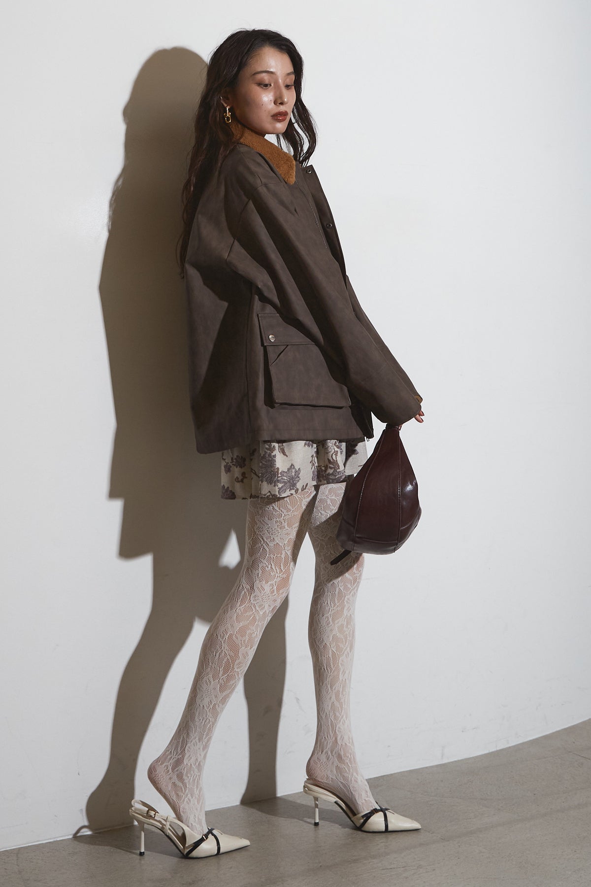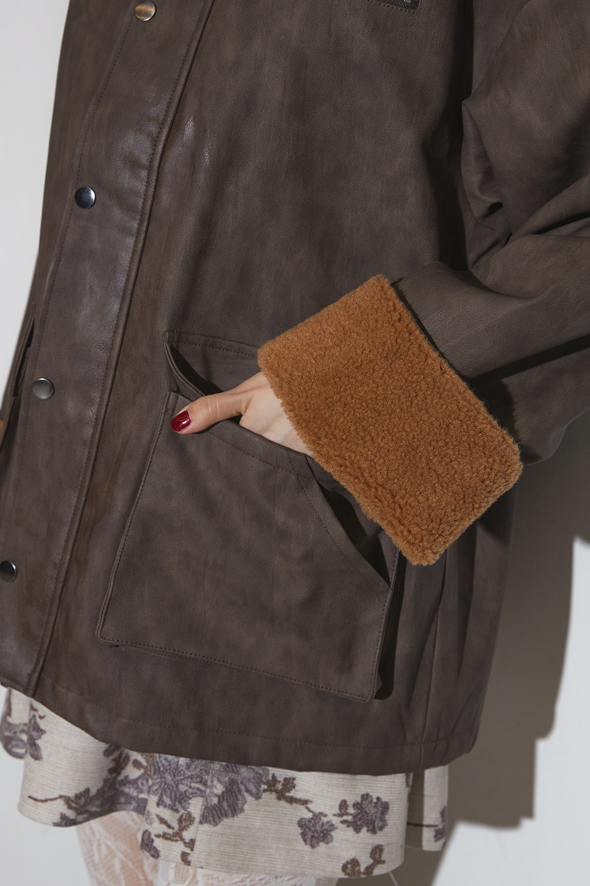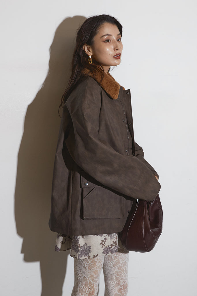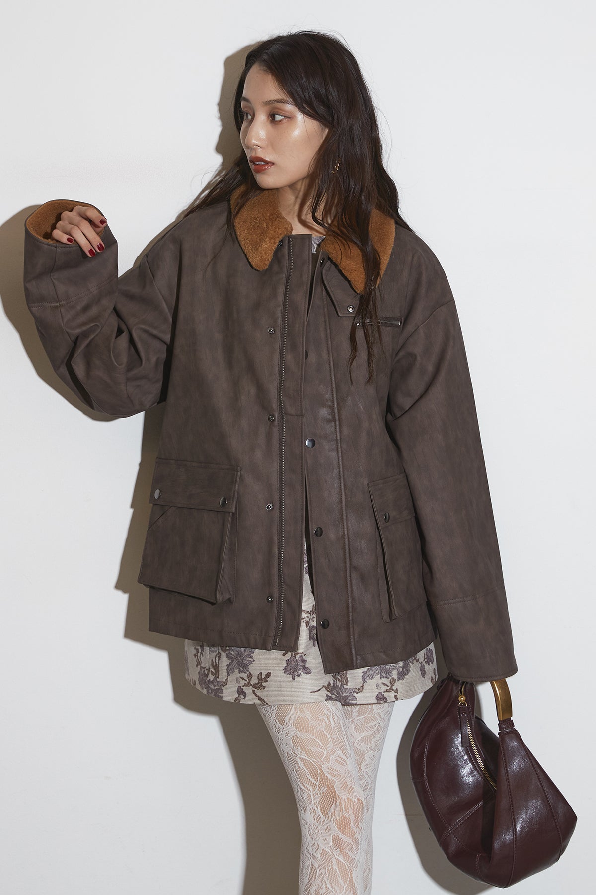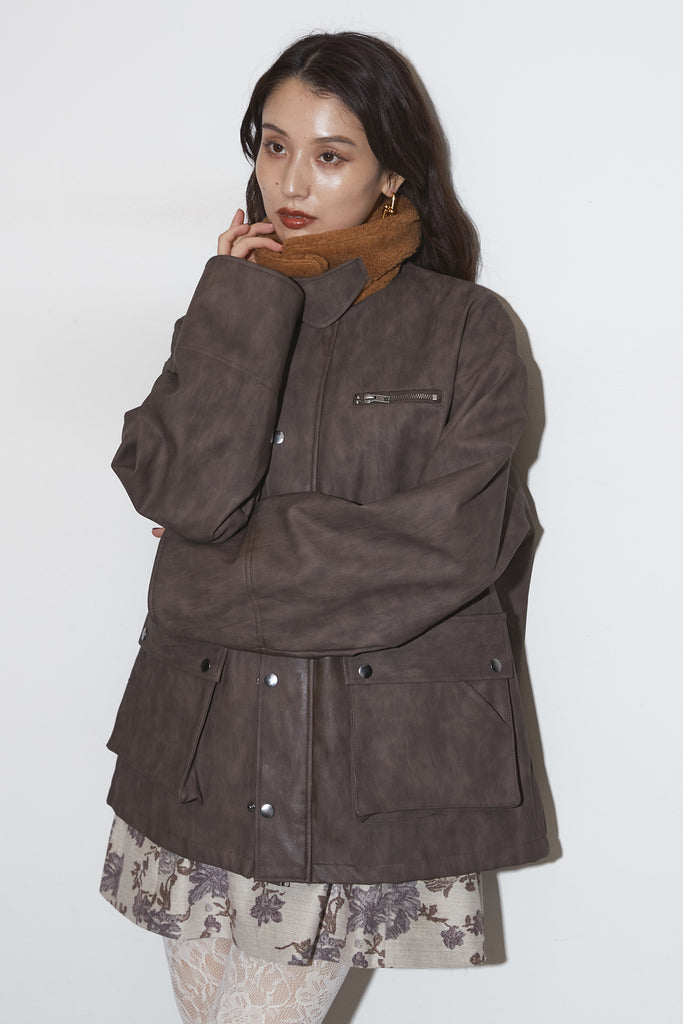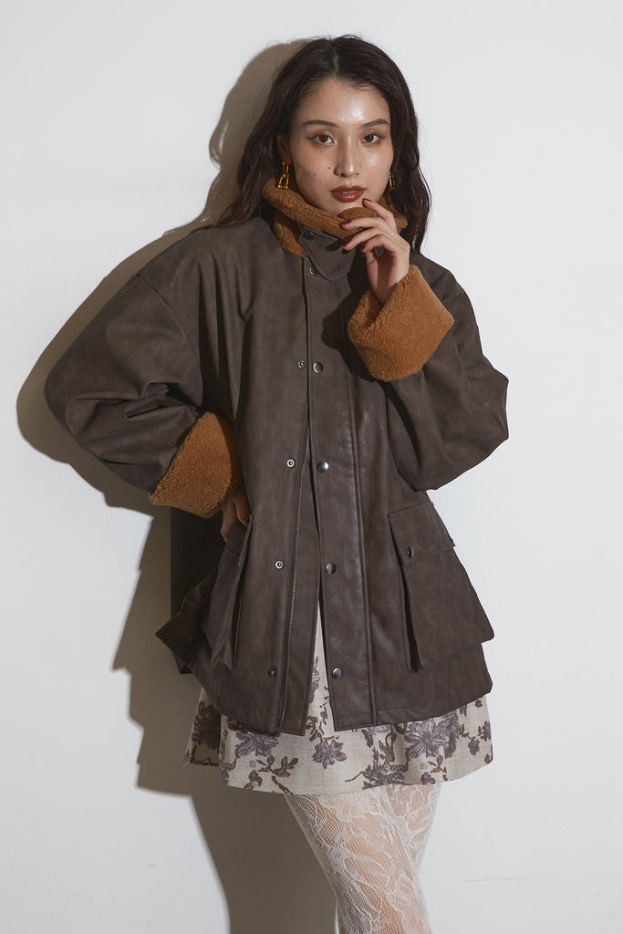 【SET】ボタニカルミニワンピース+ボアレザージャケット