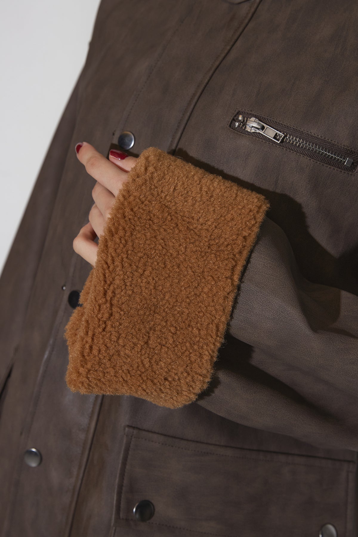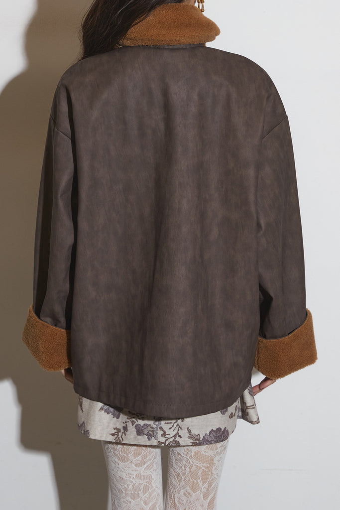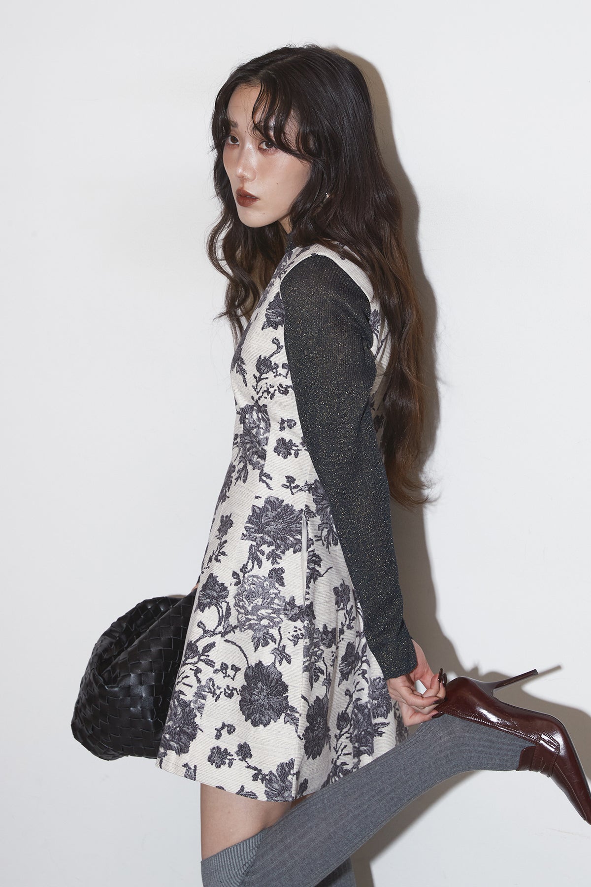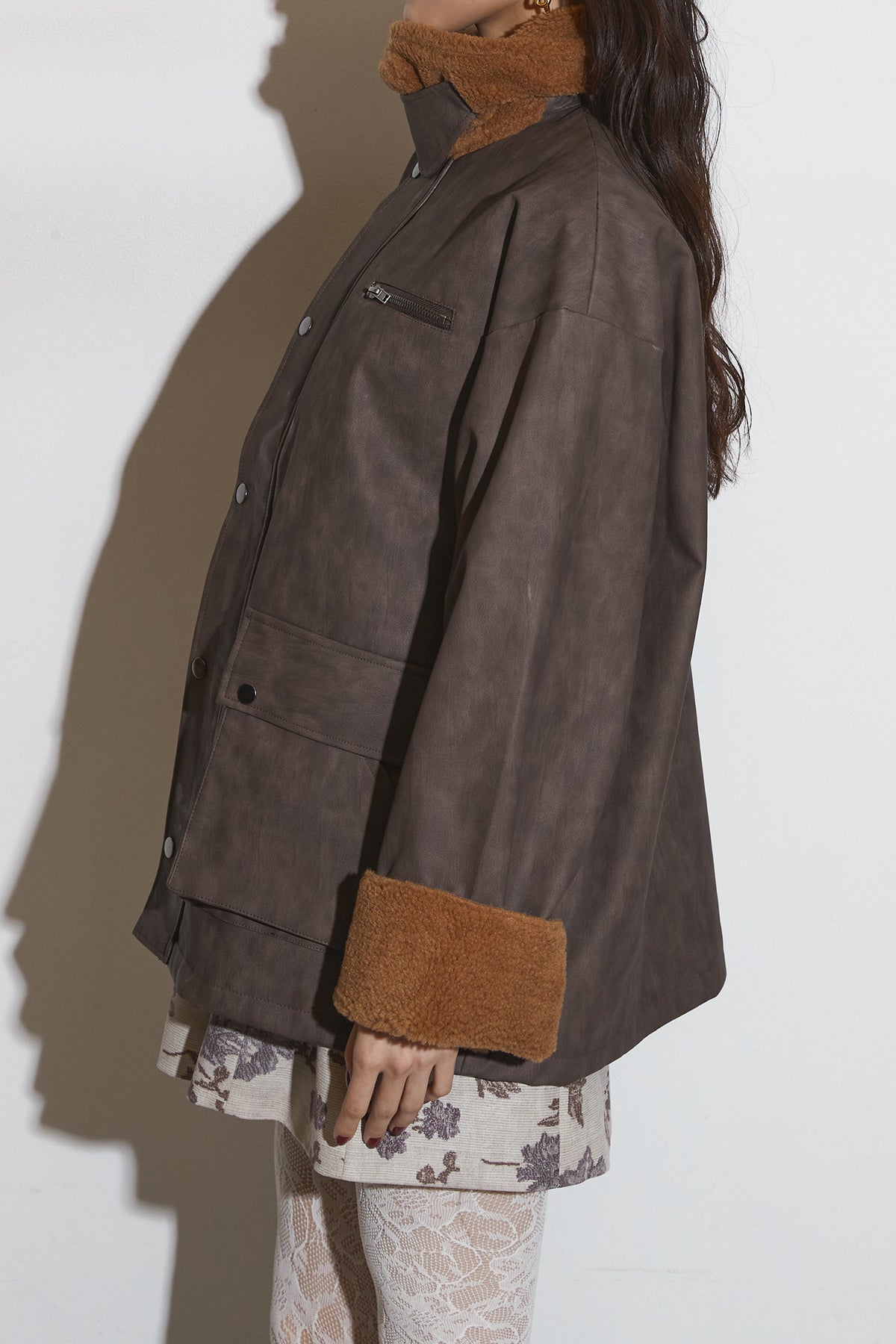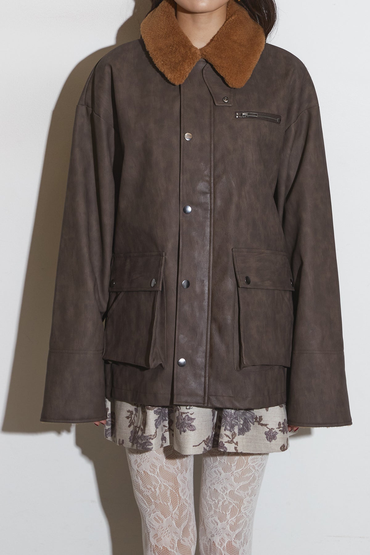 【SET】ボタニカルミニワンピース+ボアレザージャケット