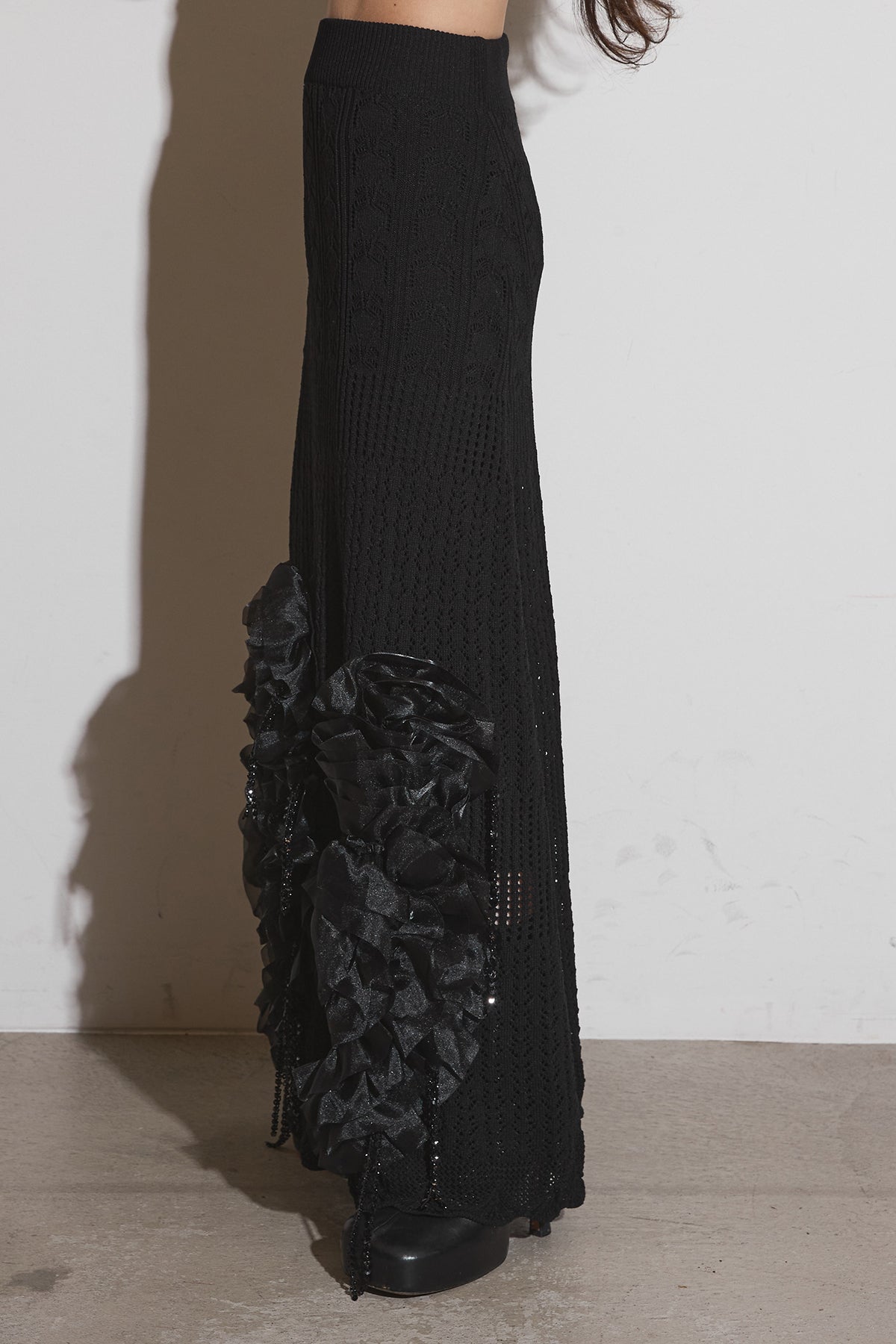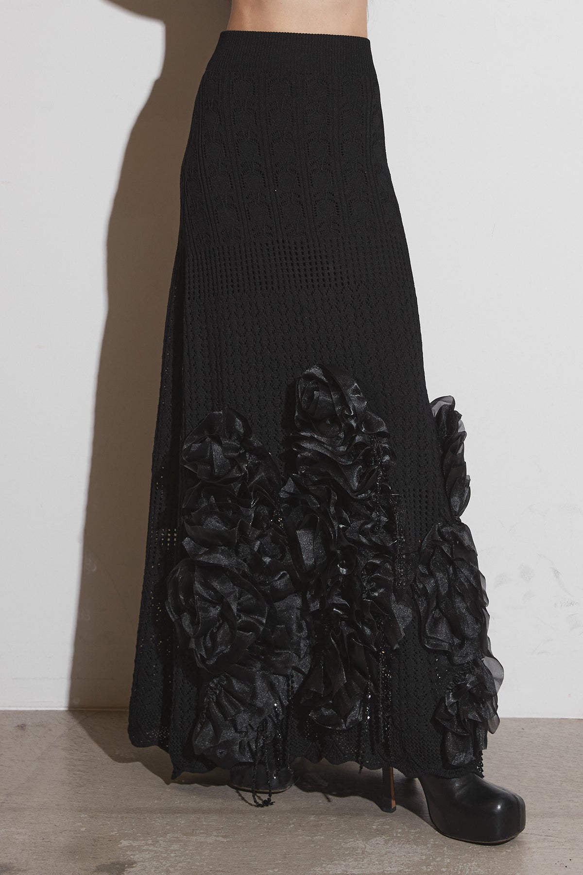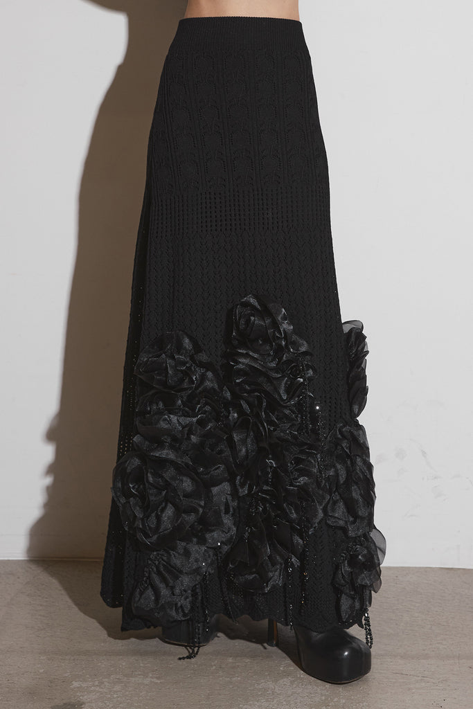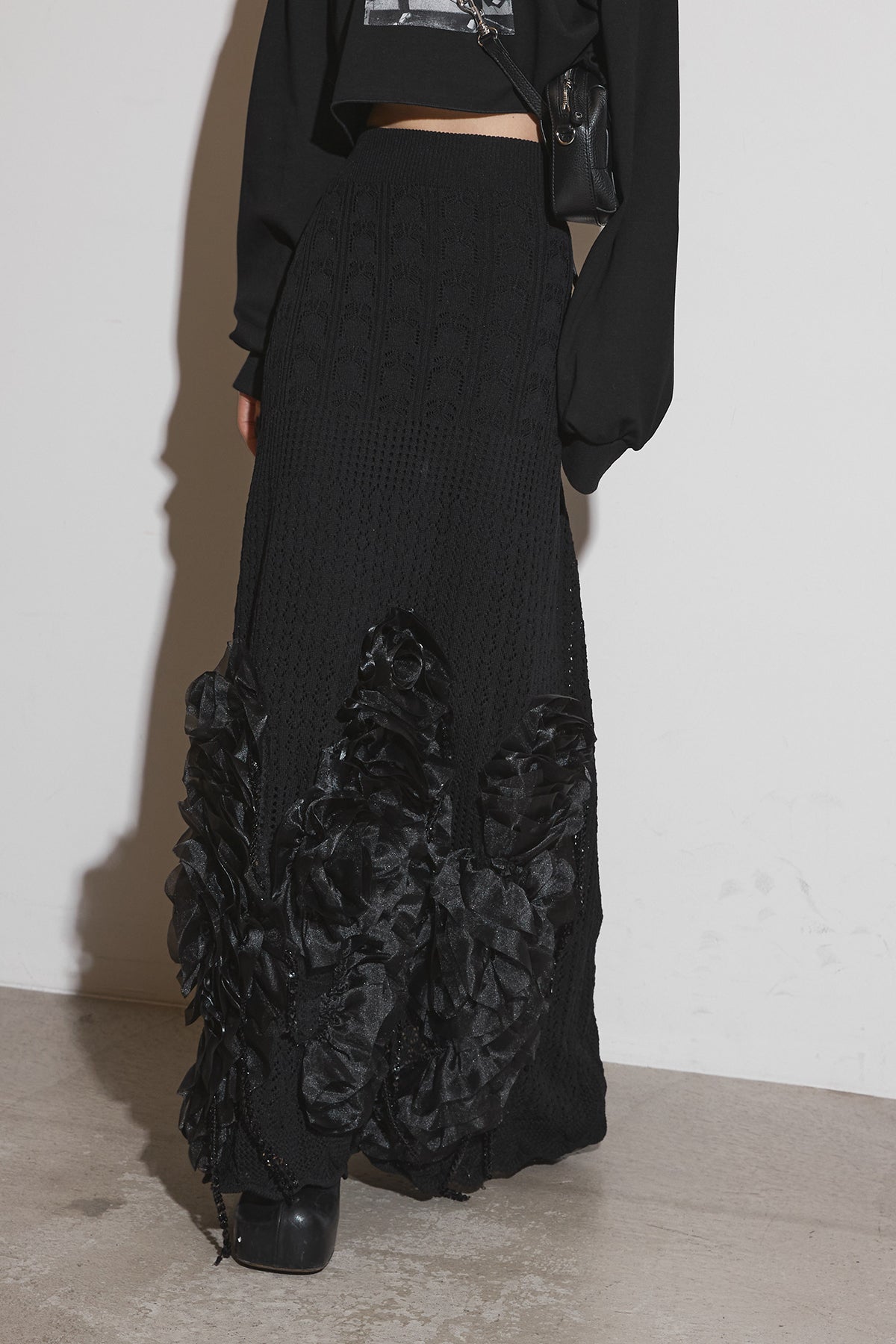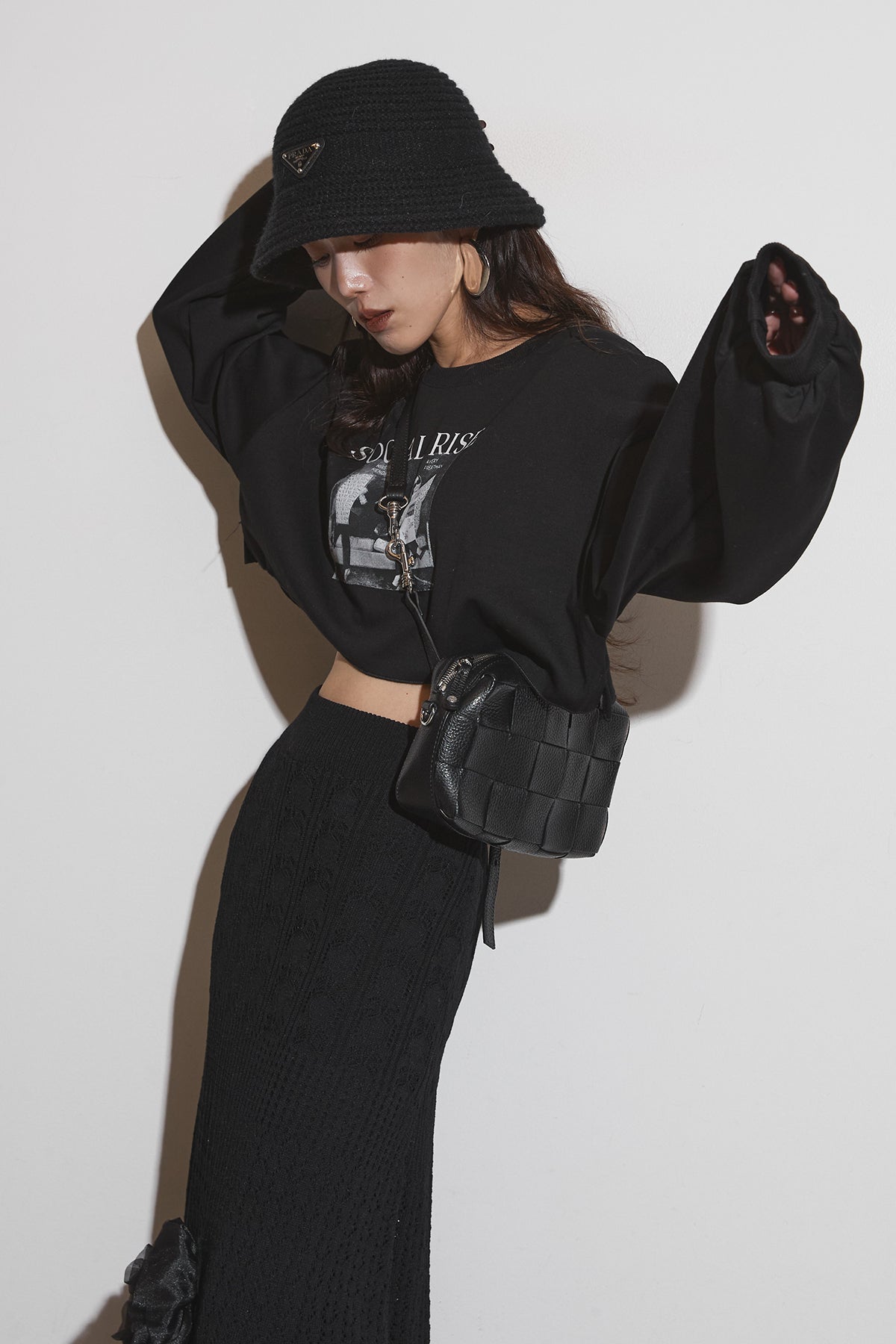 【SET】クロップドプリントプルオーバー+フラワービジューニットスカート