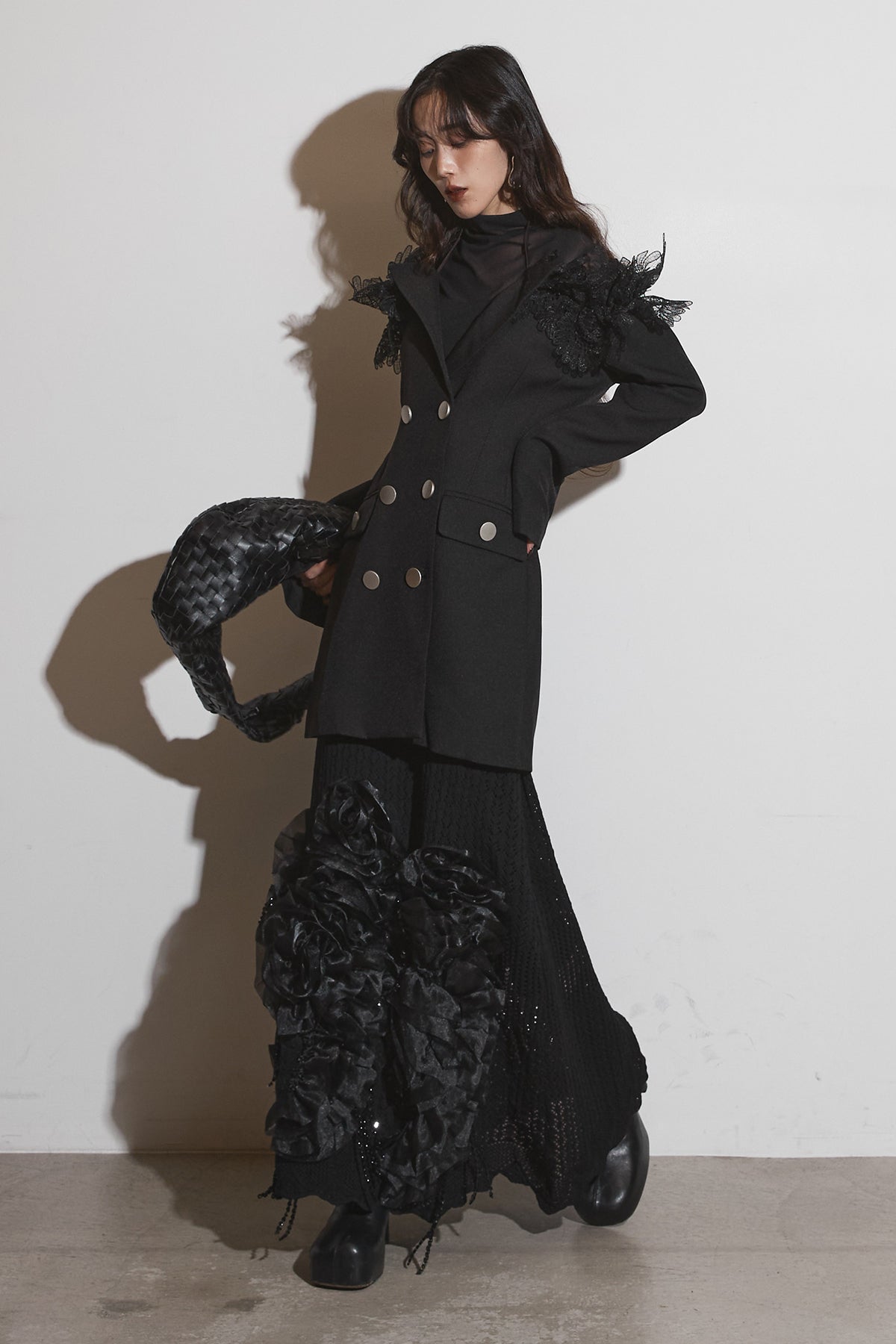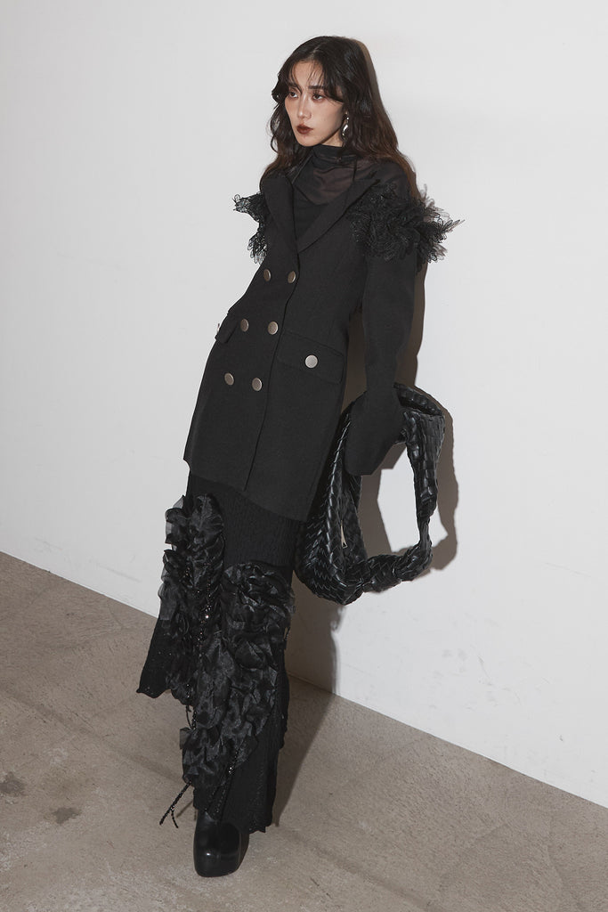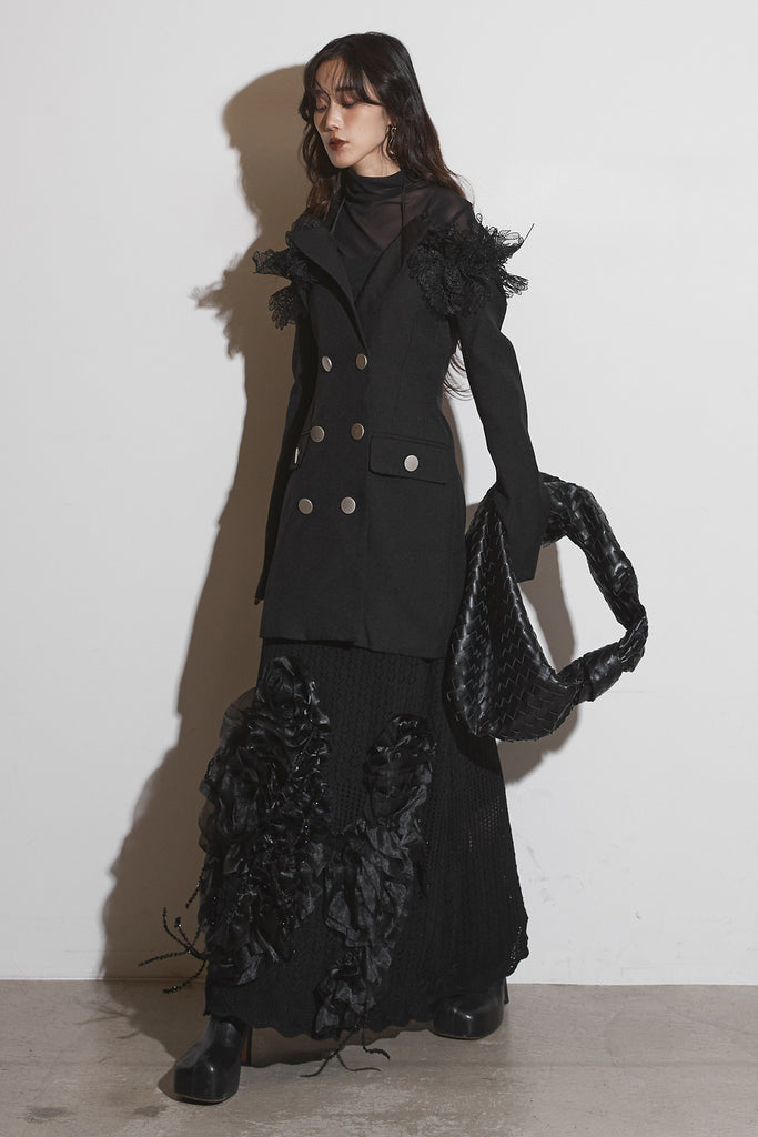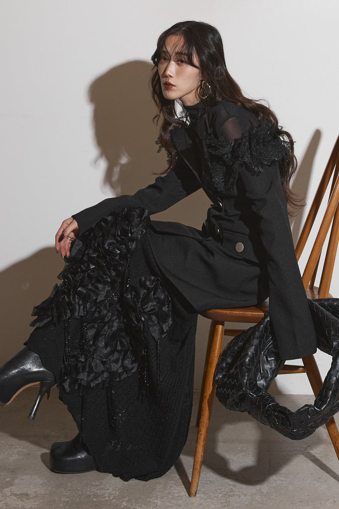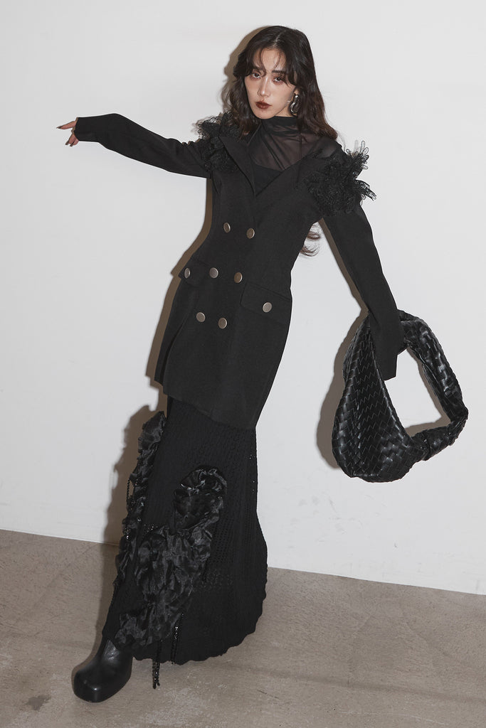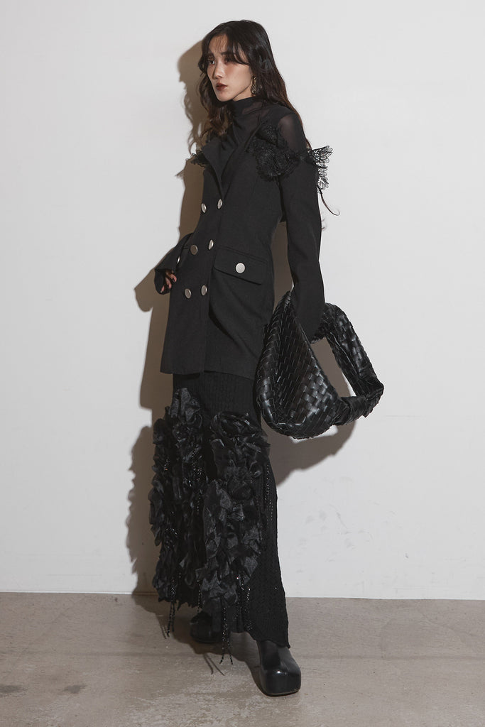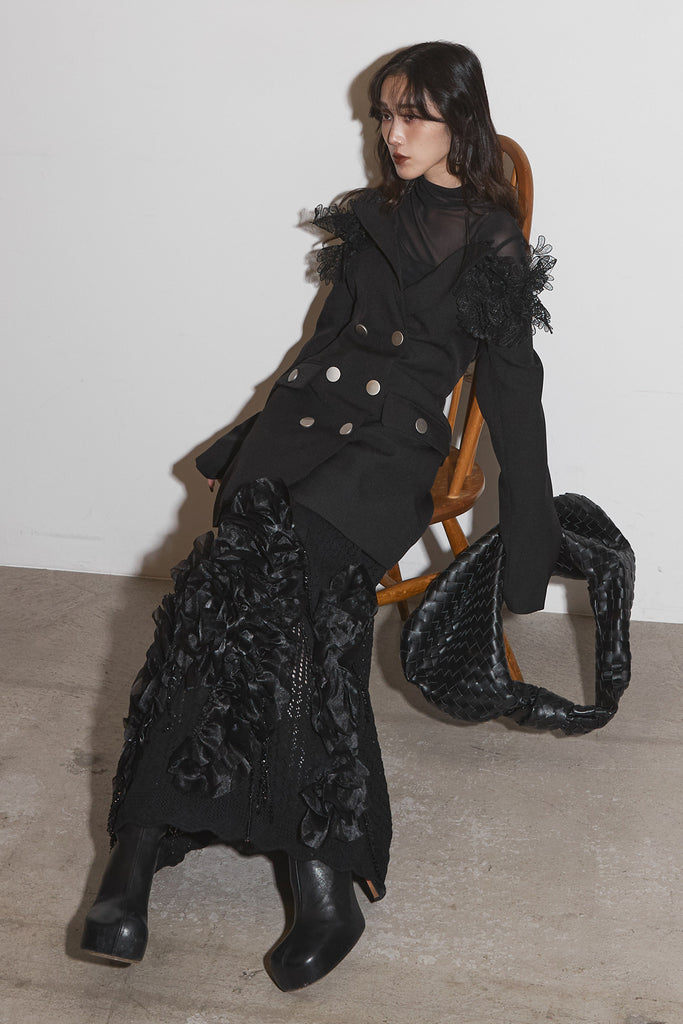 【SET】オフショルレースジャケット+フラワービジューニットスカート