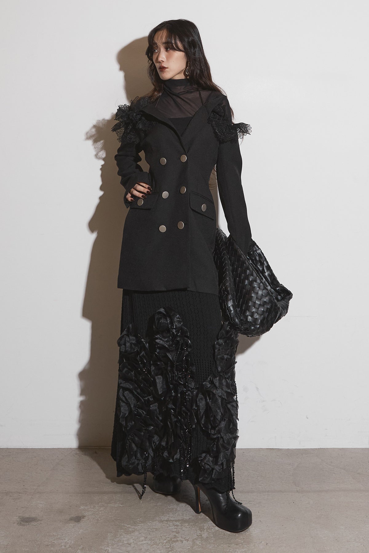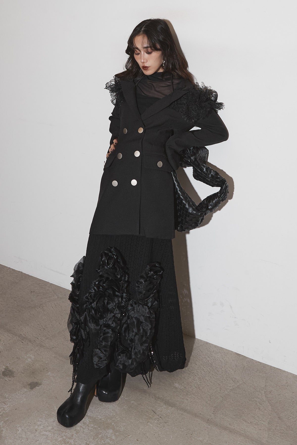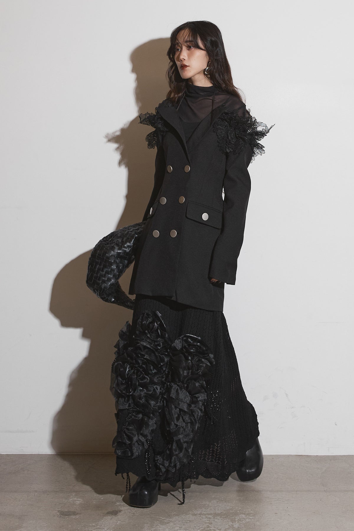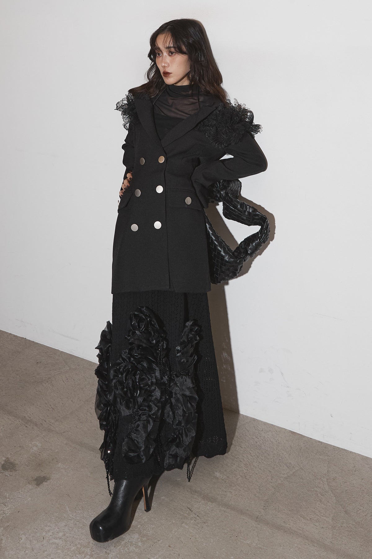 【SET】オフショルレースジャケット+フラワービジューニットスカート