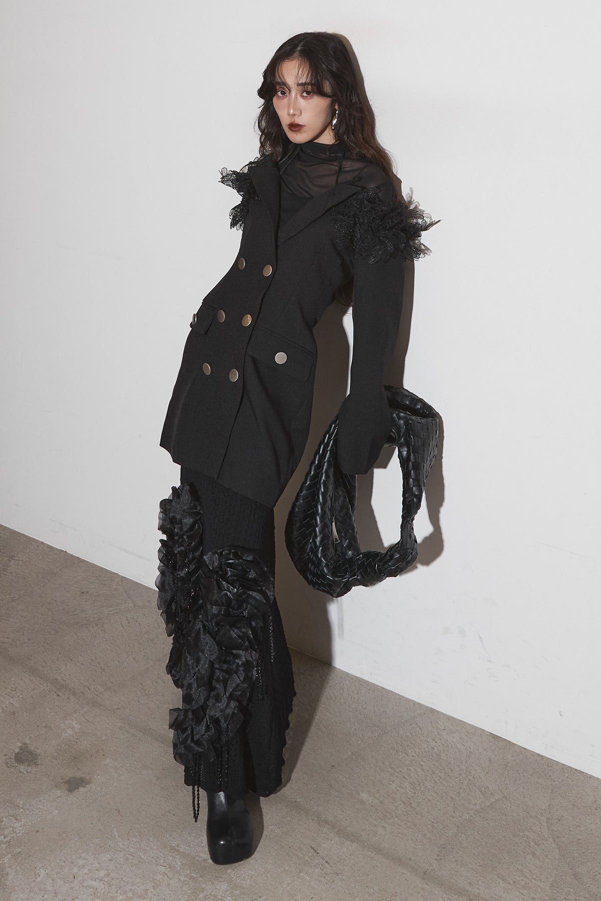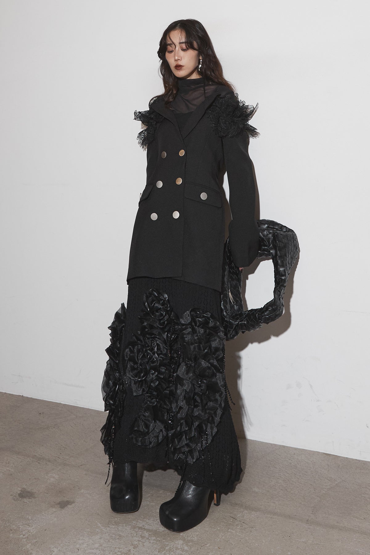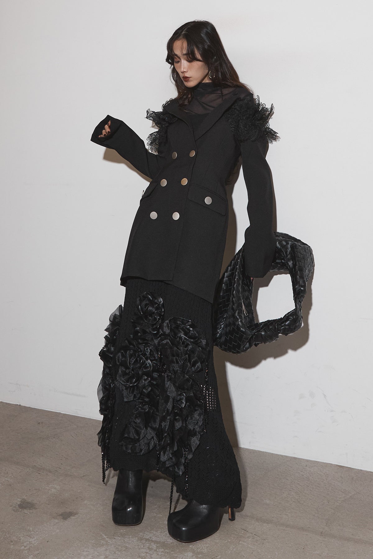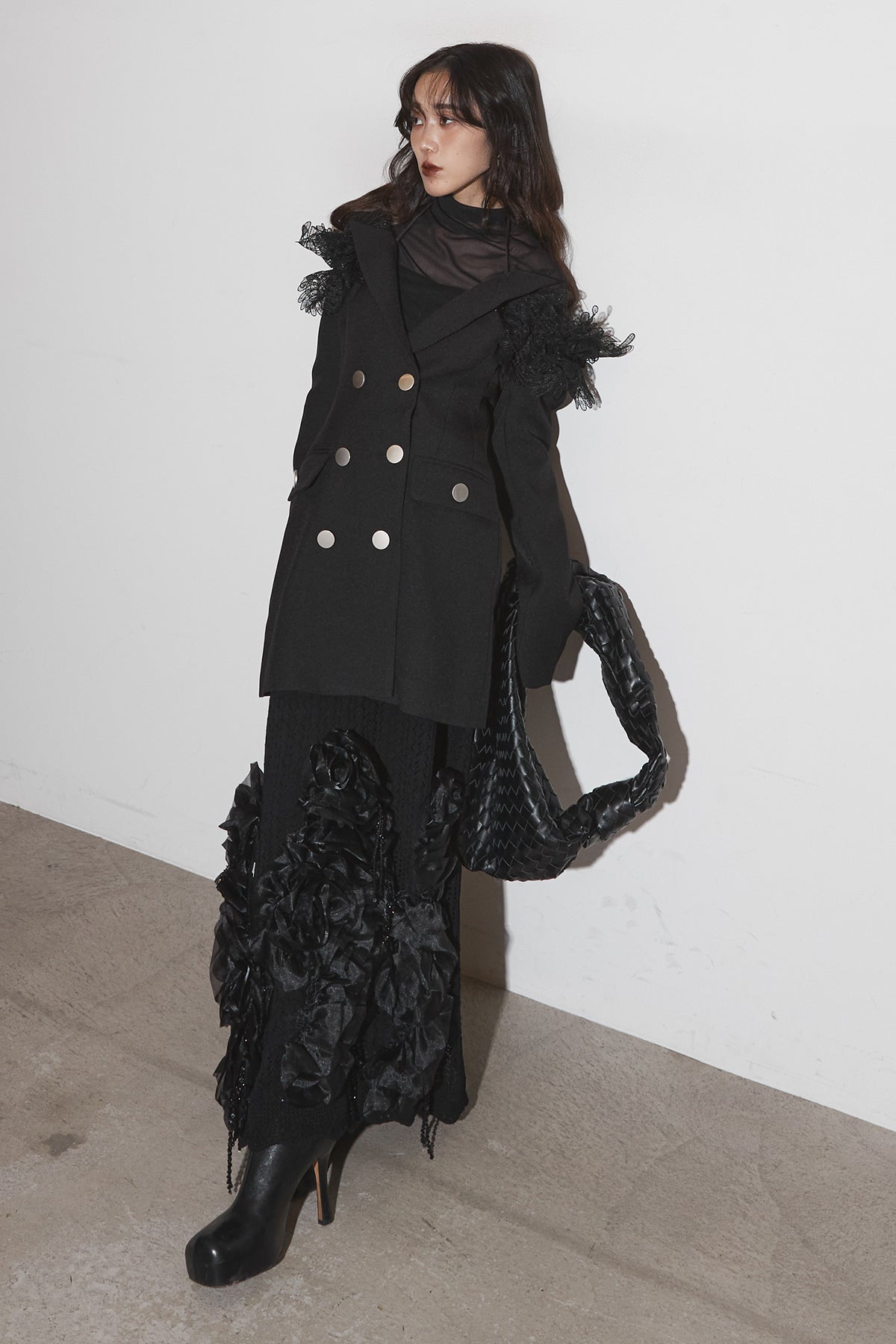 【SET】オフショルレースジャケット+フラワービジューニットスカート