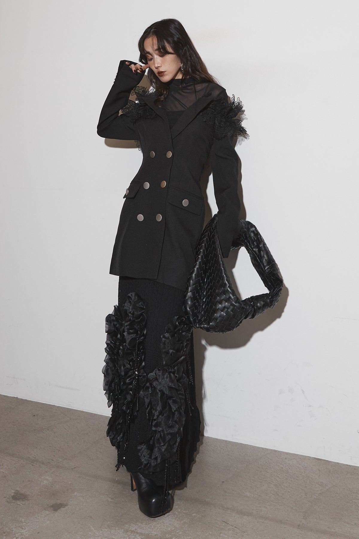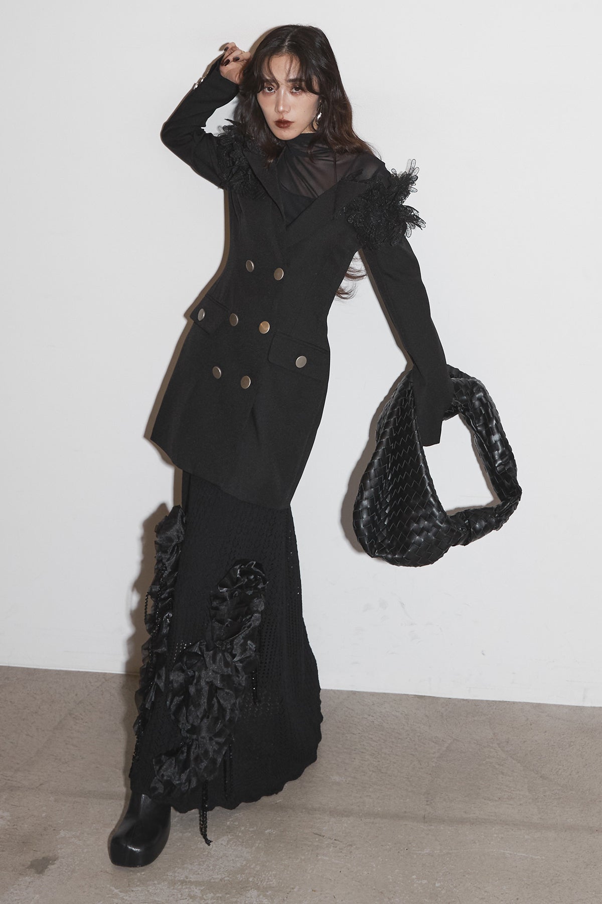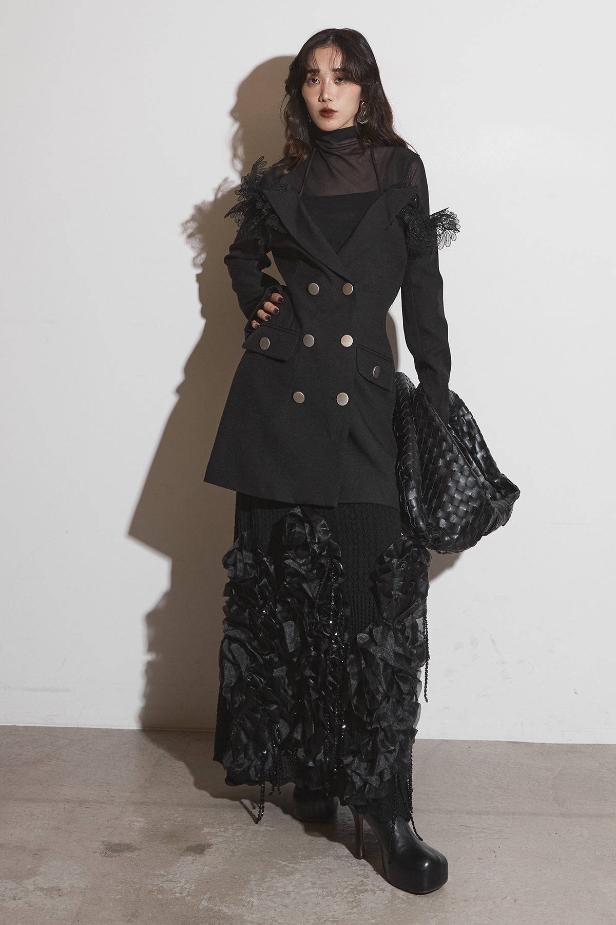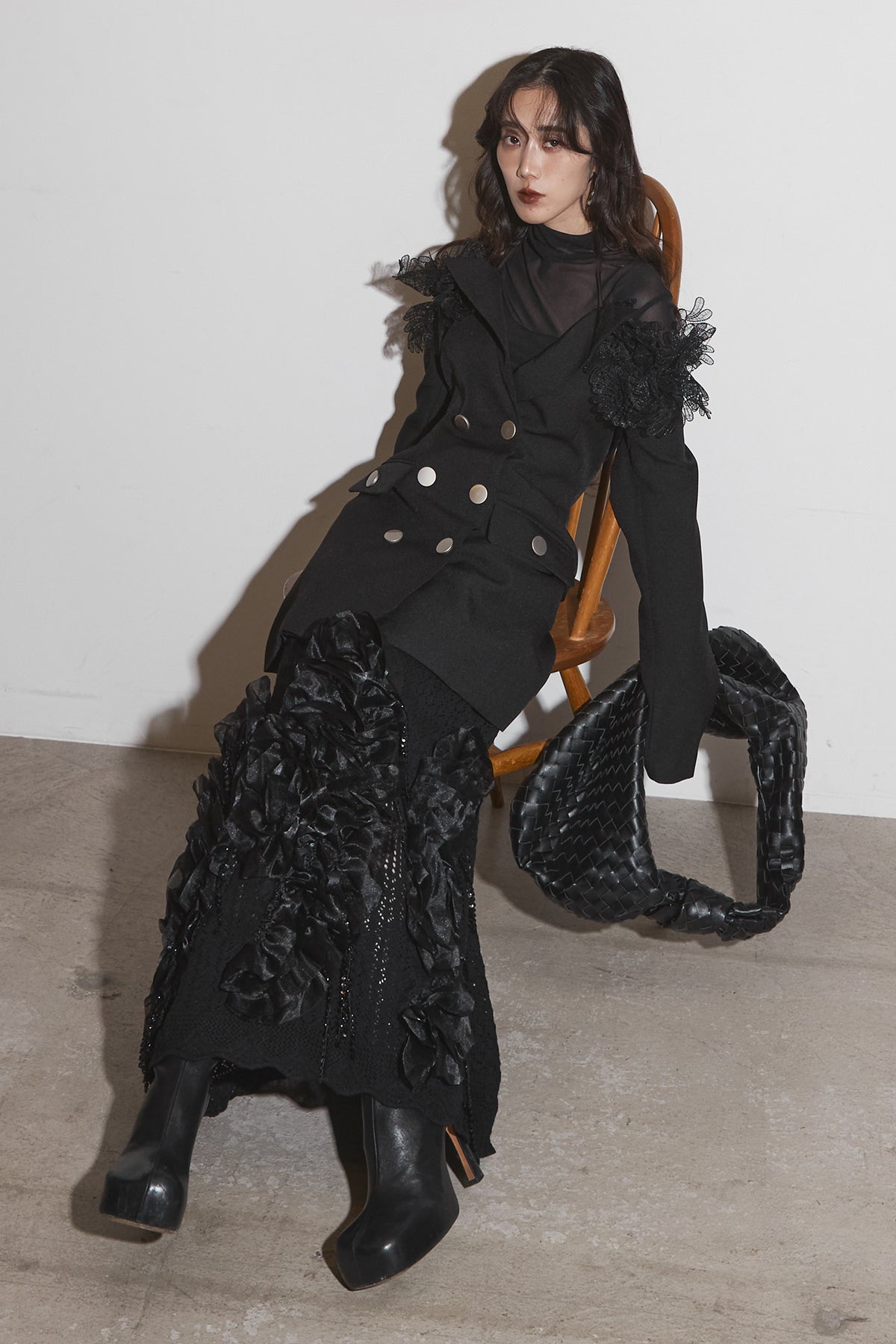 【SET】オフショルレースジャケット+フラワービジューニットスカート