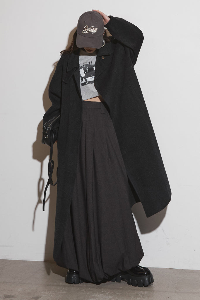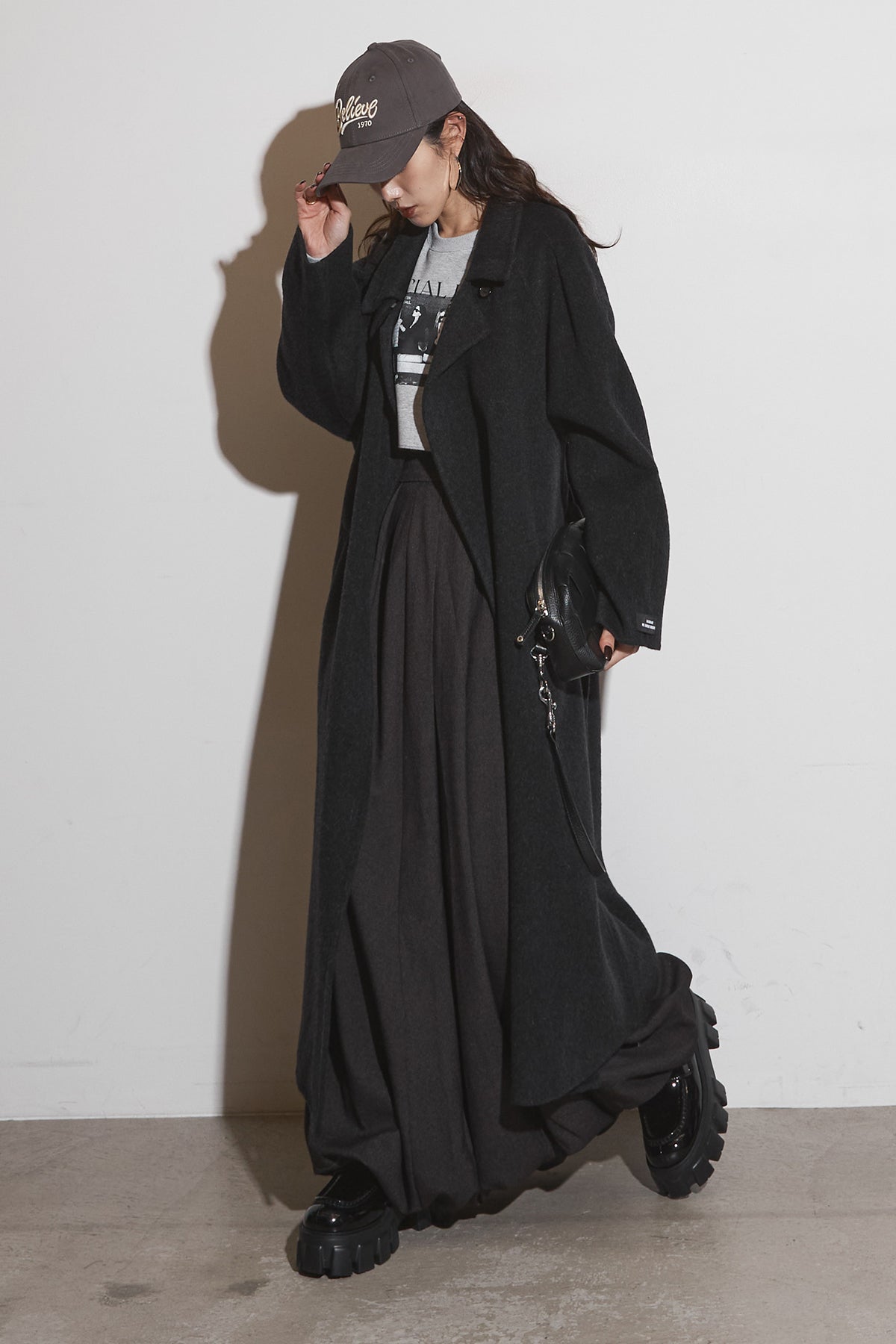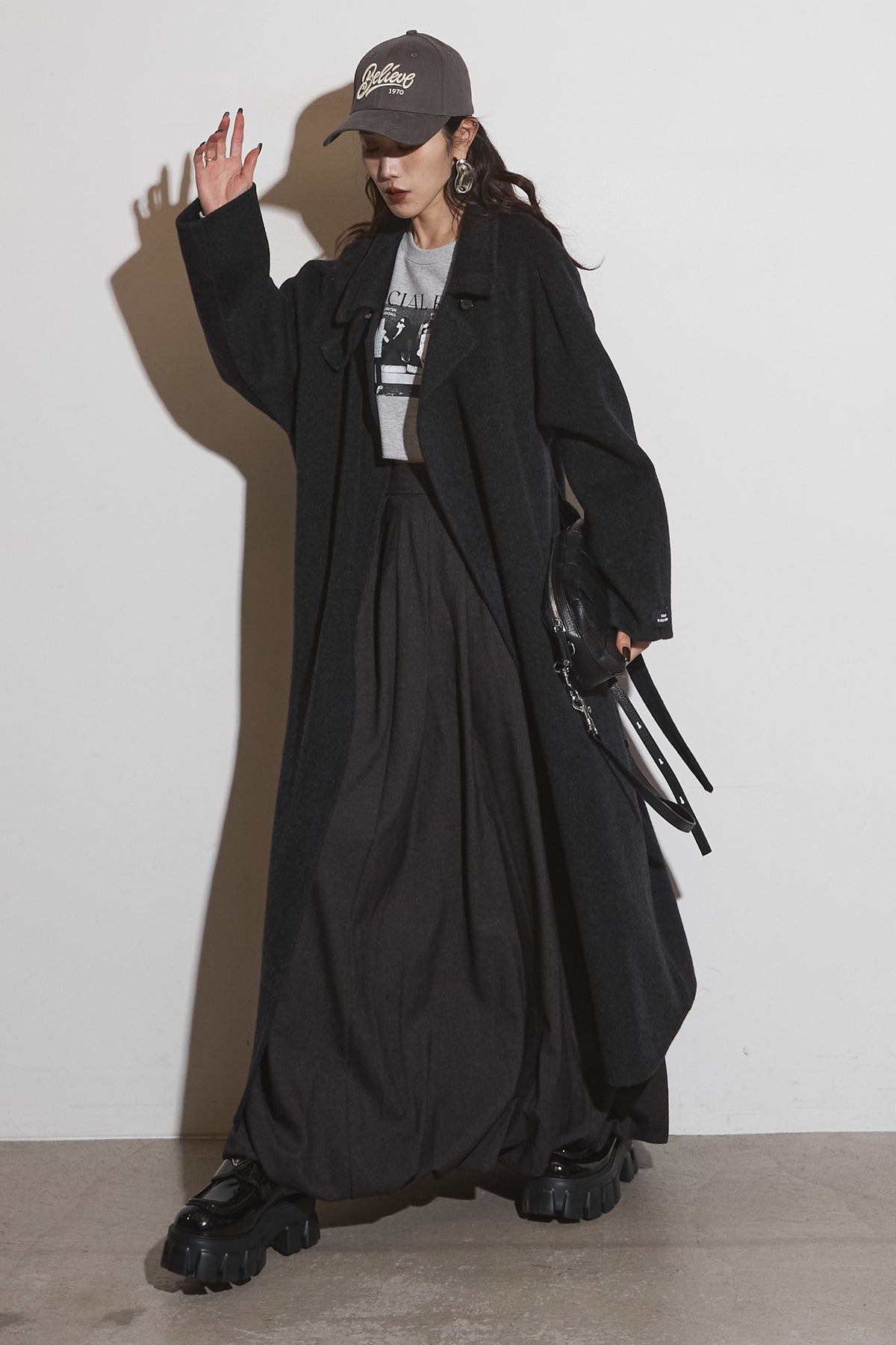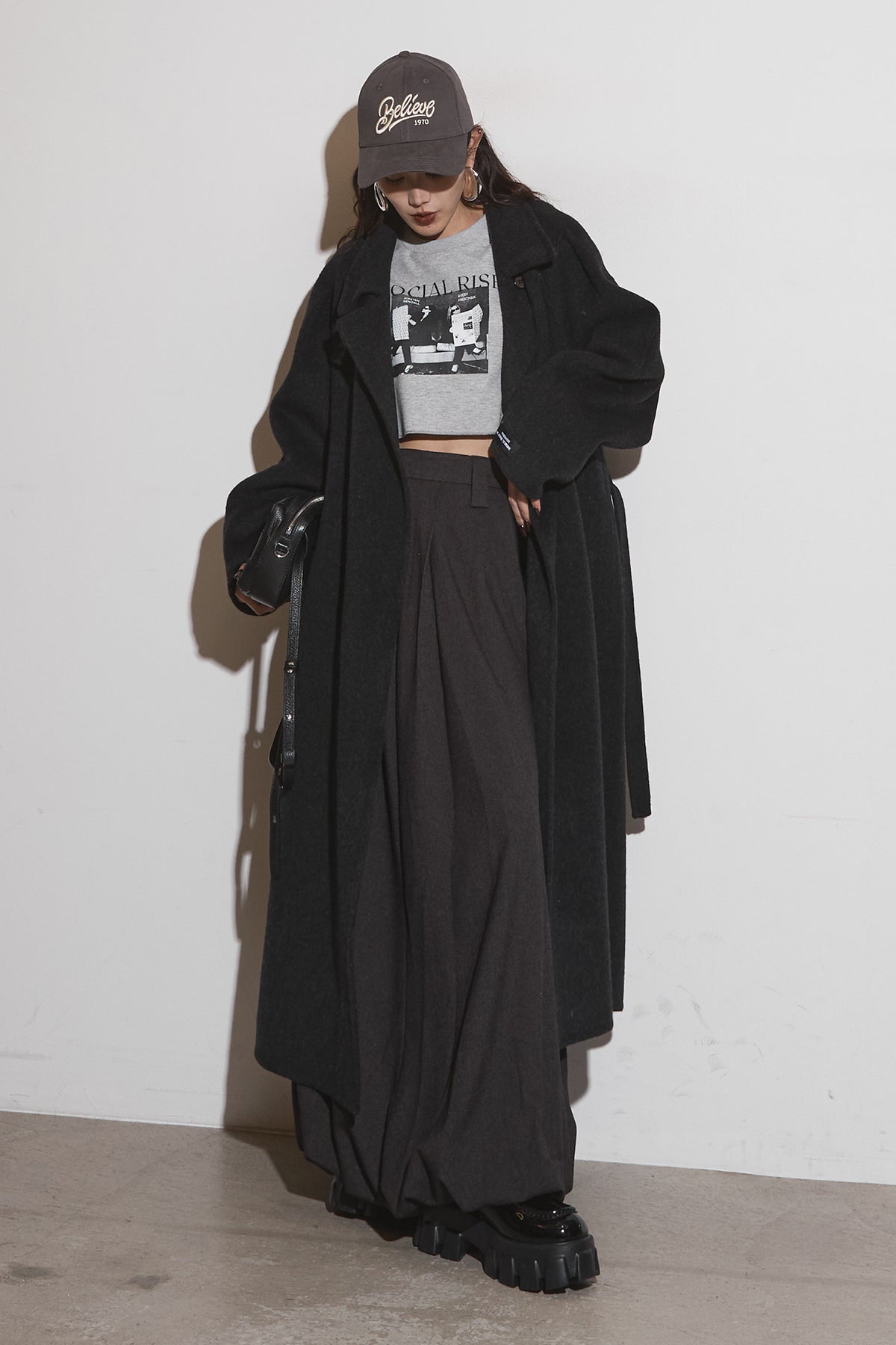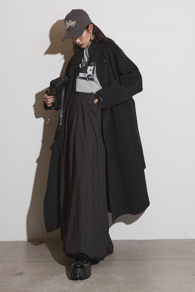 【SET】ペールウールコート+クロップドプリントプルオーバー+バルーンフレアスカート