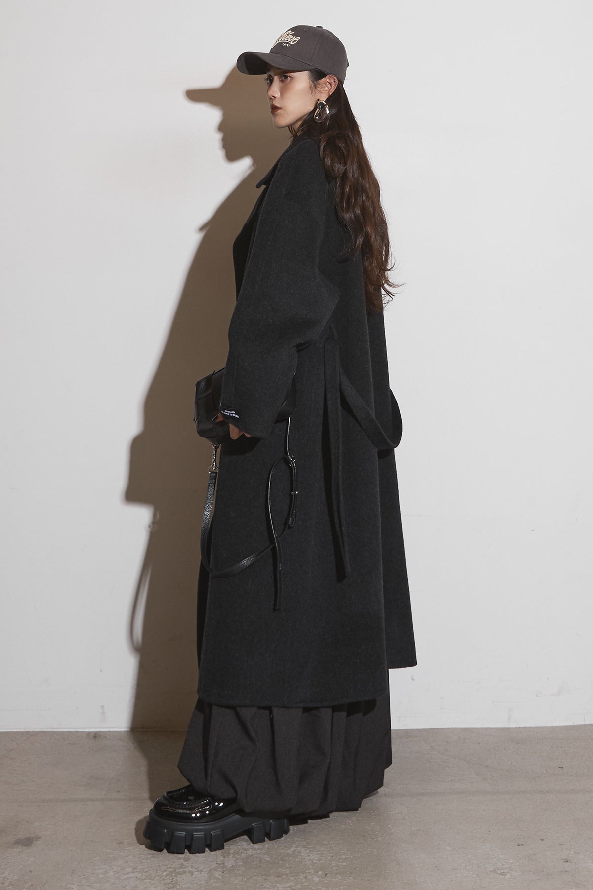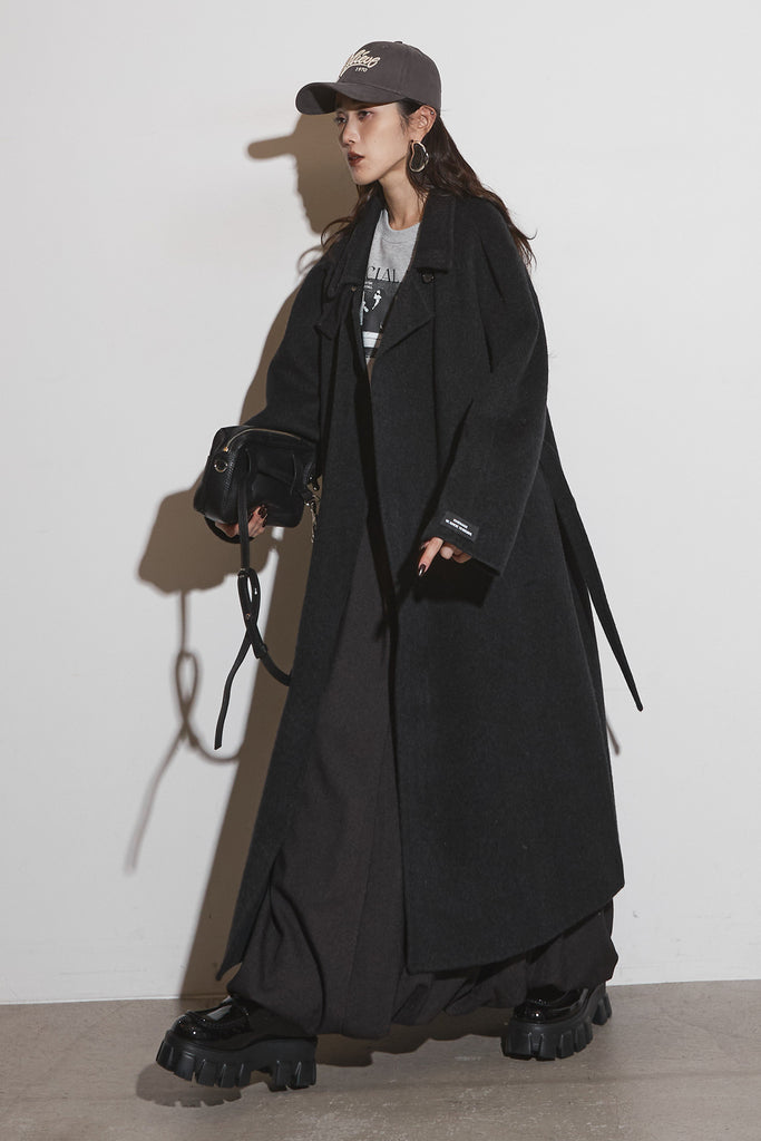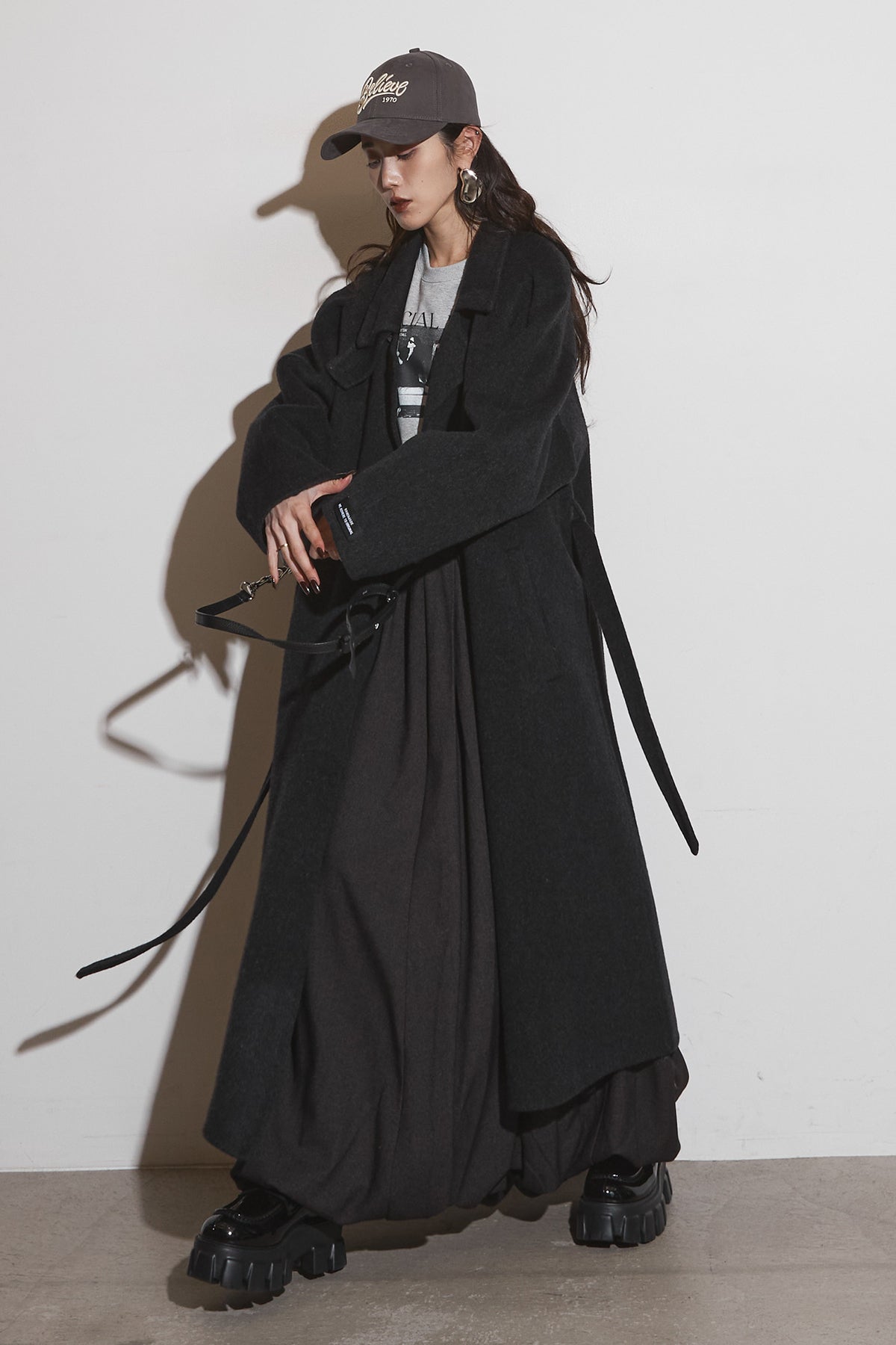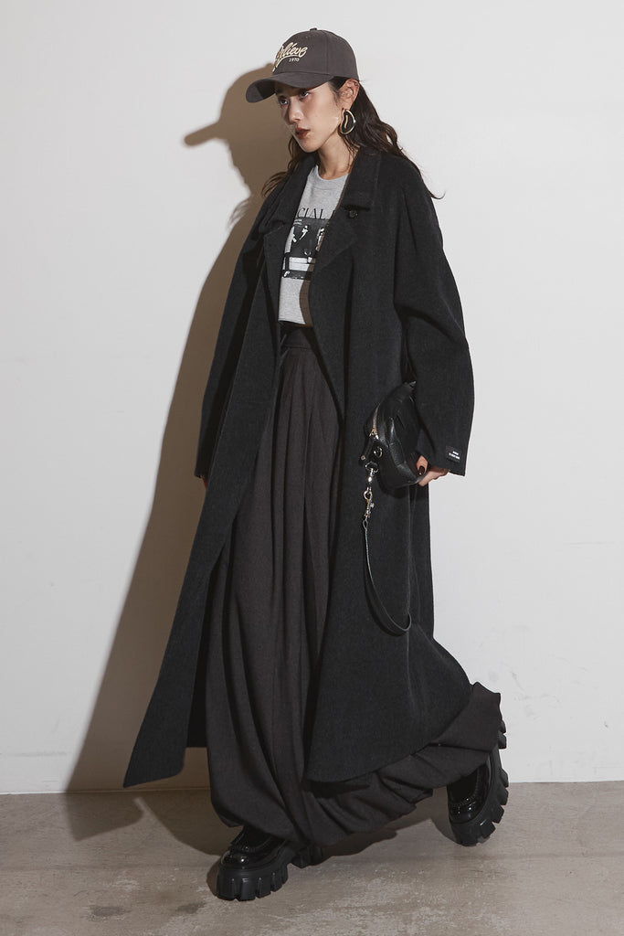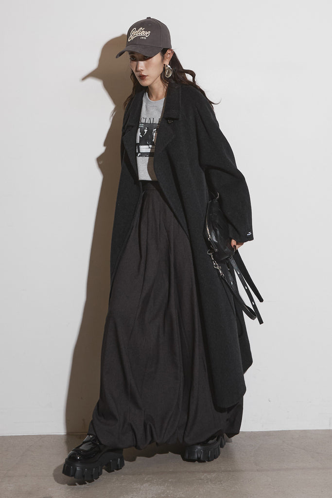 【SET】ペールウールコート+クロップドプリントプルオーバー+バルーンフレアスカート