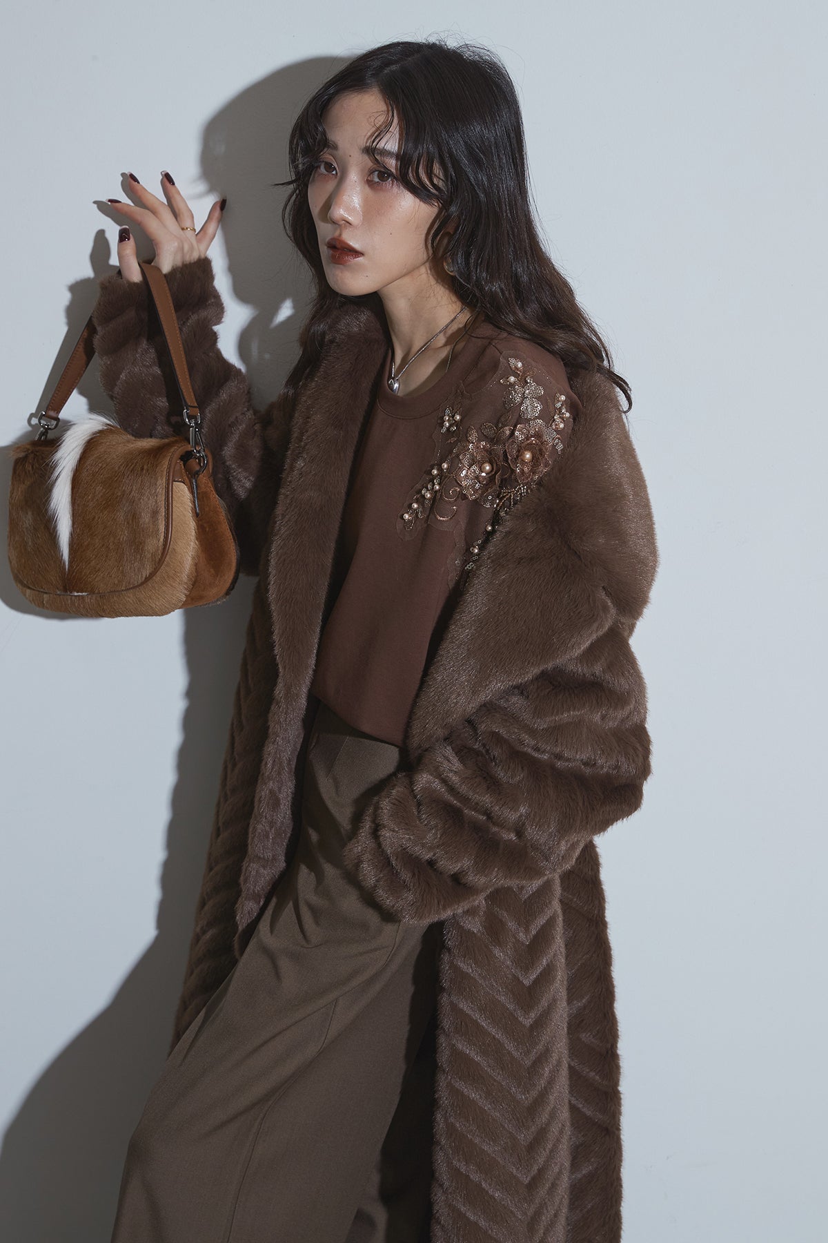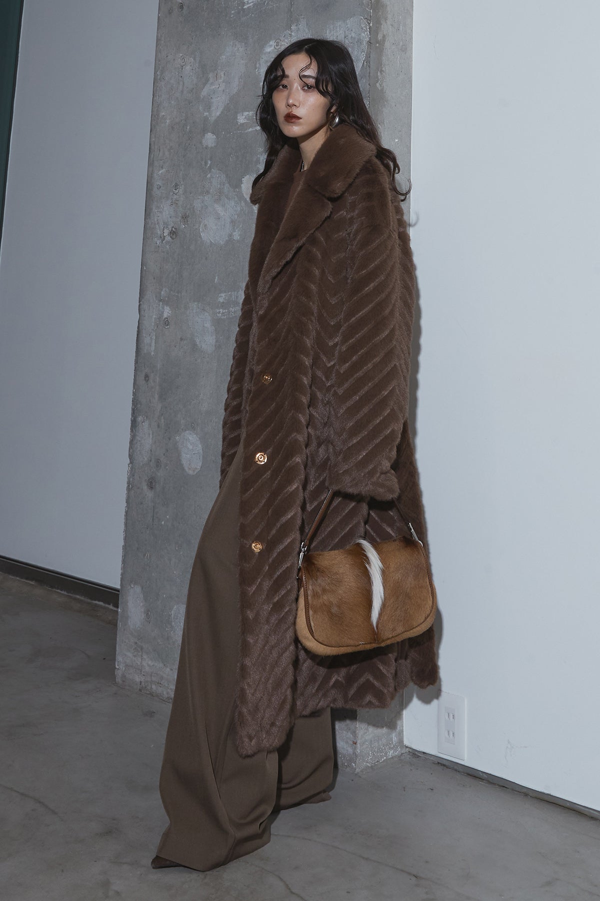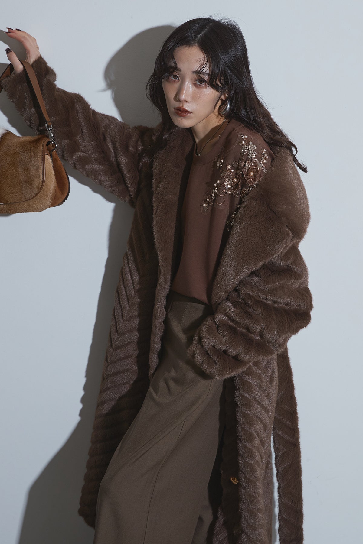 【SET】ヘリンボーンファーコート+ビジュープルオーバー+スラックス