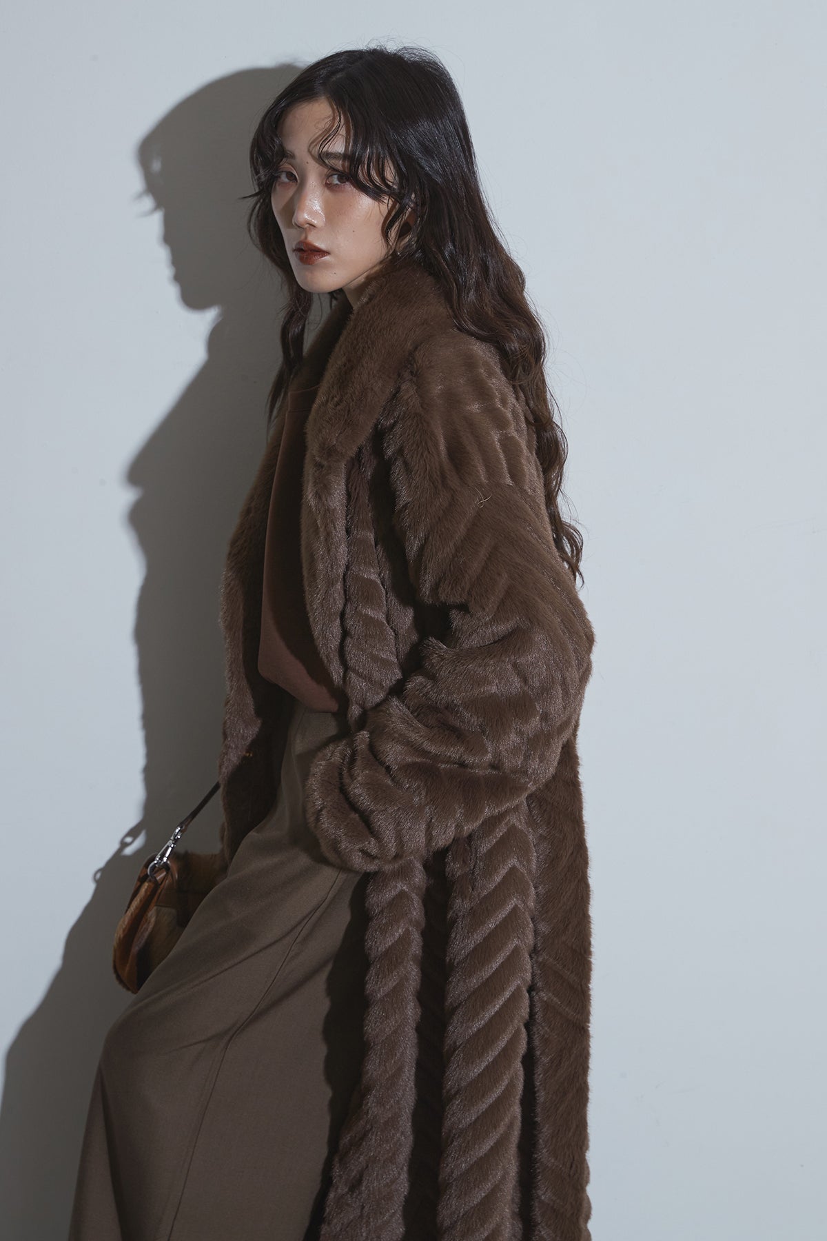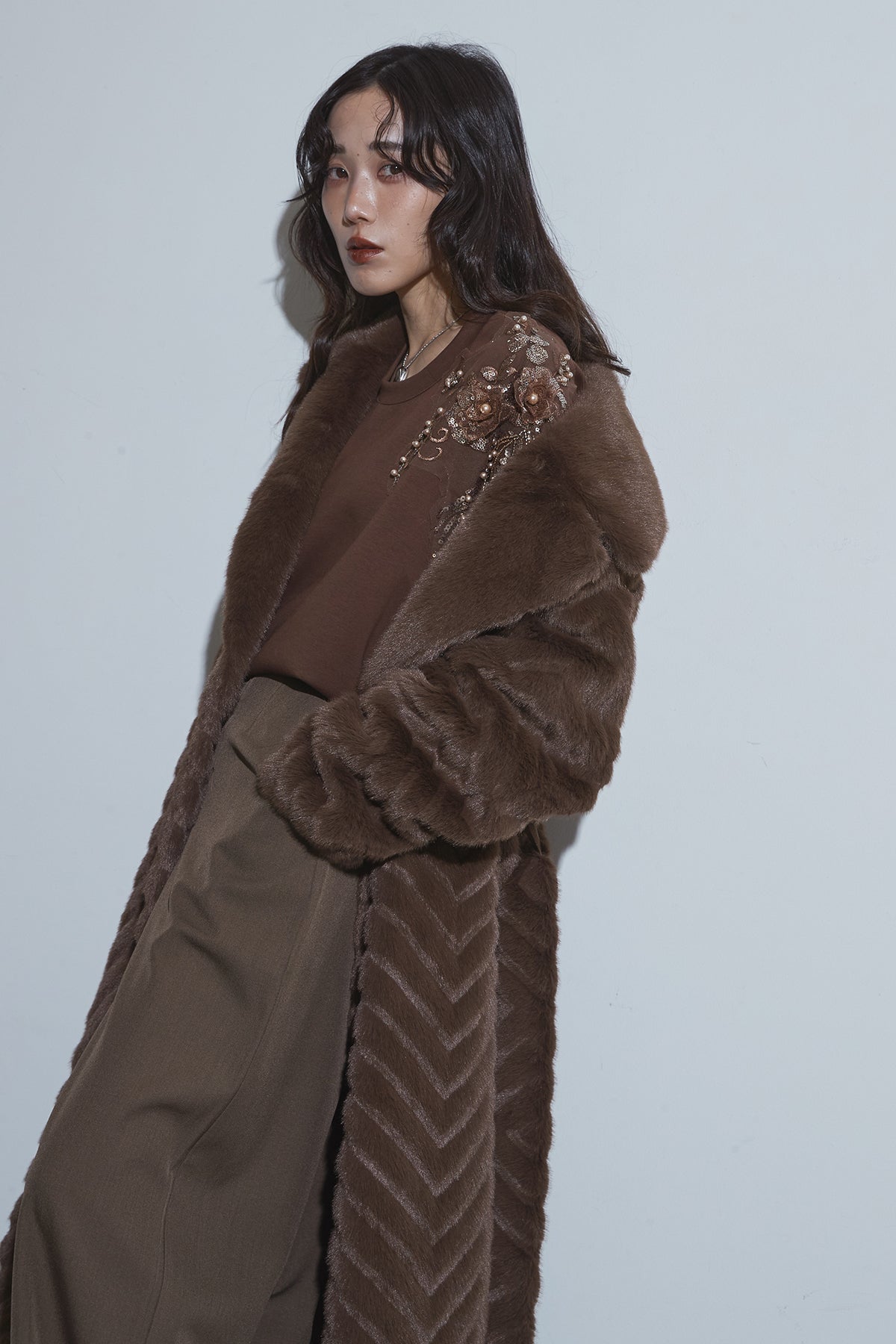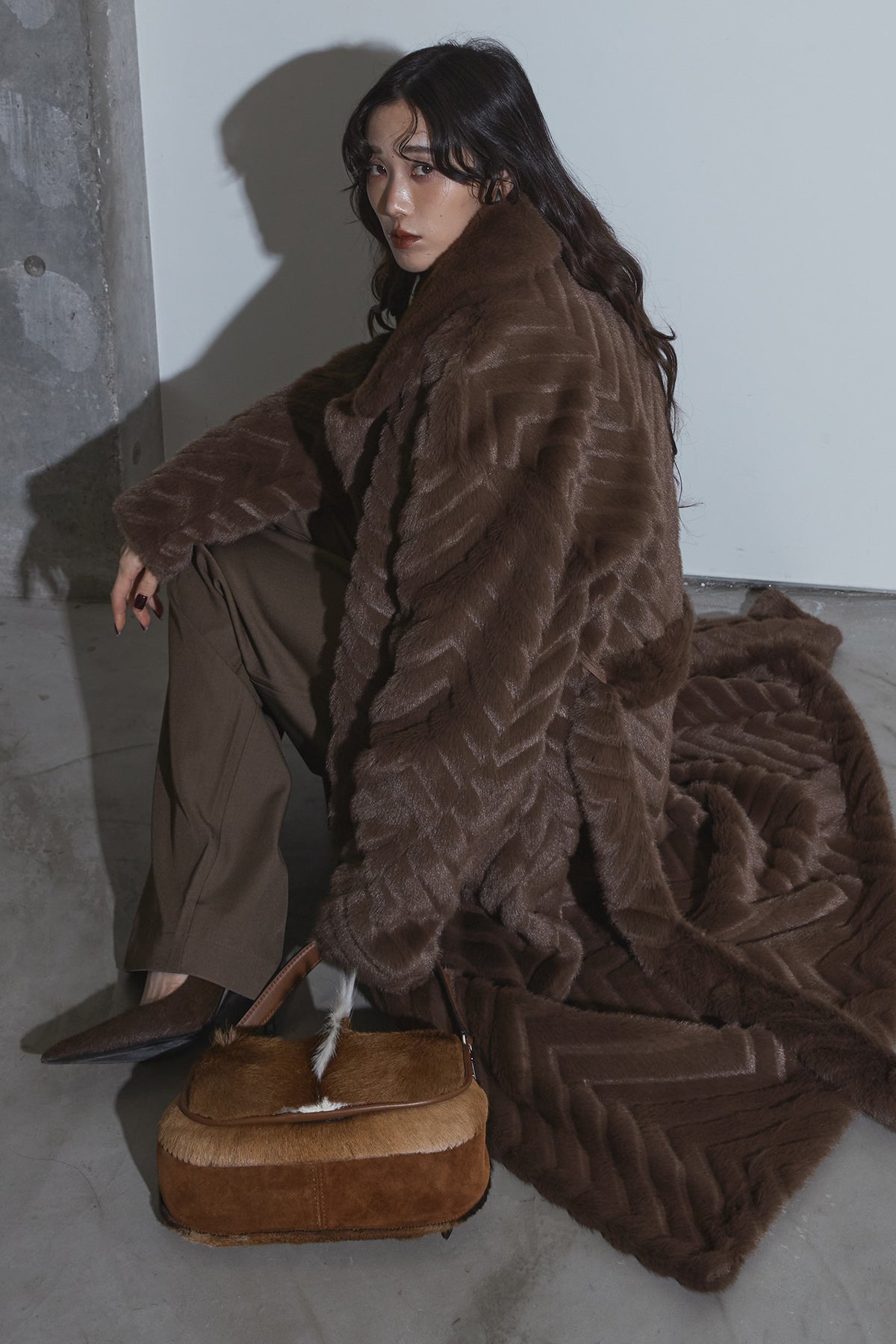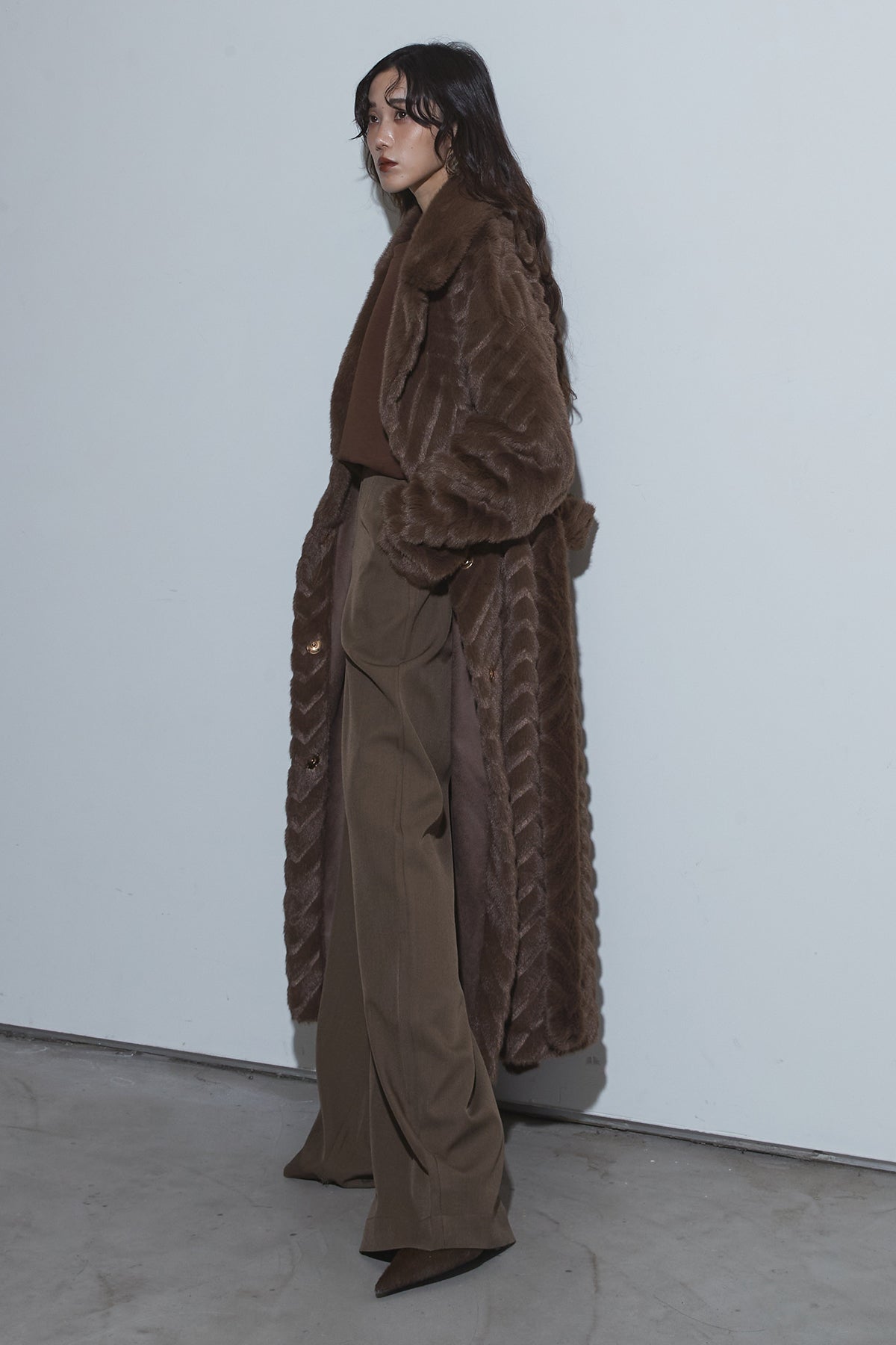 【SET】ヘリンボーンファーコート+ビジュープルオーバー+スラックス