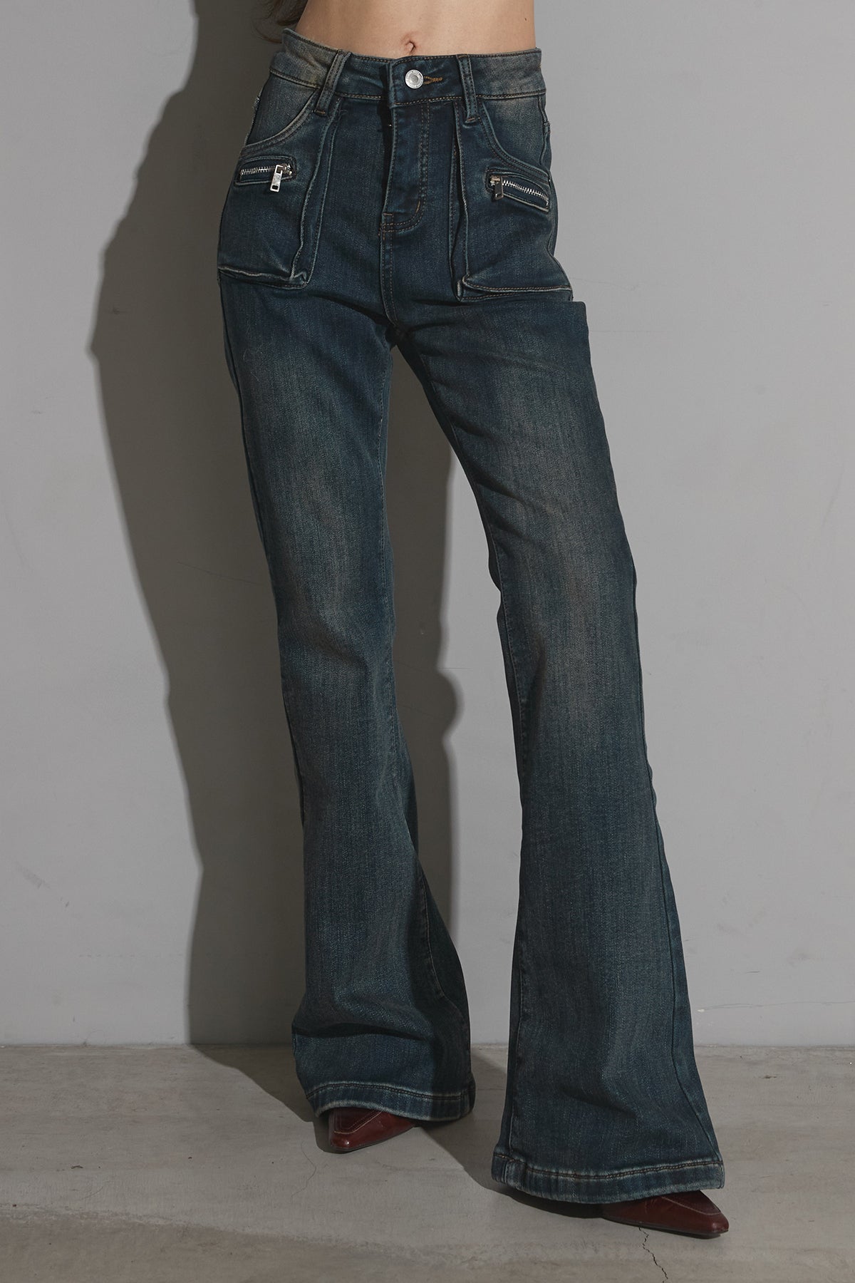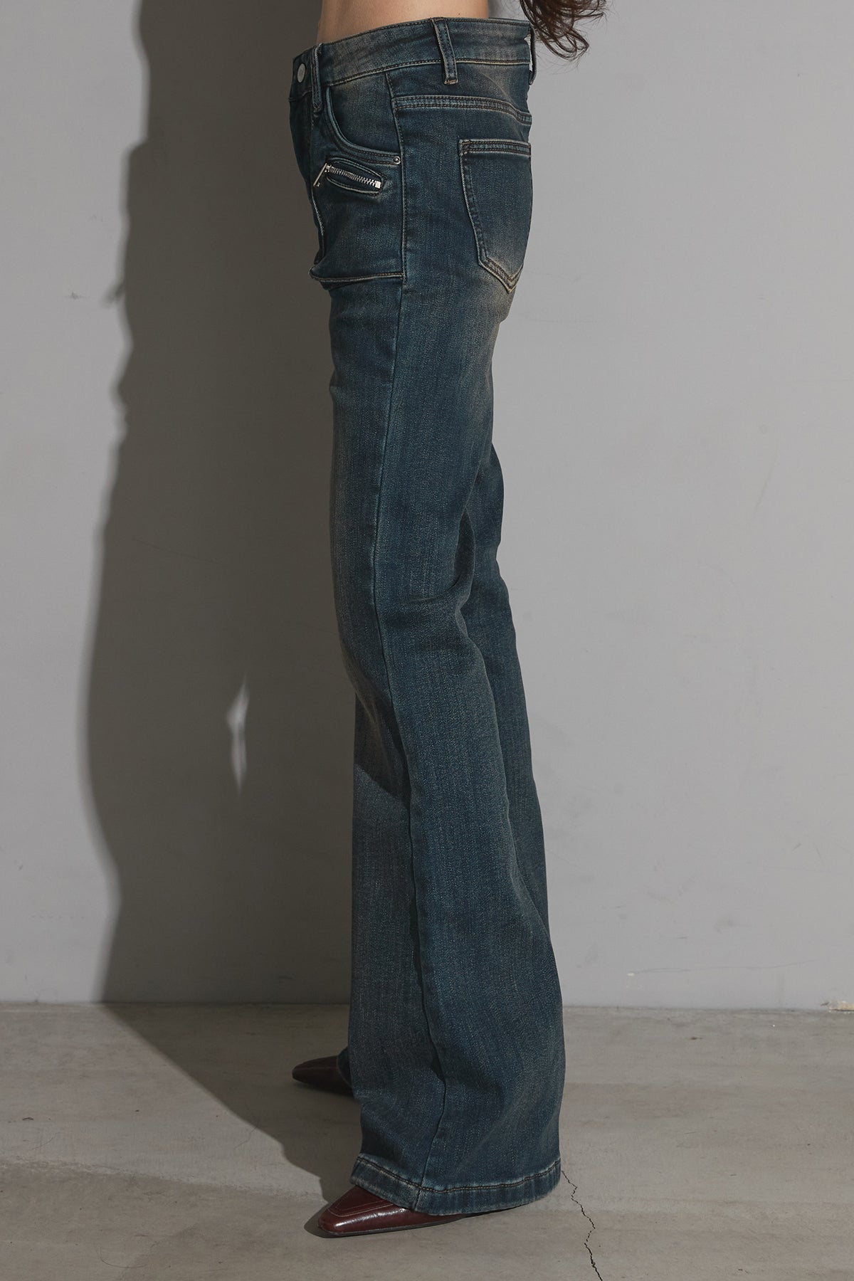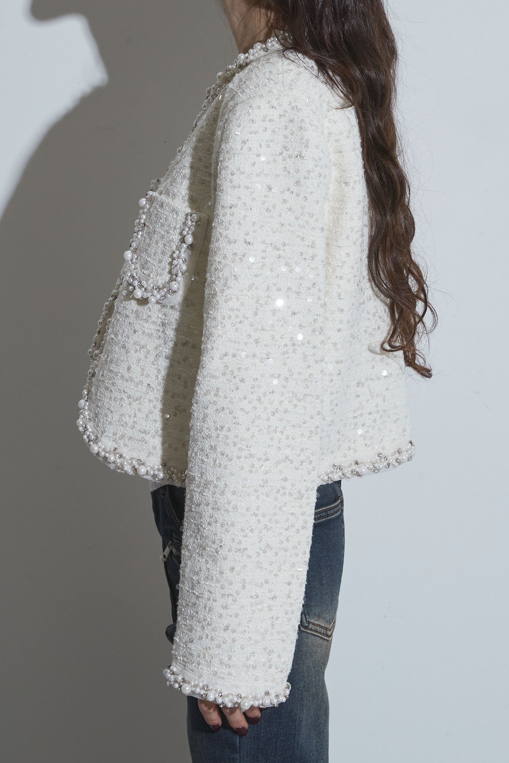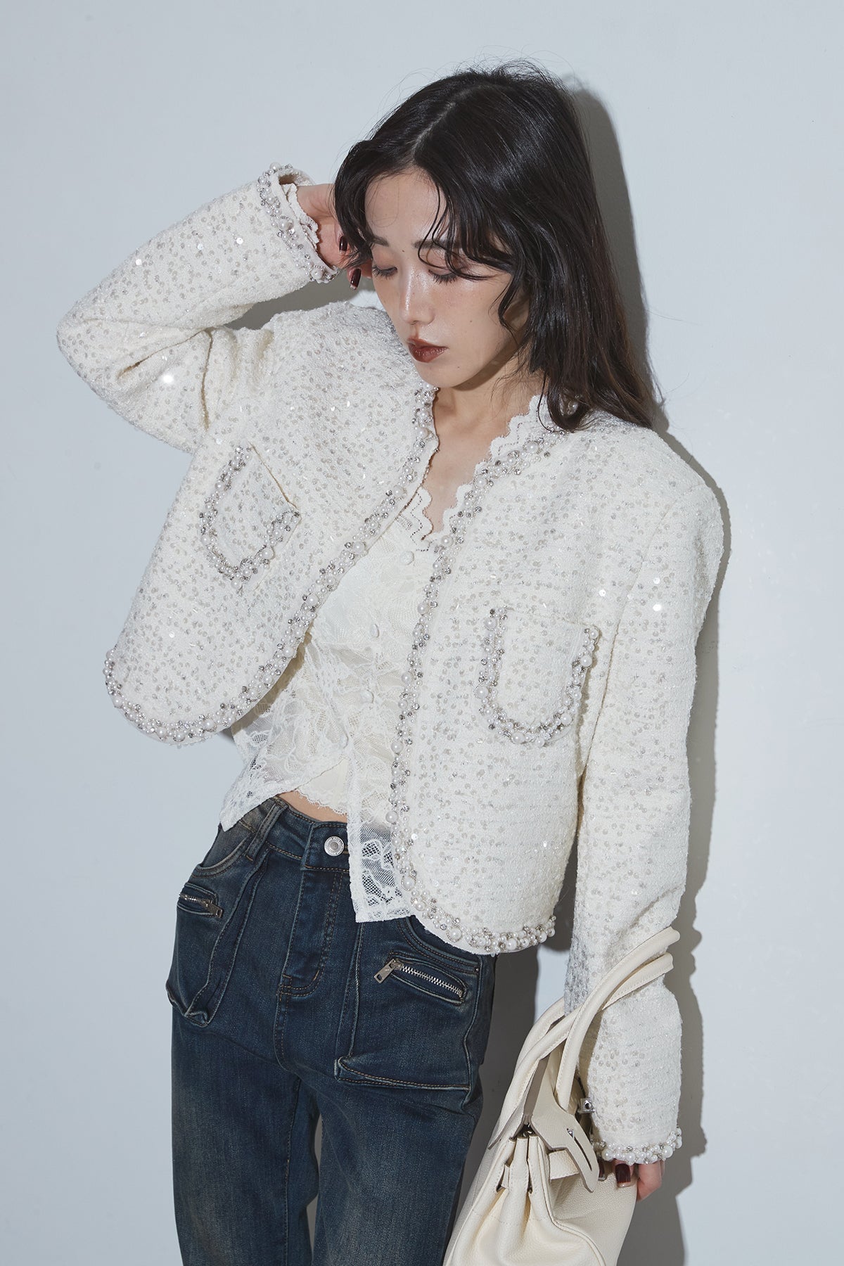 【SET】パールツイードジャケット+ZIPポケットフレアデニム