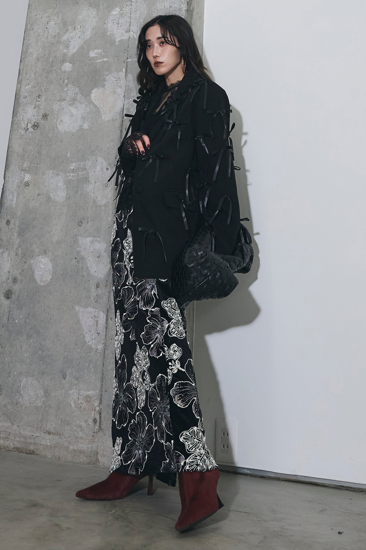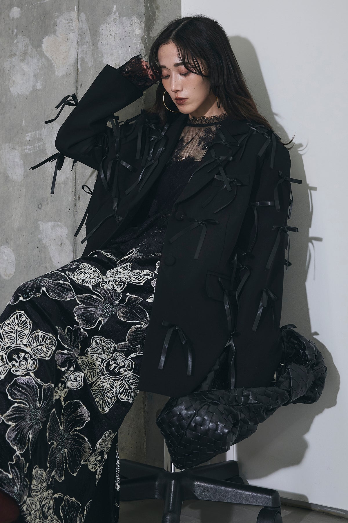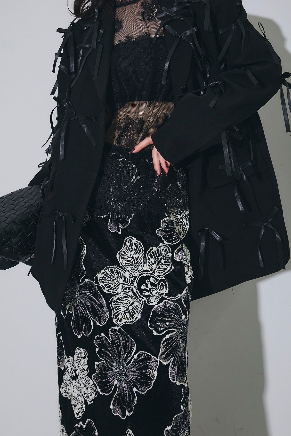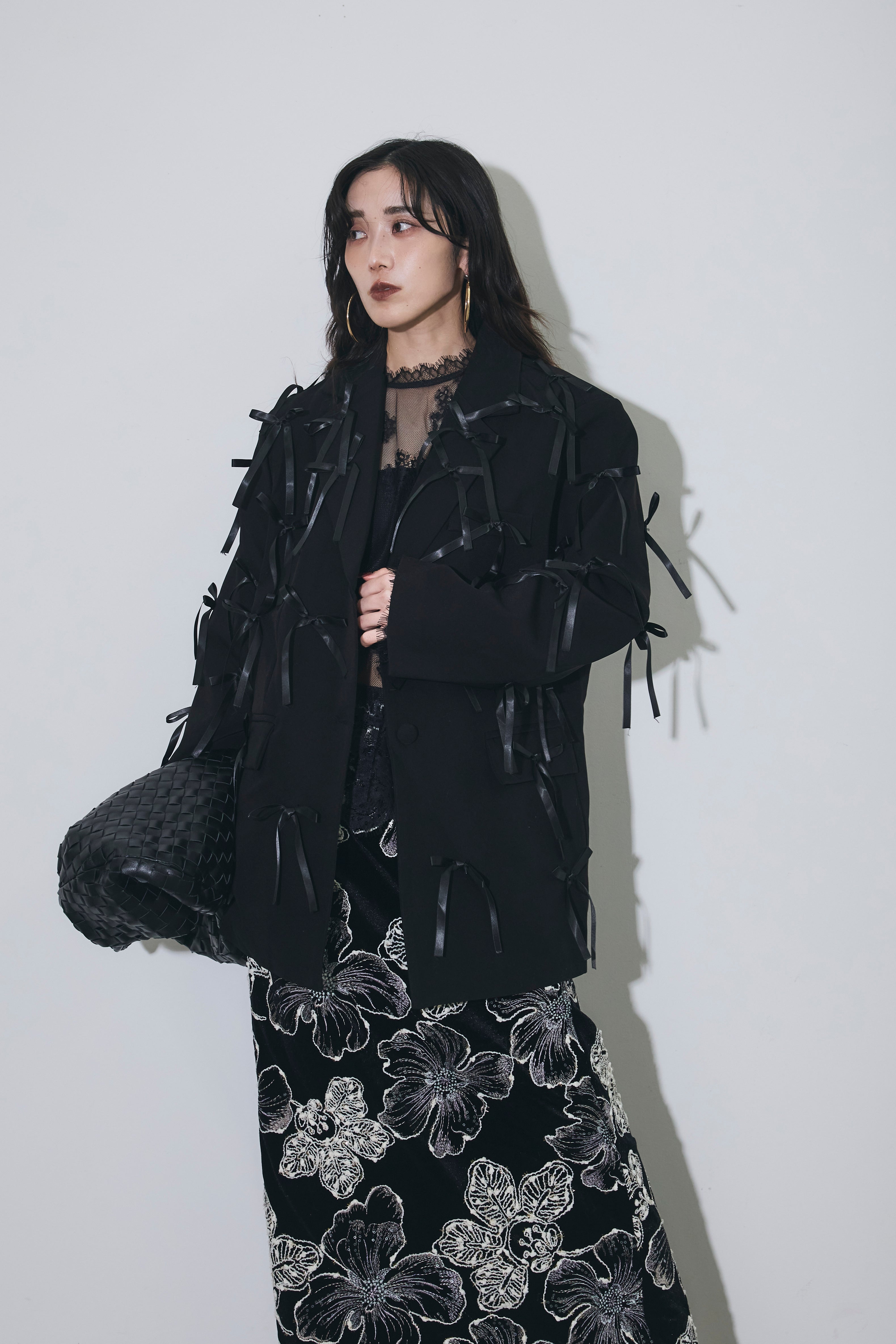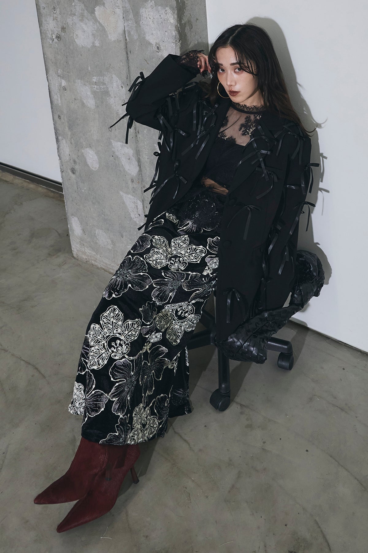 【SET】メニーリボンジャケット+ボタニカル刺繍ベロアスカート