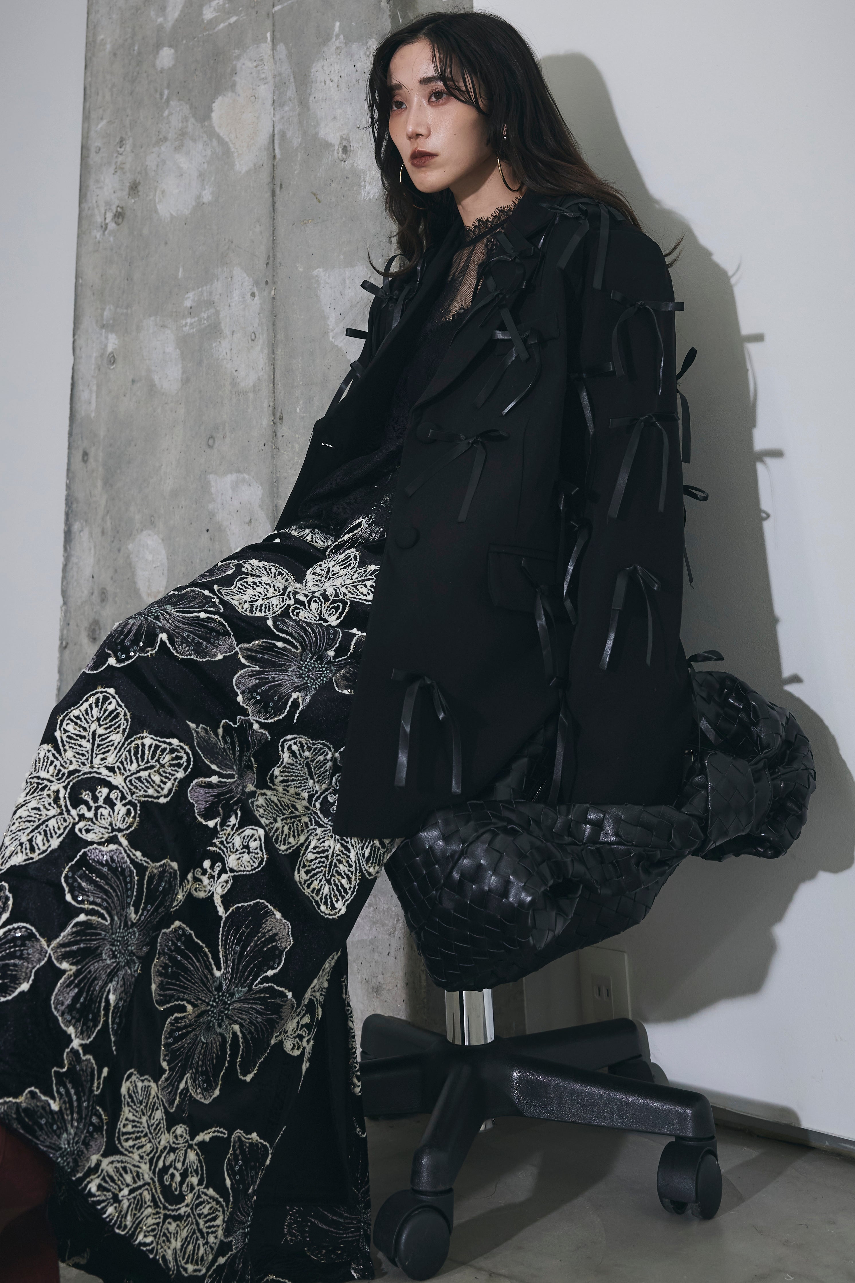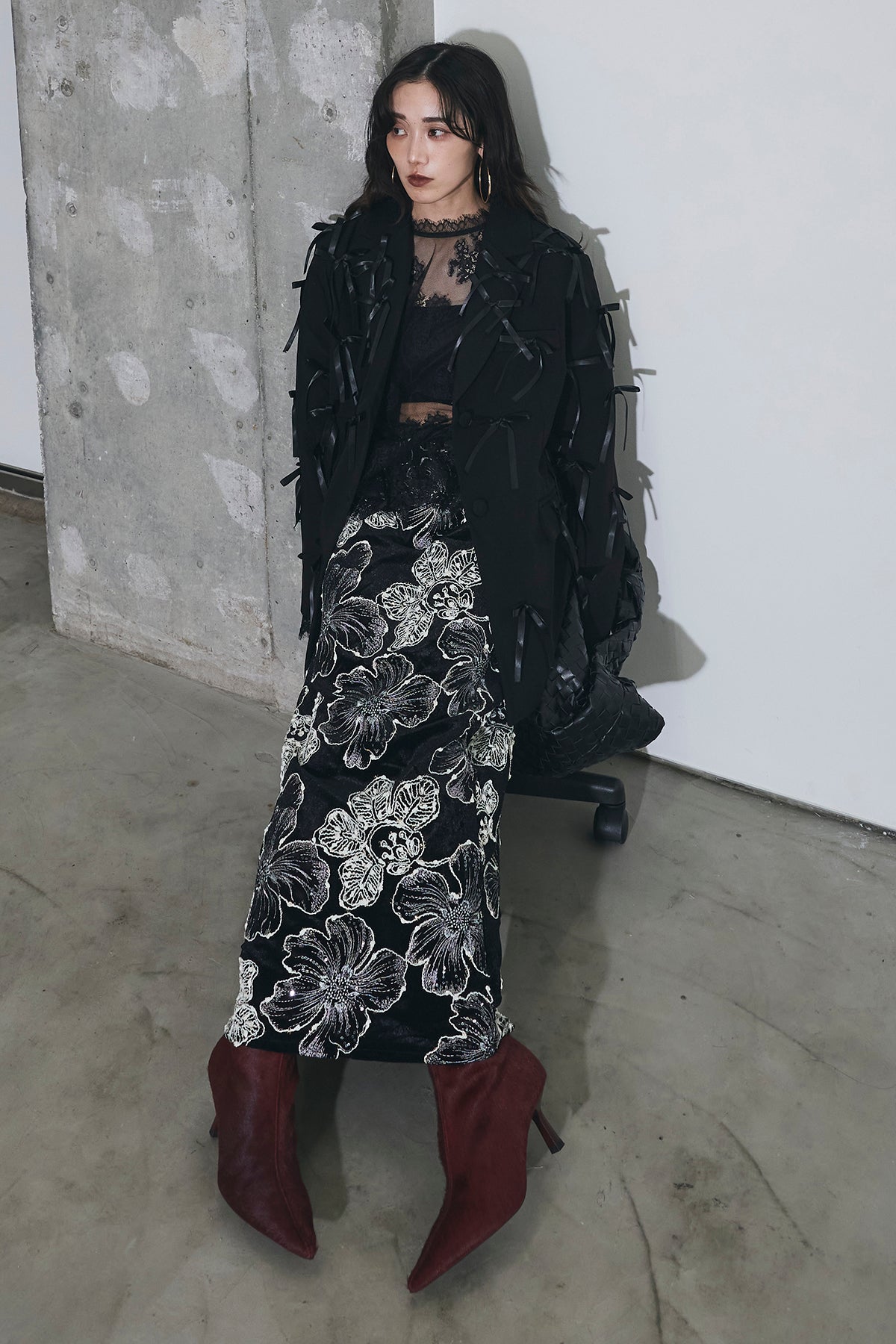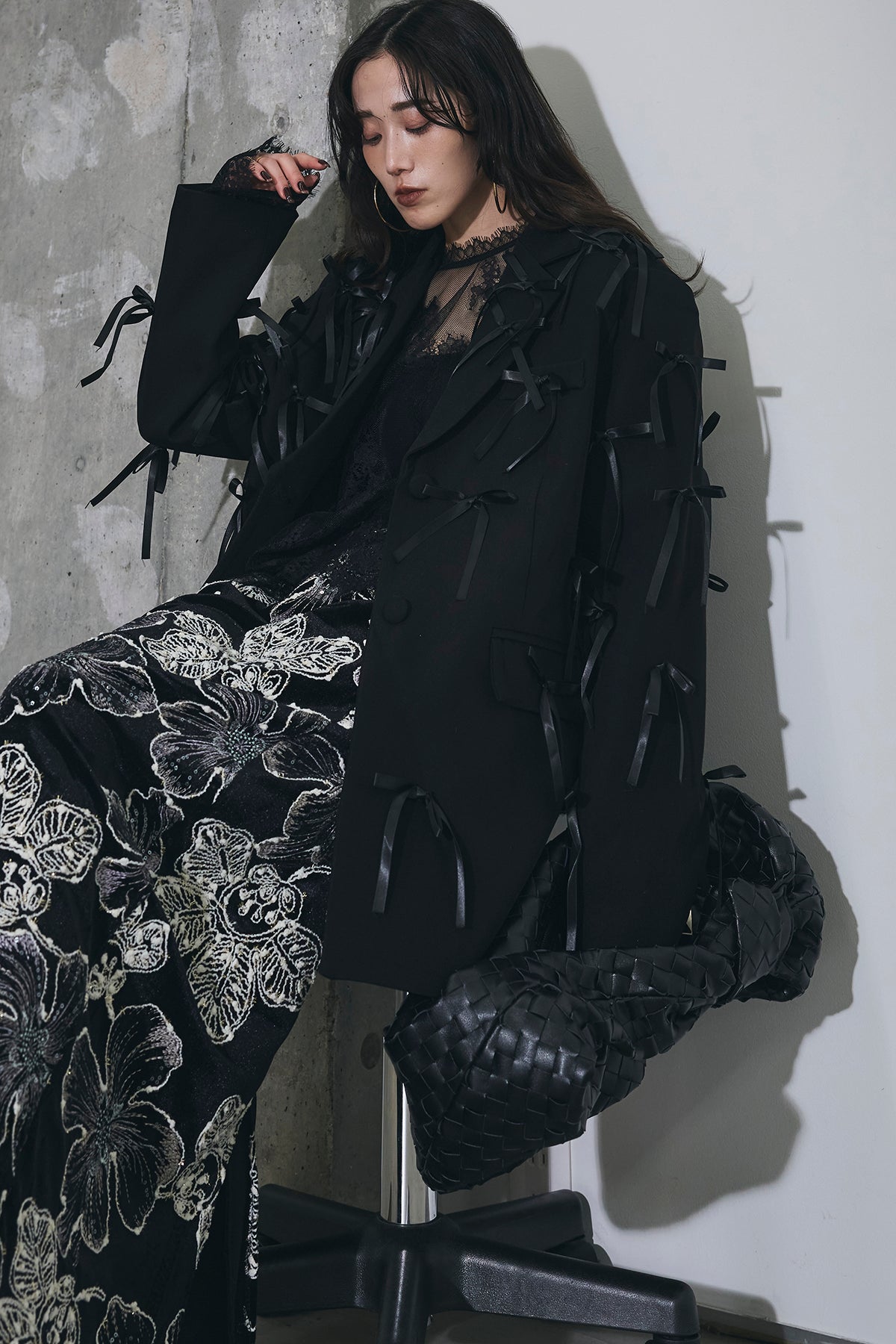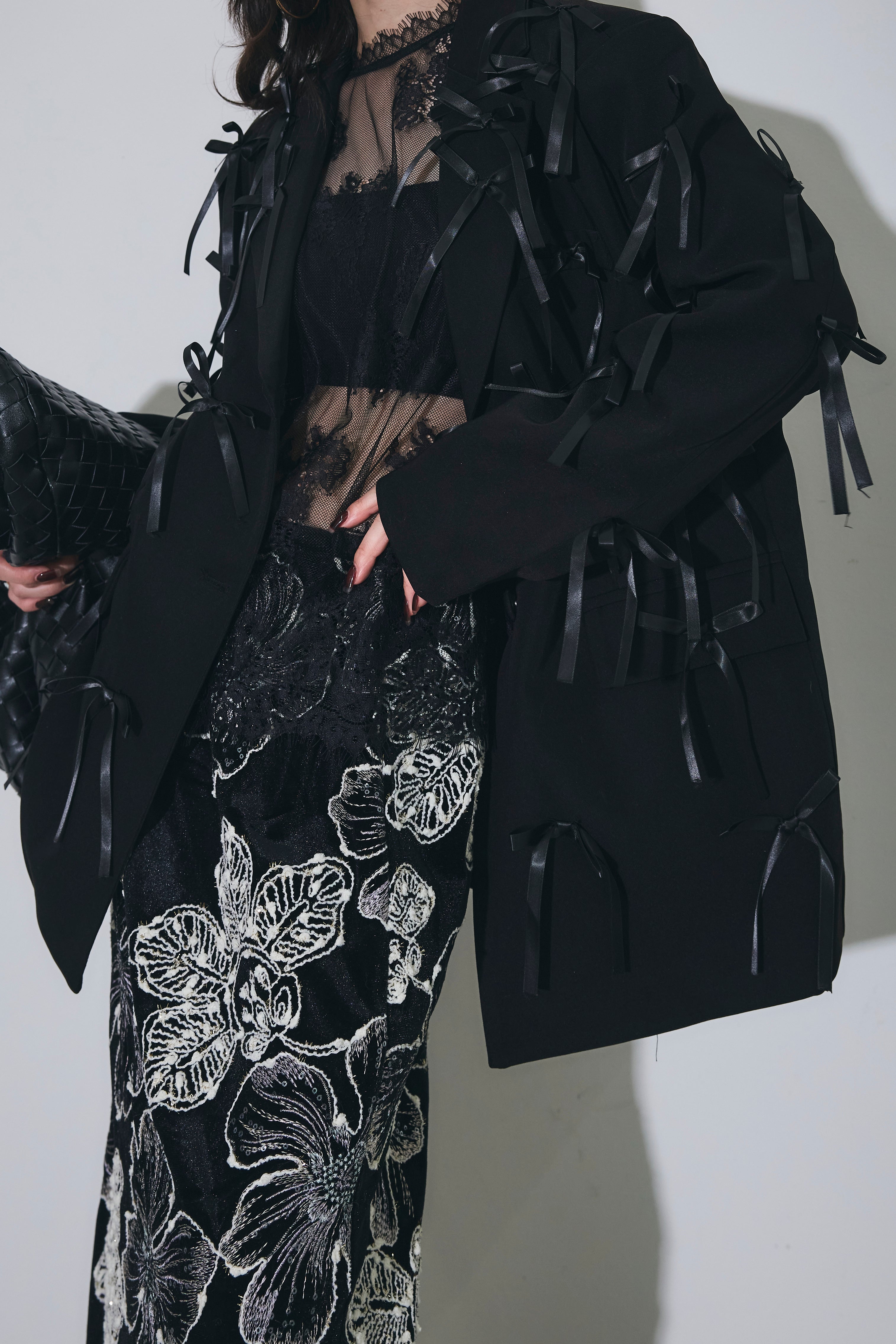 【SET】メニーリボンジャケット+ボタニカル刺繍ベロアスカート