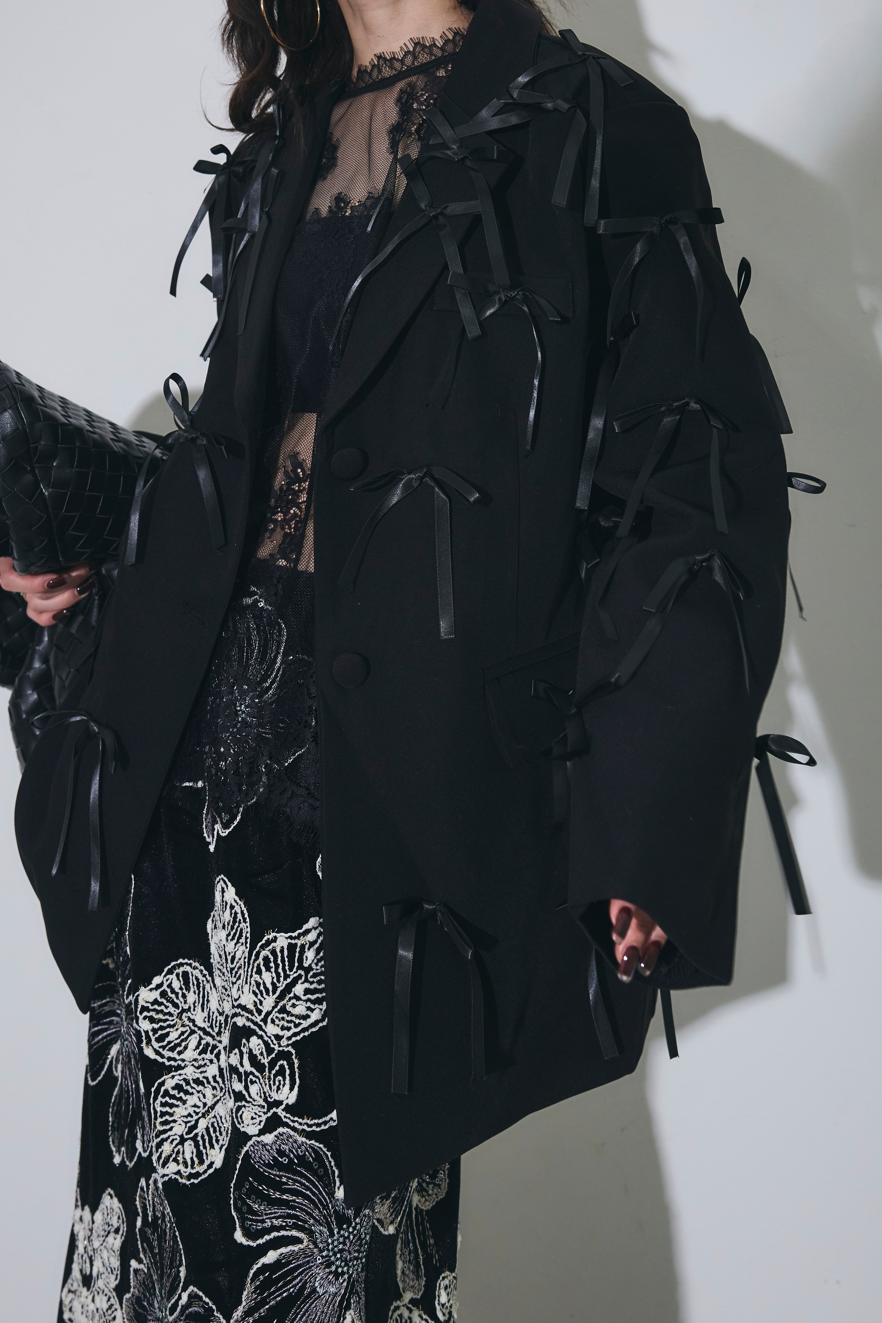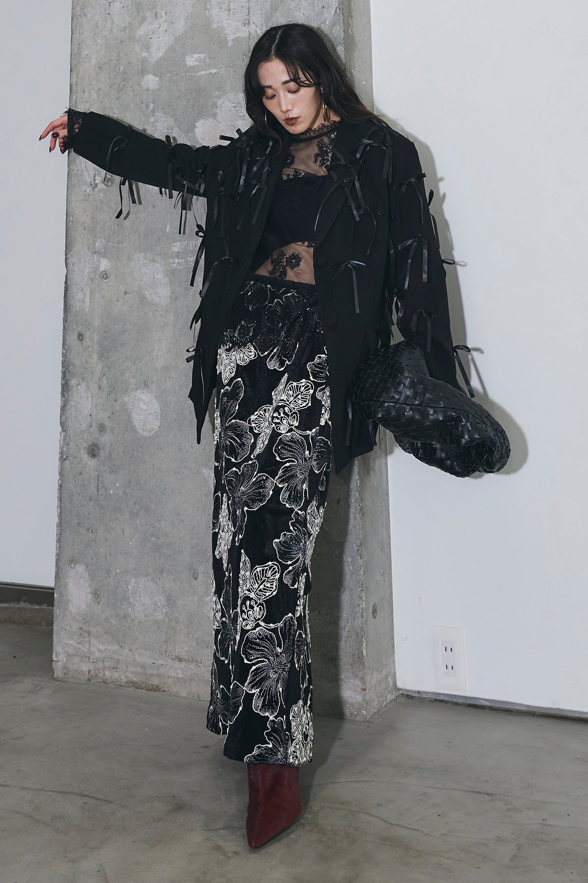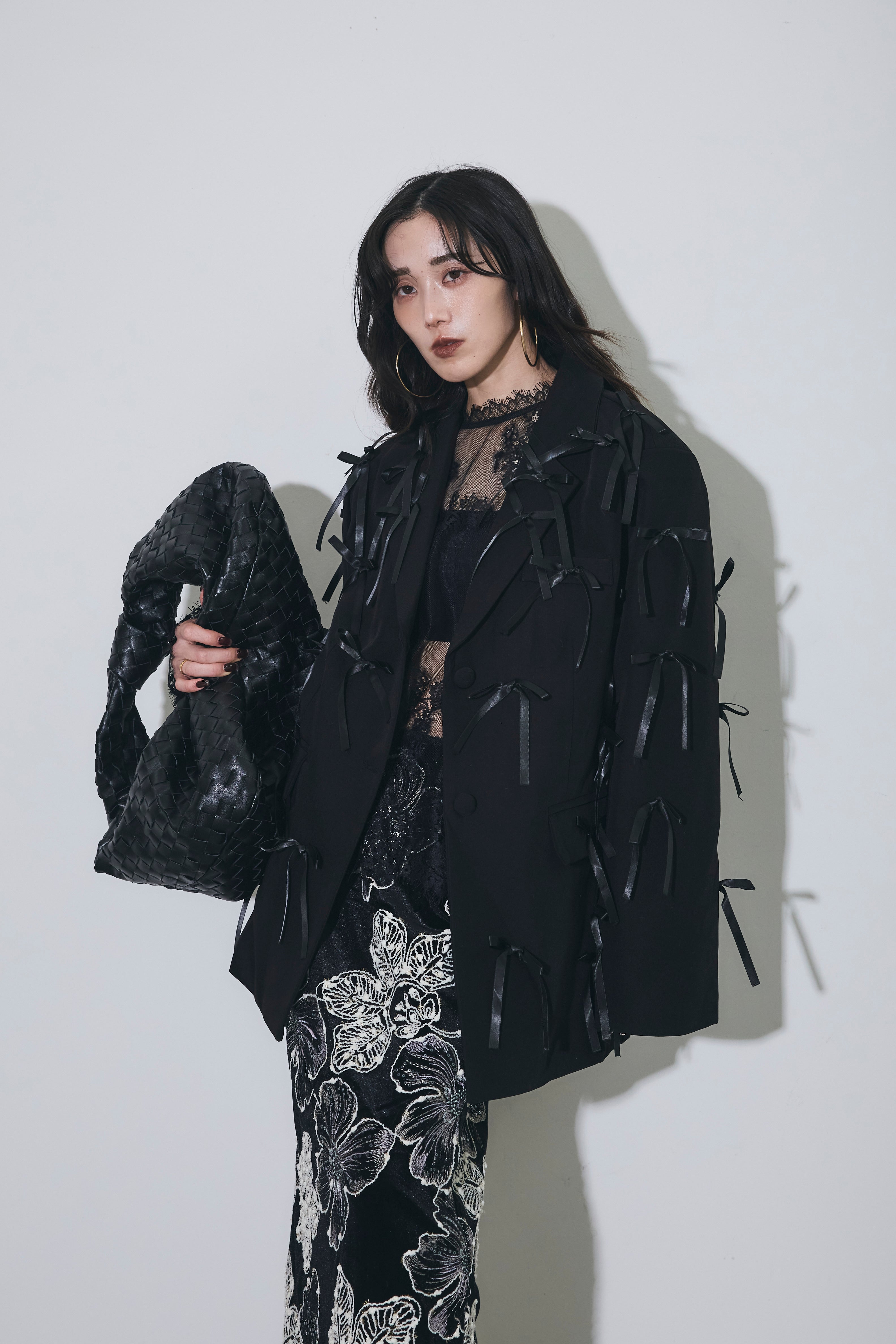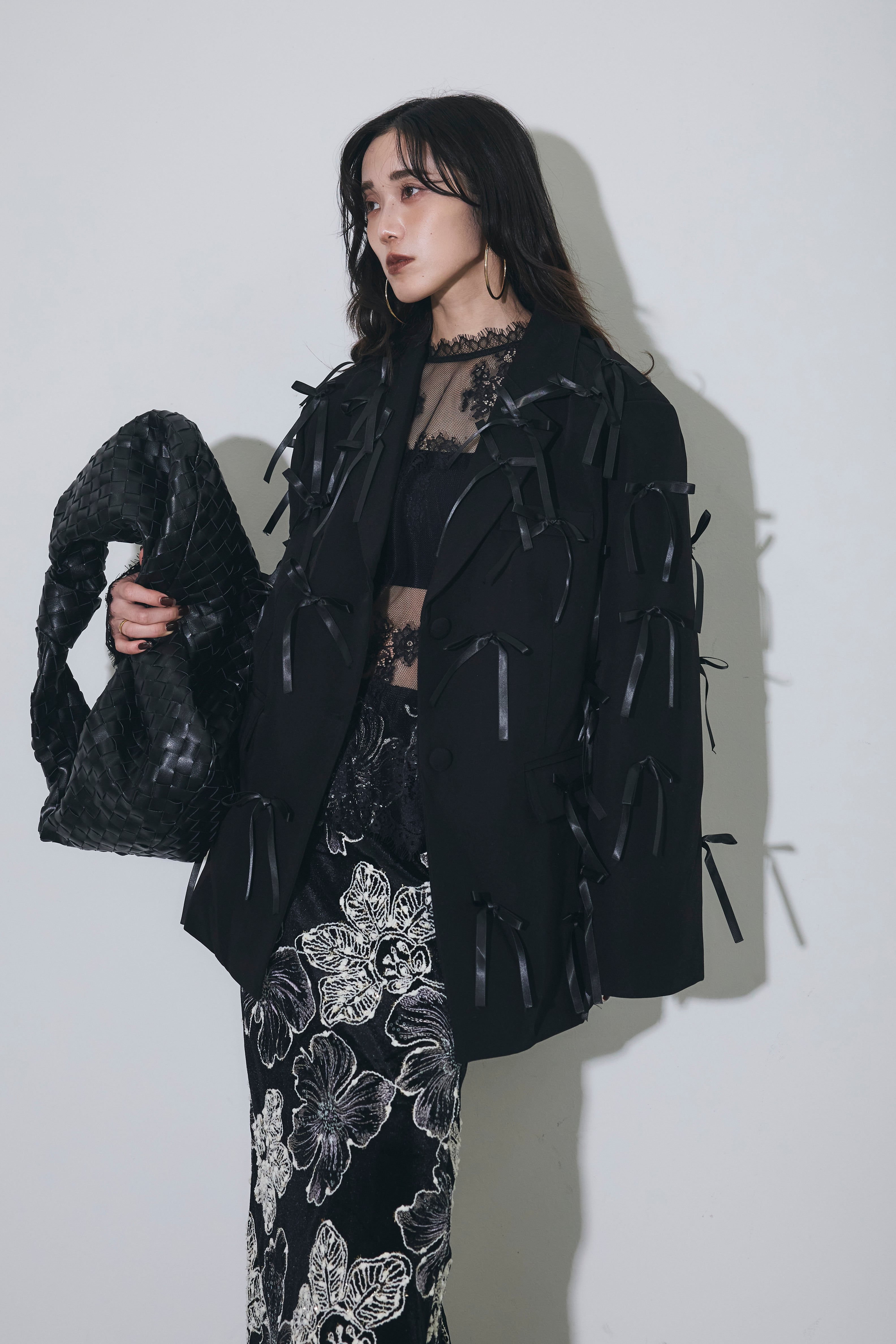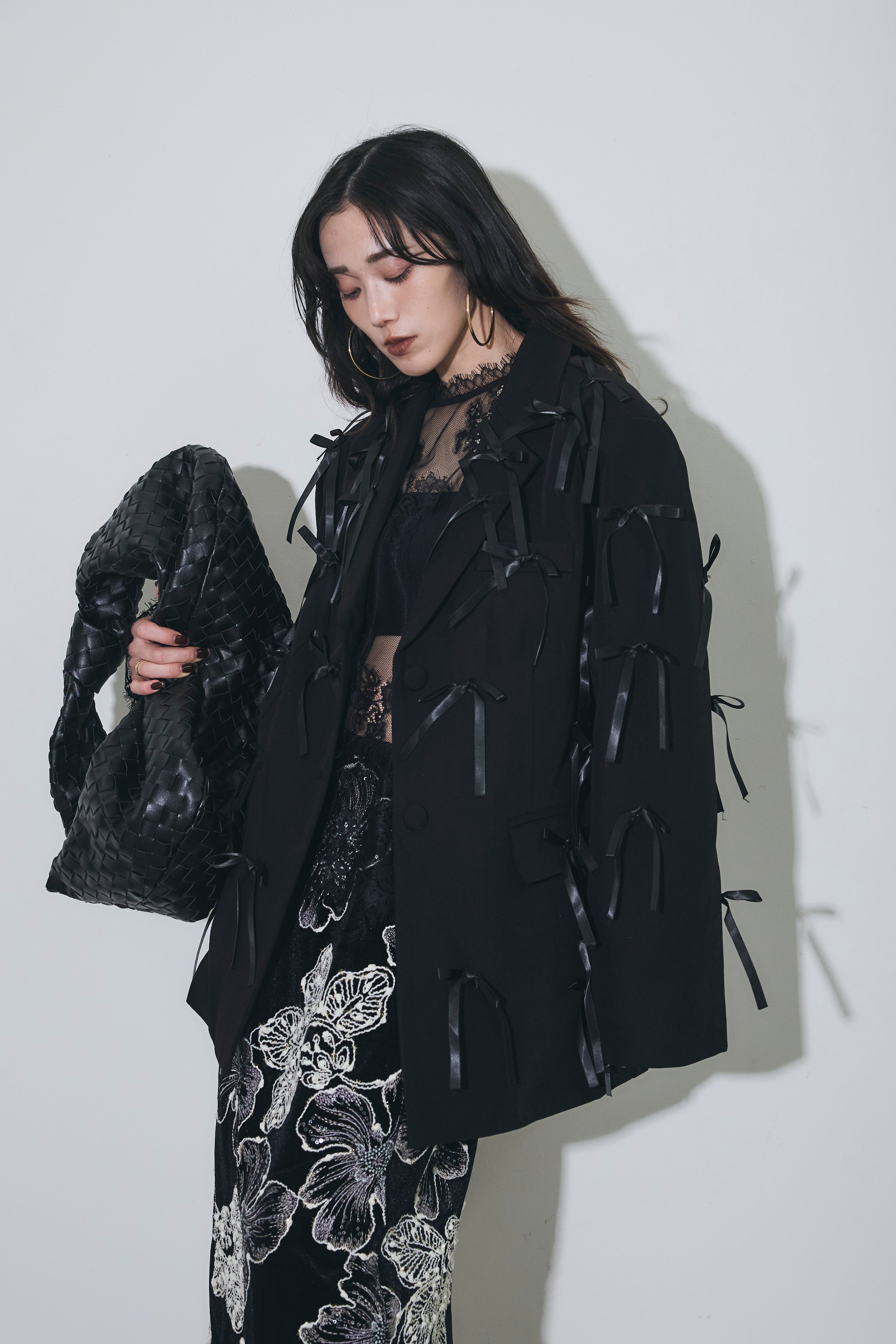 【SET】メニーリボンジャケット+ボタニカル刺繍ベロアスカート