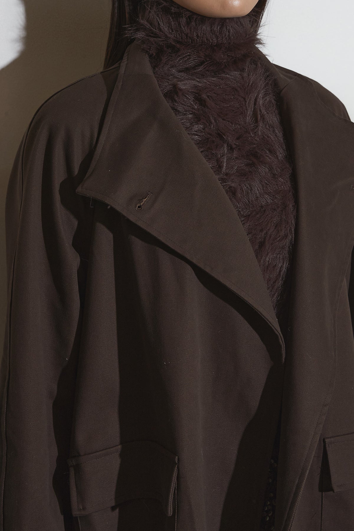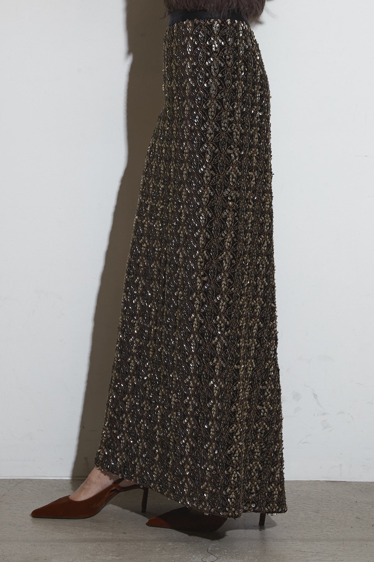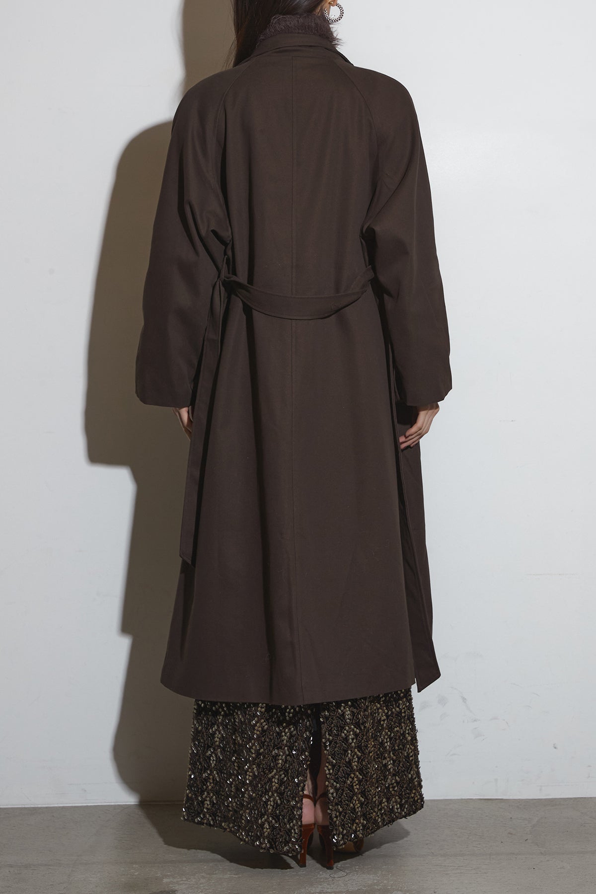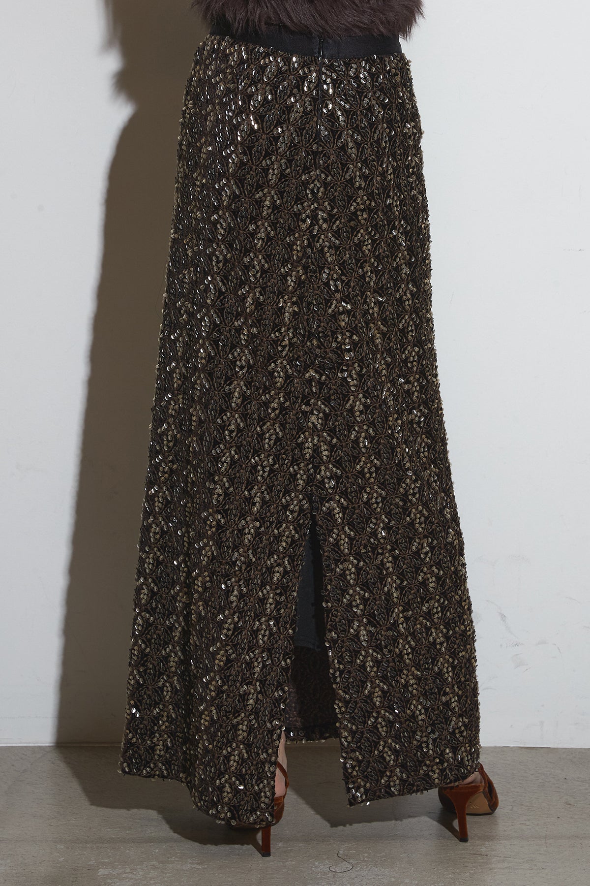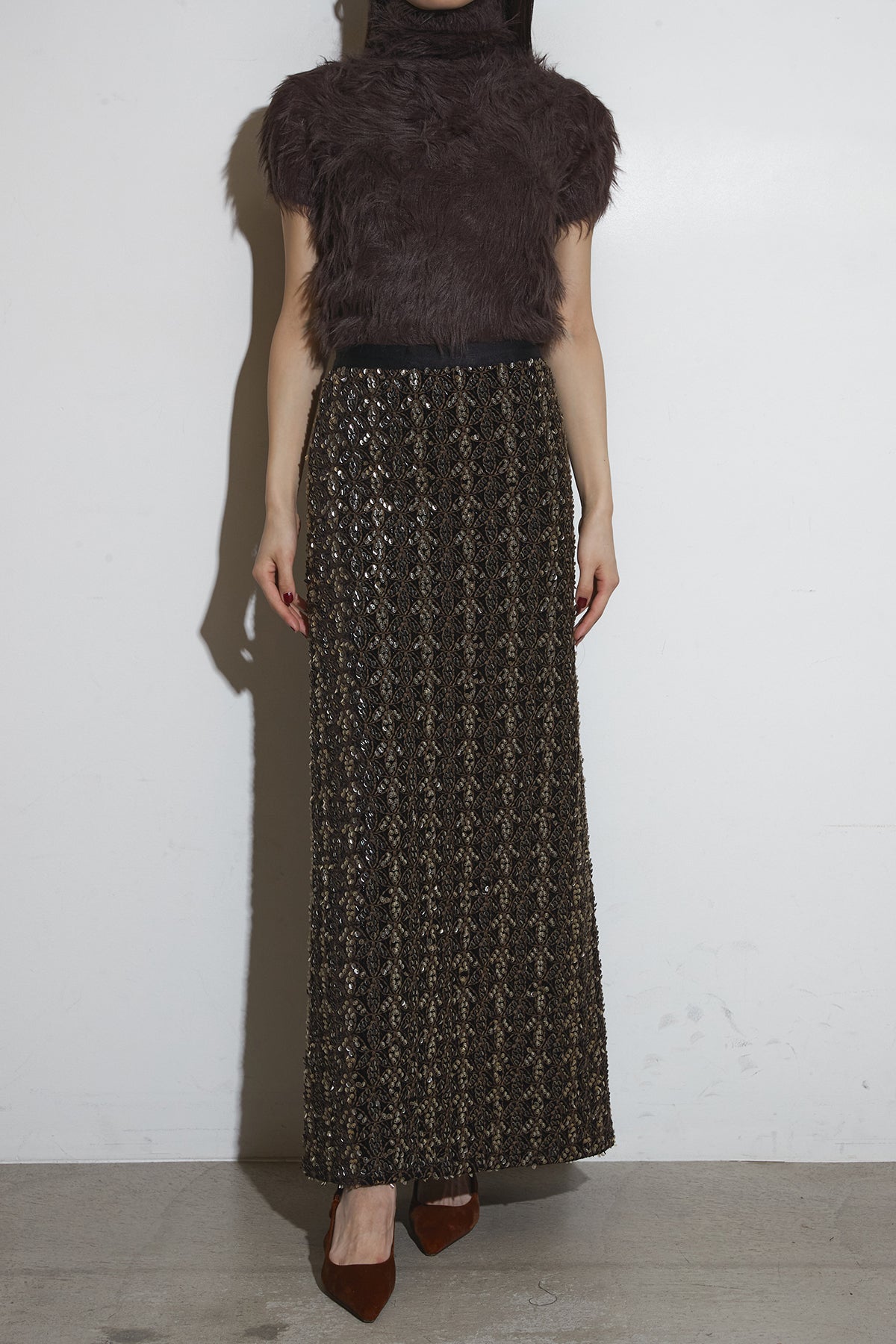 【SET】ベルテッドロングコート+ショートスリーブシャギーニット+コード刺繍スパンコールスカート