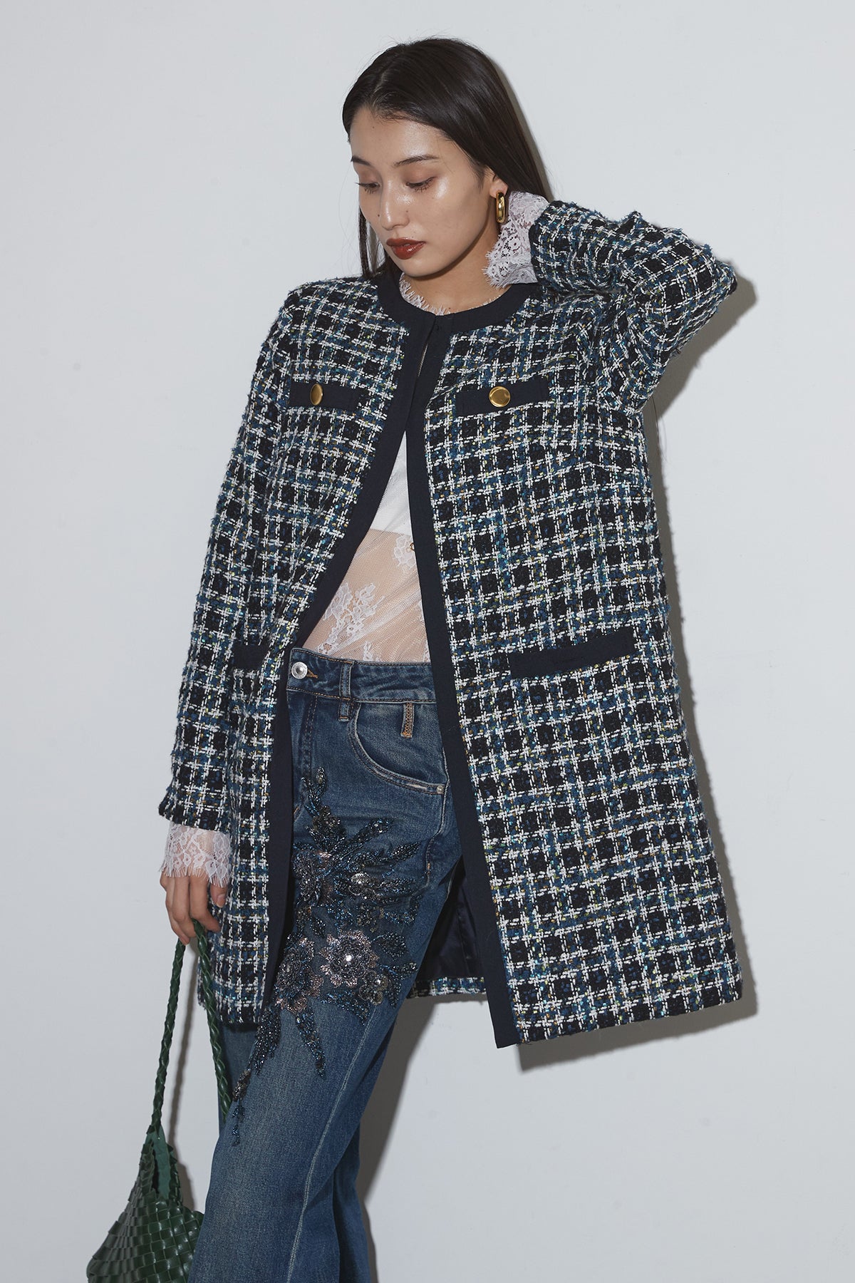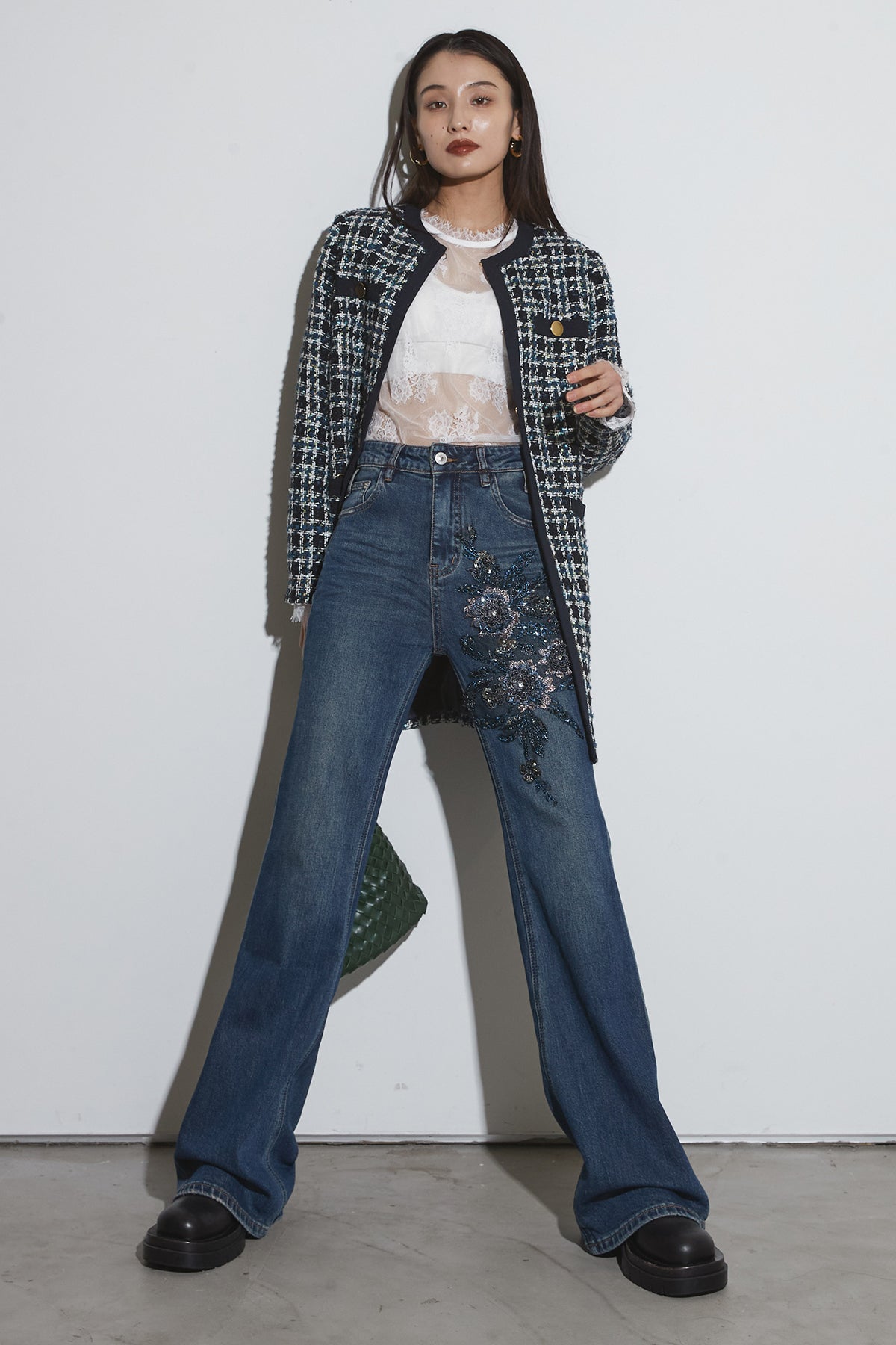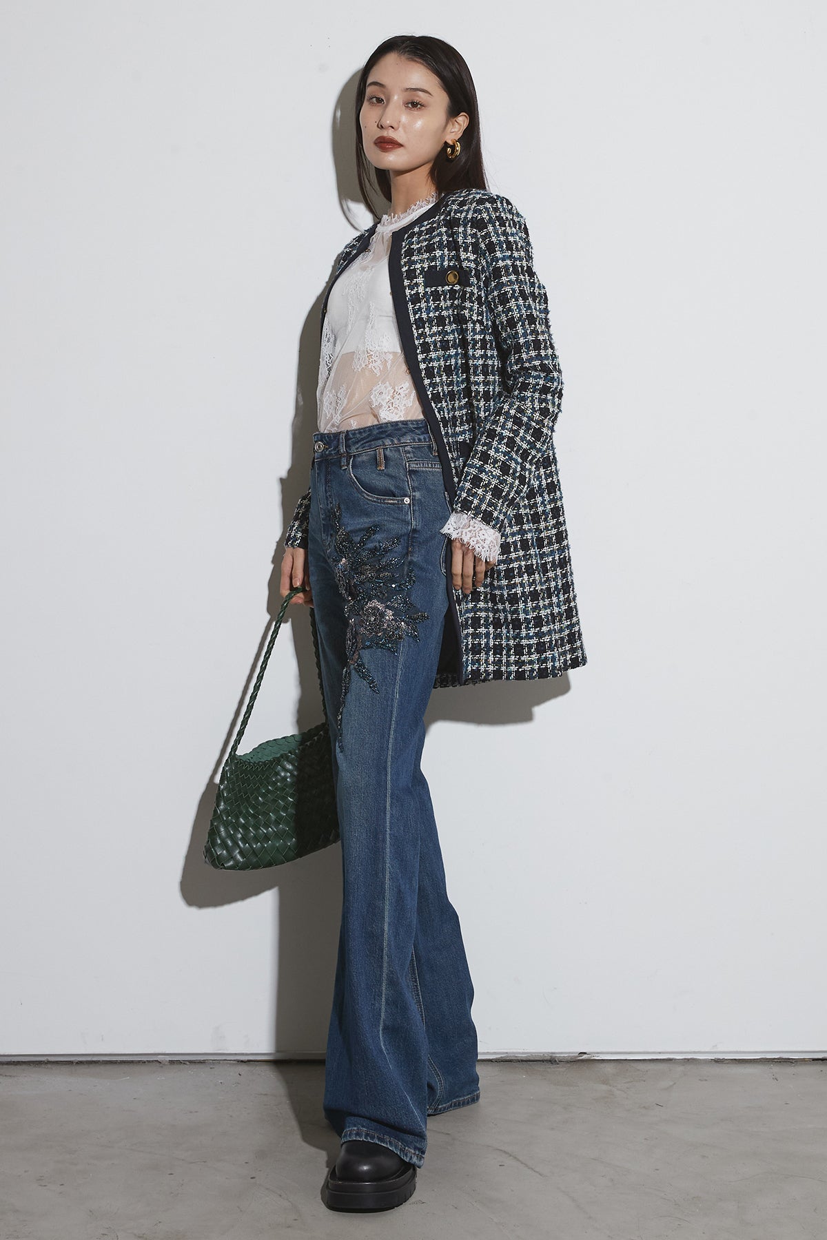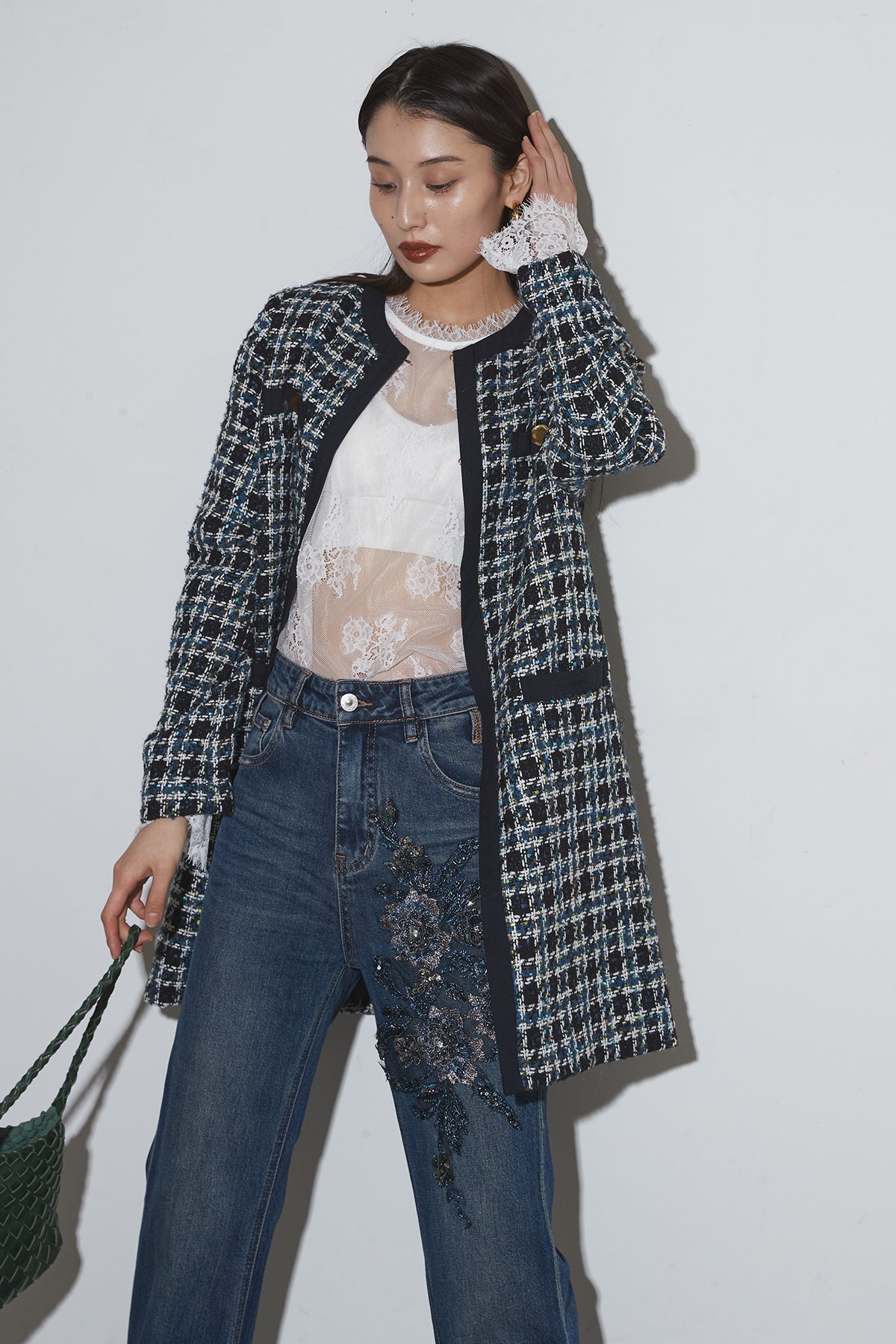 【SET】[piccin]ツイードミドルジャケット+ビジューエンブロイダリーデニム