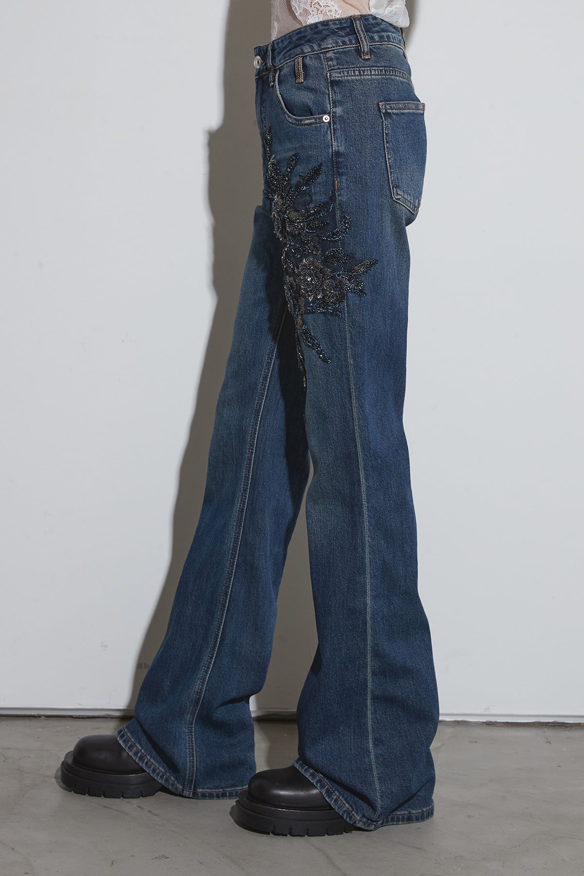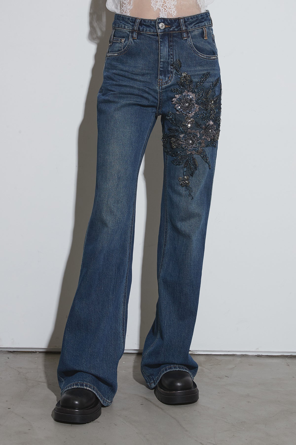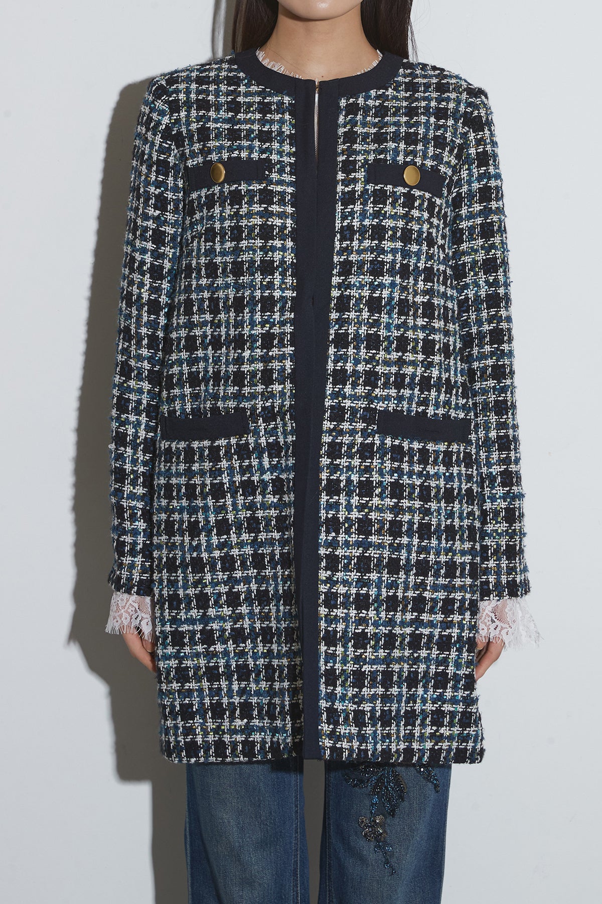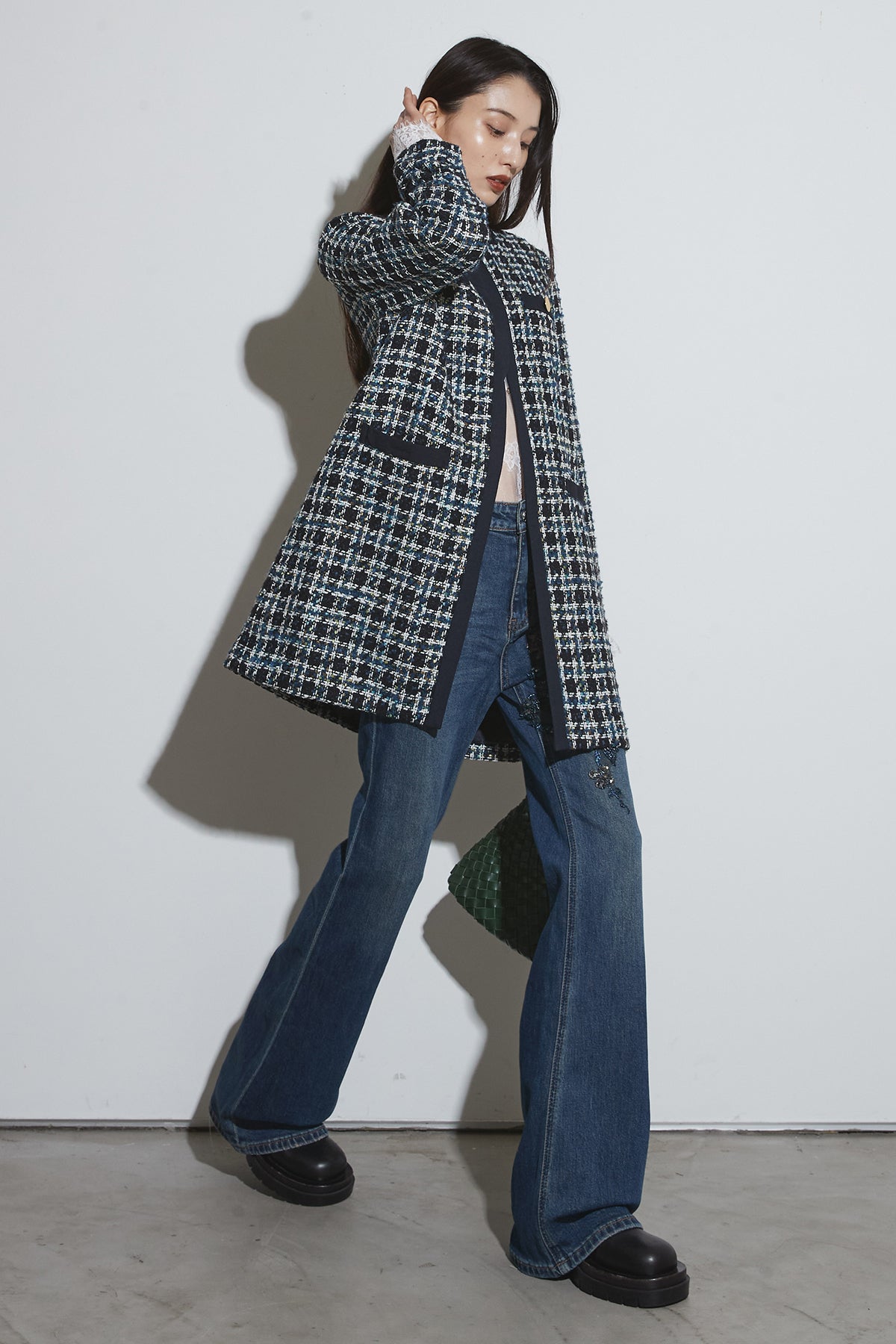 【SET】[piccin]ツイードミドルジャケット+ビジューエンブロイダリーデニム