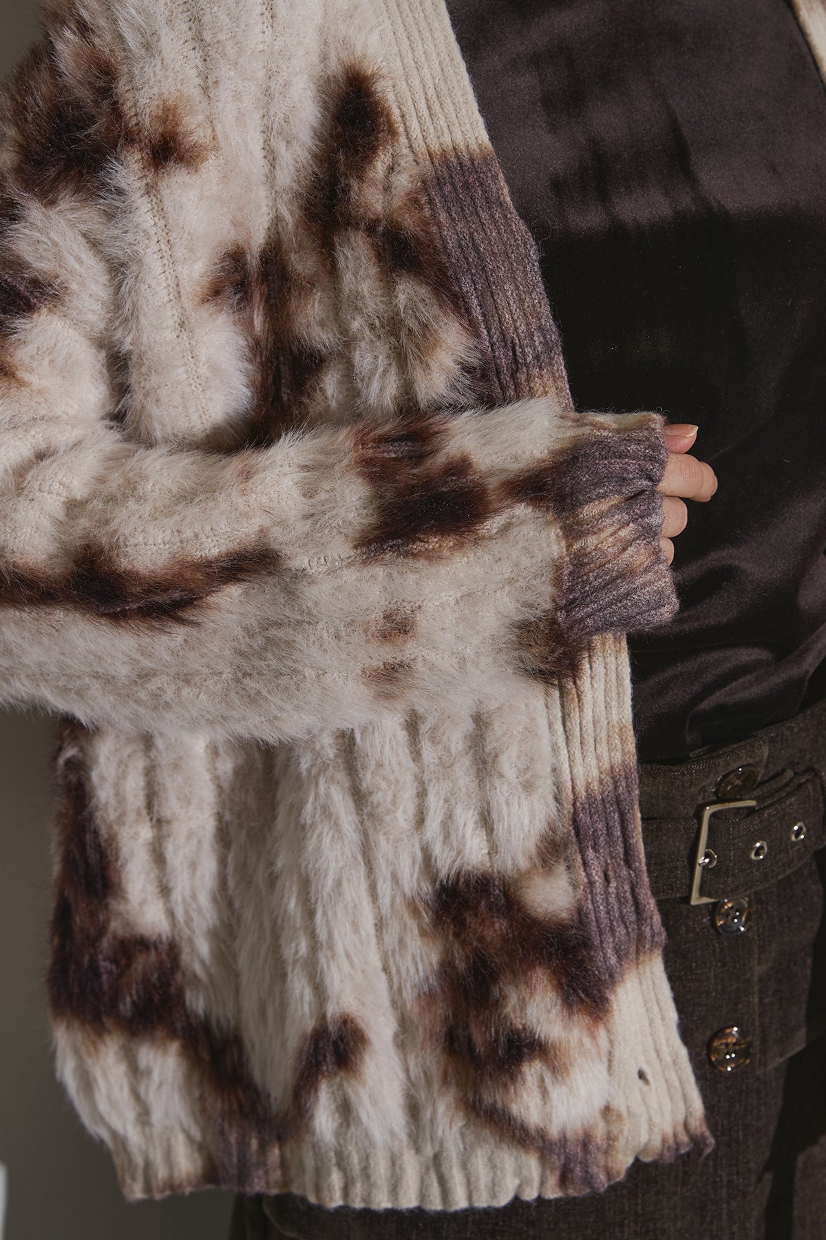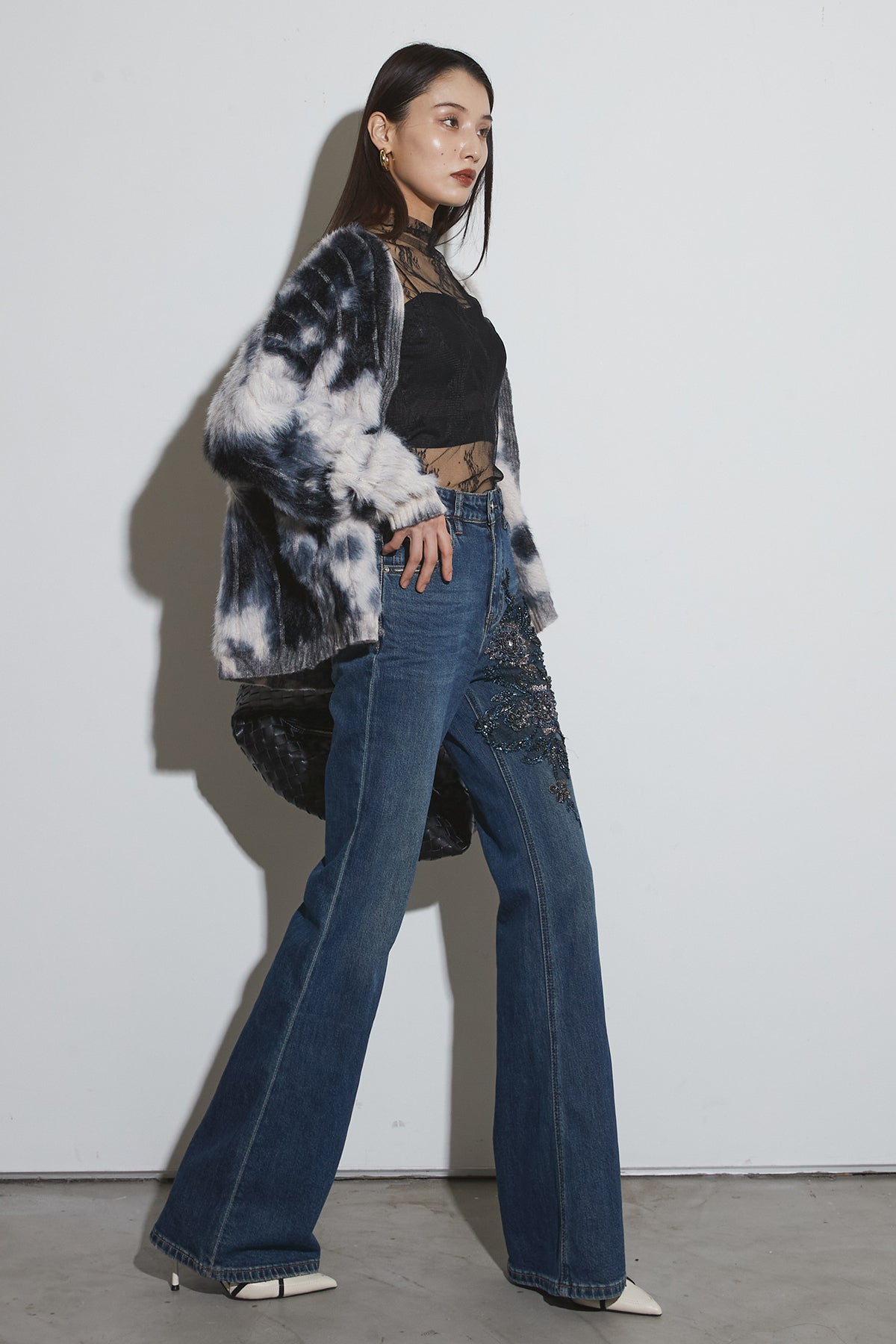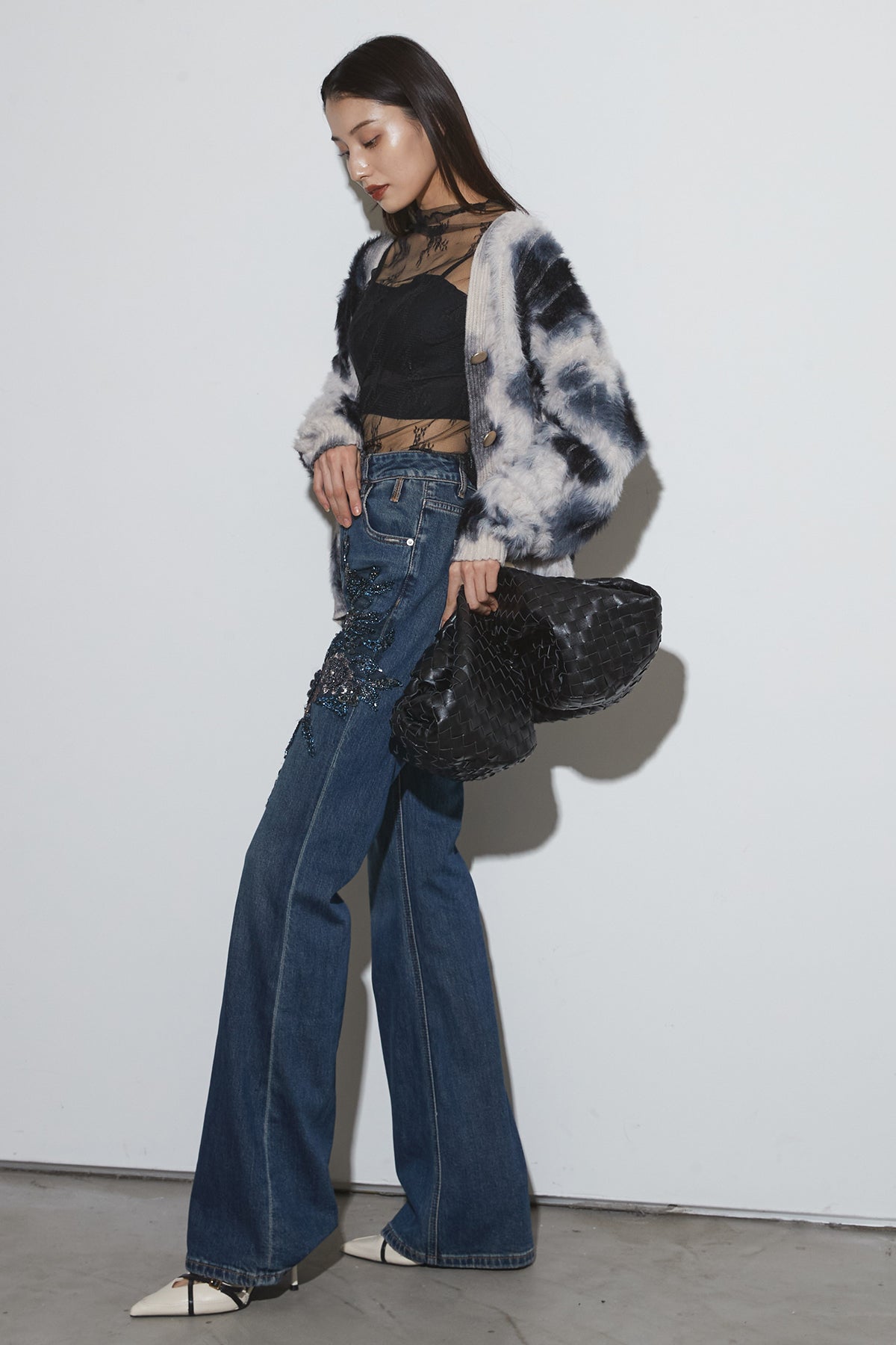 【SET】マーブルジャガードニットカーデ+ビジューエンブロイダリーデニム