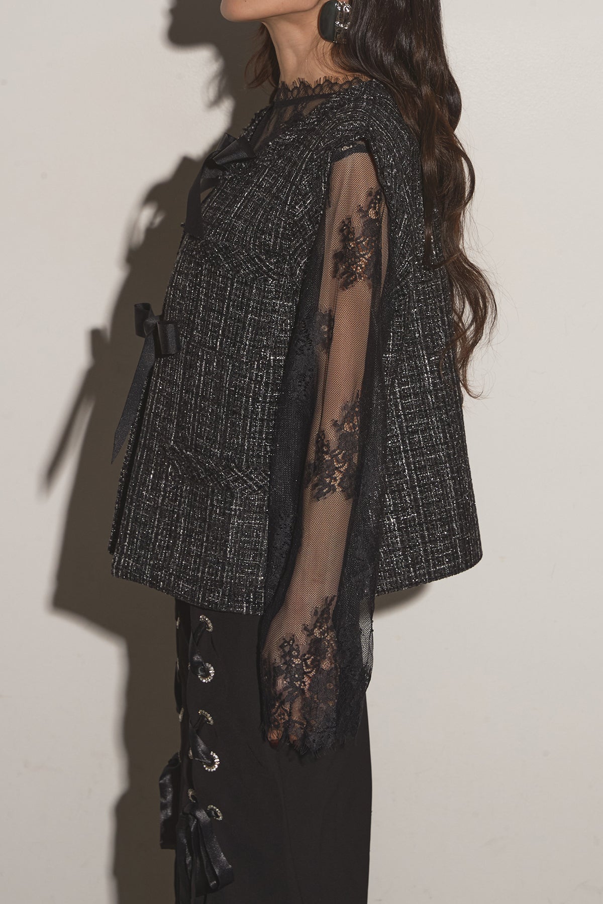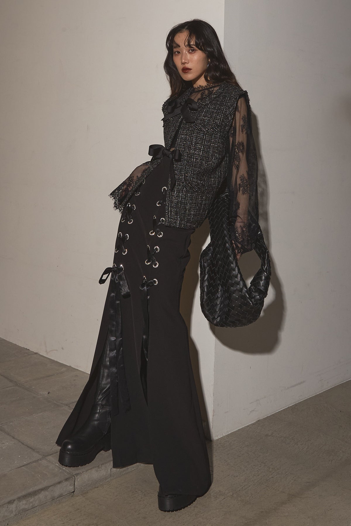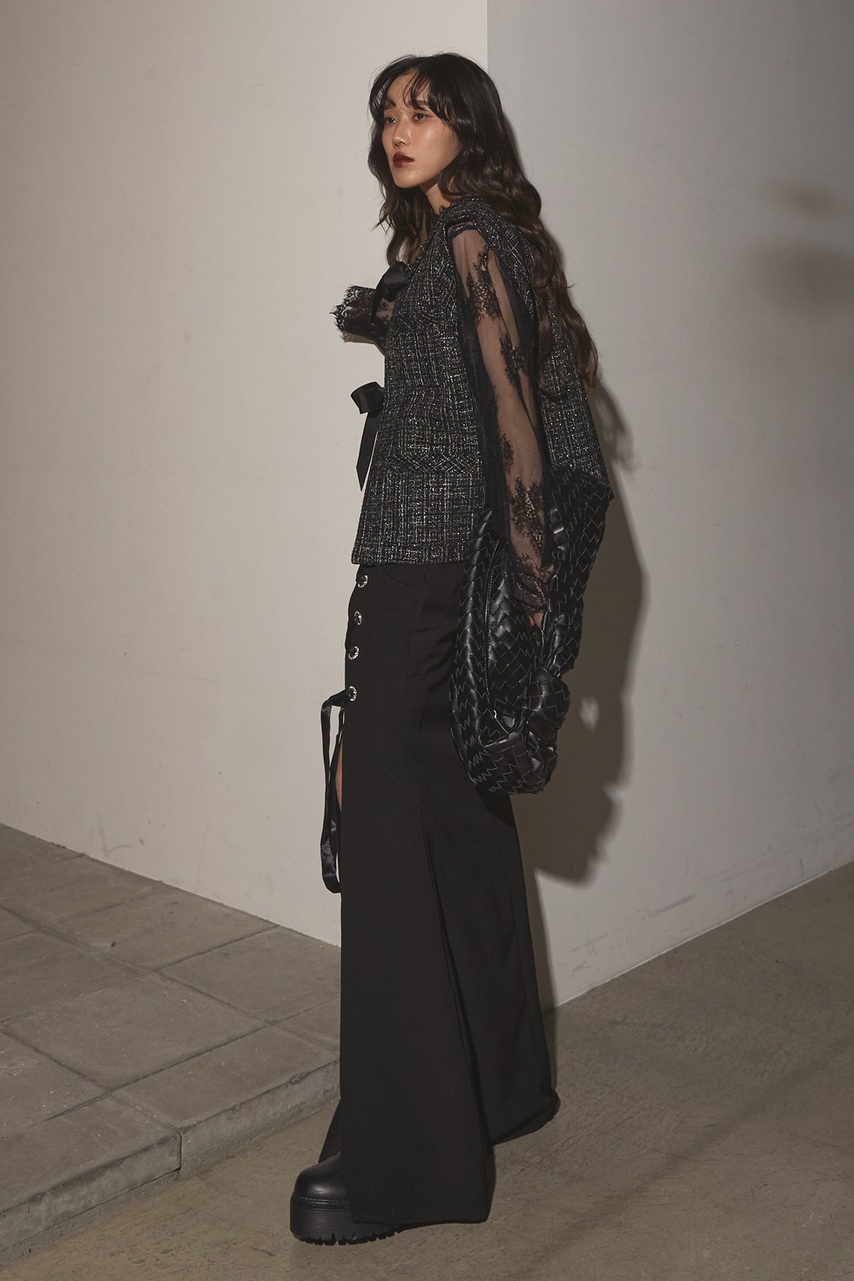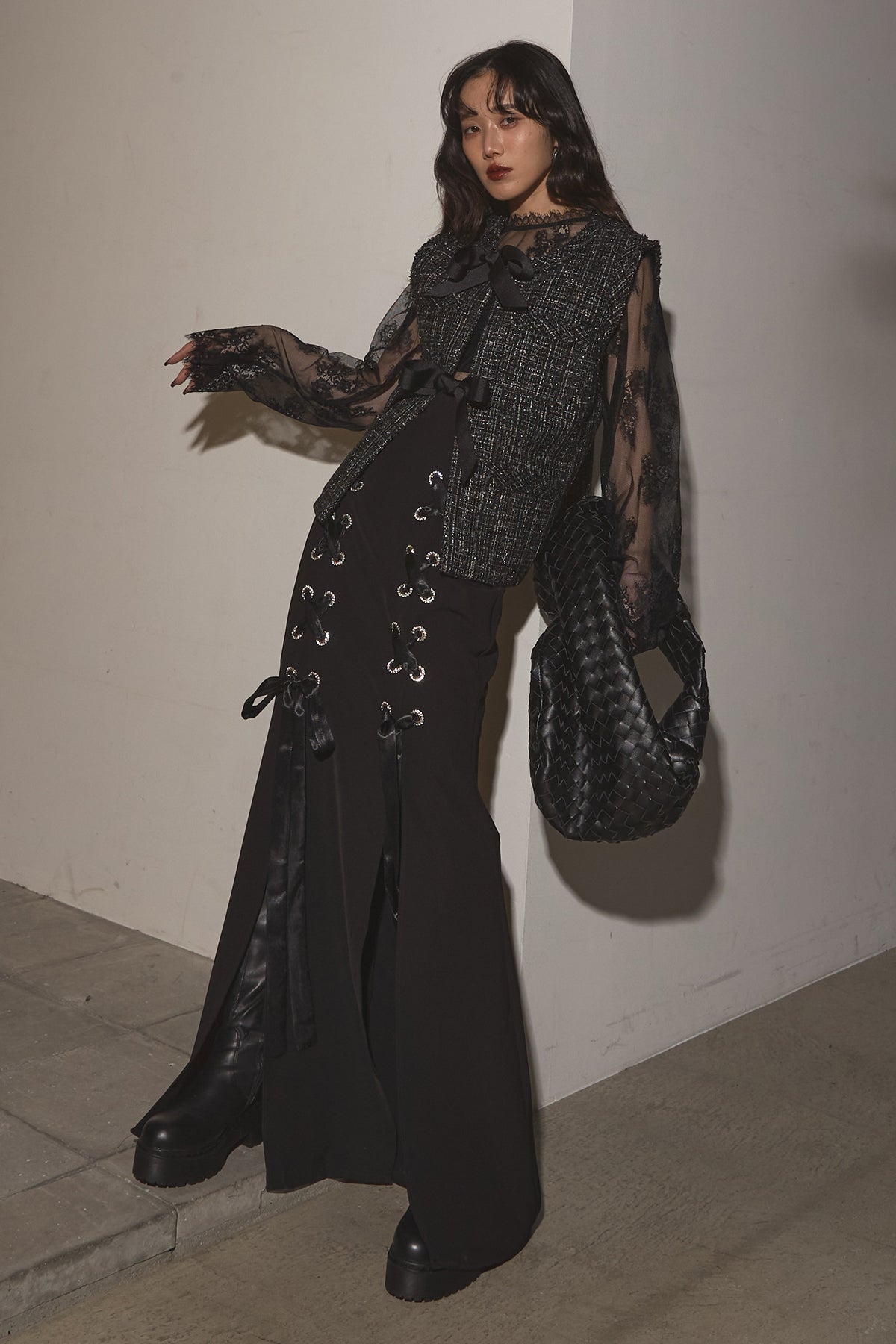 【SET】リボンツイードベスト+レースアップマーメイドスカート