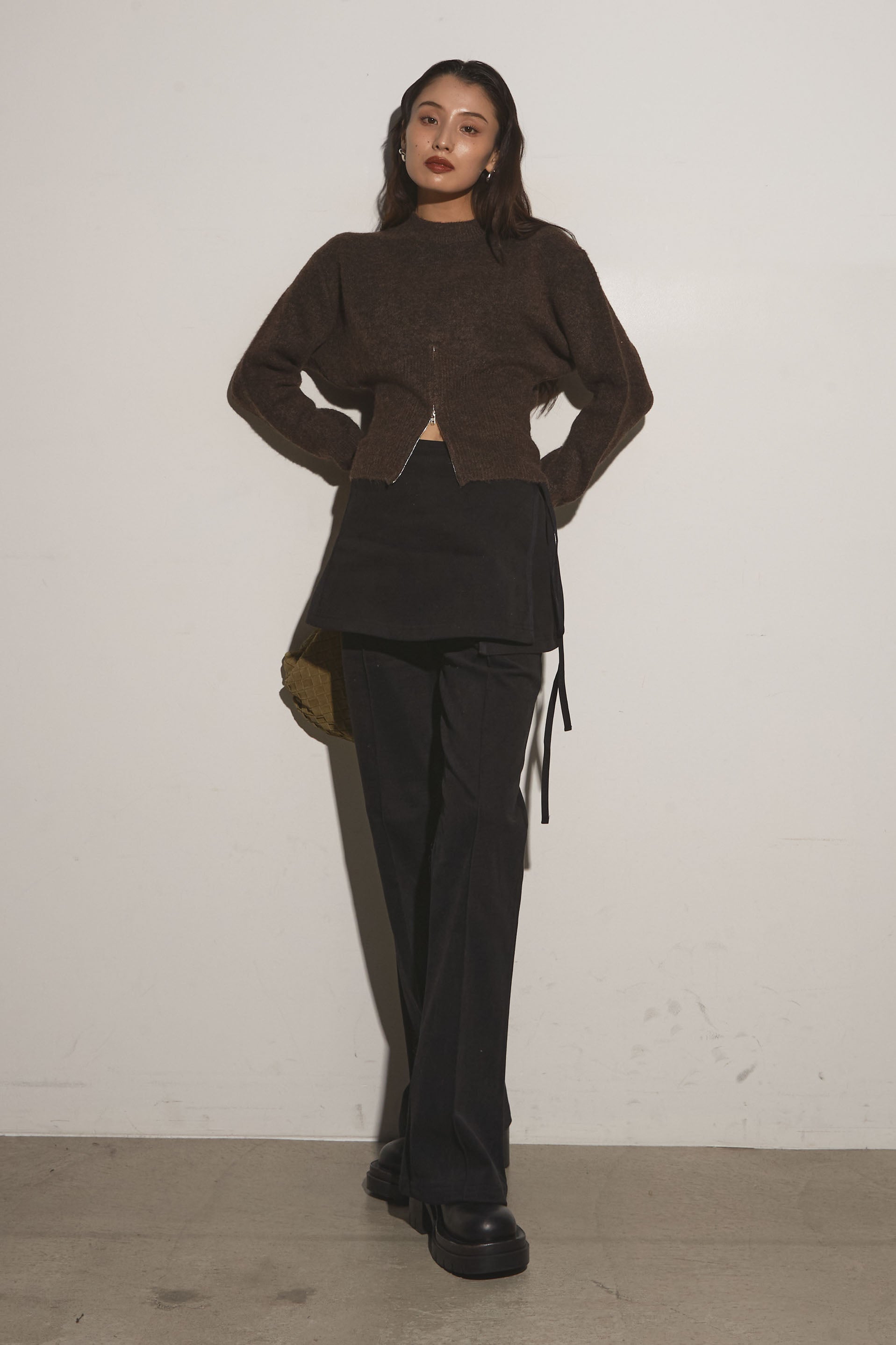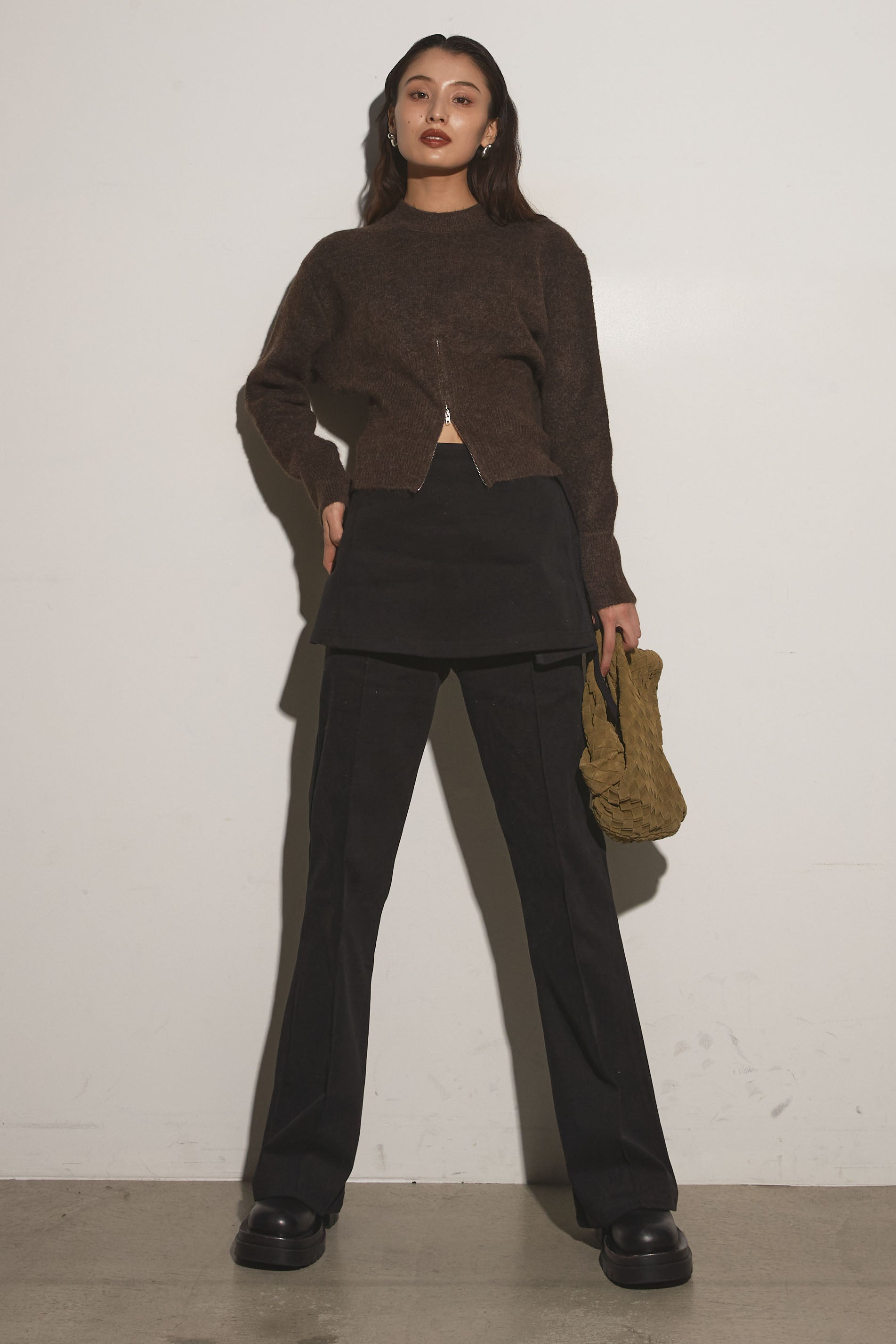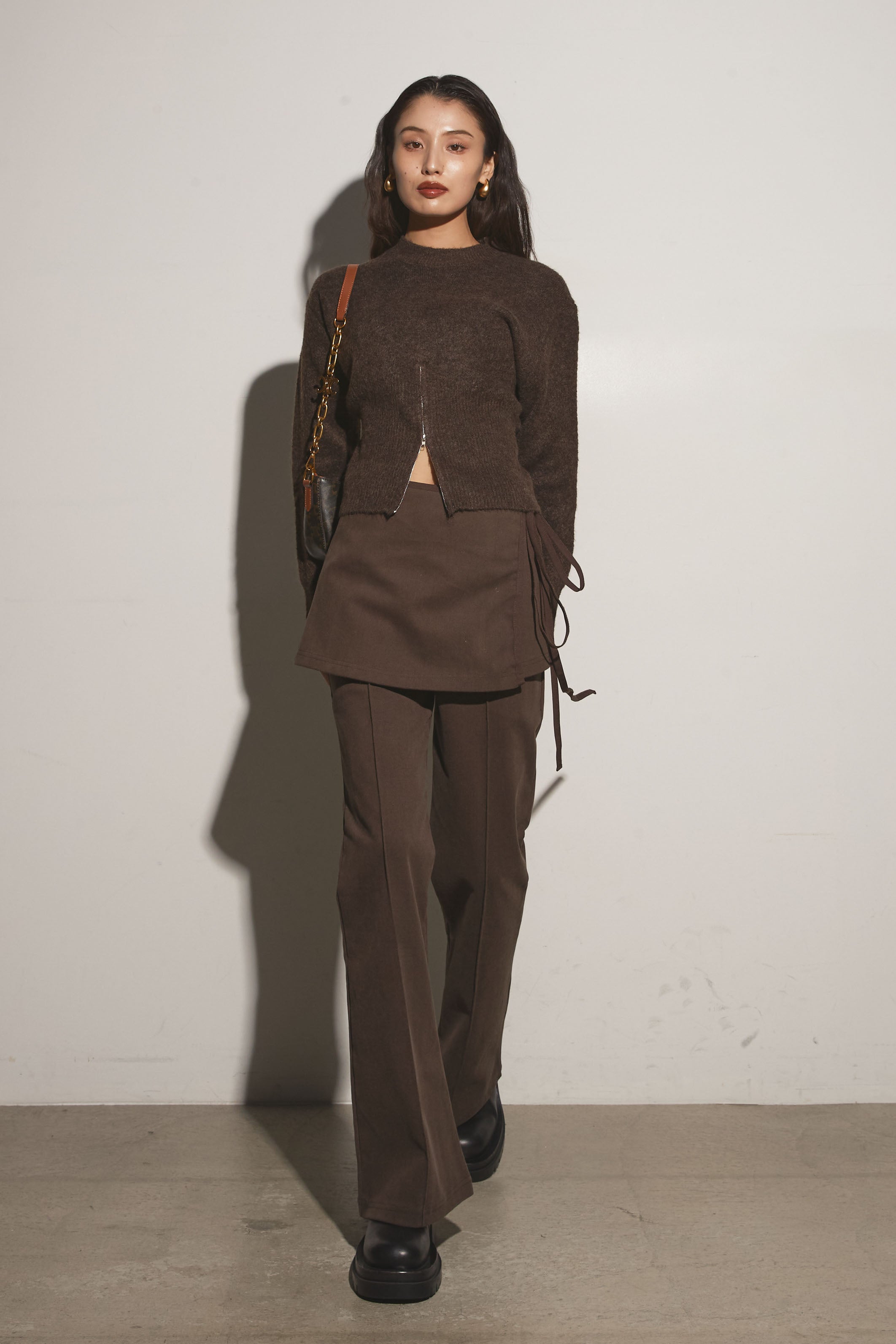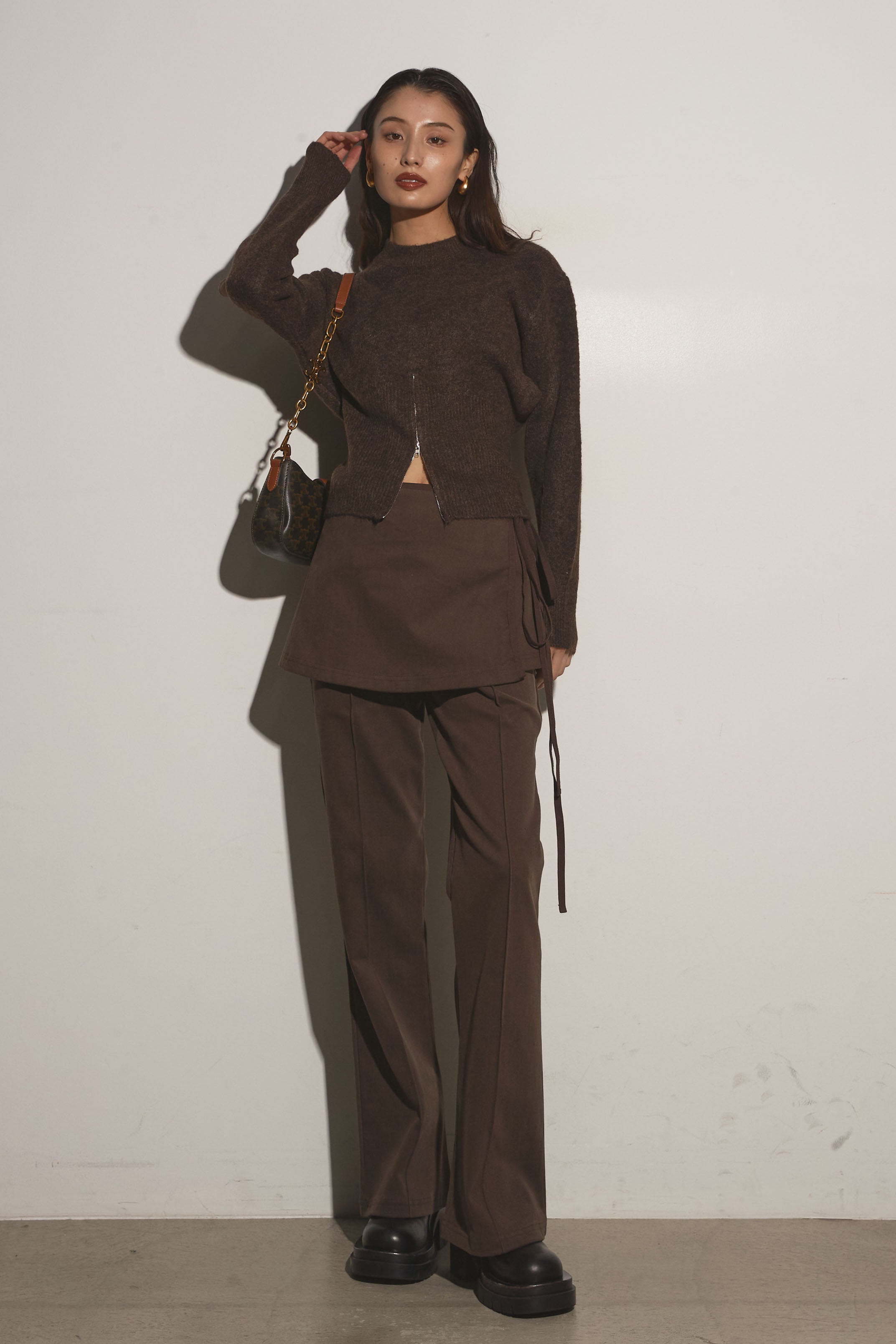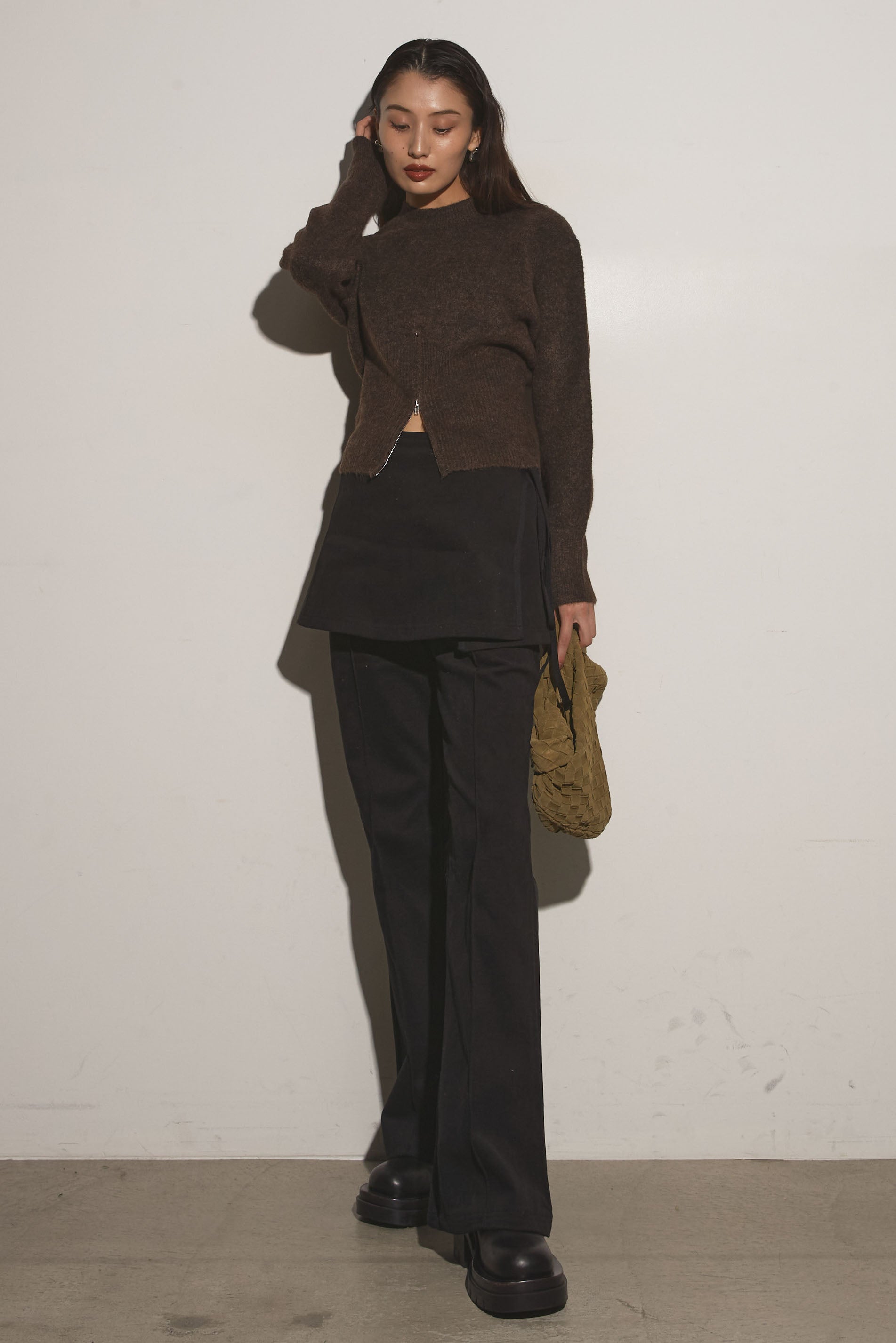 【SET】フロントジップニット+ラップスカートフレアパンツ