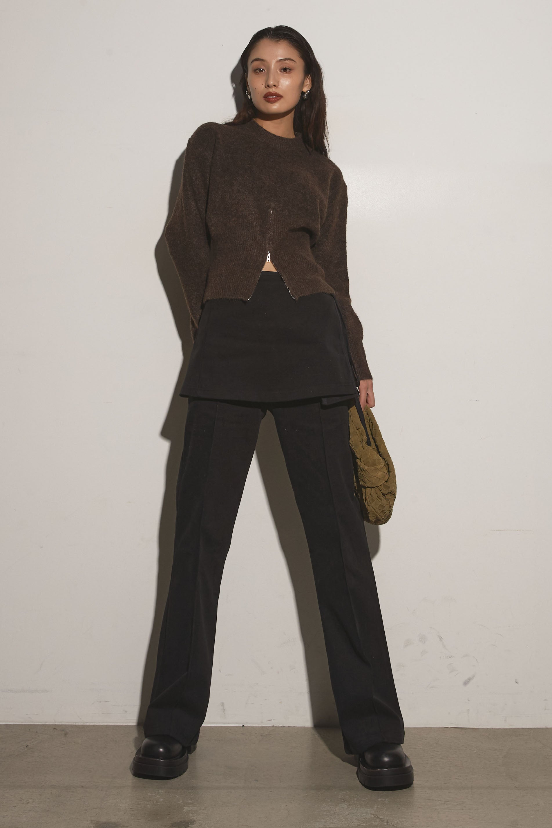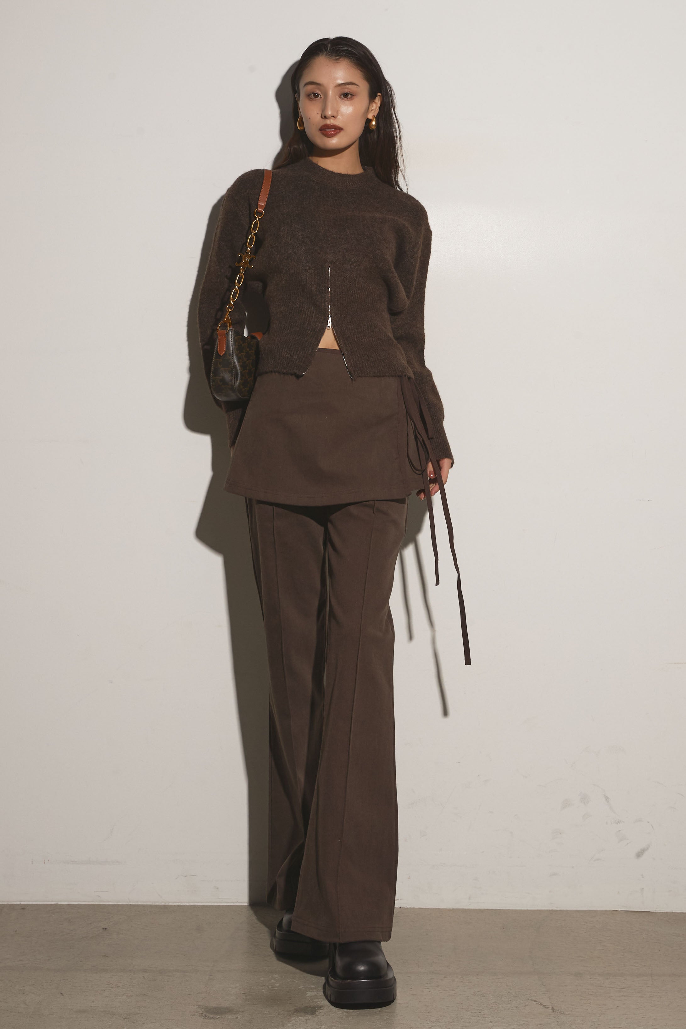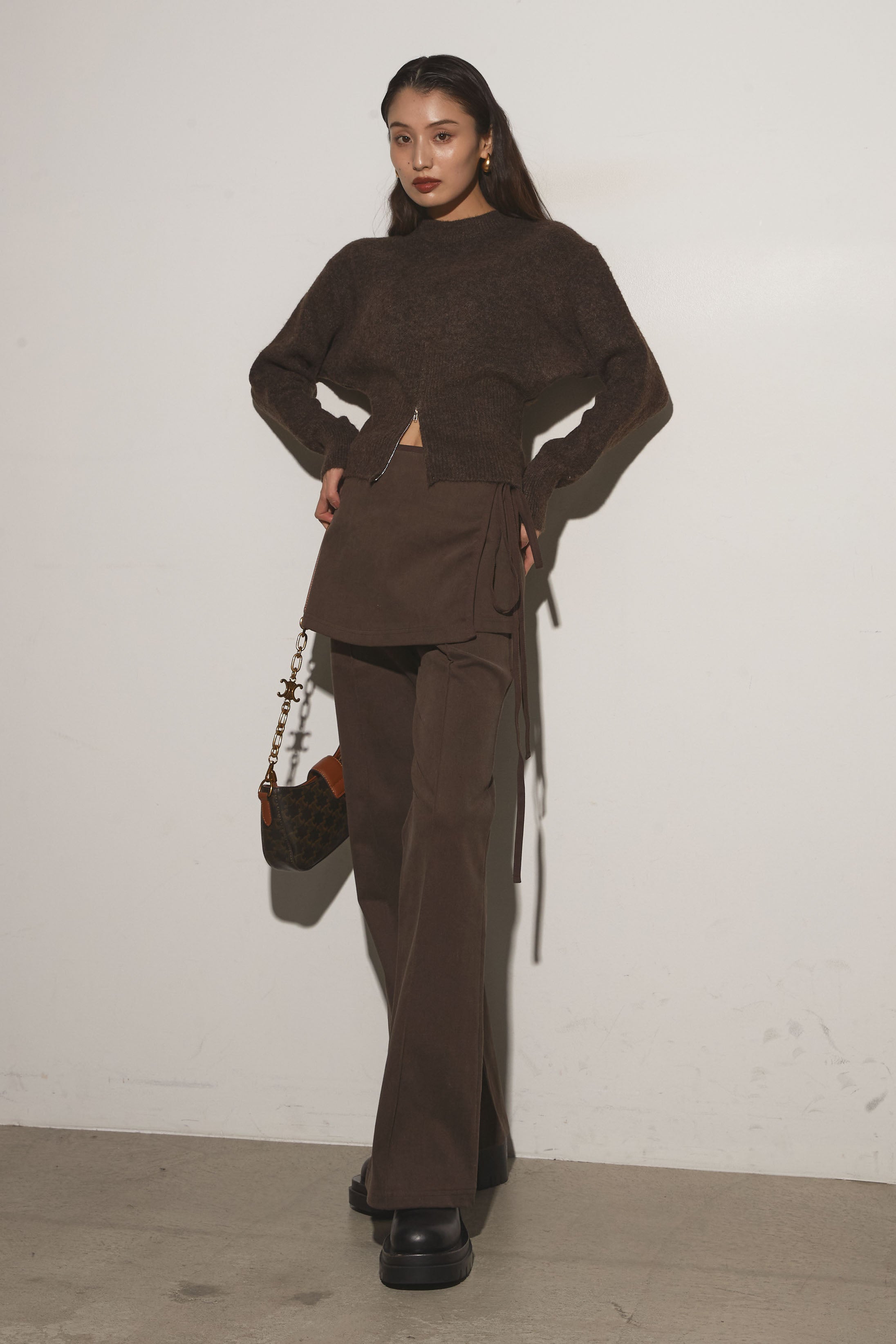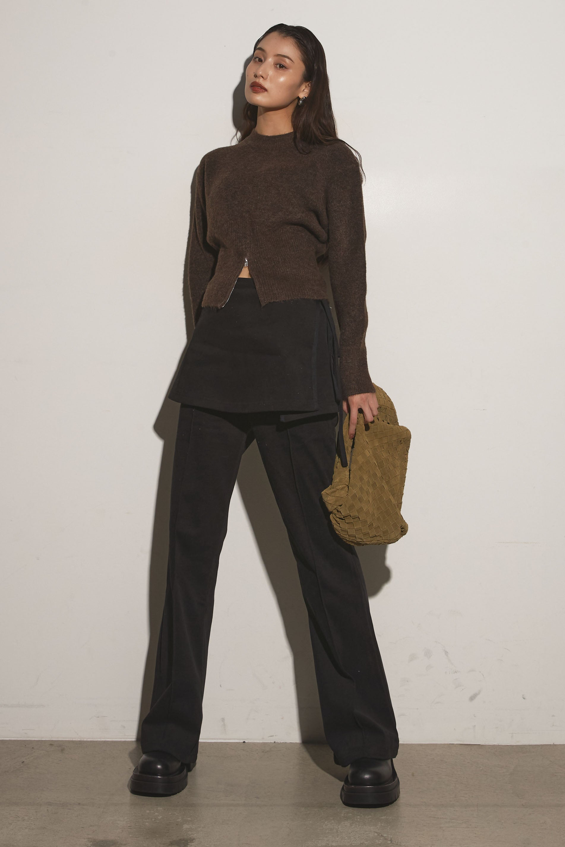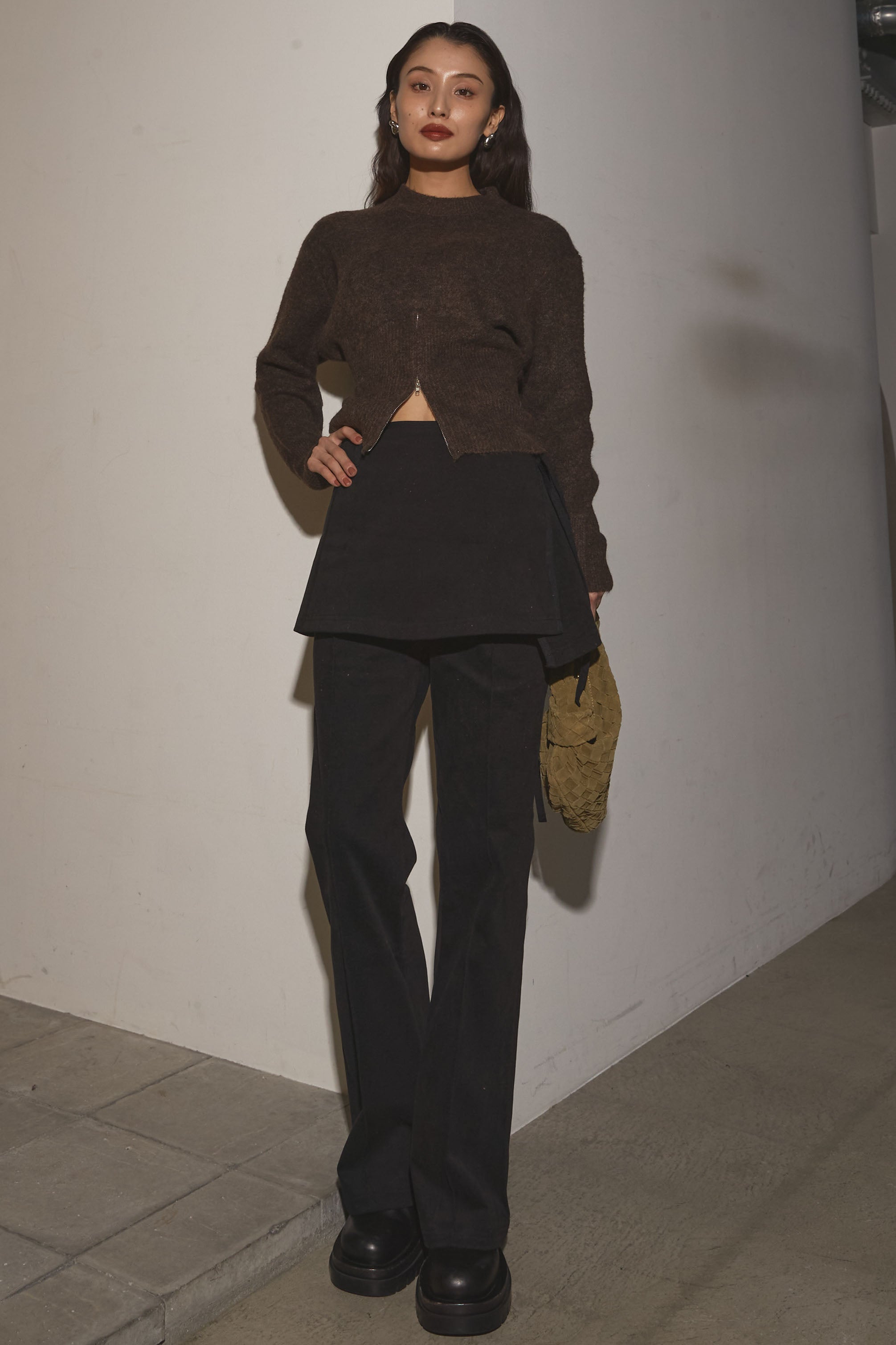 【SET】フロントジップニット+ラップスカートフレアパンツ