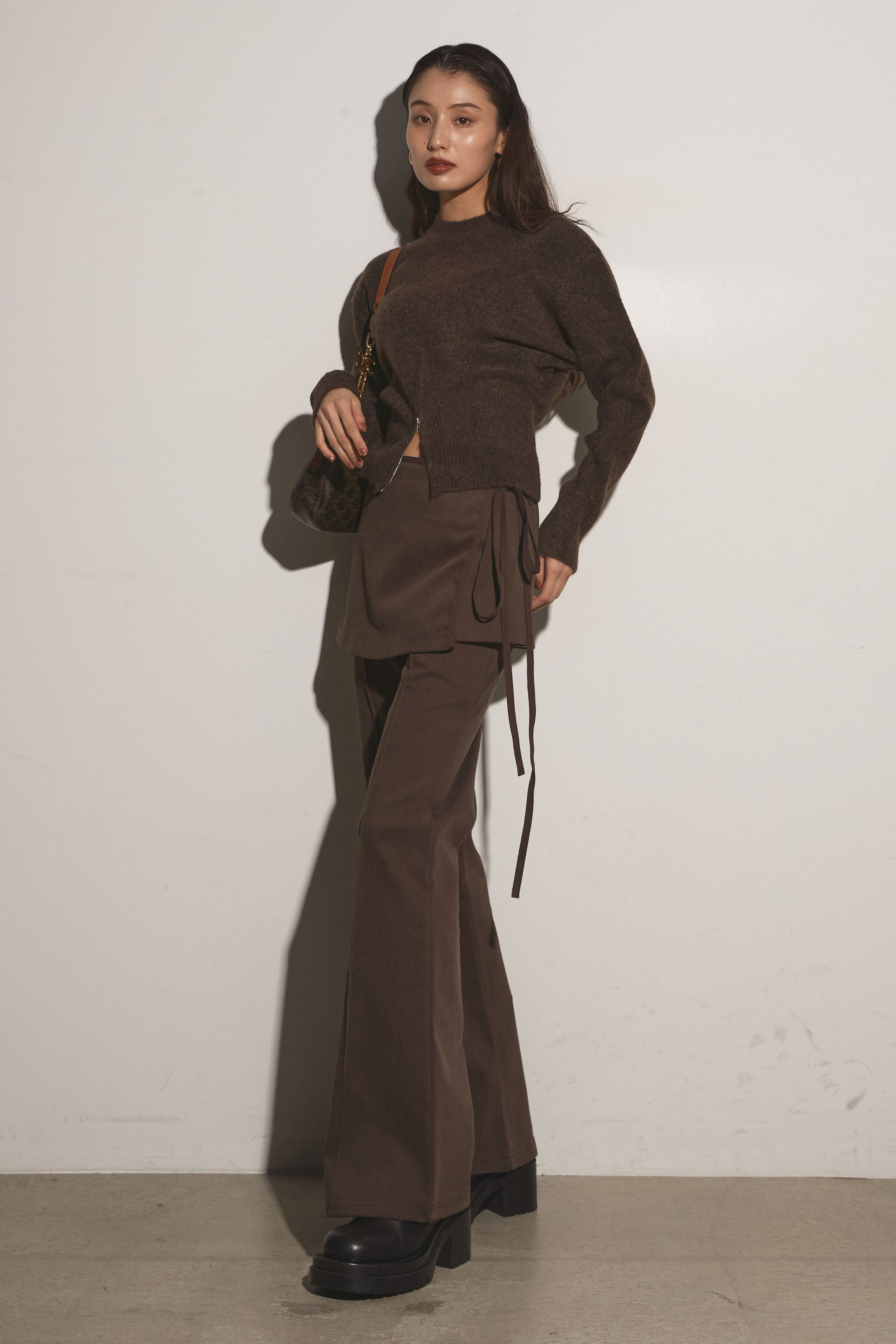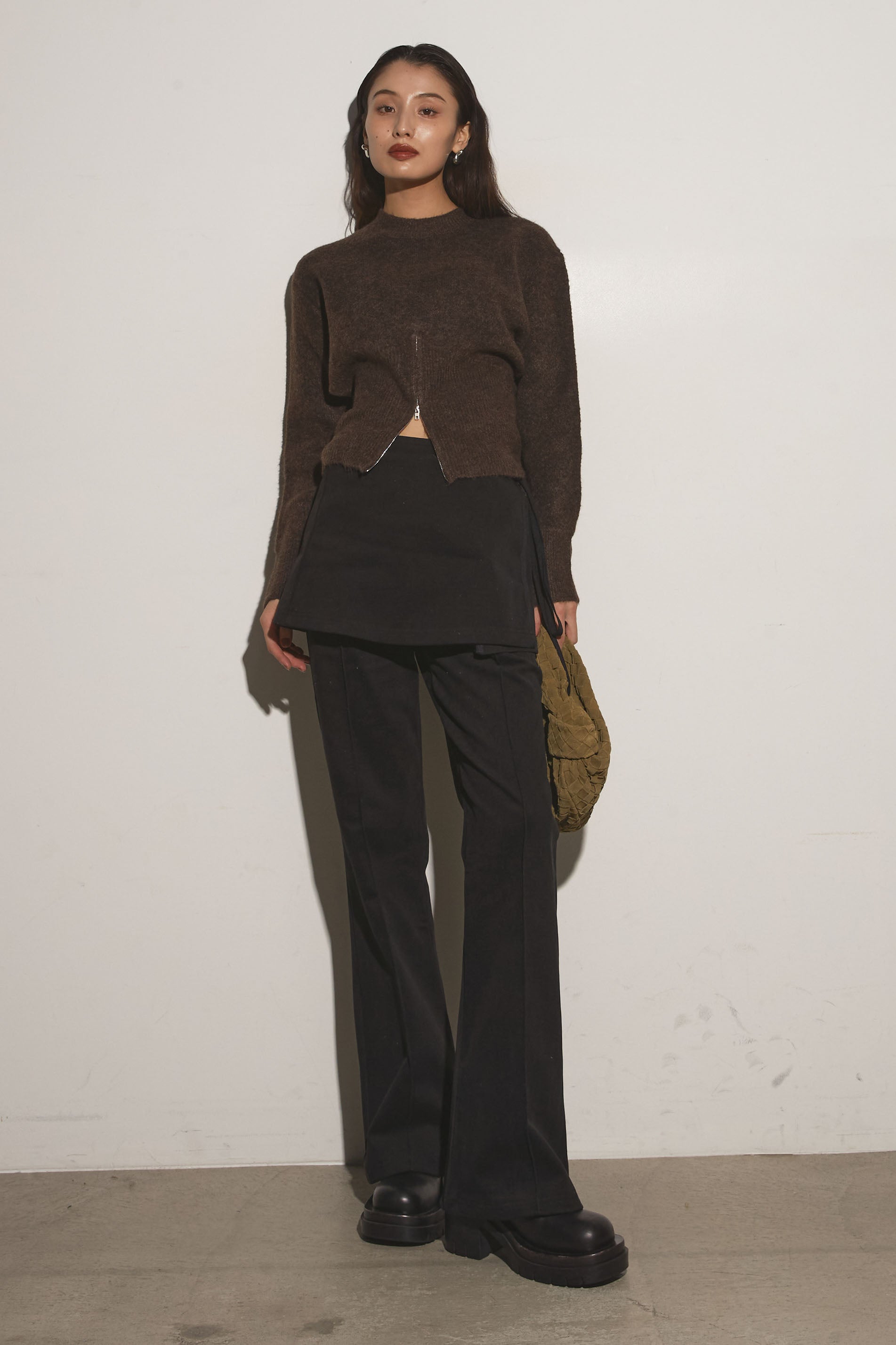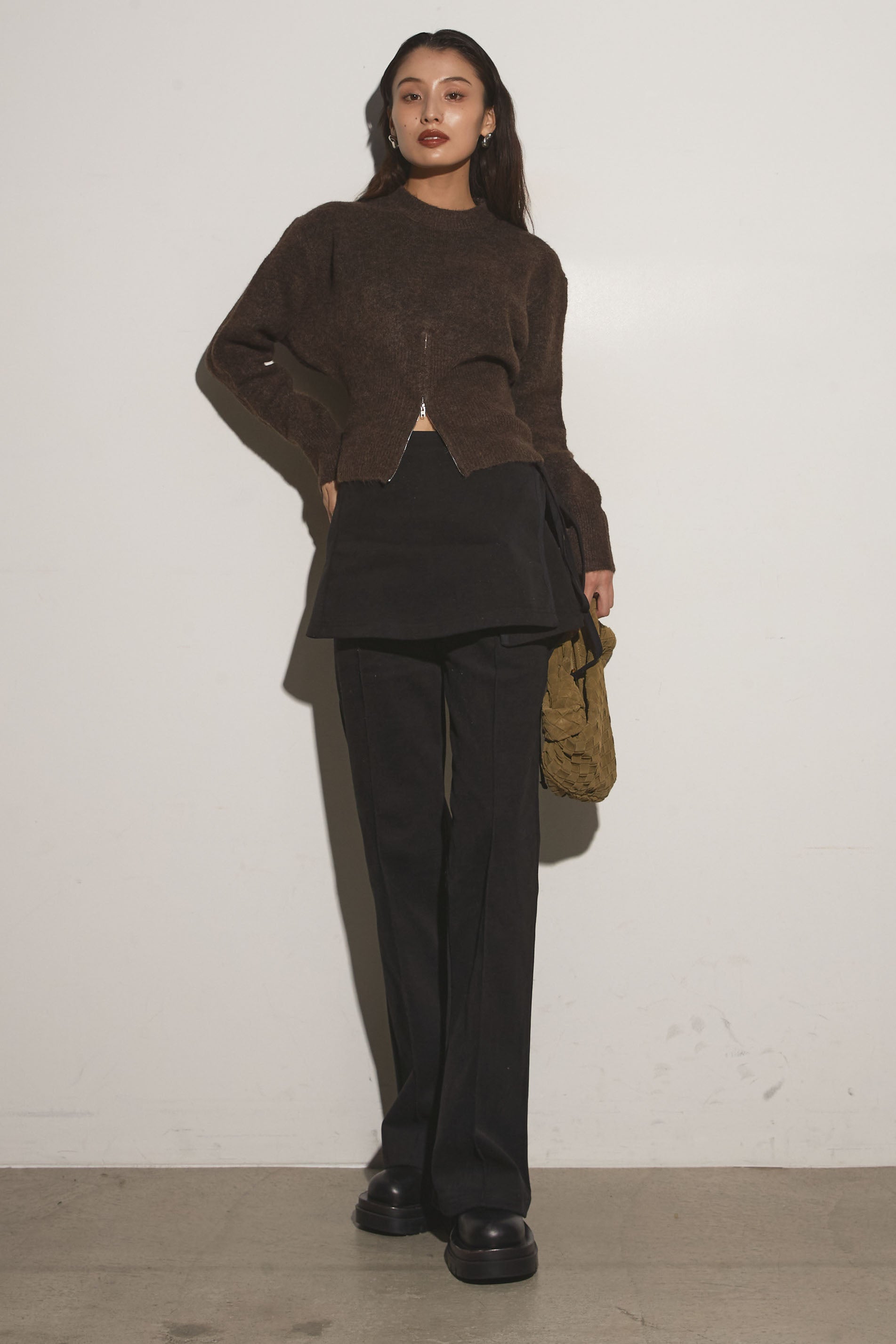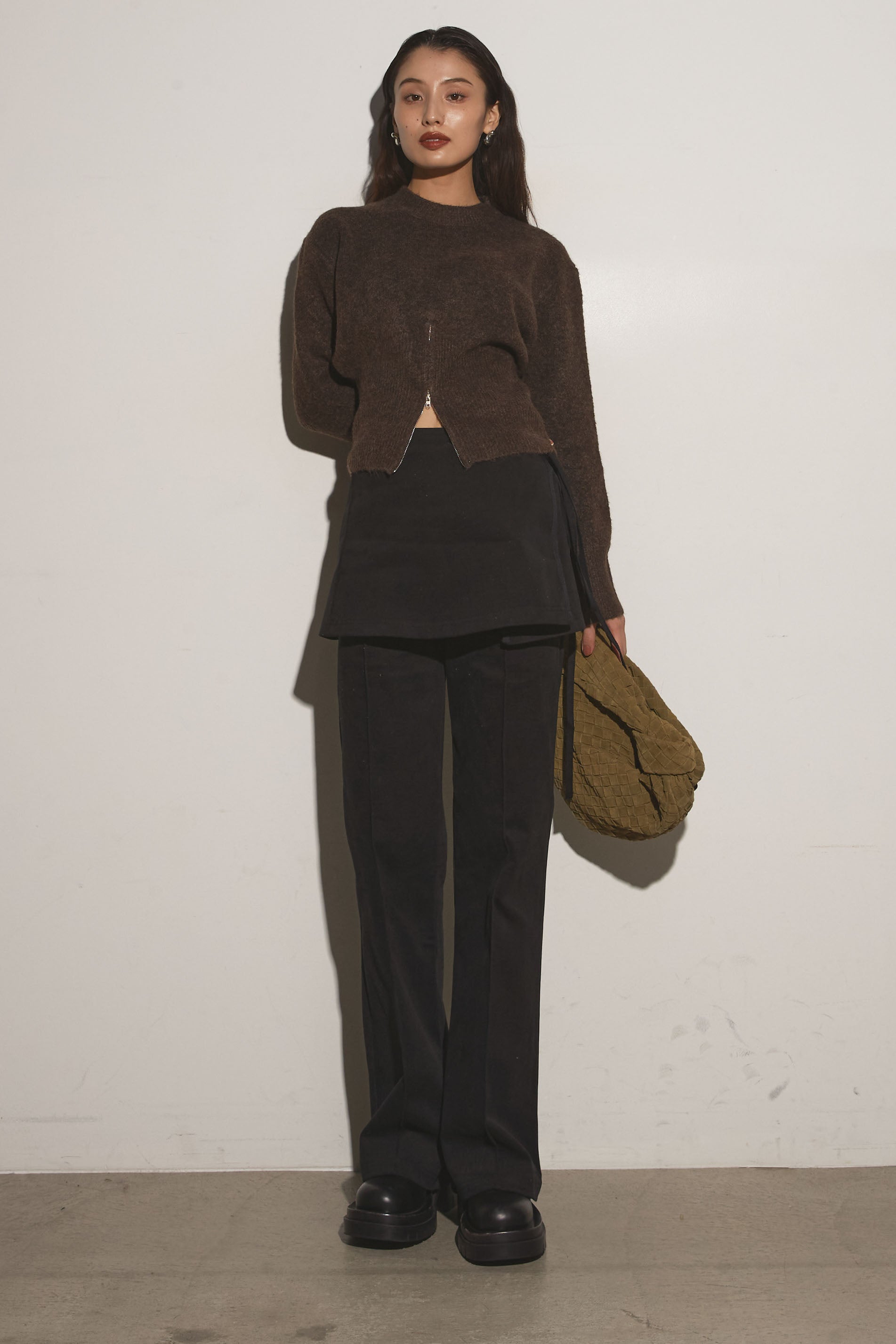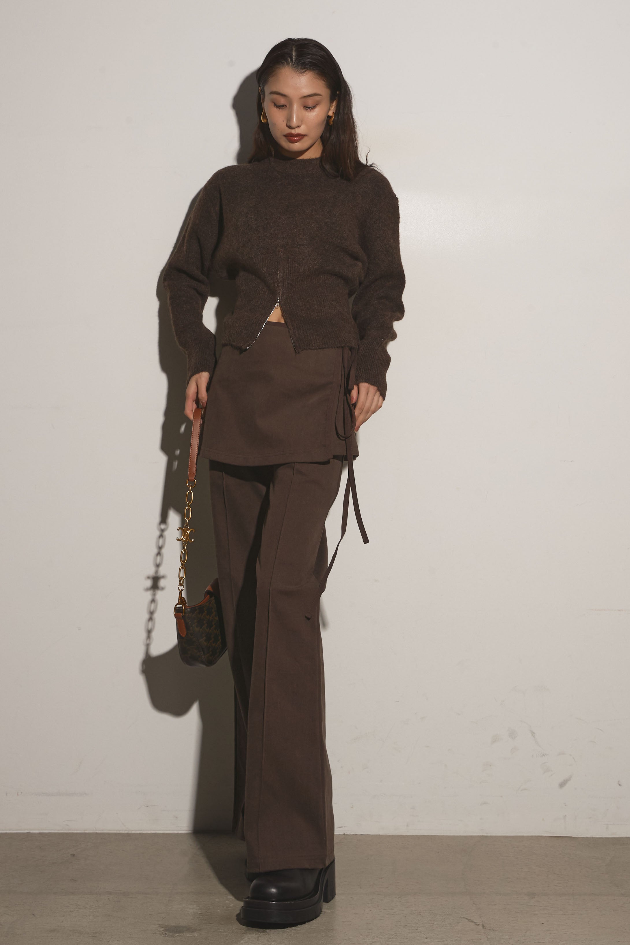 【SET】フロントジップニット+ラップスカートフレアパンツ