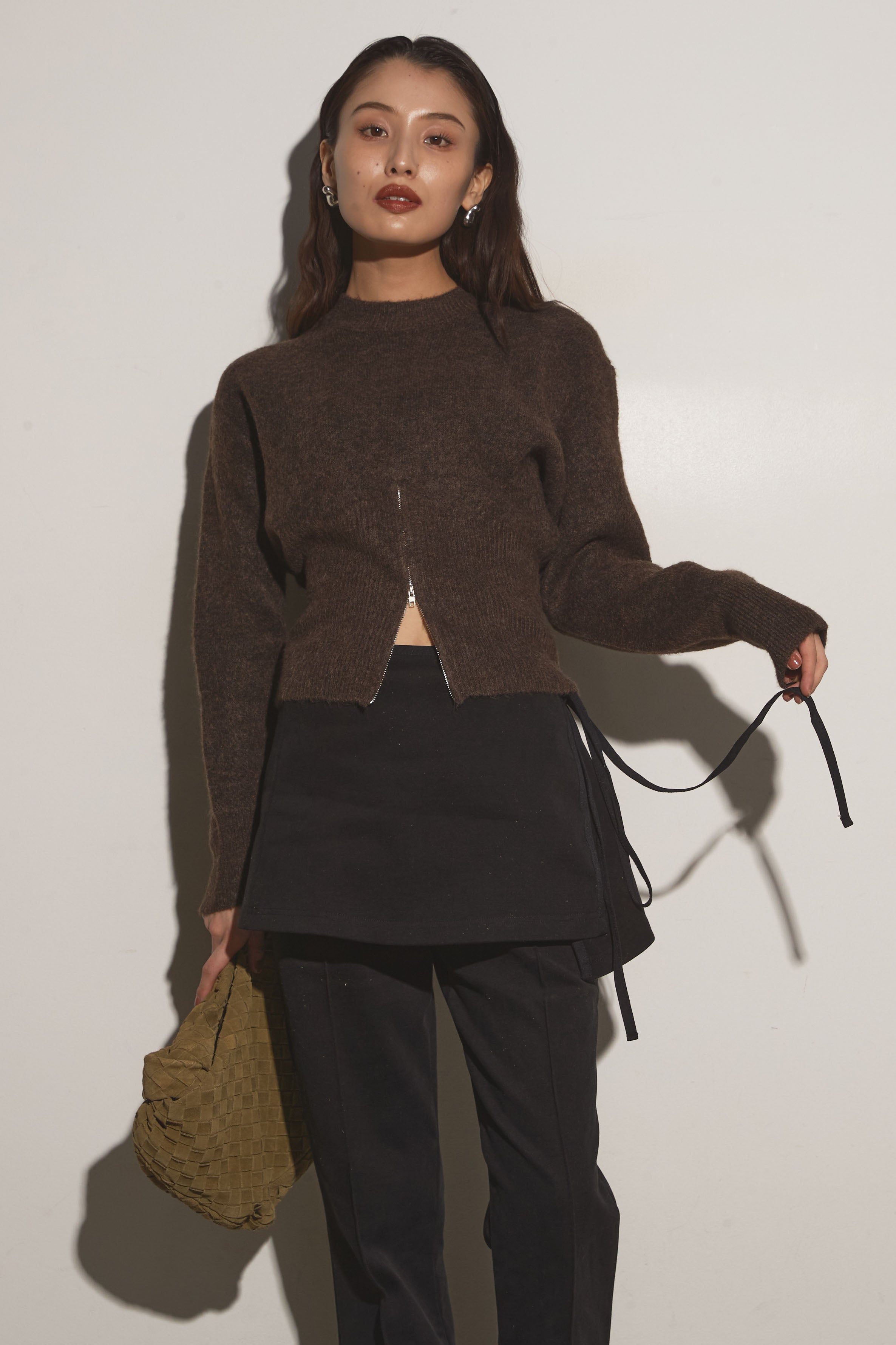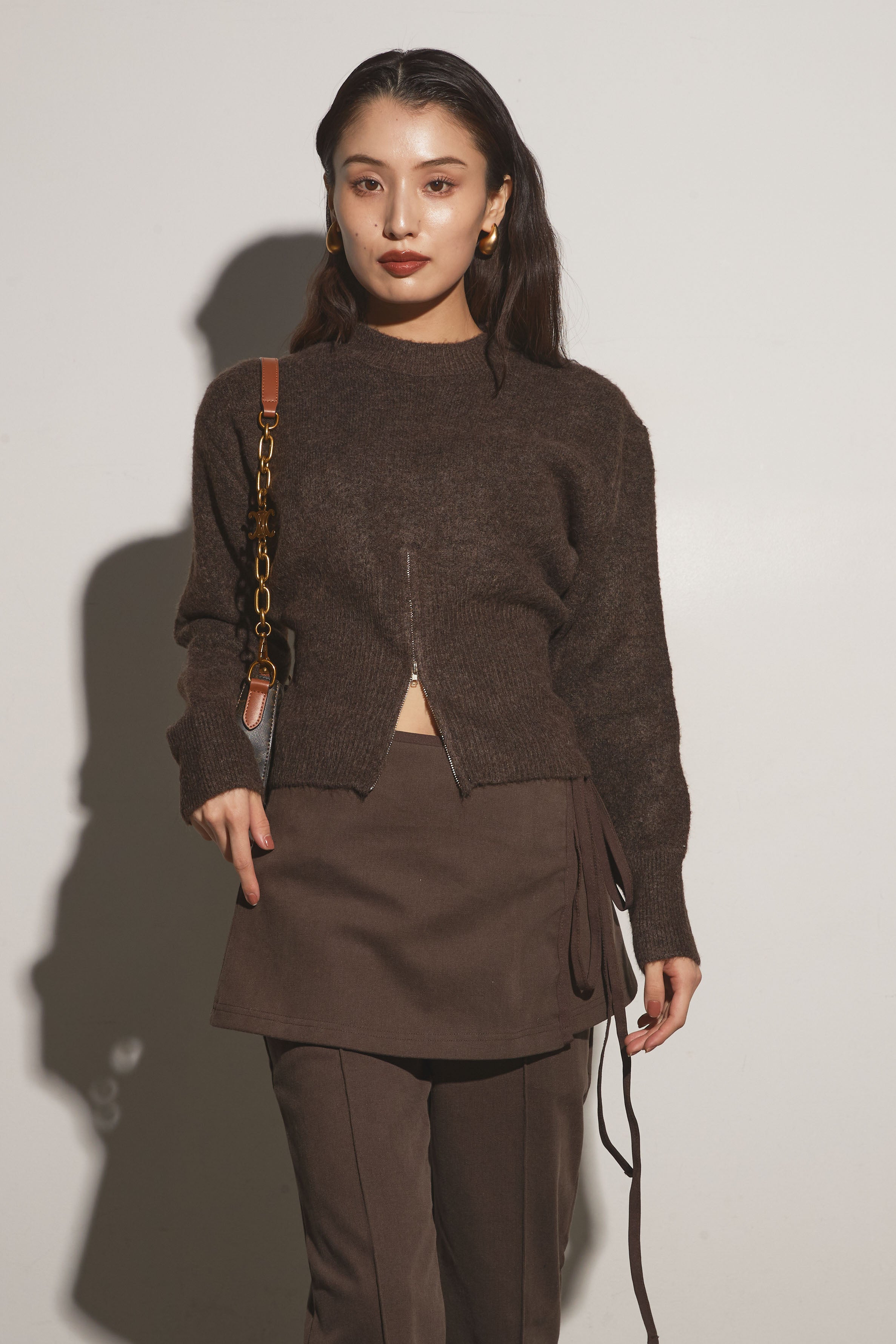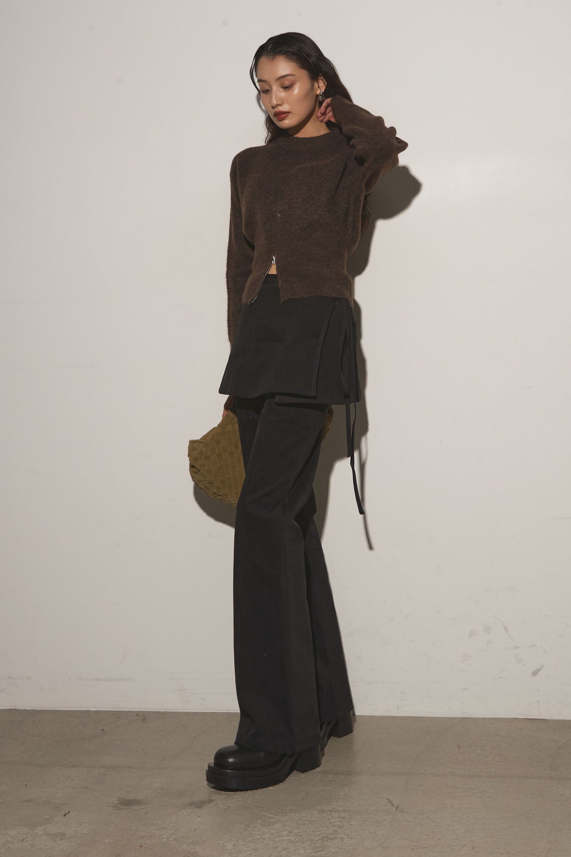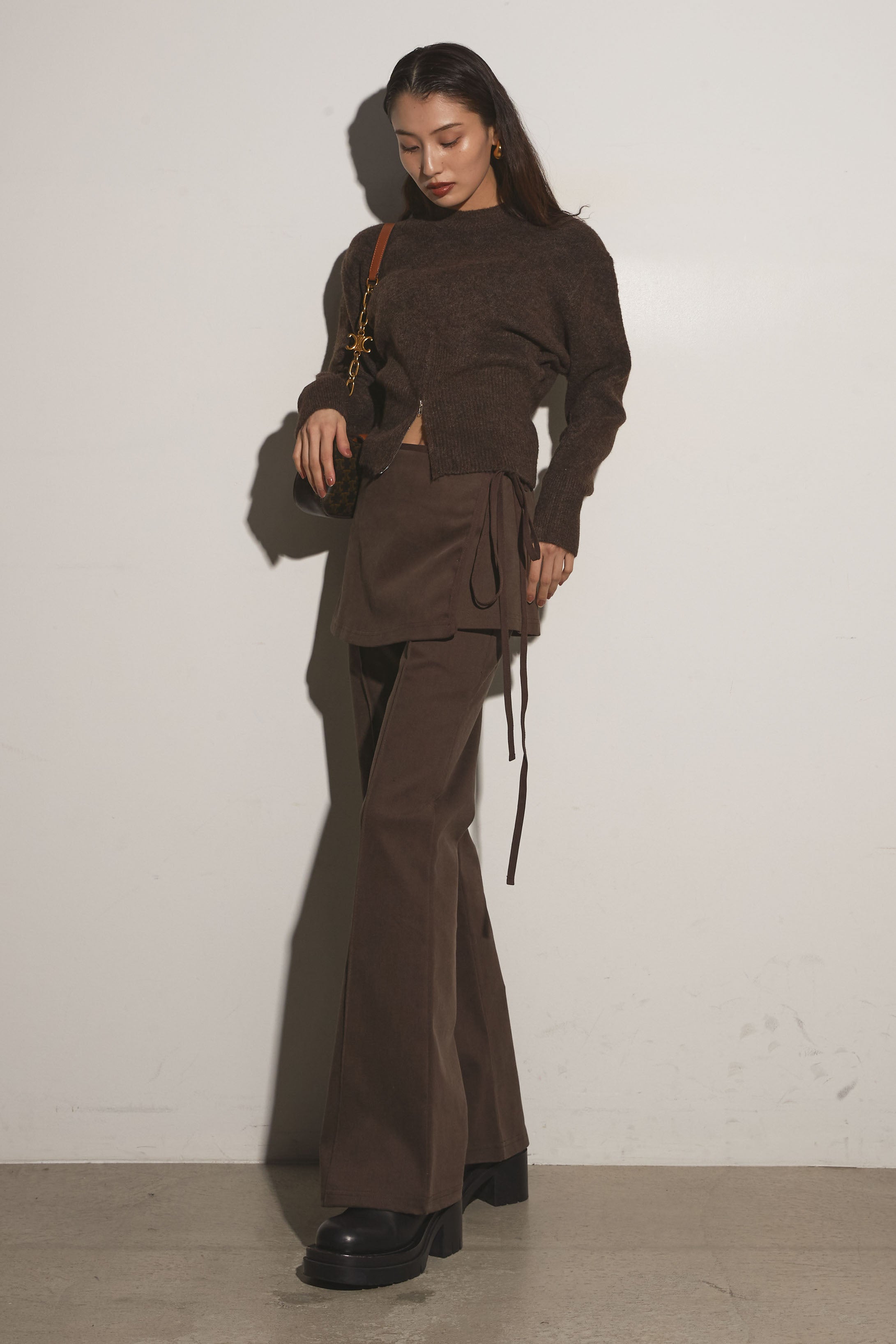 【SET】フロントジップニット+ラップスカートフレアパンツ