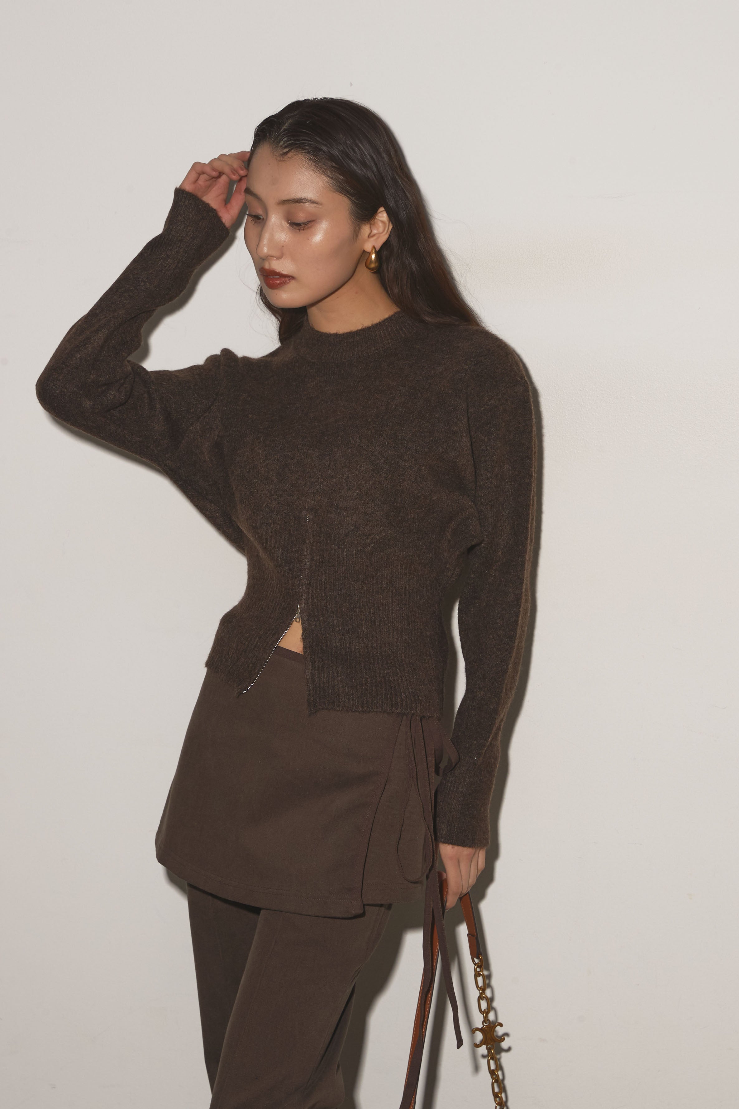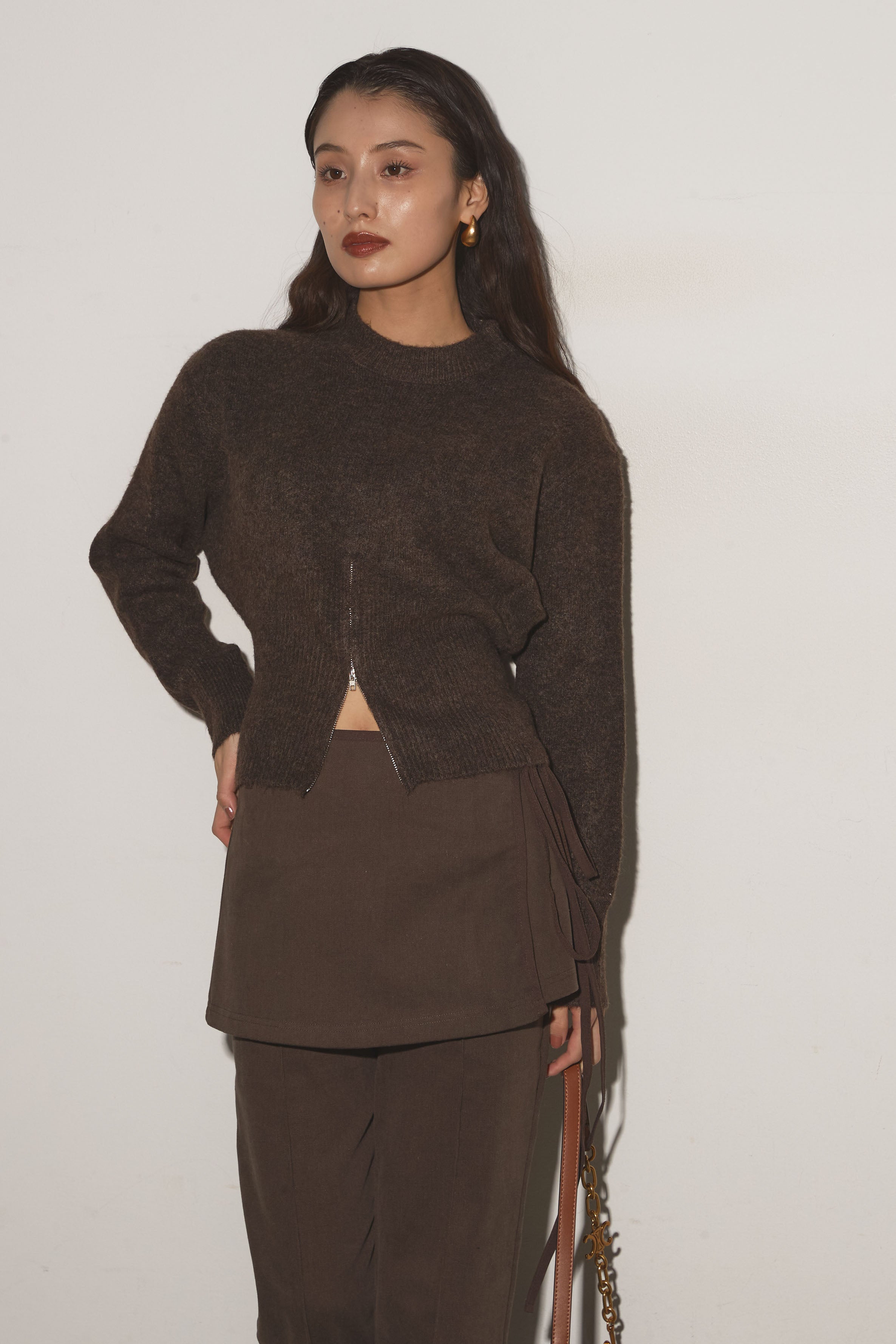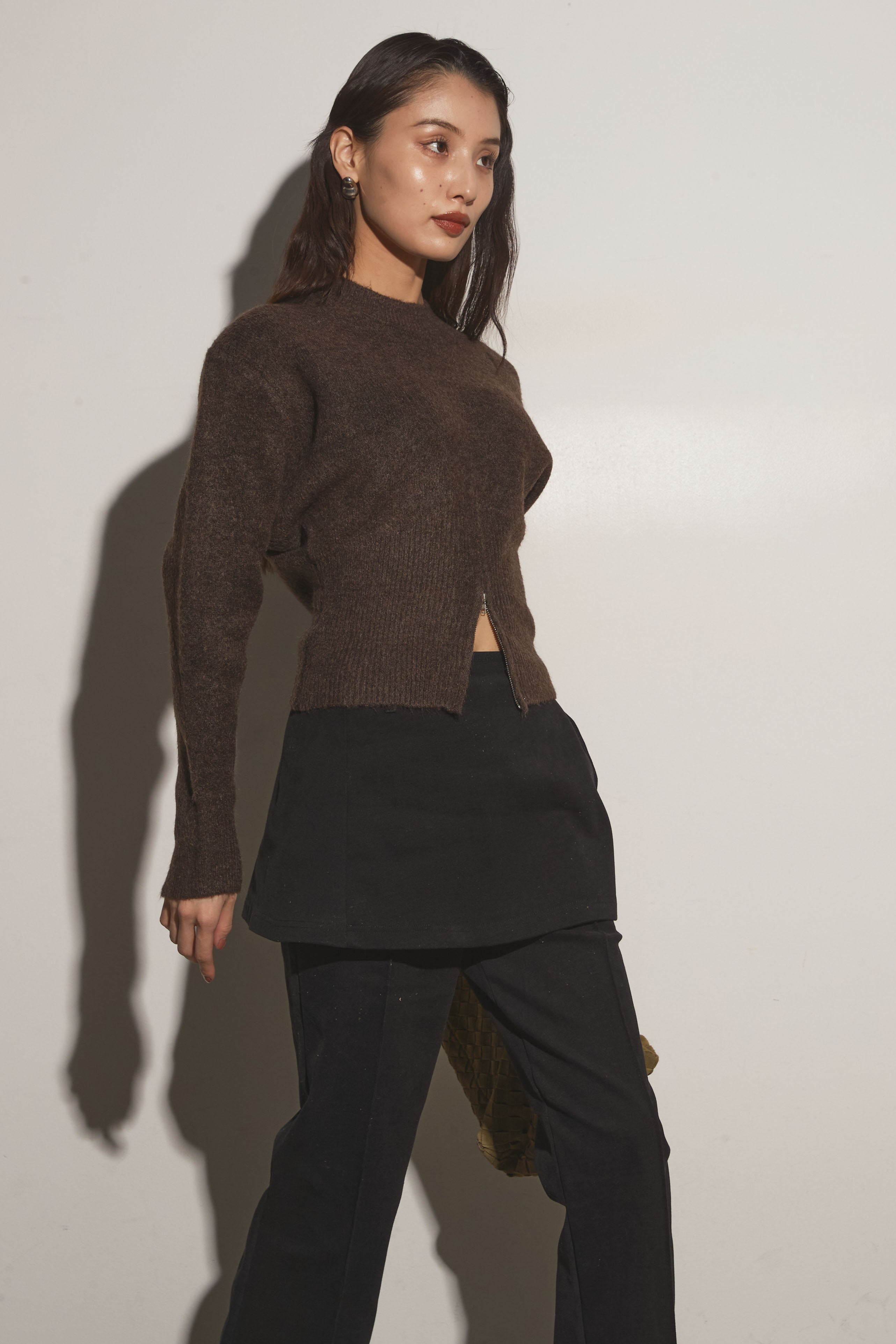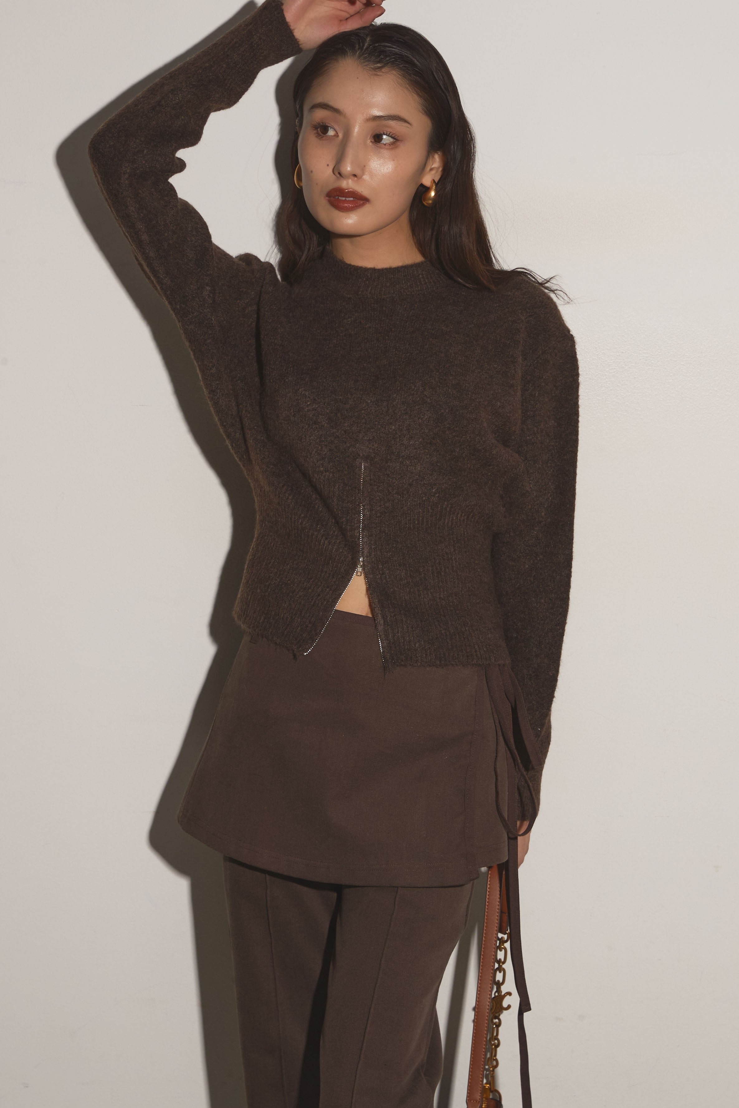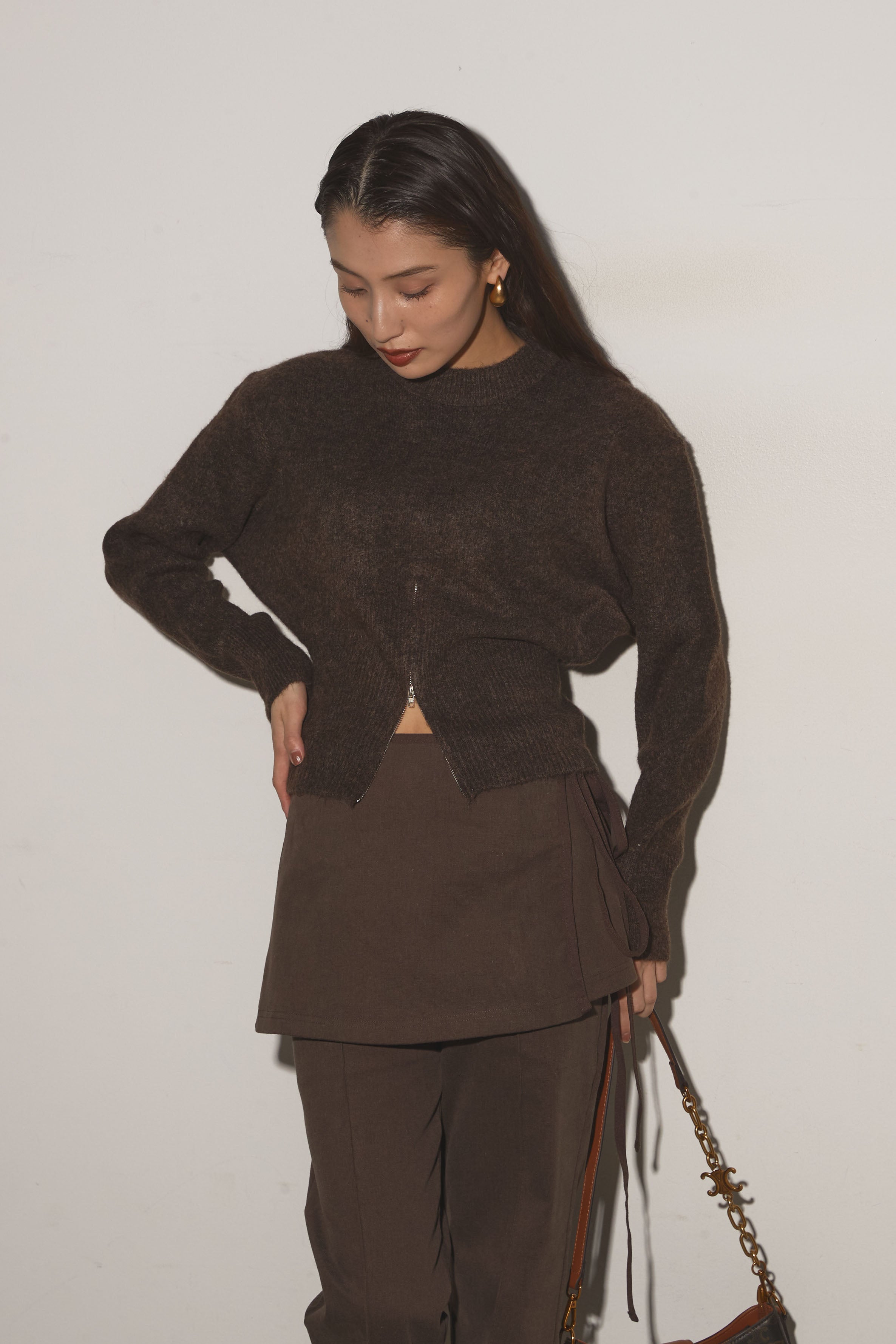【SET】フロントジップニット+ラップスカートフレアパンツ
