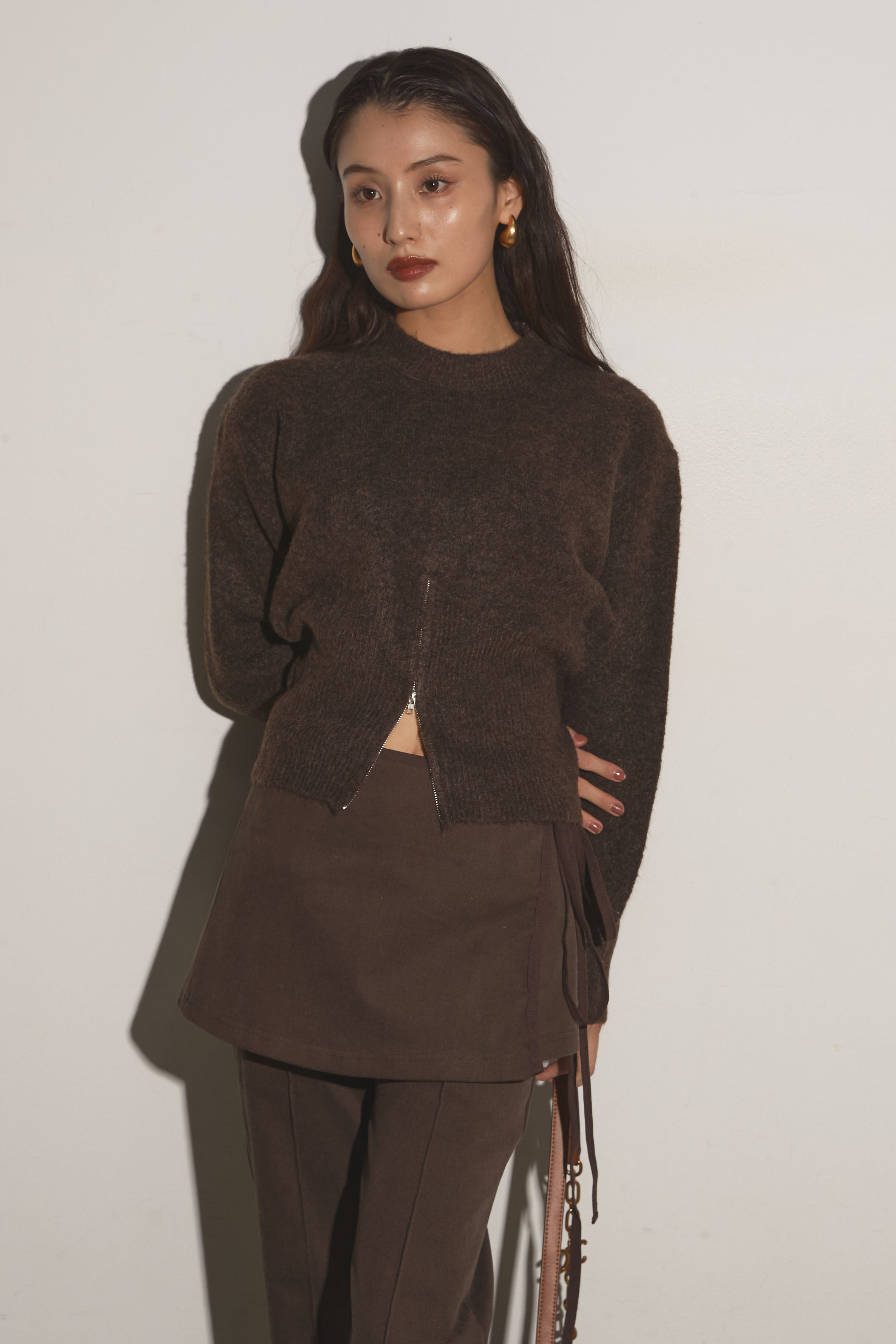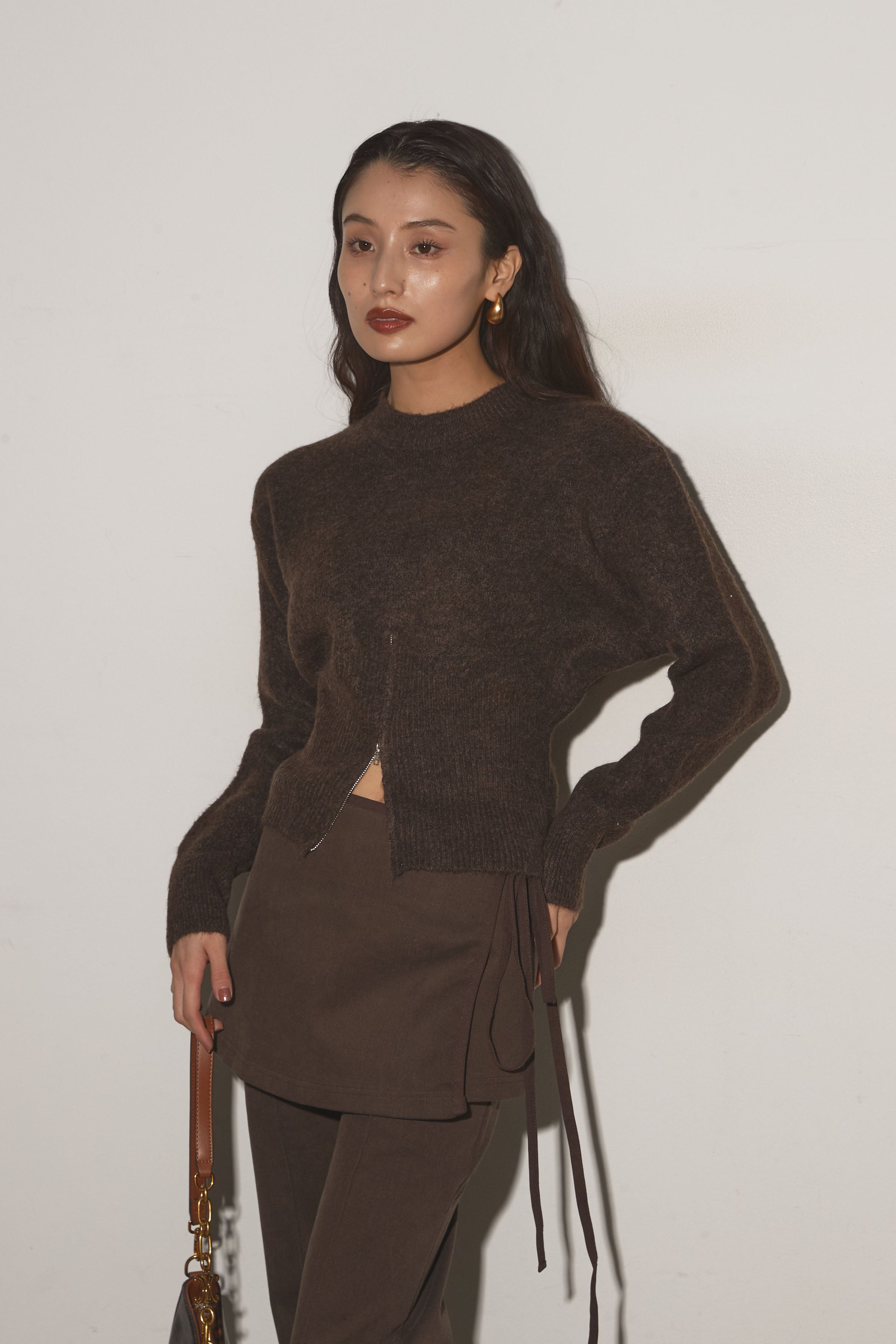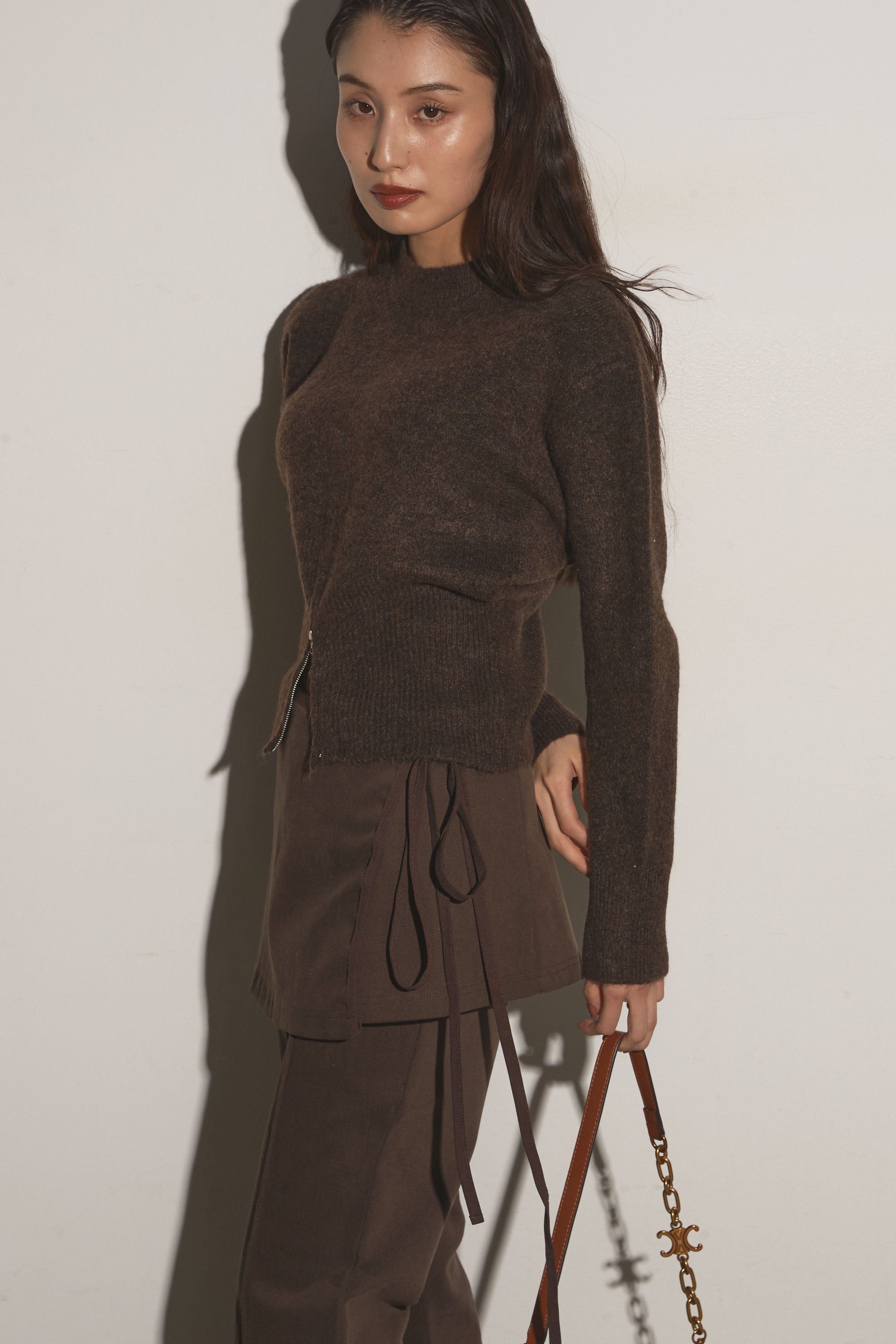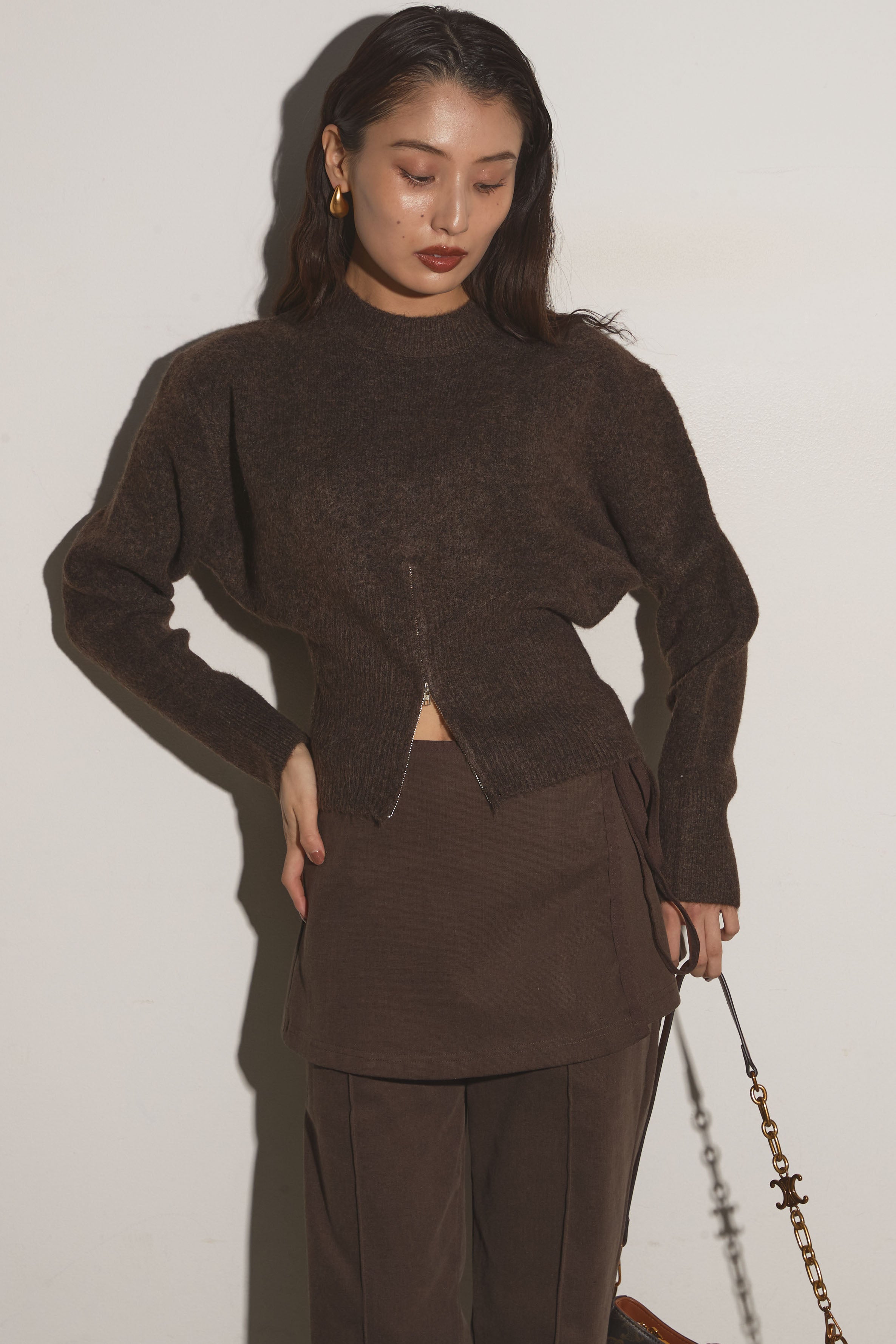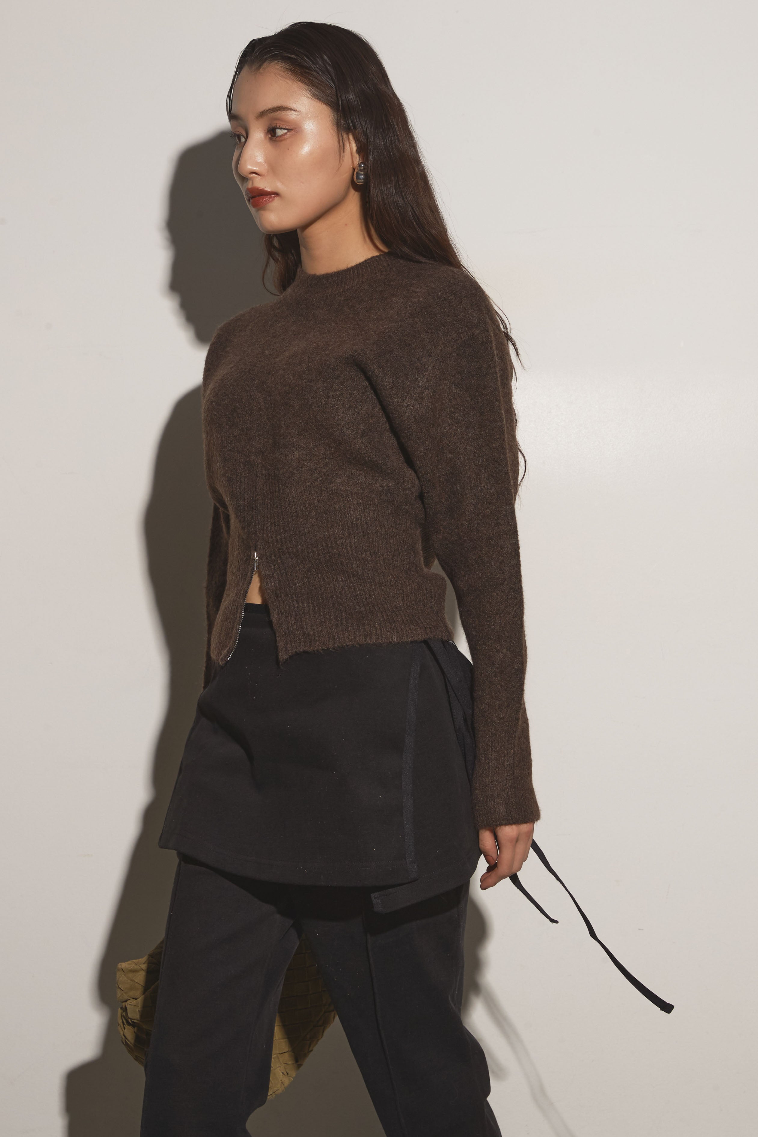 【SET】フロントジップニット+ラップスカートフレアパンツ